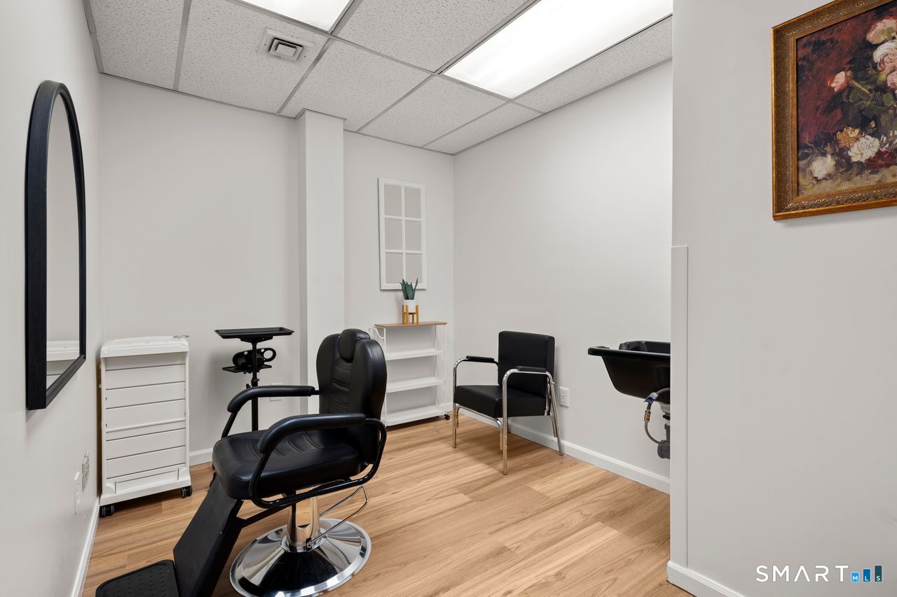 HIGH-VISIBILITY LOCATION DIRECTLY OFF I-91. Situated on the main road at 350 Silas Deane Highway, this property offers excellent exposure, easy on/off highway access, and proximity to major shops and services. Ample on-site parking enhances convenience for both clients and staff. ALL UTILITIES INCLUDED with tenants responsible for electricity and Wi-Fi only. Flexible lease terms. Suite 301 / Room 3 is approximately 200 SF modern office suite located within an elegant, professionally managed building featuring beautifully finished hallways, security systems throughout, elevator service, wheelchair accessibility, and 24/7 access. The suite features a beautiful main waiting room, along with a second waiting area located within the suite, providing added comfort and privacy for guests. Suite 301 includes five total rooms with a flexible layout suitable for a variety of professional or service-based uses. A kitchen/break area with a private bathroom is located within the suite for convenience. Beautiful tan hardwood floors run throughout the space, creating a warm and polished atmosphere, with ample room for guests to wait comfortably in the designated waiting areas. Functional and efficient, the unit offers a turnkey setup ideal for beauty, wellness, or cosmetic use. Contemporary finishes and a polished atmosphere make this property ideal for today's modern businesses. Flexible lease terms available. Turnkey and ready for immediate occupancy.