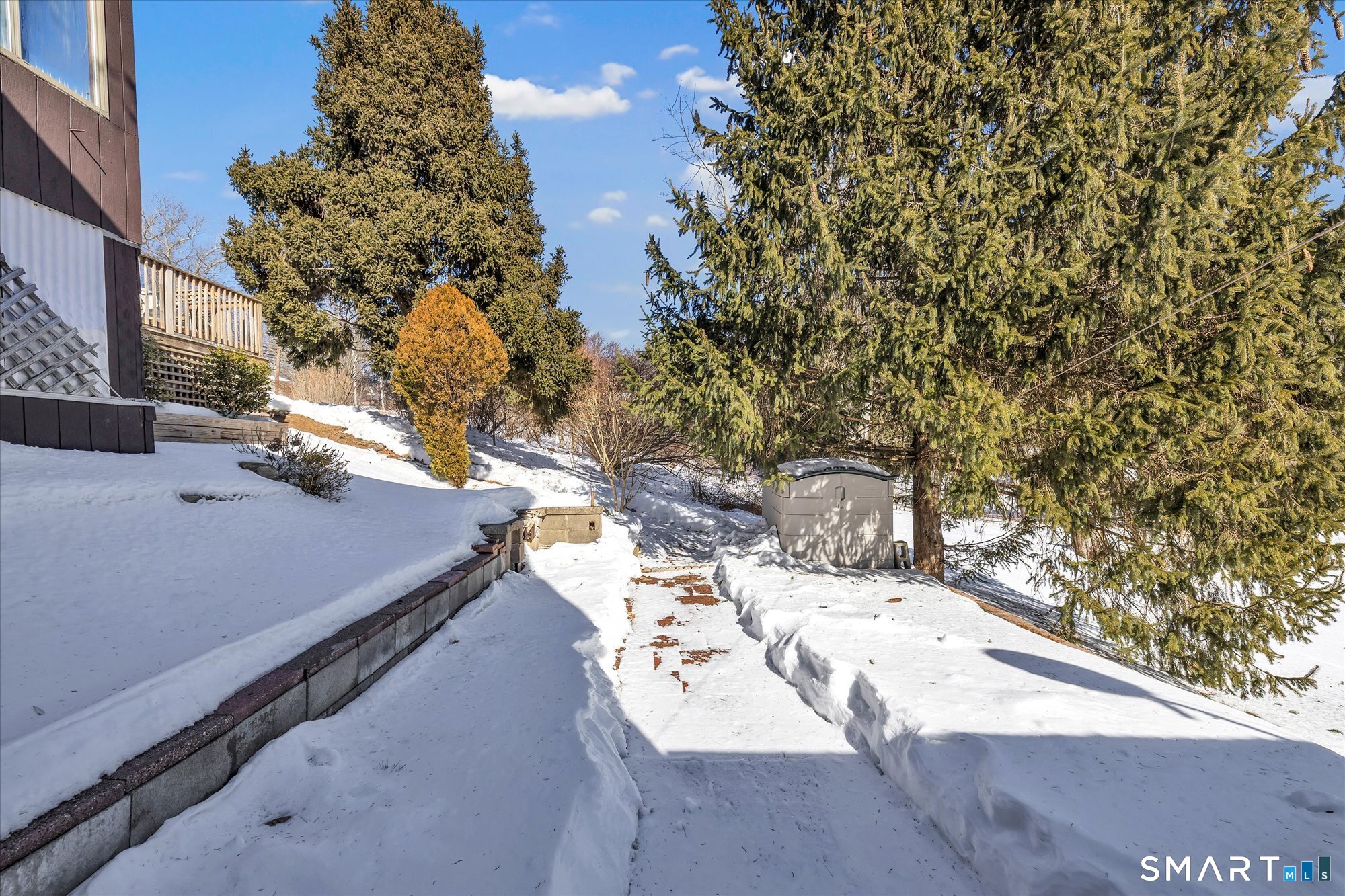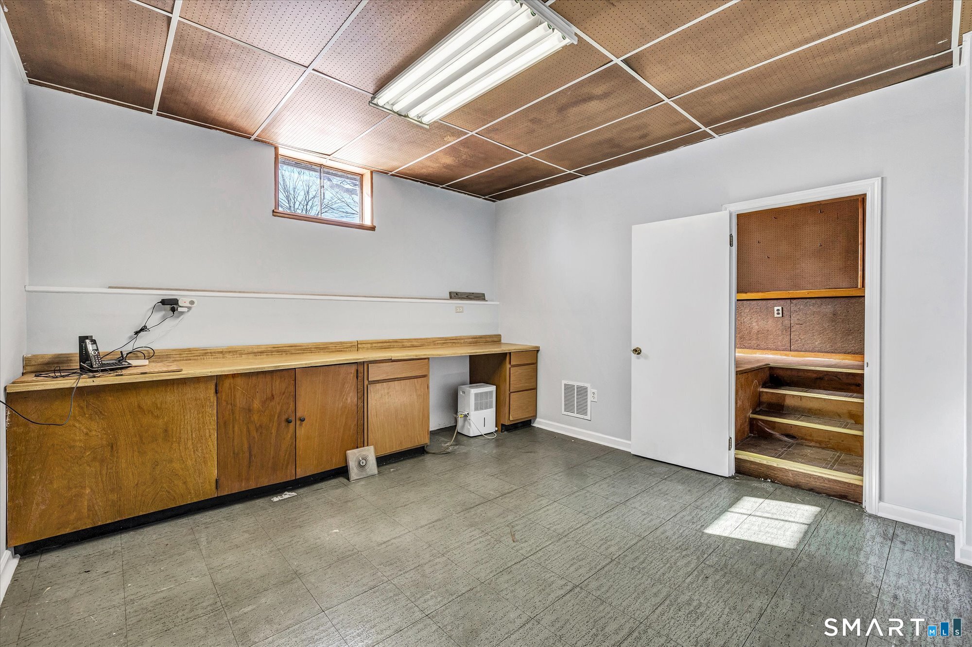 Great possibilities await in this solidly built ranch offering a versatile layout and wonderful indoor-outdoor flow. The kitchen features laminate flooring and opens to a sunroom that leads to a spacious deck overlooking a gorgeous rear yard & 2 car garage. A comfortable den with three closets provides flexible living space, while the light-filled living and dining room combination showcases hardwood floors, a fireplace, and large windows framing the serene backyard. Three bedrooms with hardwood floors and a remodeled full bath with a large walk-in shower complete the main level. The lower level offers excellent in-law or extended living potential with a kitchenette area, full bath & three additional rooms ideal for a recreation room, craft space, or office, plus a dedicated laundry area. With direct access to a side patio, workshop, and rear yard, this home presents endless opportunities to customize and make it your own.