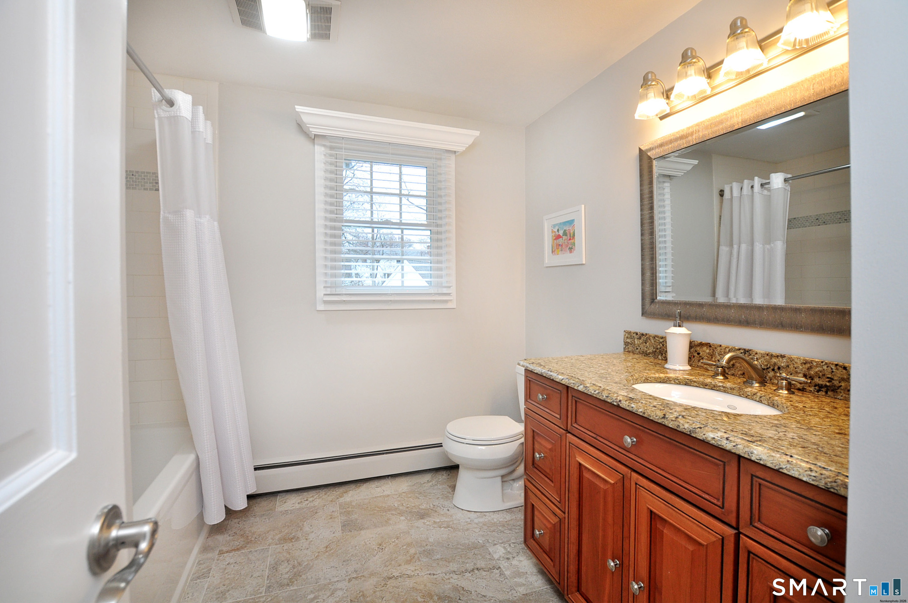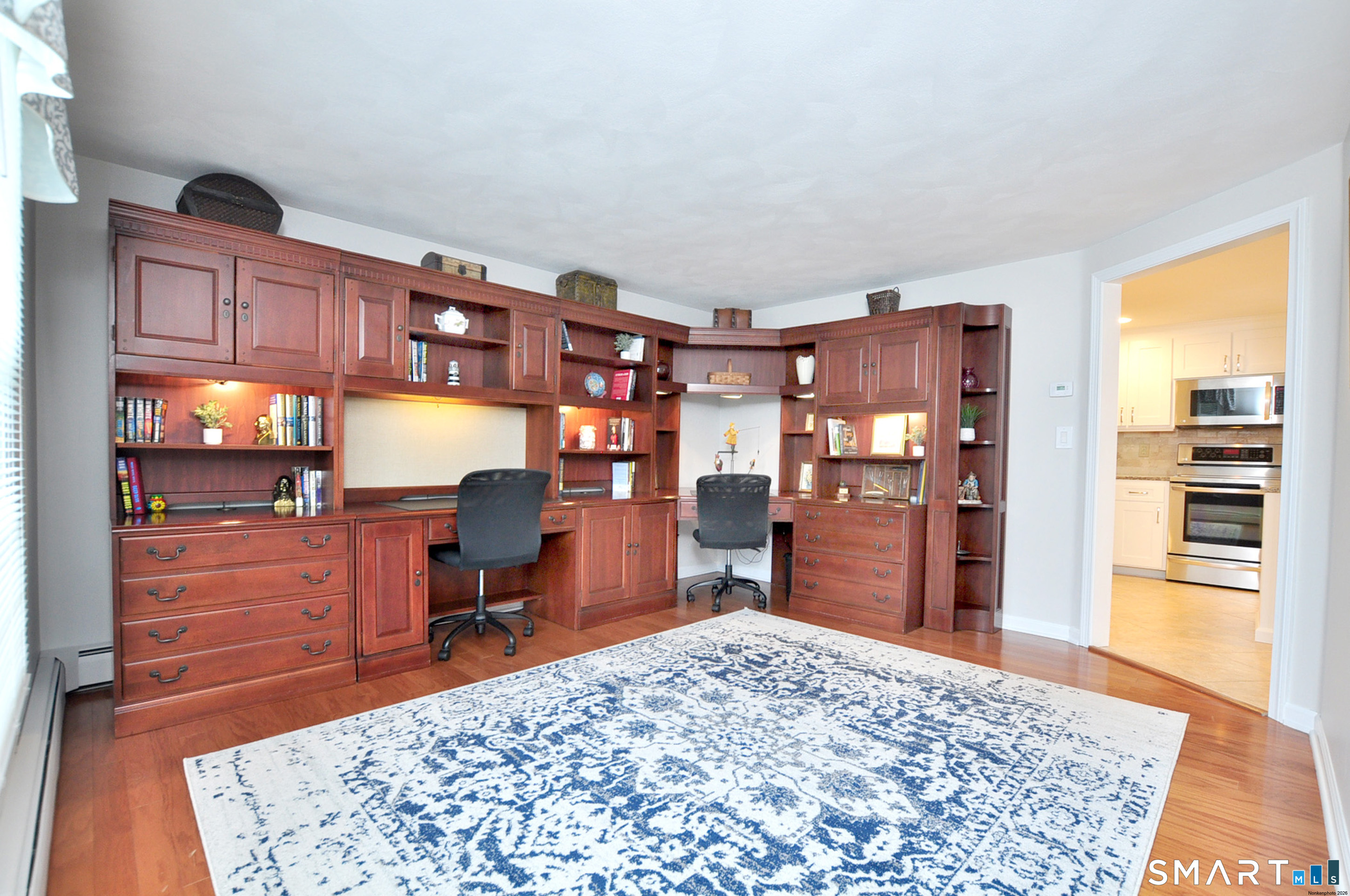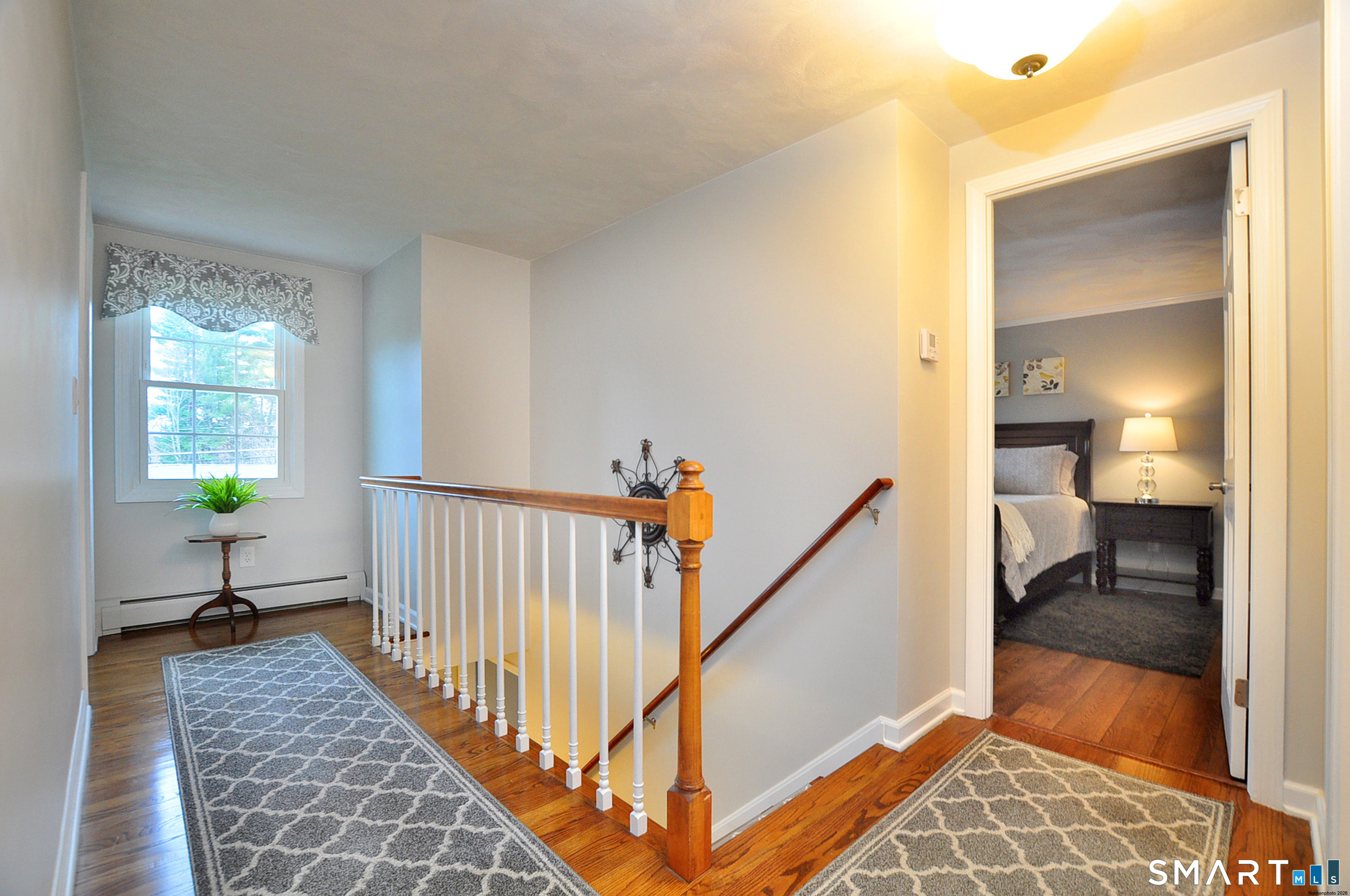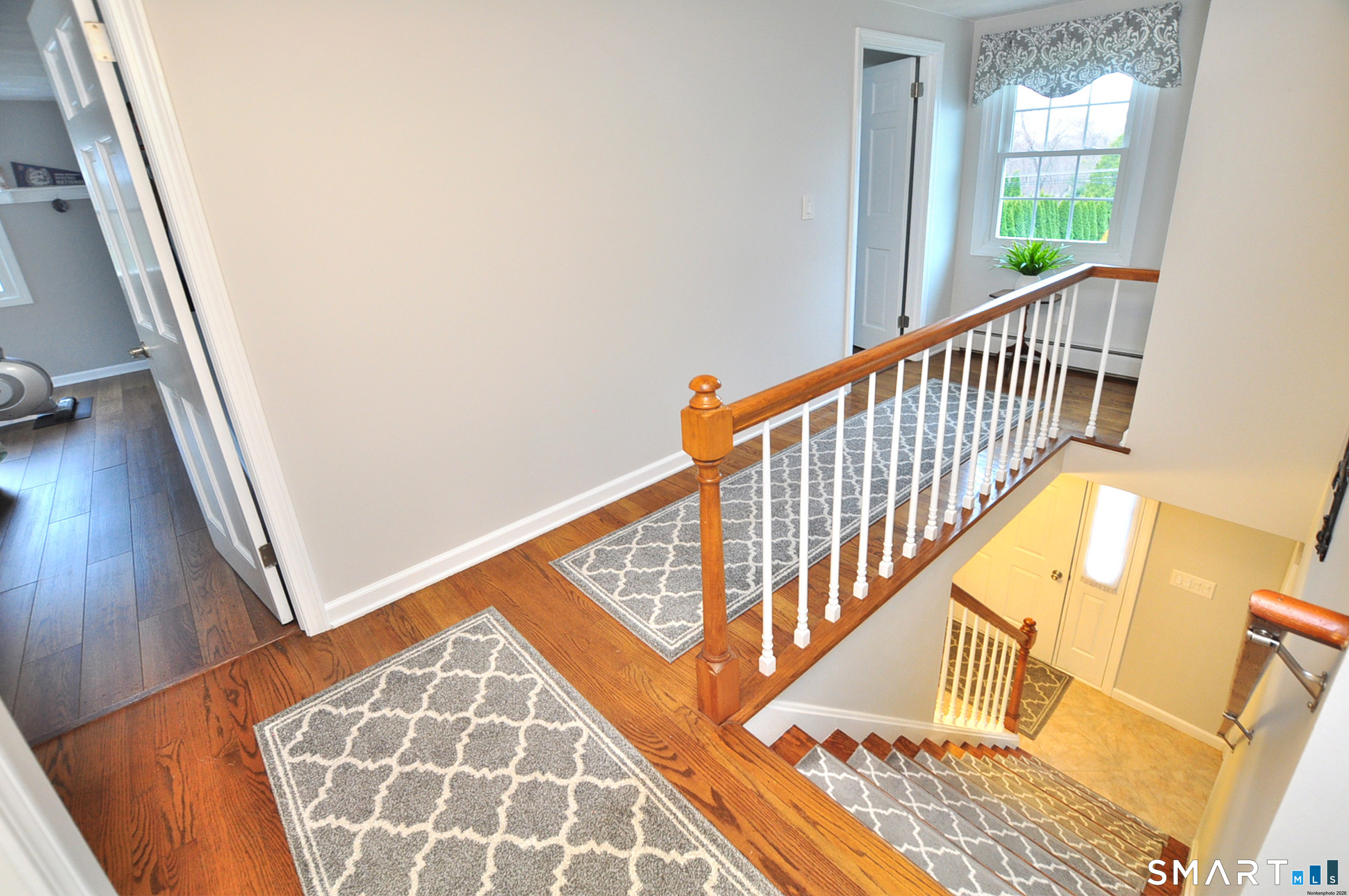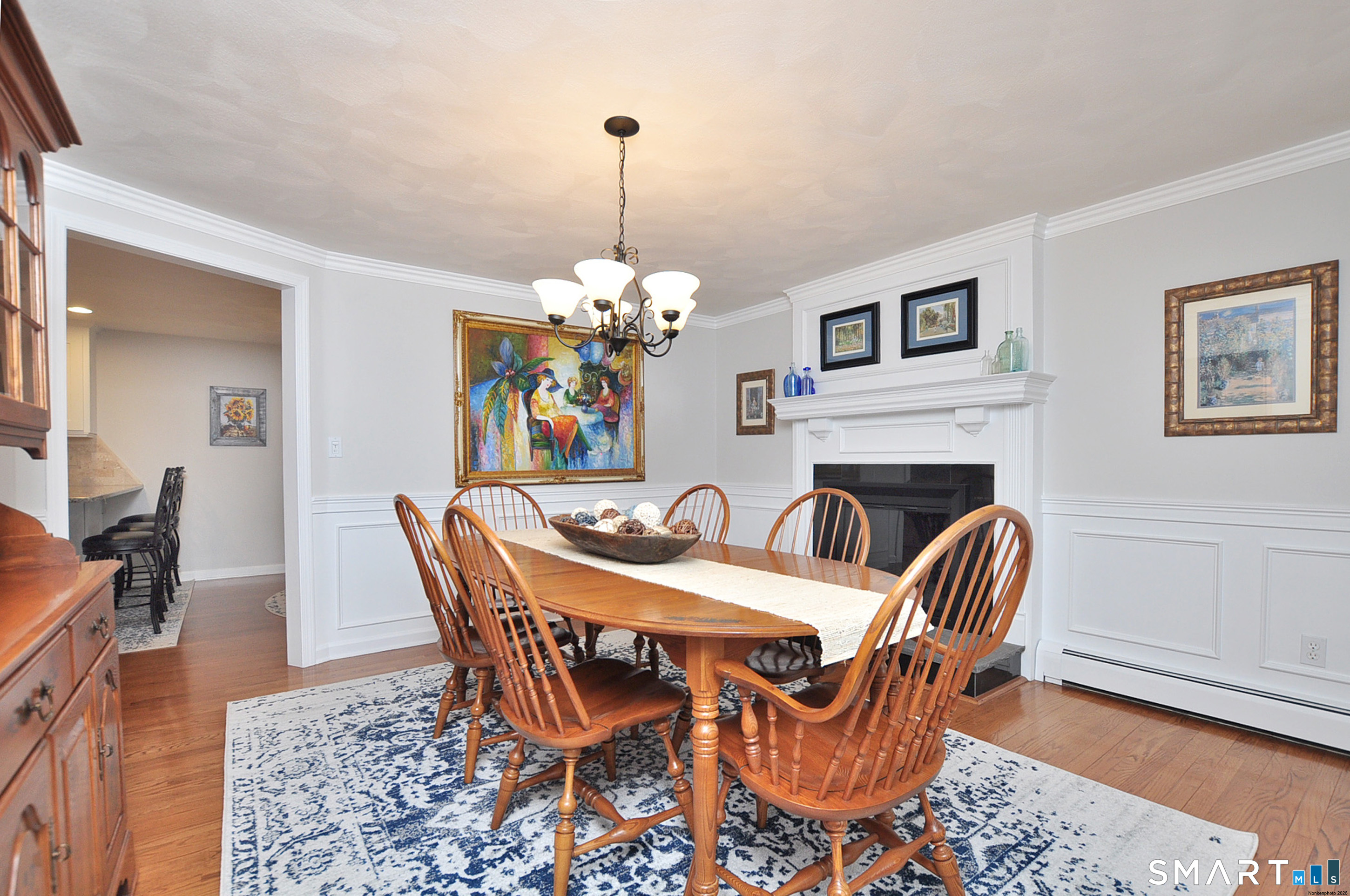 Pride of ownership shines throughout this sun-filled, one-owner Colonial, ideally set in Torrington's desirable east side on a loop street. From the moment you arrive, the meticulous grounds, classic stone walls, & inviting curb appeal set the tone for what's inside. This exceptionally well-maintained home feels bright, fresh, & truly move-in ready. Step into a welcoming tiled foyer that opens to a spacious dining room featuring a fireplace with custom mantel, picture molding, crown molding, & gleaming hardwood floors-perfect for everyday living or hosting. Just off the foyer, a private home office with built-ins &hardwood flooring offers the ideal work-from-home setup. The updated kitchen is a standout, complete with granite countertops, LG stainless steel appliances, tiled backsplash, & a sunny bay window dining area. It flows seamlessly into the impressive family room, where cathedral ceilings, exposed wood beam, skylights, & hardwood floors create a warm & inviting space to gather, highlighted by a fully functional gas log fireplace. An updated half bath with granite finishes completes the main level. Upstairs, you'll find 3 comfortable bedrooms, including a primary suite with walk-in closet. The second bedroom features custom built-in shelving, & the remodeled full bath showcases granite countertops & updated tile above & around the tub. The finished lower level adds valuable living space, ideal for a rec room, game room, or home gym, along with