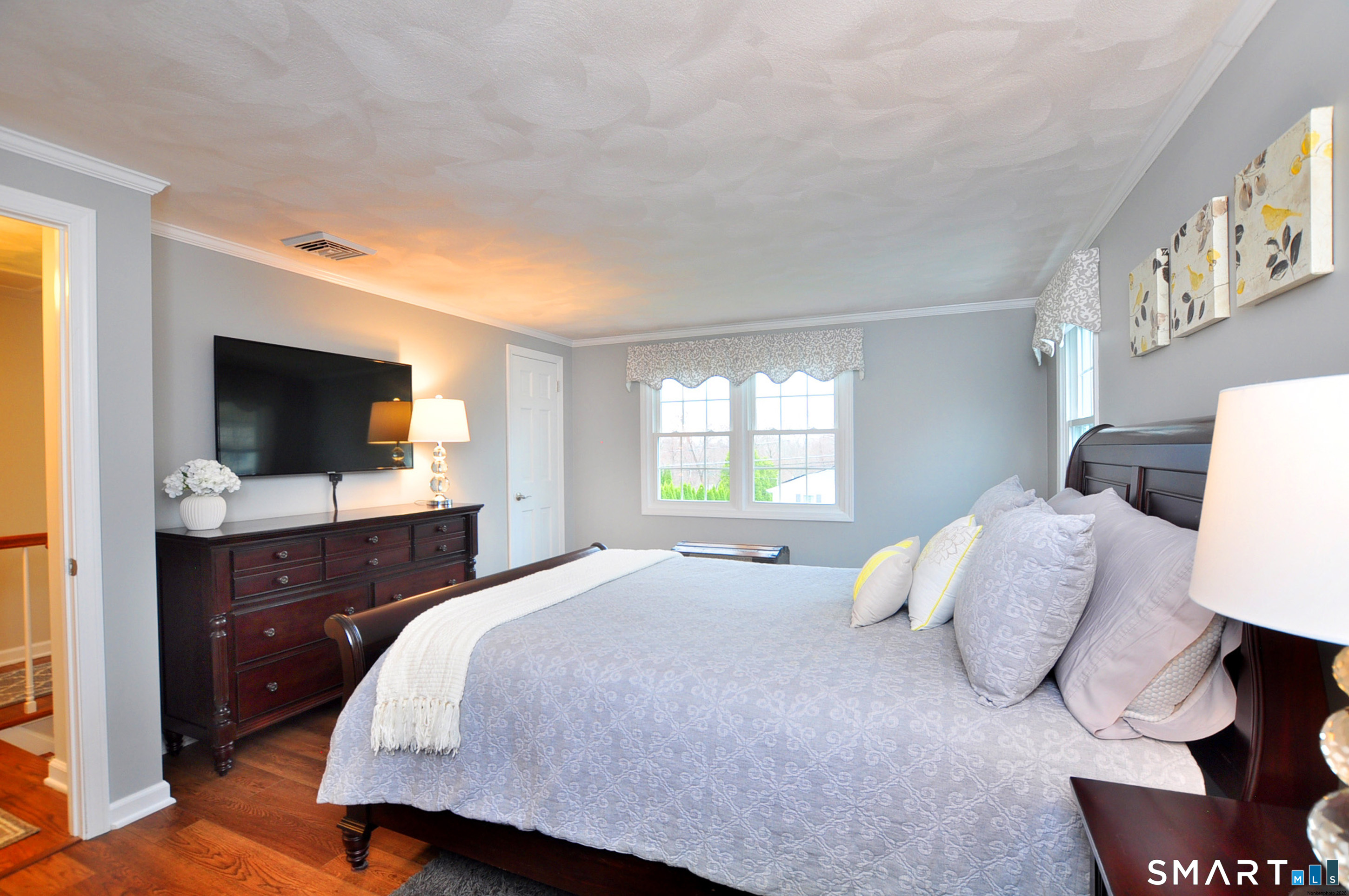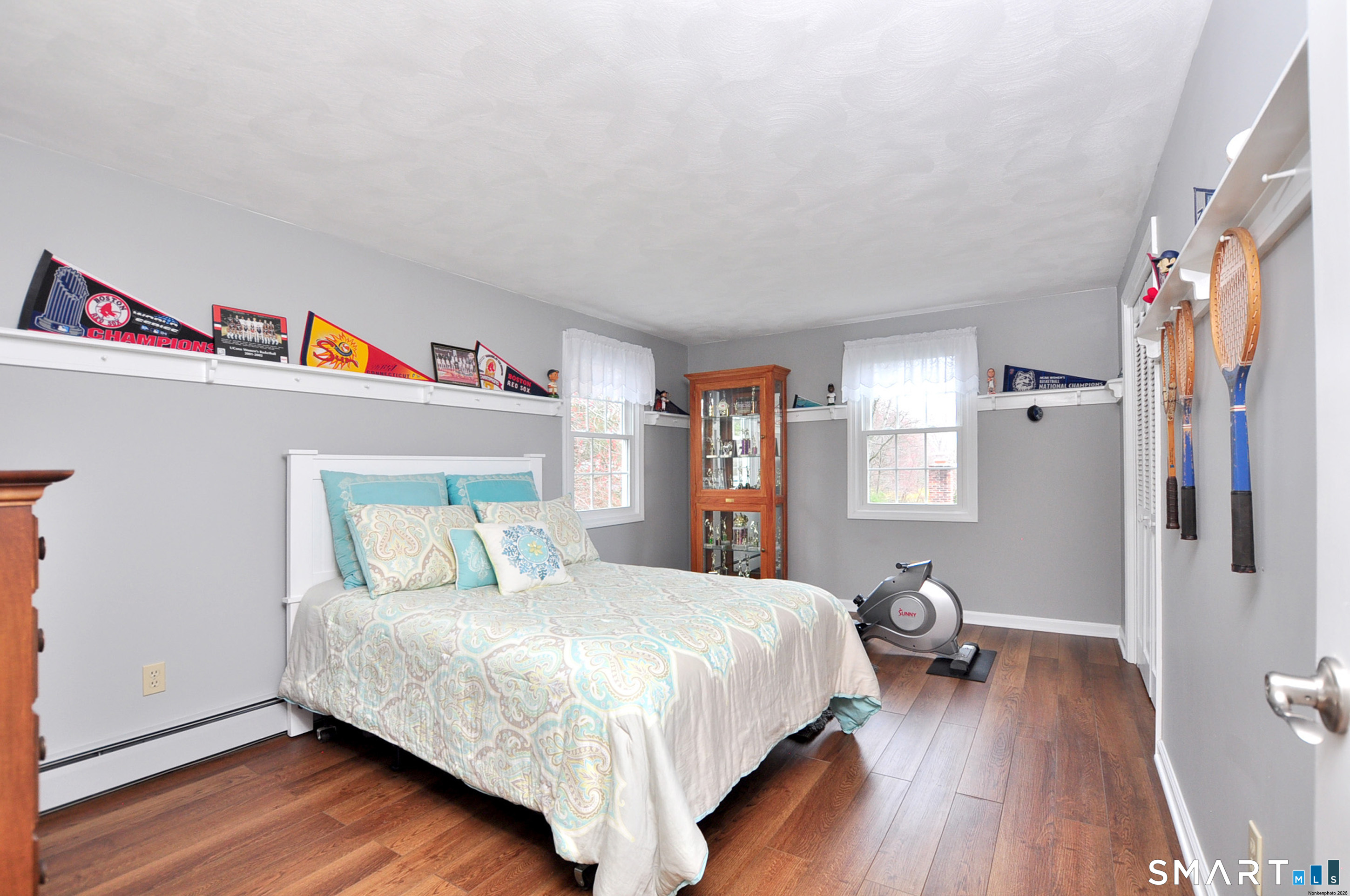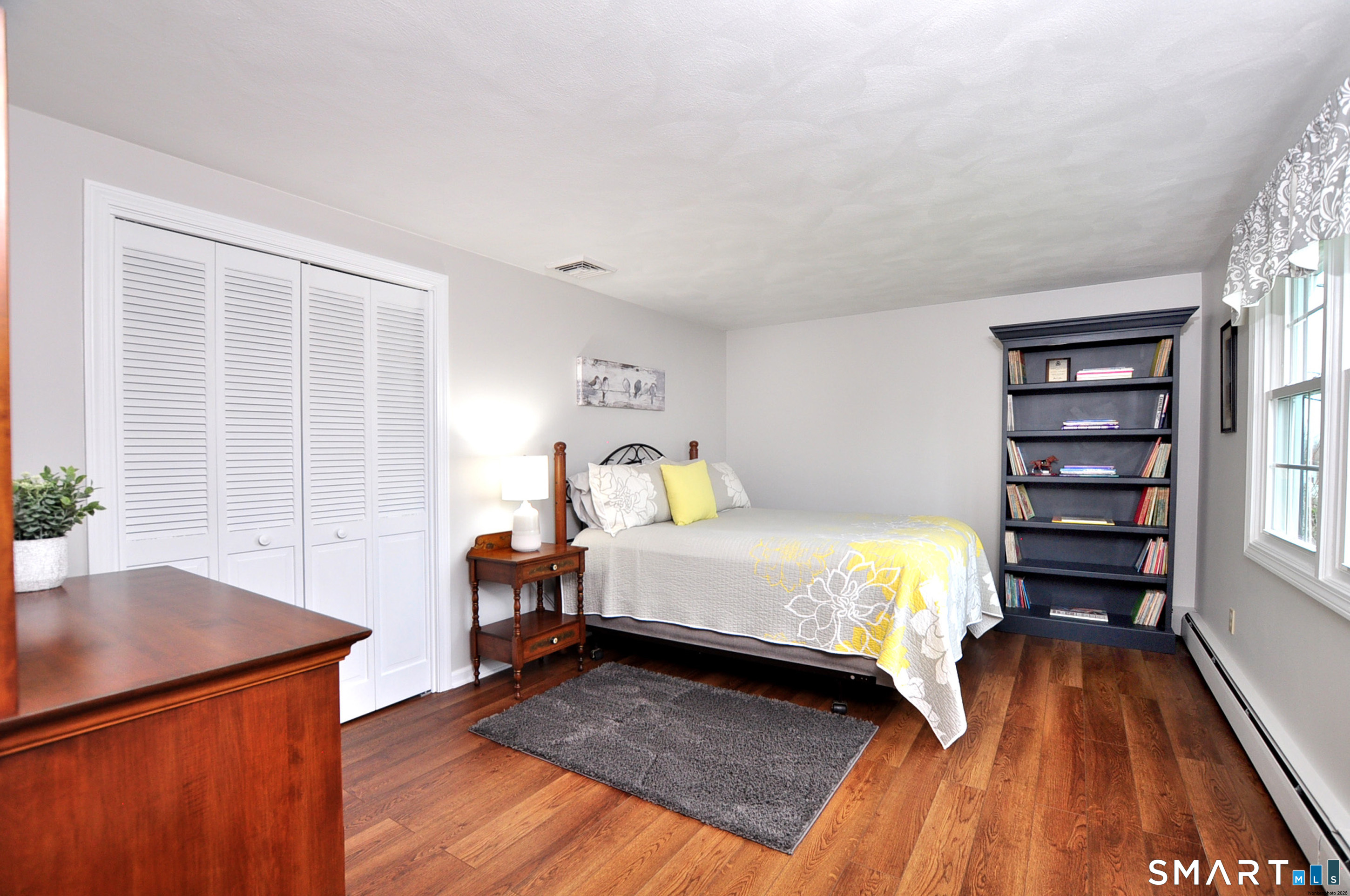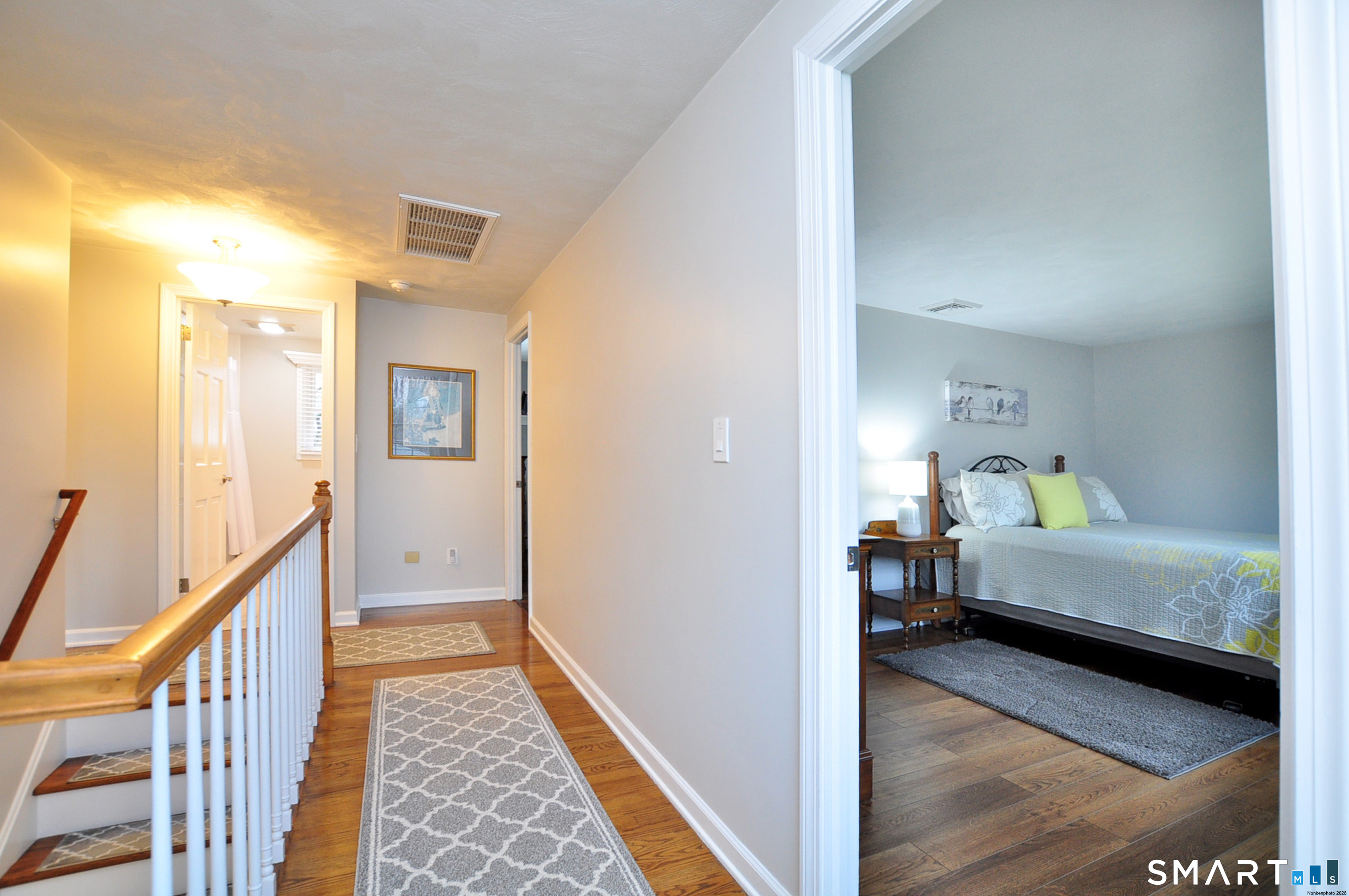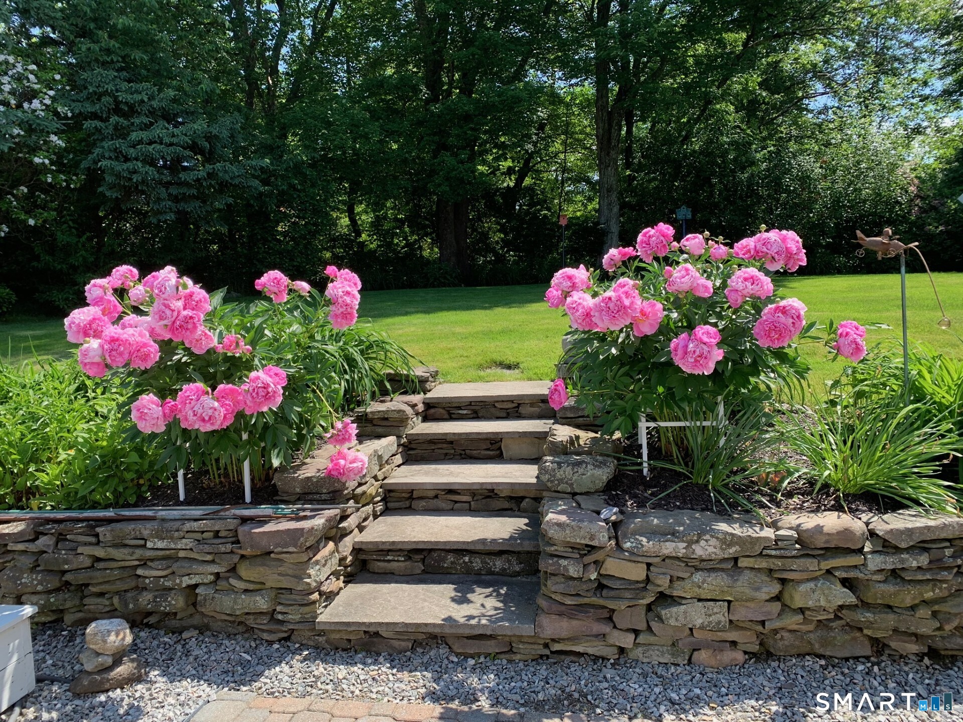 Pride of ownership shines throughout this sun-filled, one-owner Colonial, ideally set in Torrington's desirable east side on a loop street. From the moment you arrive, the meticulous grounds, classic stone walls, & inviting curb appeal set the tone for what's inside. This exceptionally well-maintained home feels bright, fresh, & truly move-in ready. Step into a welcoming tiled foyer that opens to a spacious dining room featuring a fireplace with custom mantel, picture molding, crown molding, & gleaming hardwood floors-perfect for everyday living or hosting. Just off the foyer, a private home office with built-ins &hardwood flooring offers the ideal work-from-home setup. The updated kitchen is a standout, complete with granite countertops, LG stainless steel appliances, tiled backsplash, & a sunny bay window dining area. It flows seamlessly into the impressive family room, where cathedral ceilings, exposed wood beam, skylights, & hardwood floors create a warm & inviting space to gather, highlighted by a fully functional gas log fireplace. An updated half bath with granite finishes completes the main level. Upstairs, you'll find 3 comfortable bedrooms, including a primary suite with walk-in closet. The second bedroom features custom built-in shelving, & the remodeled full bath showcases granite countertops & updated tile above & around the tub. The finished lower level adds valuable living space, ideal for a rec room, game room, or home gym, along with