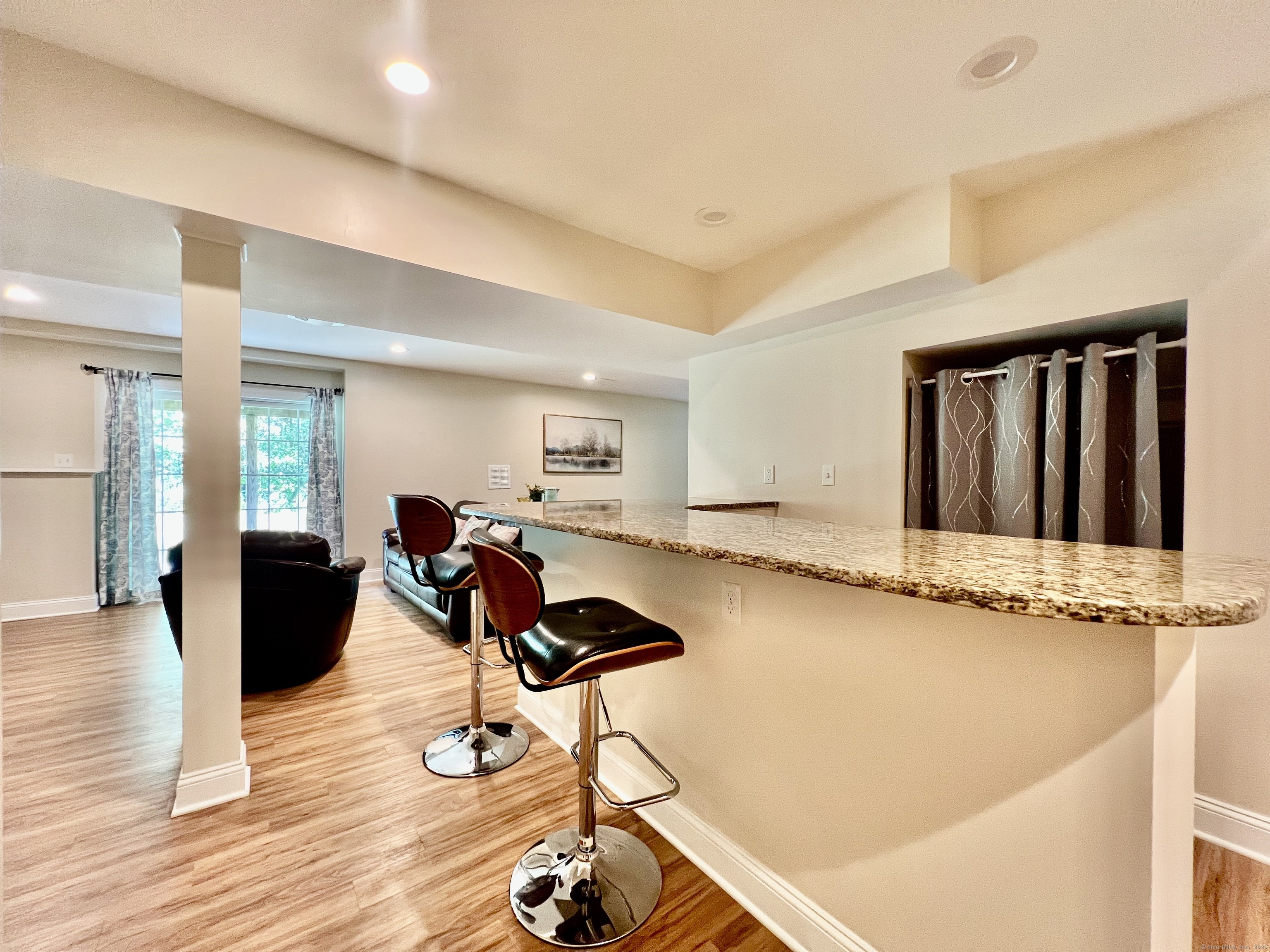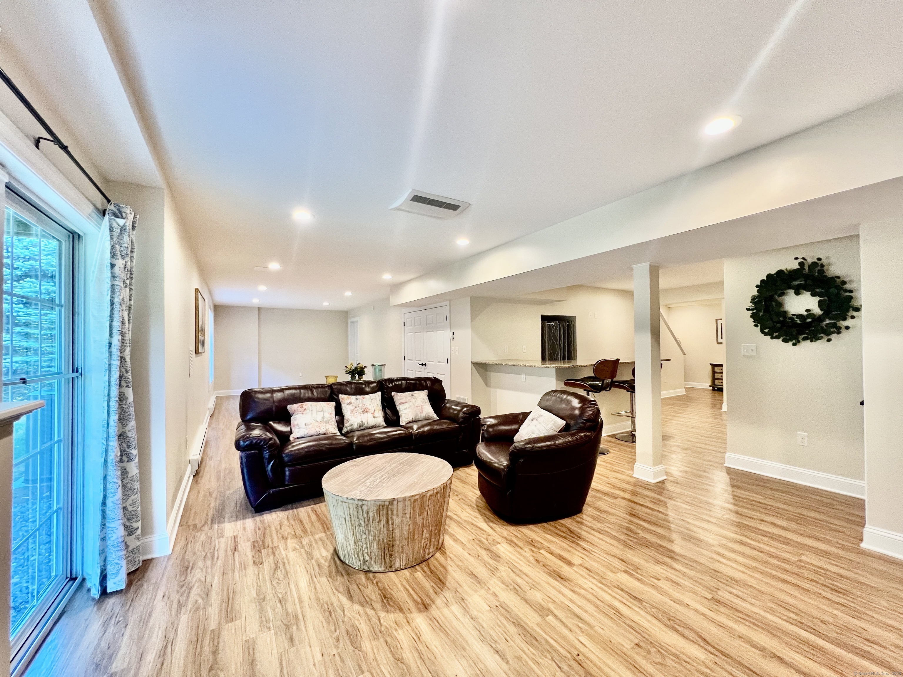 Welcome to 65 Oak Meadow Lane, located in one of Torrington's most sought-after 55+ communities! This beautifully maintained home features an inviting open floor plan, a spacious eat-in kitchen with center island, granite countertops, and hardwood floors that flow through the dining and living areas. The main level offers a primary suite complete with a walk-in closet, luxury bath, and convenient laundry. Upstairs, a versatile loft with hardwood flooring leads to a second bedroom with its own walk-in closet and full bath. The fully finished, walk-out lower level expands your living space with a custom granite bar, family room, office area, and an additional full bath. Situated on the Harwinton/Torrington line, this ranch-style home combines comfort and convenience, newer mechanicals/garage opener with HOA services that cover exterior maintenance.