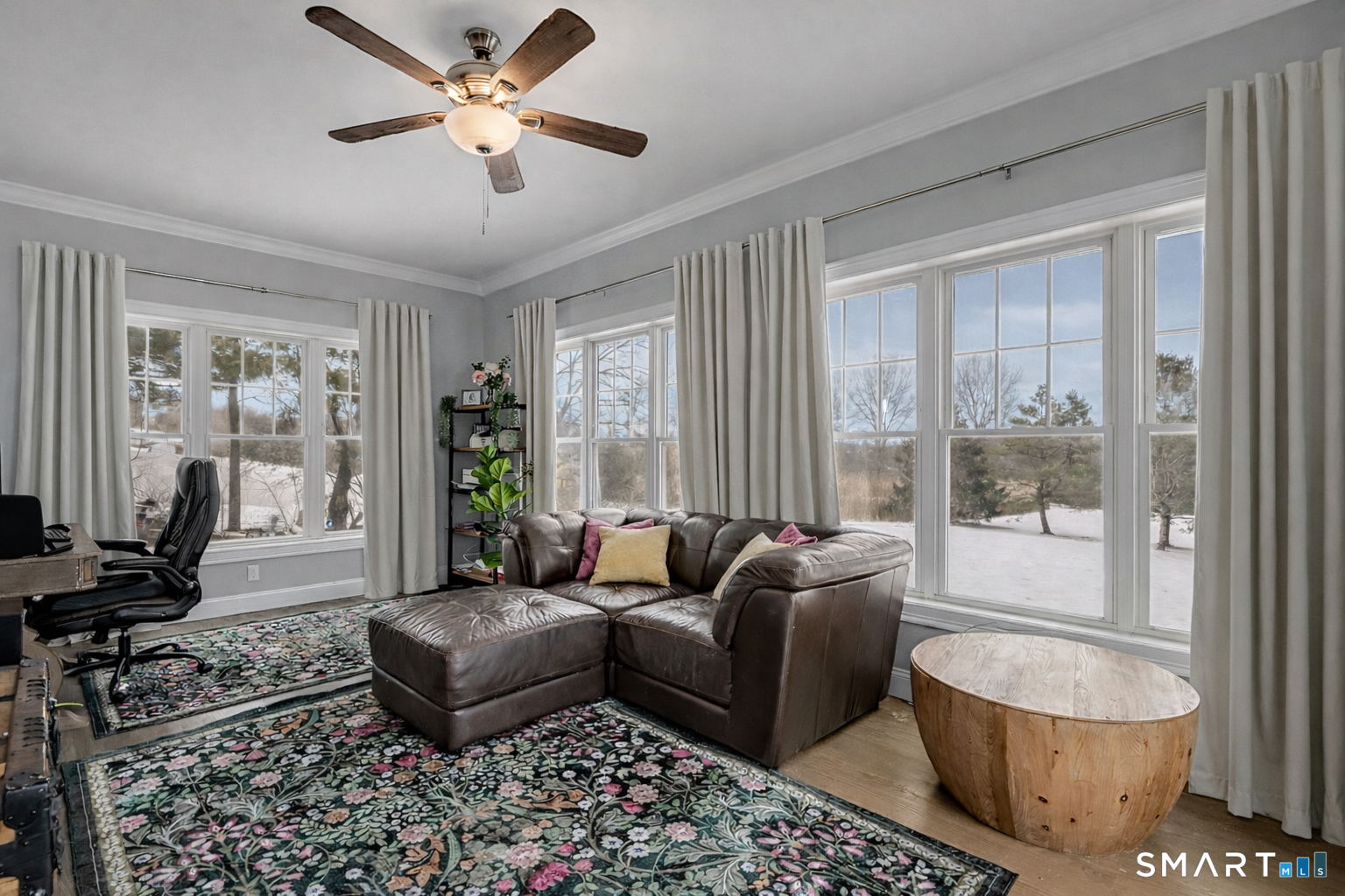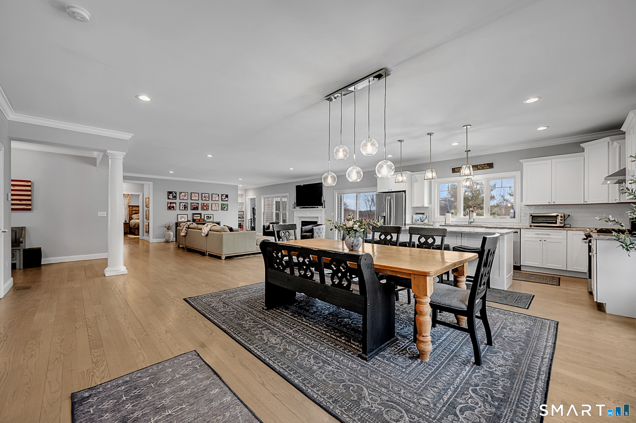 HIGHEST AND BEST BY 5p, TUESDAY, March 31. Built in 2019, this exceptional ranch offers 2,732 square feet of refined single-level living, complemented by approximately 883 square feet of newly finished lower-level space. Designed with both elegance and functionality in mind, the home features 4 bedrooms, 3.5 bathrooms, and a sophisticated open-concept layout ideal for modern living. The expansive living room is anchored by a striking fireplace and enhanced by recessed lighting and sliding glass doors that open to a private deck, creating an effortless indoor-outdoor connection. An oversized family room provides an additional space for entertaining or relaxation, while rich wood flooring throughout the home adds warmth and timeless appeal. Each bedroom is outfitted with ceiling fans for year-round comfort. A bright sunroom offers exceptional versatility and can easily serve as a home office, guest suite, or additional bedroom. Set on a serene and private 2.17-acre lot, this property delivers a rare combination of space, privacy, and tranquility. A two-car garage and move-in-ready condition complete this thoughtfully designed residence, offering luxurious living-all on one level.