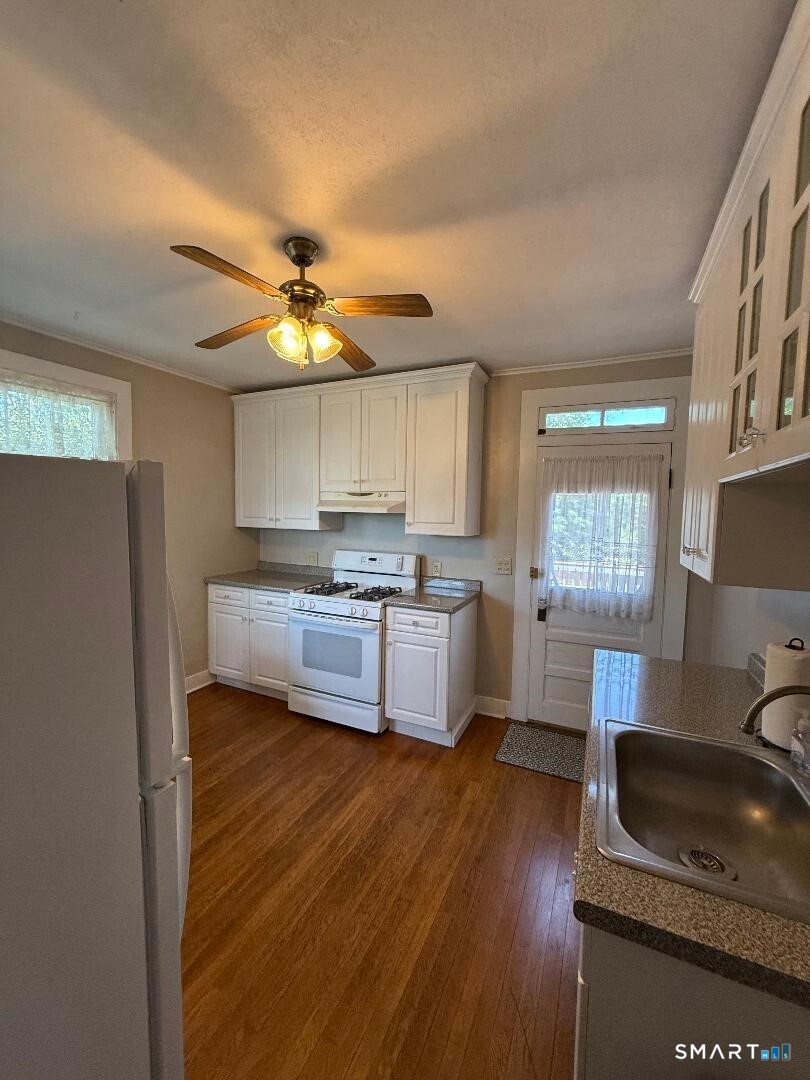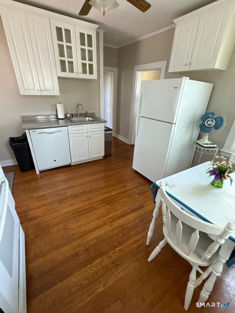 Location and Charm! 1182 square feet on the entire second floor in well maintained historical home in the downtown village of Clinton. This light filled space offers two large bedrooms and two full baths, plus a den or home office with floor to ceiling wall of built-ins. Hardwood and pine plank flooring throughout, with attention to architectural details of a bygone era. Updated full kitchen with washer and dryer in basement. Enjoy morning coffee on an expansive private deck overlooking Indian River. Private off-street parking. Take a secret pathway a few steps to the town center or a two minute walk to train and bus. All this is less than 1/2 mile from I95