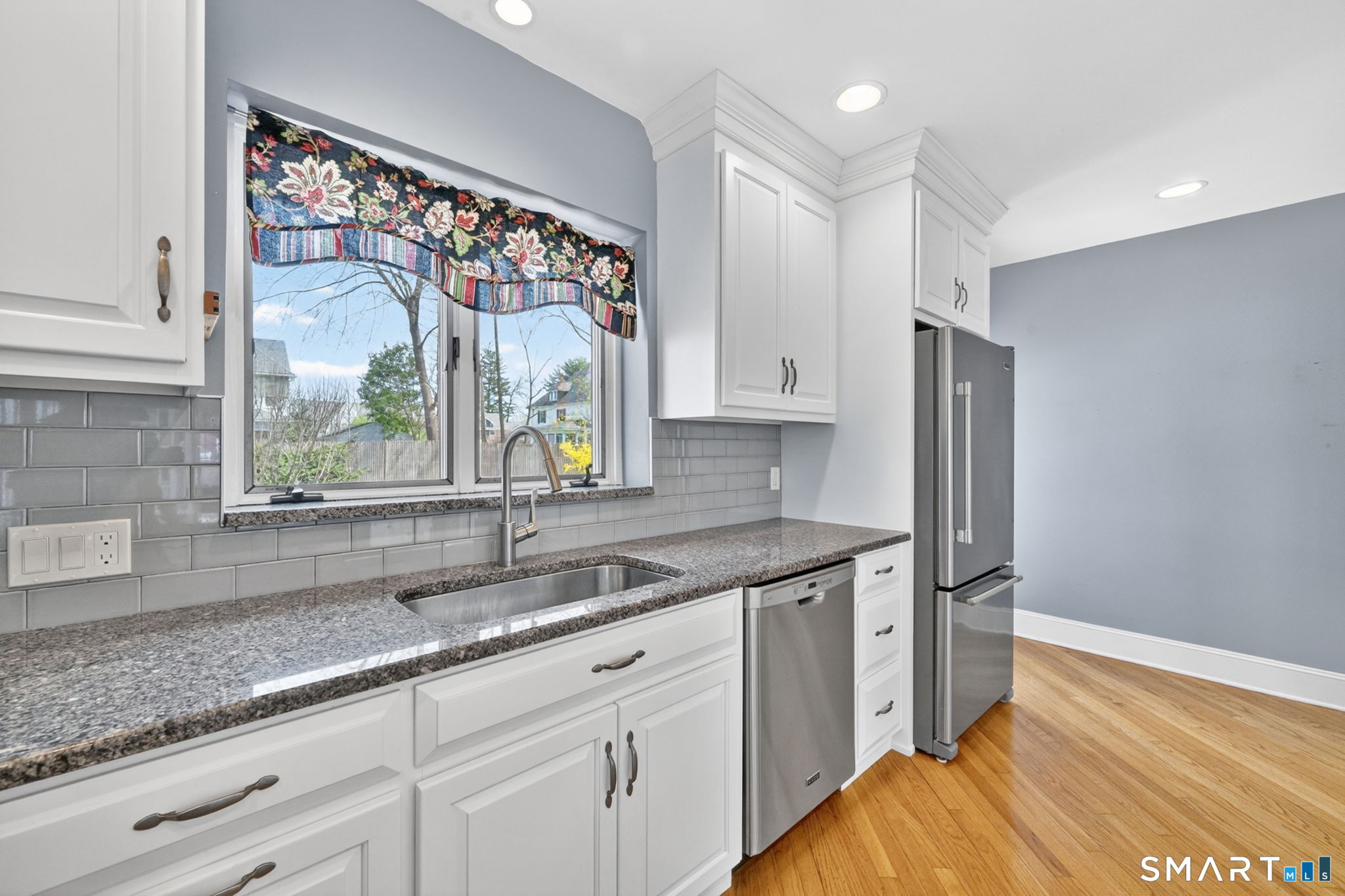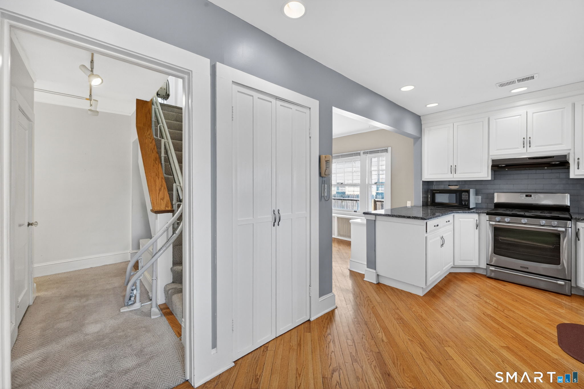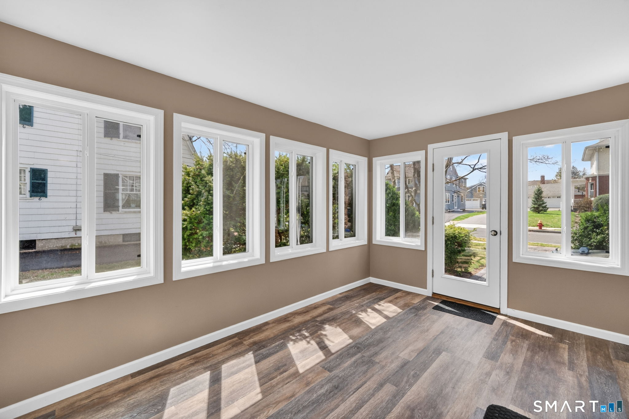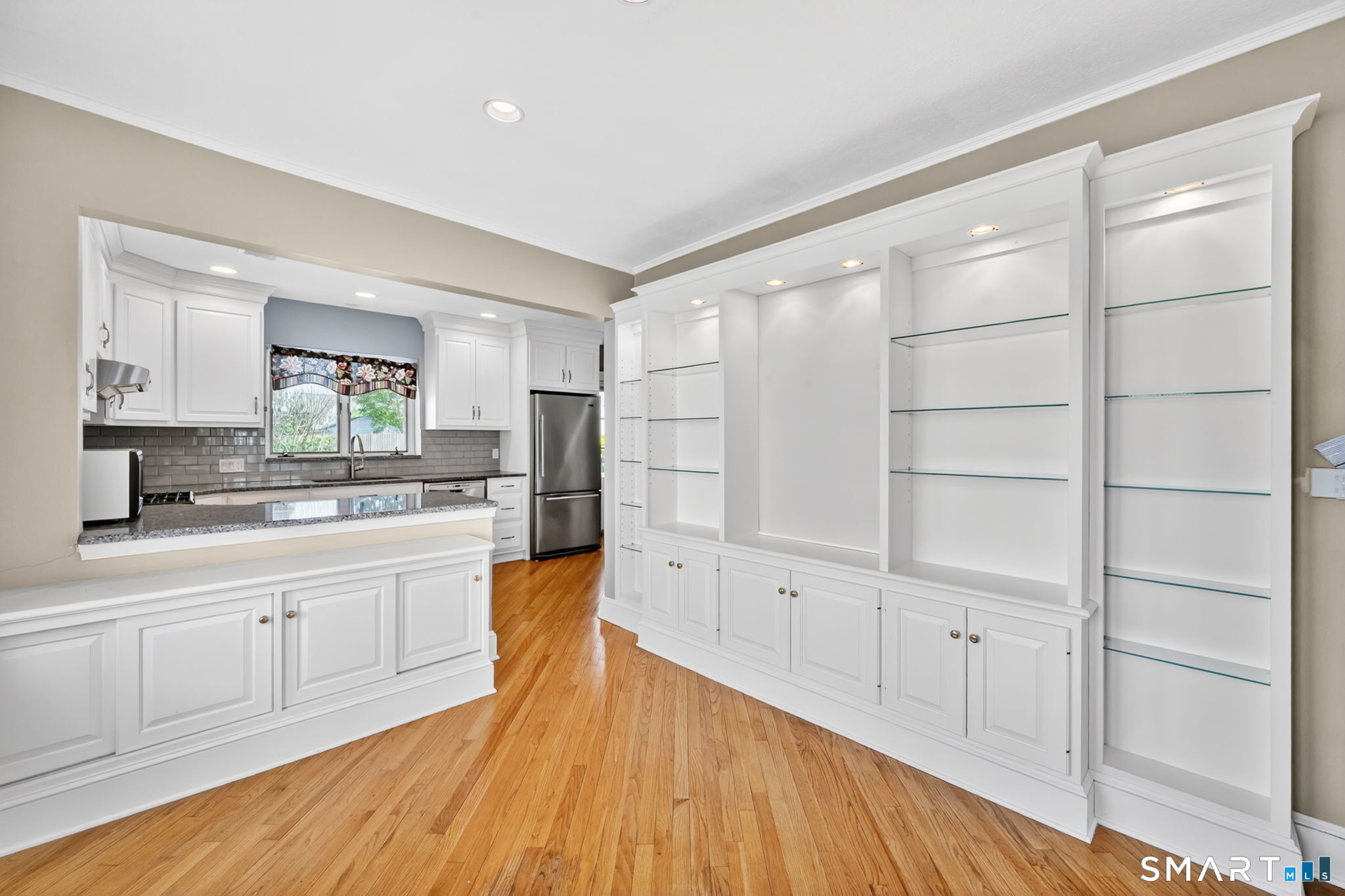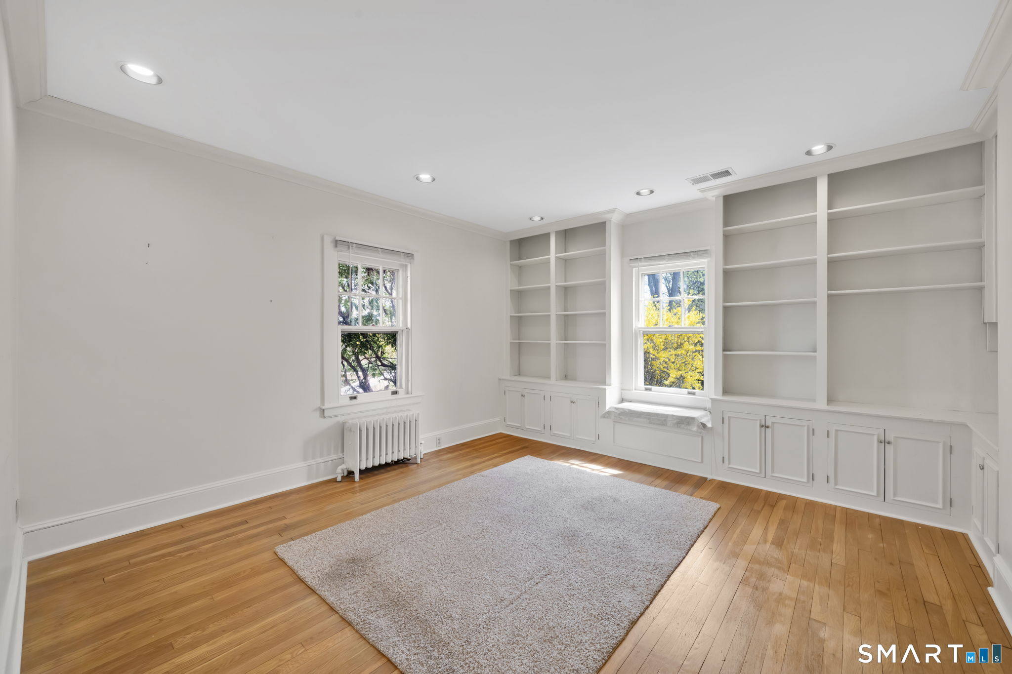 The one you've been waiting for! This unique home blends bungalow & Cape Cod architectural styles & is located on a coveted street in walking distance to West Hartford Center and Blue Back Square. The front entrance is through a bright enclosed sun porch with new windows and flooring. A vast living room greets you with hardwood floors, fireplace & built-in cabinetry & bookcases. French doors open to the dining room featuring recessed lighting and custom built-ins & flows into the remodeled kitchen. The kitchen has white soft-close cabinets, granite counters, hardwood floor, stainless appliances, recessed lighting & a pantry closet. The back door leads to a spacious new deck & the level and sunny backyard and detached garage. A first floor bedroom with bookcases & a walk-in closet adjacent to a full bathroom allows for one level living or a great den or TV room. Upstairs the master bedroom is highlighted by a vaulted ceiling, Palladian window, recessed lighting & a walk-in closet. Another bedroom has built-in bookcases & the fourth is customized as a home office with built-in desks & bookcases & brightened by skylights and recessed lighting. A loft area with window seat & vaulted ceiling makes a sunny reading nook or exercise area. The heated lower level has two bonus rooms to use as you desire - extra bedrooms, hobby space, or work area. There's plenty of storage & workshop space in the unfinished basement area. Stay comfortable year round with economical gas