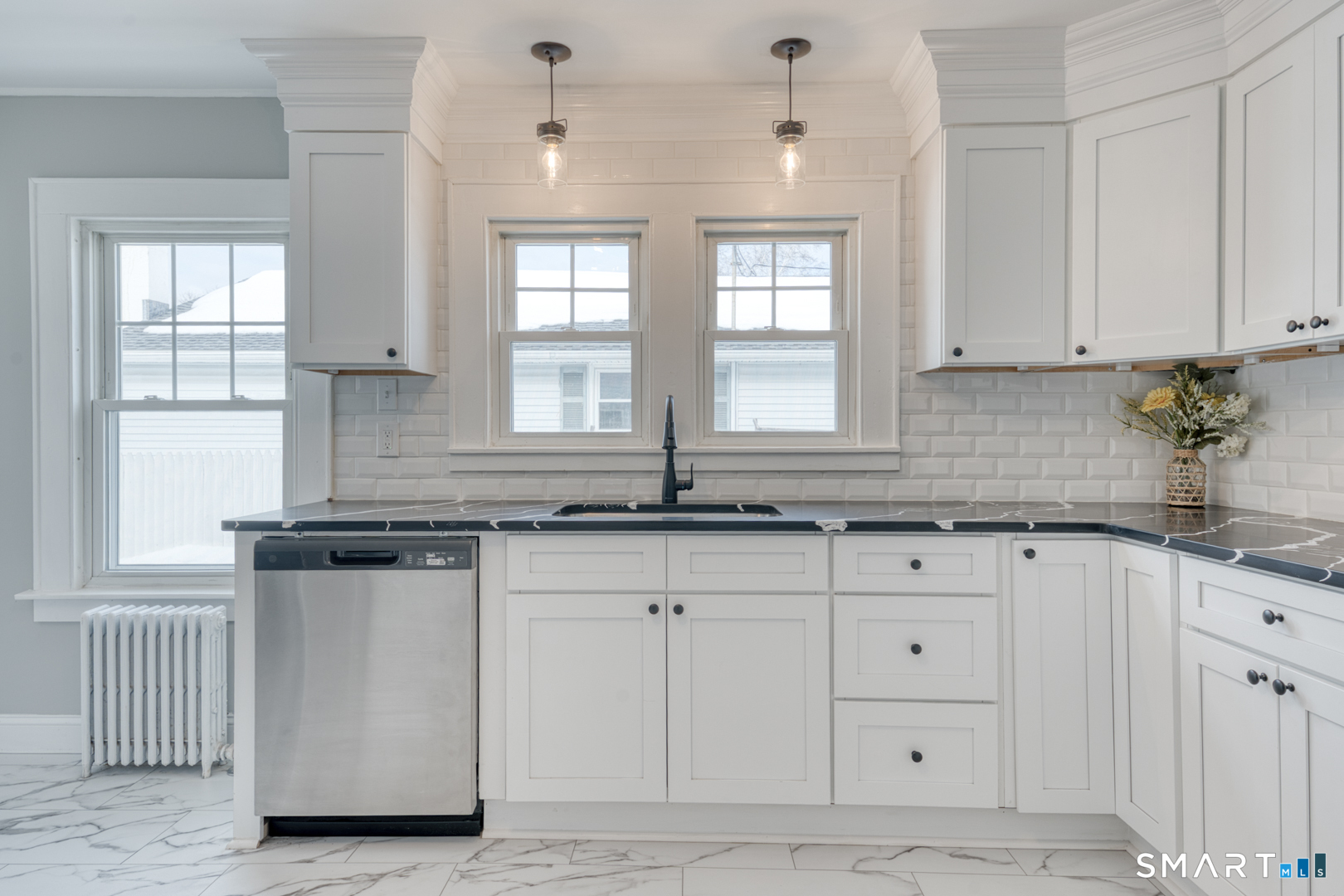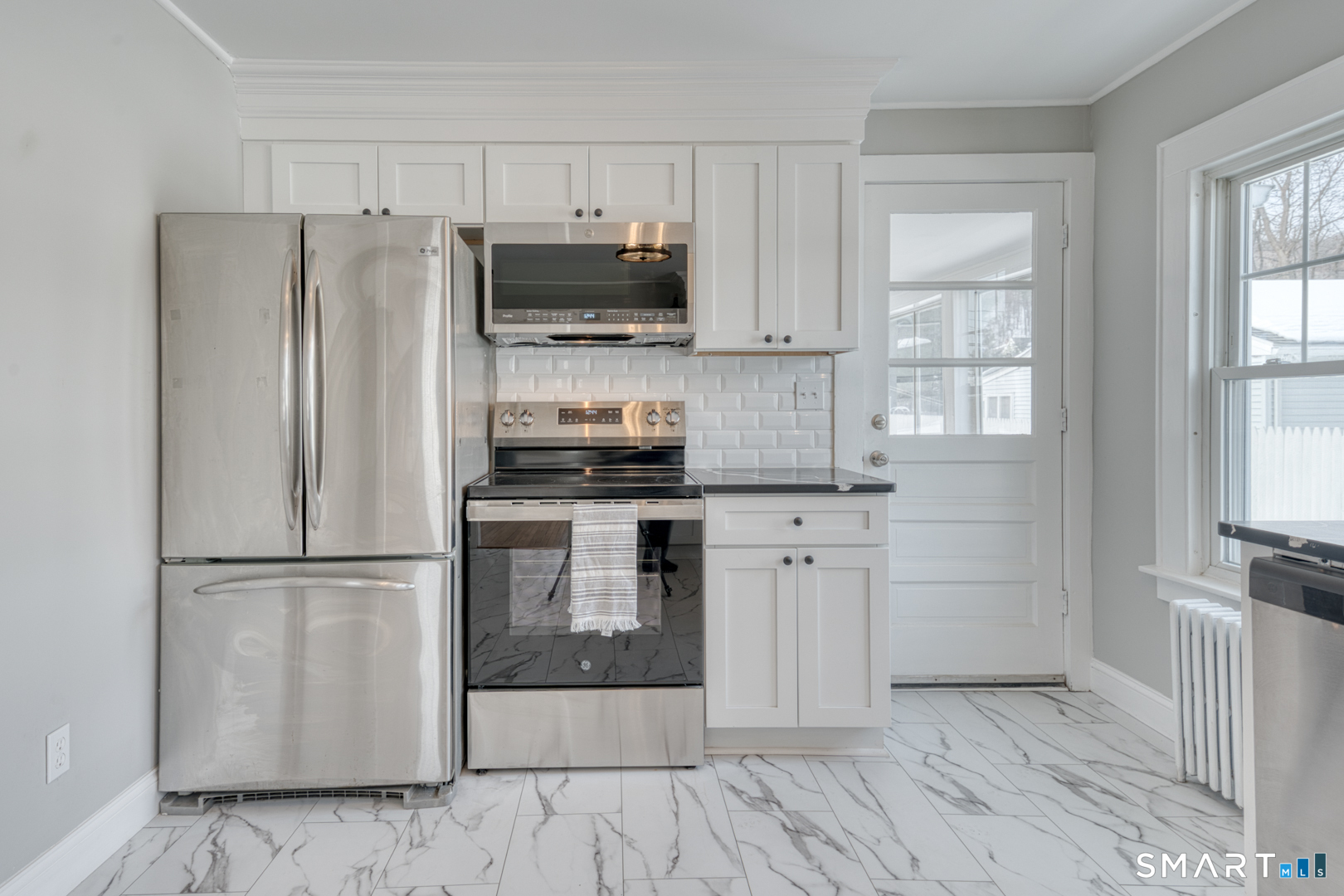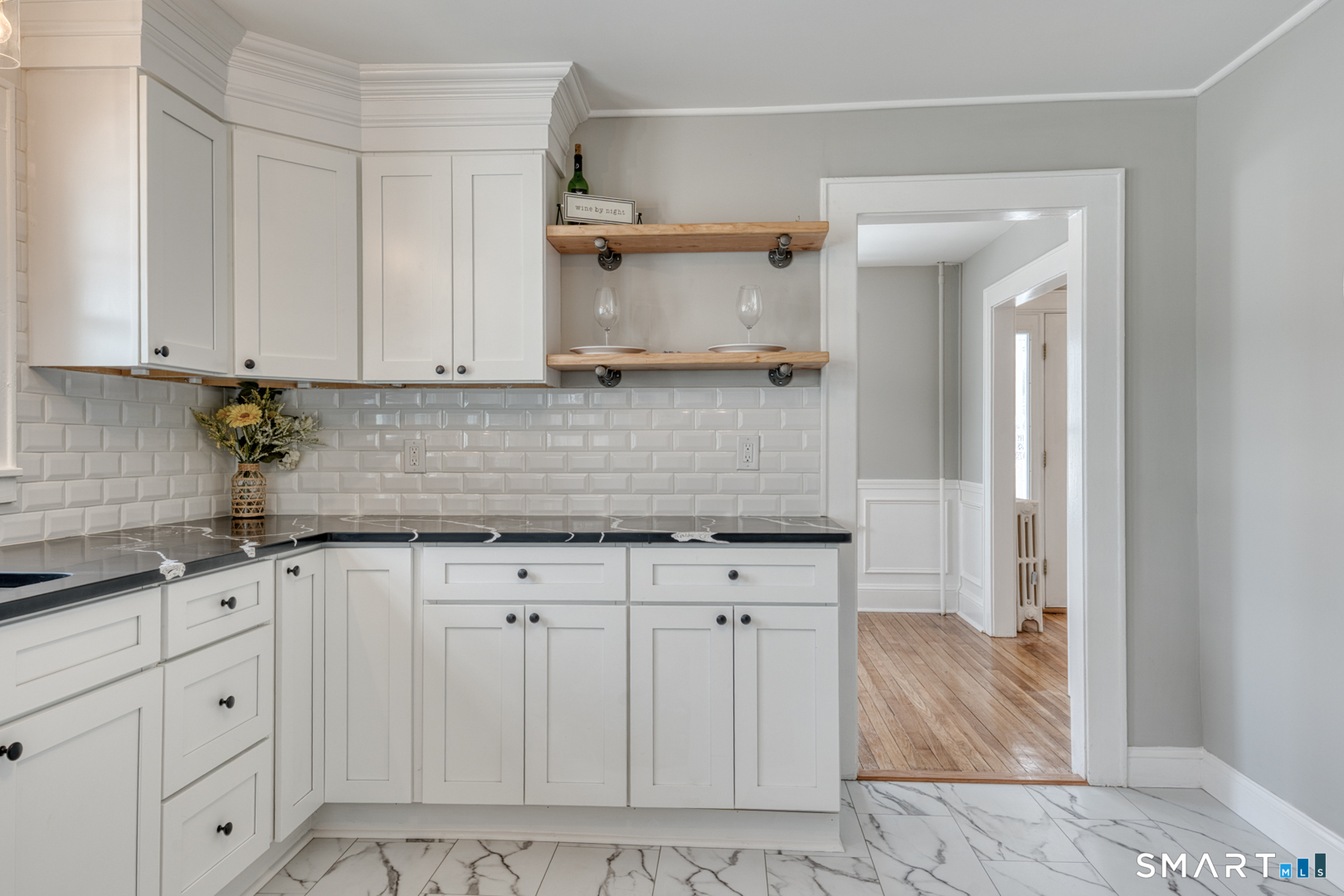 Stunning 4-bed, 2-bath Colonial, fully renovated & spanning 1760 sq ft, w/an additional 350 sq ft in the den. This meticulously updated home blends classic charm w/modern accents and functionality, offering an open-concept main floor that seamlessly connects the light, bright front to back living room which has a wood-burning fireplace & the timeless kitchen design and style, which has sleek cabinetry, granite counter tops, & updated stainless steel appliances-perfect for entertaining. Upstairs, the large Primary bedroom features 2 closets that is accompanied by two well-appointed bedrooms & a beautifully updated bathroom with walk-in shower and custom beadboard walls. Thoughtfully updated with energy-efficient features-including newer windows, newer roof. This move-in-ready home has refinished original wood flooring, gorgeous tiling in the kitchen and baths and beautifully crafted custom built-in shelves that add both character and storage, with fresh paint & a private fenced in back yard. Large basement perfect for expansion located right near shopping centers, restaurants, and parks. this home perfectly balances space, style & modern convenience. Don't miss the opportunity to own this turnkey Colonial gem-schedule today... Easy to show. Text and go!!