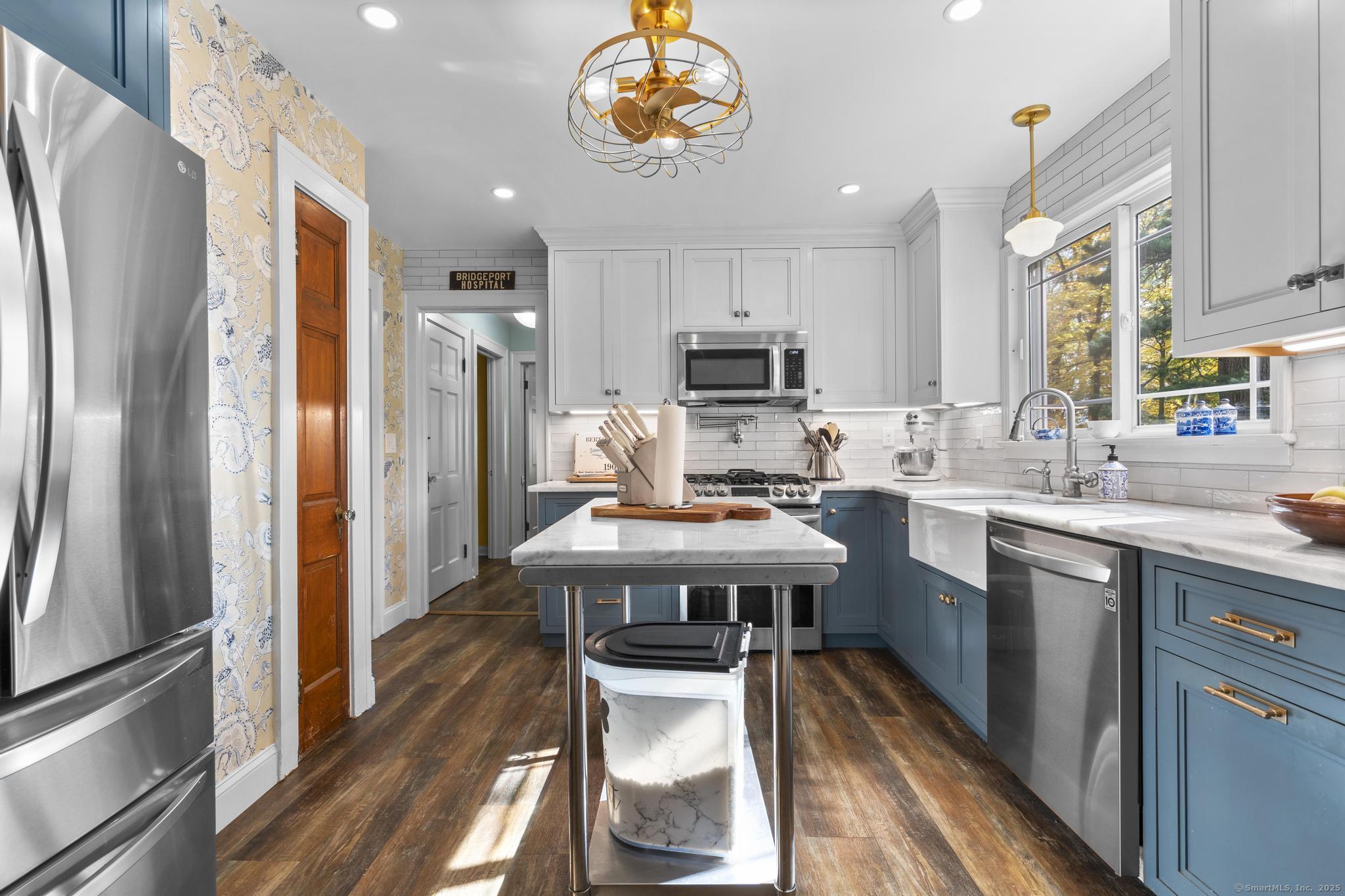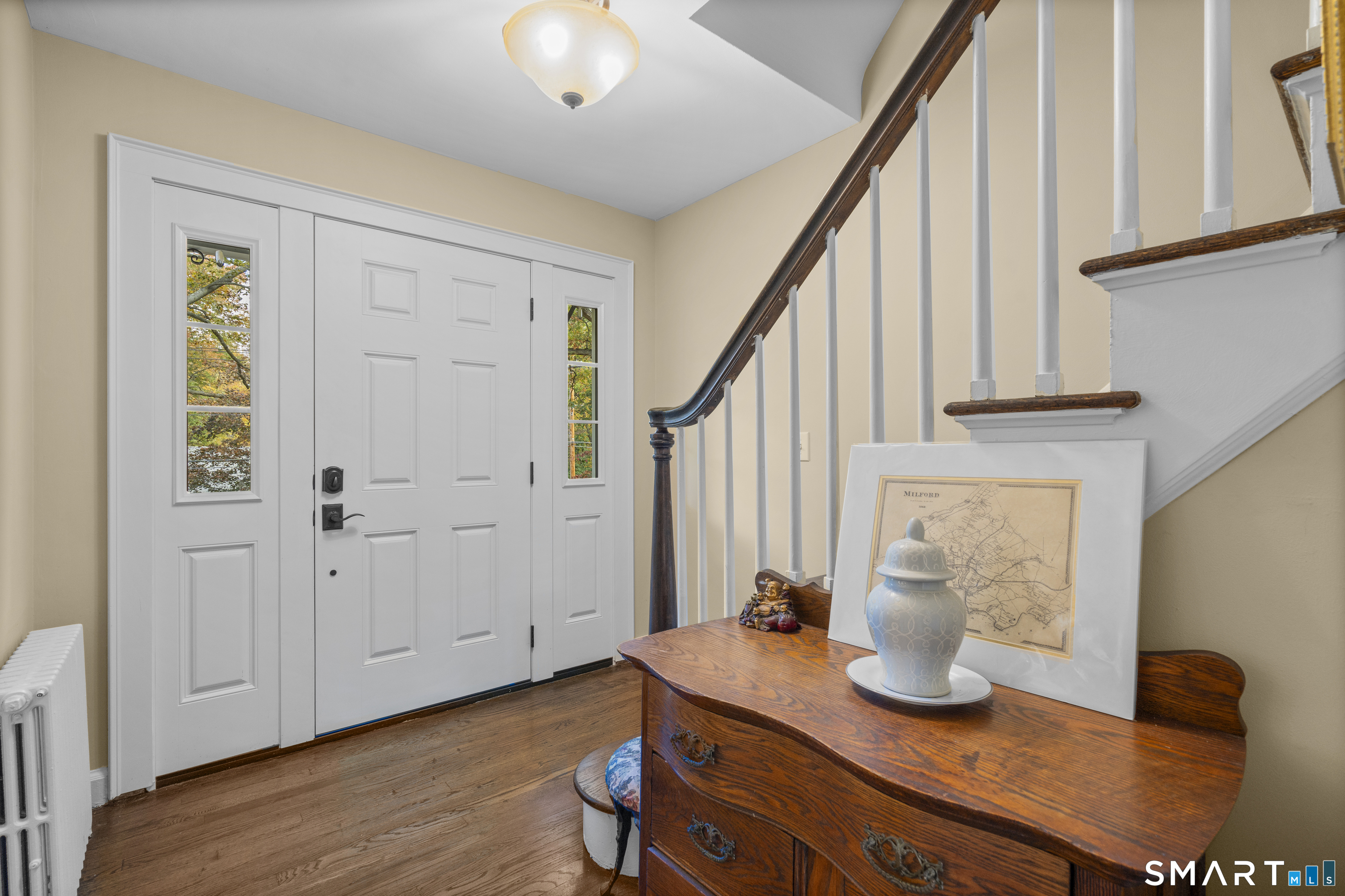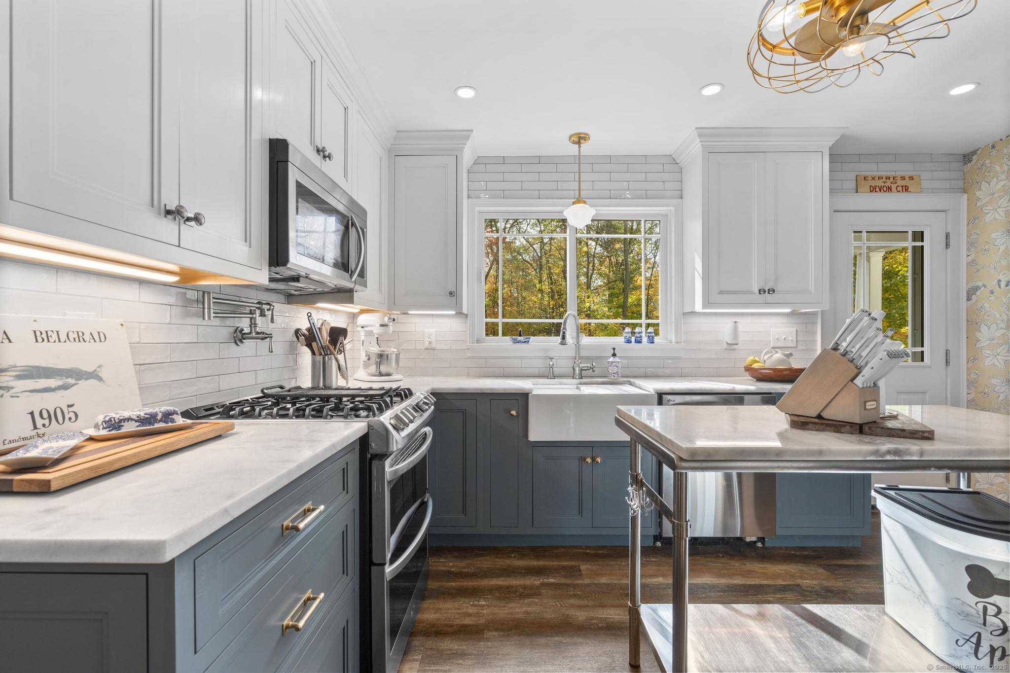 Warm and welcoming, this meticulously cared-for home features 4 generously sized bedrooms and 2 full bathrooms, blending comfort, versatility, and modern style. A sun-filled living room with a cozy fireplace opens to a beautifully renovated kitchen appointed with quartzite countertops, stainless steel appliances, and abundant natural light. Two bedrooms on the main level provide flexible space for guests, a home office, or easy first-floor living. Notable recent improvements include a new roof and windows, a completely remodeled first-floor bathroom, and an updated second-floor bath. A bright three-season porch overlooks a private backyard with a patio, ideal for relaxing or entertaining. Conveniently situated just blocks from Orange Avenue Elementary School and the YMCA, and minutes from Downtown Milford Green, the train station, shoreline, shopping, and major highways, this home offers an exceptional blend of accessibility and neighborhood appeal.
