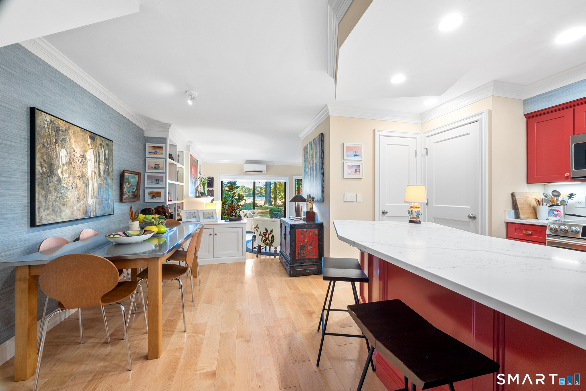 Rarely available three floor townhouse in Heritage Cove in Essex, CT. This renovated and updated unit is perfectly sited directly on North Cove. Features include custom built-ins, a well appointed kitchen with quartz countertops and island. Three bedrooms and 2 and one half baths. The sliding glass doors in the living room lead to an inviting patio with direct cove views. The master bedroom has a balcony overlooking the cove - perfect for your morning coffee. After breakfast you can stroll into Essex Village, take a dip in the pool or go out onto North Cove in your canoe or kayak. There is also a Storage Unit in the basement of each building. Essex is located equal distance between New York and Boston and the complex is only 7 miles away from the Amtrak station in Old Saybrook. Don't miss this turnkey property whether it is for year round use or your summer oasis.