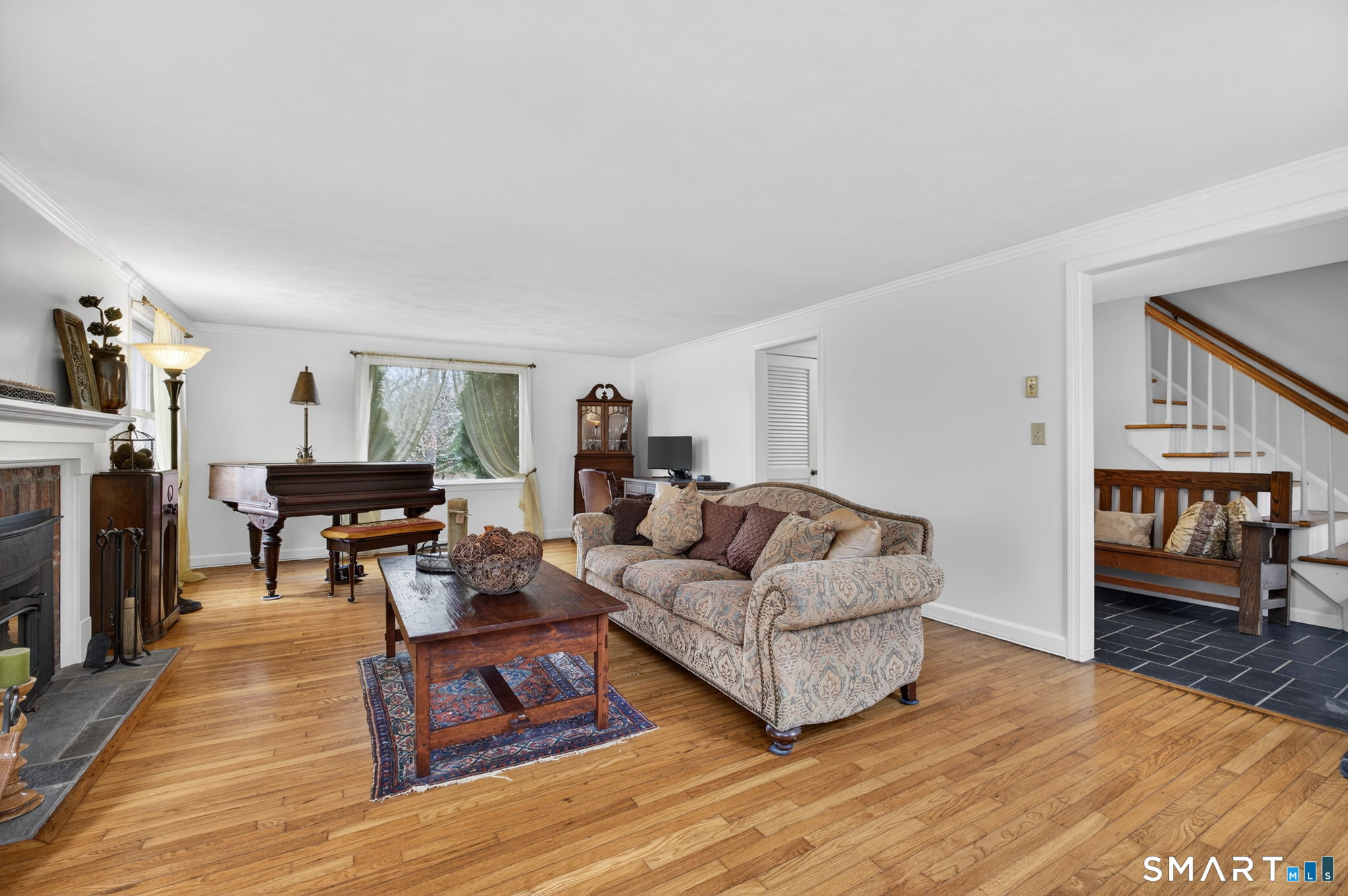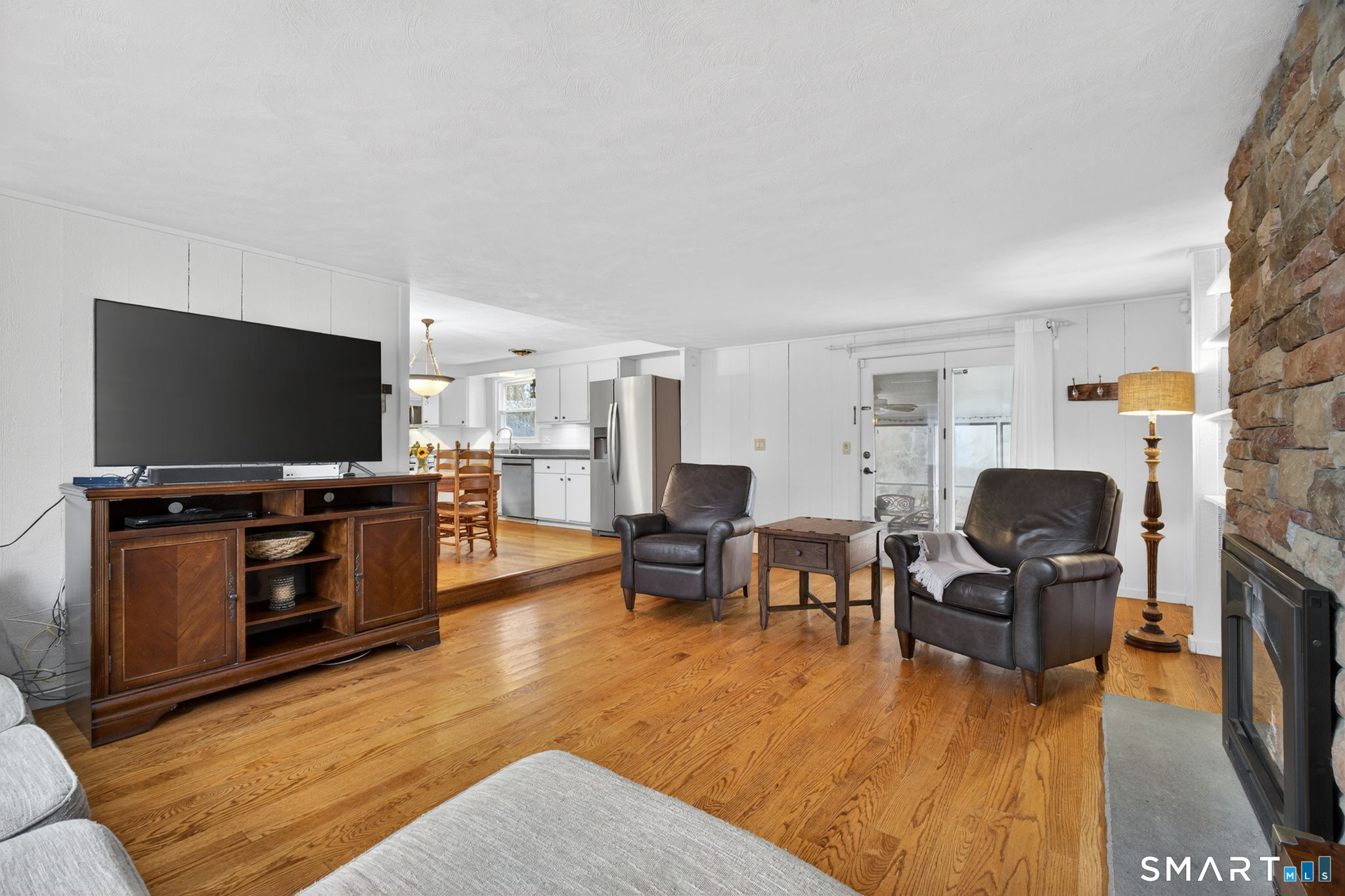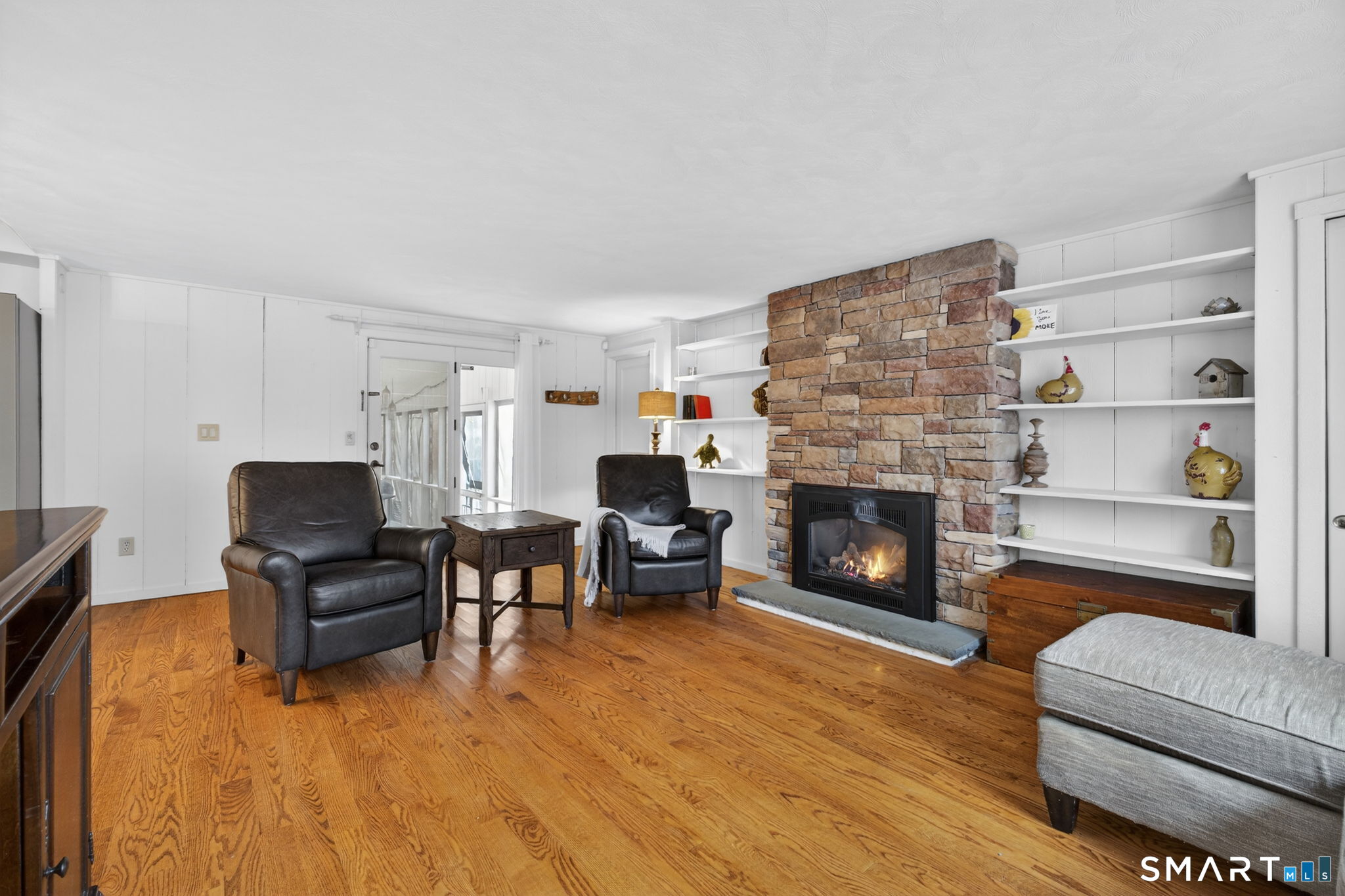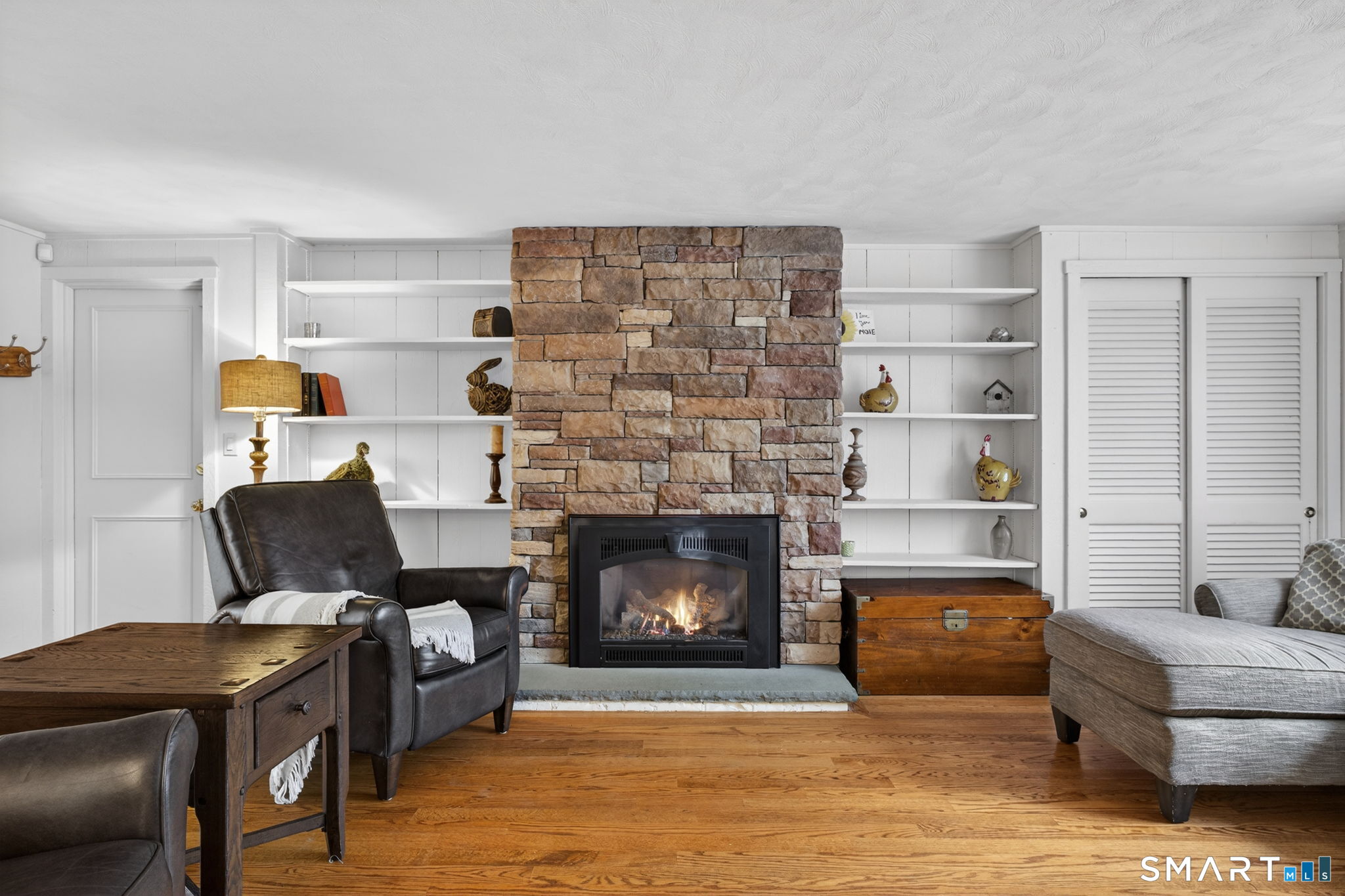 Set on a generous, professionally landscaped lot in one of Old Saybrook's most desirable locations, this inviting 4-bedroom, 2.1-bath home offers the perfect blend of comfort, charm, and versatility-both inside and out. From the moment you arrive, the property impresses with its stunning stonework, lush grounds, and a large, oversized barn/shed-ideal for hobbyists, storage, or creative pursuits. Step inside to find warm hardwood floors throughout and a thoughtfully designed layout that accommodates both everyday living and entertaining. The spacious living room is anchored by a classic wood-burning fireplace, creating a cozy focal point. The eat-in kitchen offers plenty of space for casual dining, while the formal dining room is perfect for hosting gatherings. A welcoming family room features a second propane fueled fireplace, providing both ambiance and an efficient supplemental heat source during the colder months. Beautiful built-ins and doors that open to a spacious three season screened in porch. A beautifully remodeled half bath with laundry completes the main level. Upstairs, you'll find four well-proportioned bedrooms, each offering comfort and flexibility. The primary has its own bath with a newly tiled shower and there is a full bath to accommodate the other bedrooms. The partially finished lower level expands your living space with a dedicated TV room and two separate office areas-ideal for today's work-from-home lifestyle or additional recreational use.