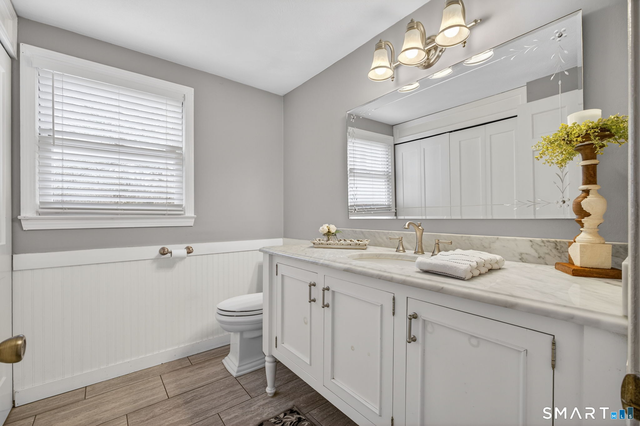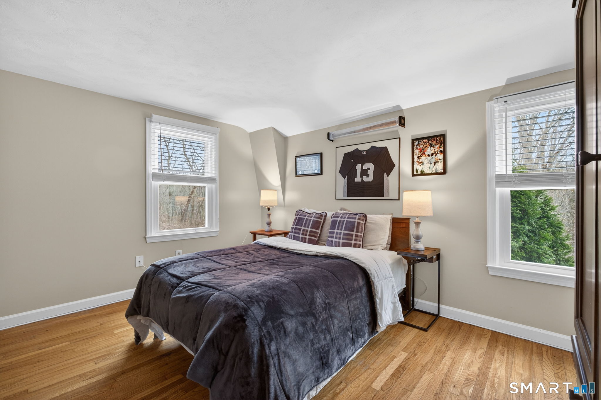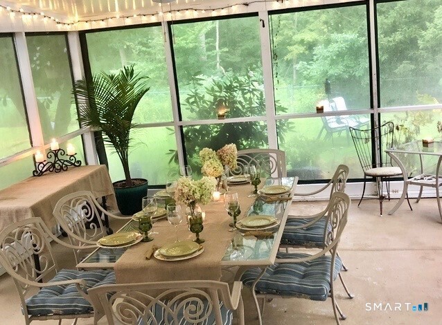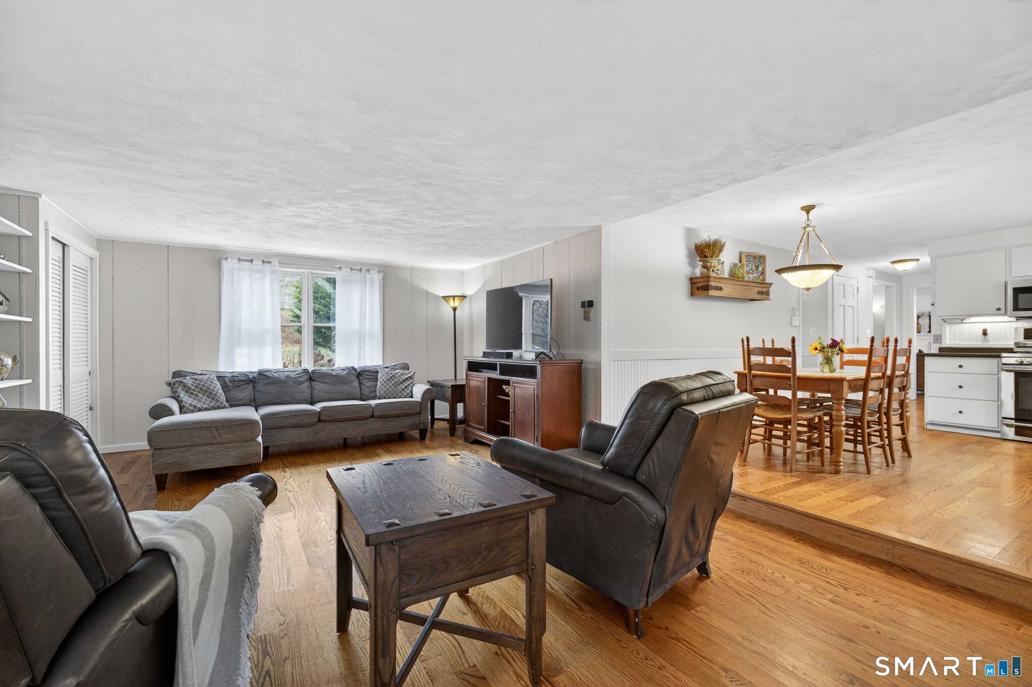 Set on a generous, professionally landscaped lot in one of Old Saybrook's most desirable locations, this inviting 4-bedroom, 2.1-bath home offers the perfect blend of comfort, charm, and versatility-both inside and out. From the moment you arrive, the property impresses with its stunning stonework, lush grounds, and a large, oversized barn/shed-ideal for hobbyists, storage, or creative pursuits. Step inside to find warm hardwood floors throughout and a thoughtfully designed layout that accommodates both everyday living and entertaining. The spacious living room is anchored by a classic wood-burning fireplace, creating a cozy focal point. The eat-in kitchen offers plenty of space for casual dining, while the formal dining room is perfect for hosting gatherings. A welcoming family room features a second propane fueled fireplace, providing both ambiance and an efficient supplemental heat source during the colder months. Beautiful built-ins and doors that open to a spacious three season screened in porch. A beautifully remodeled half bath with laundry completes the main level. Upstairs, you'll find four well-proportioned bedrooms, each offering comfort and flexibility. The primary has its own bath with a newly tiled shower and there is a full bath to accommodate the other bedrooms. The partially finished lower level expands your living space with a dedicated TV room and two separate office areas-ideal for today's work-from-home lifestyle or additional recreational use.