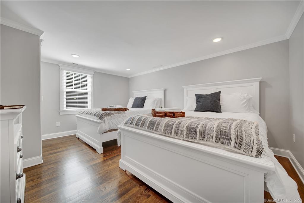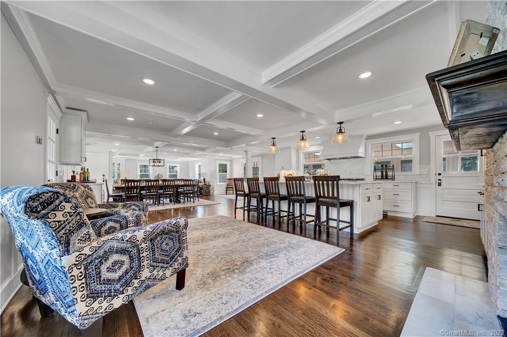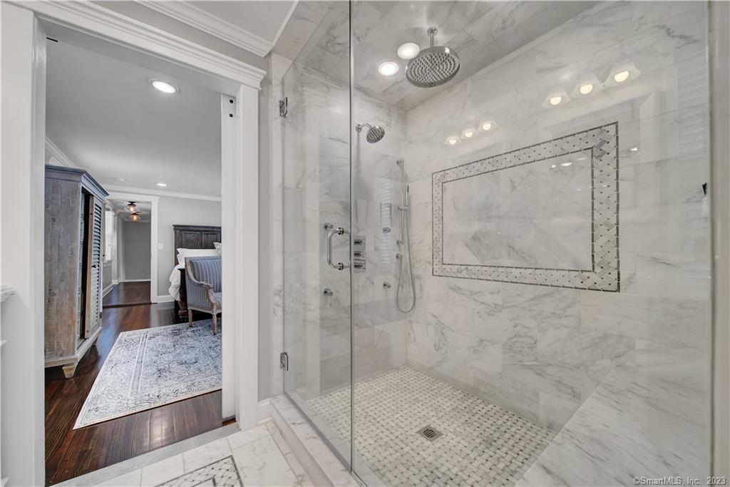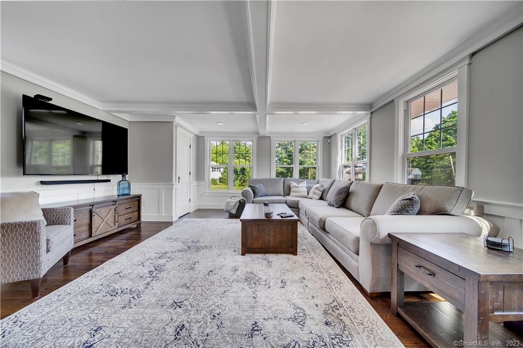 The historic Joel E. Bassett House, originally a one room farmhouse built in 1802, elegantly remodeled in 2018 to meet the demands of modern living. The spacious home is 3,053 sq ft with 4 bedrooms 3.5 baths and is sited on a 1.76 acre corner lot. The expansive great room includes the living room, formal dining room & chef’s kitchen, and has gorgeous dark hardwood floors, coffered ceilings & recessed lighting. The kitchen is a dream come true, with an enormous marble center island, custom cabinets, new high-end stainless steel appliances & Carrara tile backsplash. There is a gas fireplace with white washed brick & space for casual dining at a large kitchen table. The first level also offers a den off the kitchen, a three season sunroom with French Doors & a beautifully remodeled ? bathroom. The second floor includes two primary bedroom suites with gorgeous en suites, spa inspired full bathrooms. There are two additional bedrooms with a private full bath & a 2nd floor laundry room. The heating, central air, windows were all new in 2018 & the septic tank installed in 2023. New 2-car attached garage and an immaculate exterior on a private relaxed setting completes this flawlessly renovated home. Centrally located just a short drive to Yale, Quinnipiac, UNH & Southern & close to shopping & great restaurants. With too many updates to capture, this home is a must see!