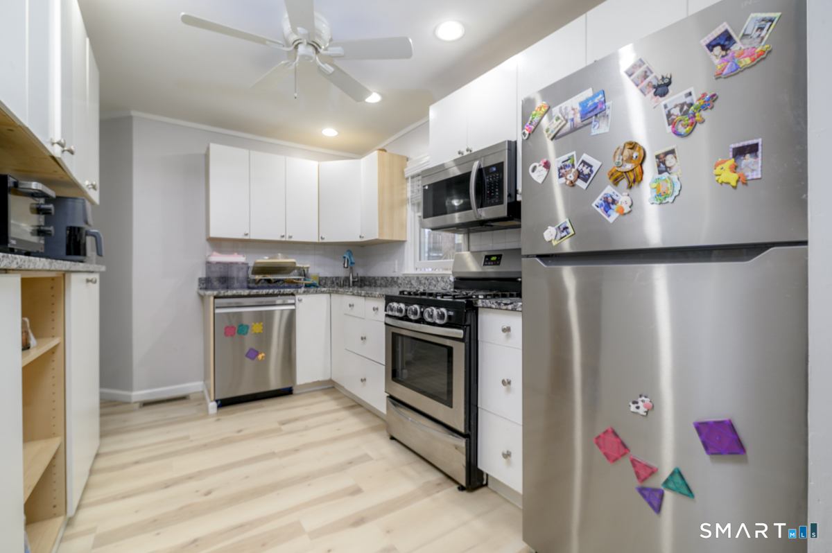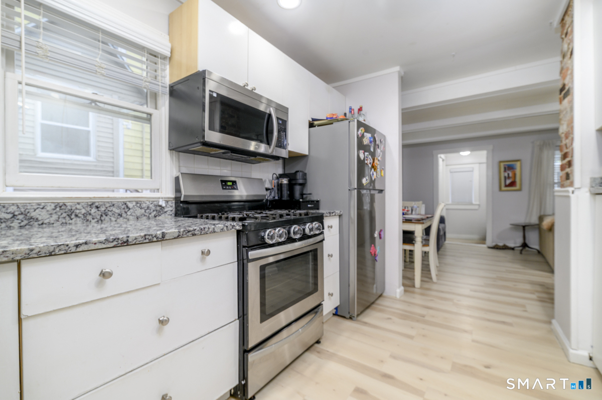Quiet cul-de-sac in the Cove area of Stamford offers a fabulous investment opportunity or option to live in one unit & rent the other. First floor unit has been totally renovated with new kitchen, floors, bath. Light & bright living room offers lots of space as well as area for dining. Currently has tenant in place.Lovely sized bedrooms with plenty of space. Upstairs unit has had same tenant for 21 years, but is willing to sign a lease for $2800. It is in need of updates and is not well maintained at this time by tenants. No showings of 2nd floor apartment unless serious interest at a second visit.Property being sold AS IS