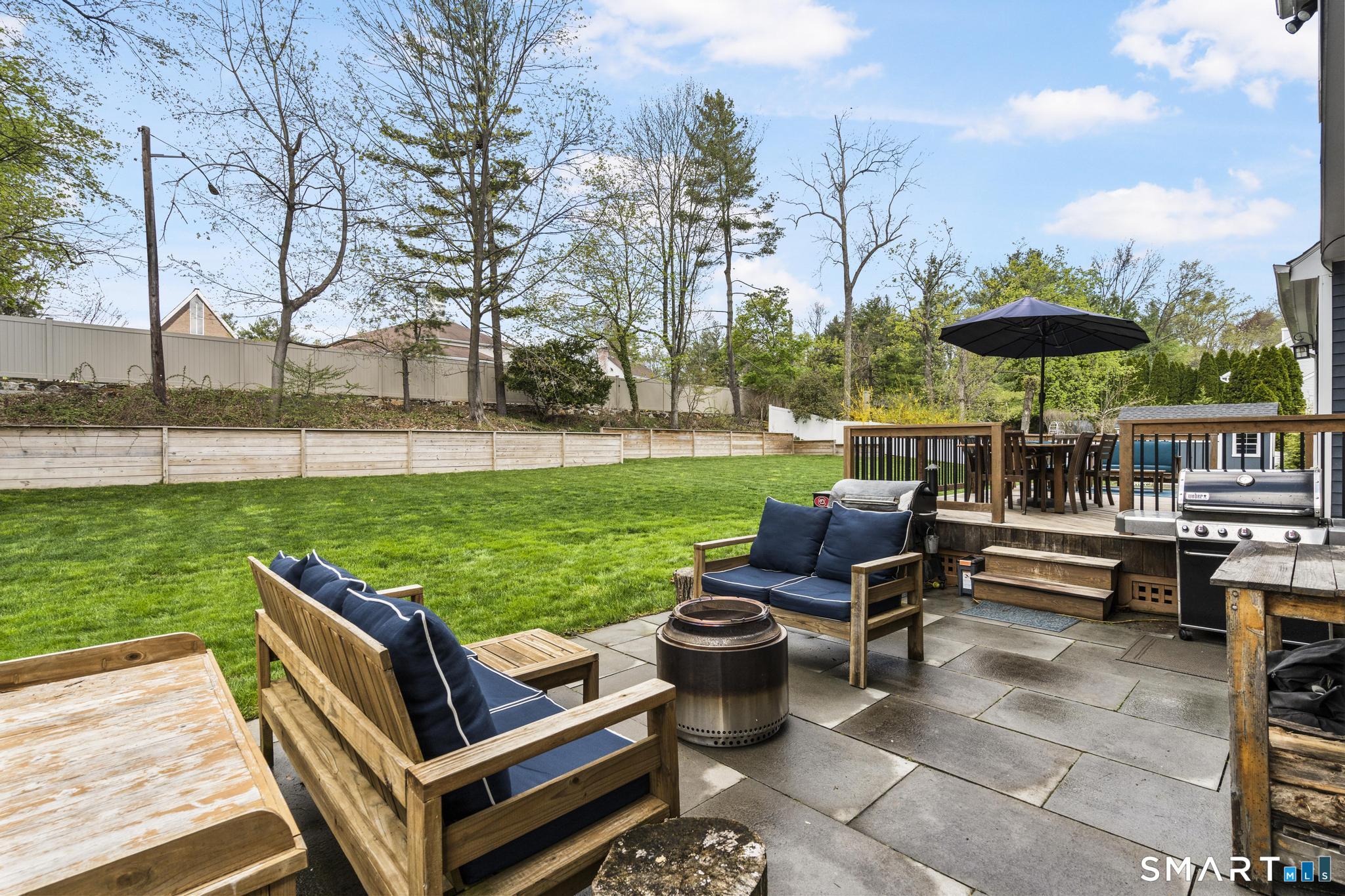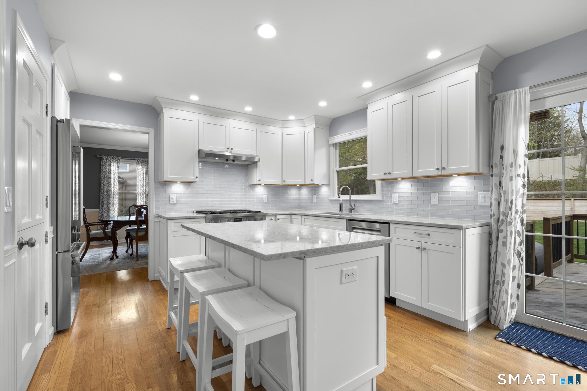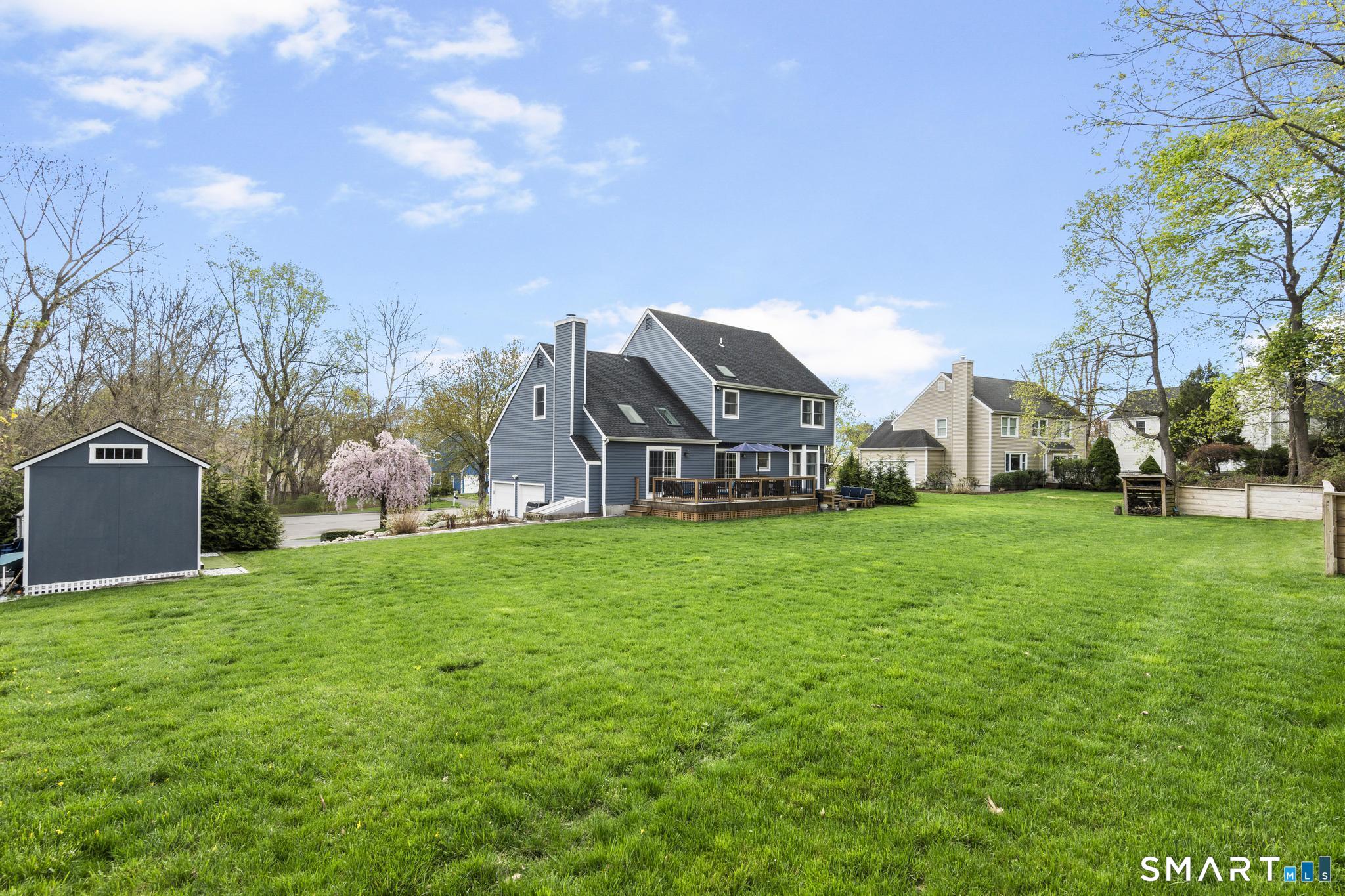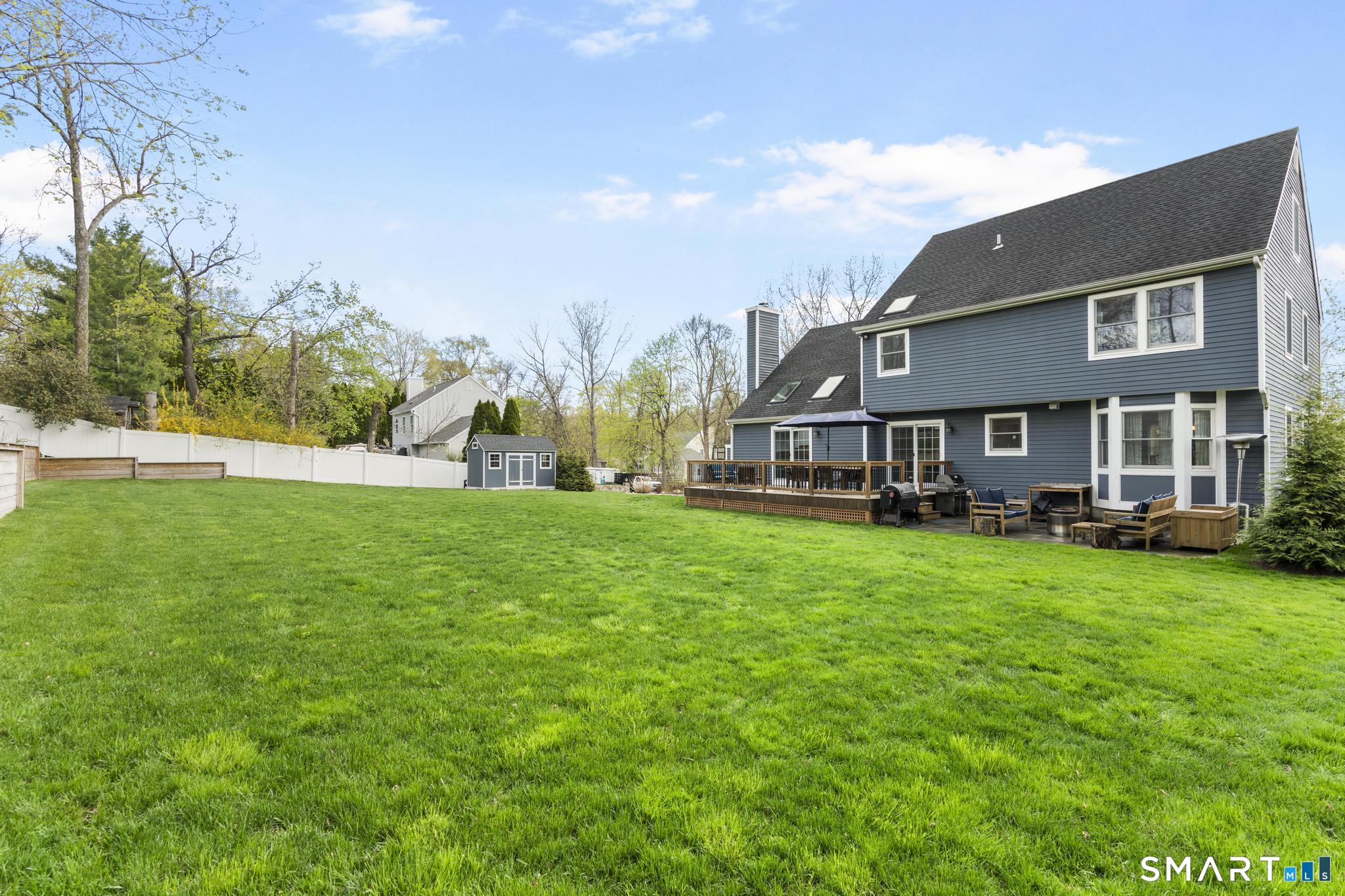 Tucked away on a quiet cul-de-sac in Stamford's highly sought-after Newfield neighborhood, this beautifully updated 4 bedroom, 2.5 bath center hall Colonial offers the perfect blend of elegance, comfort, & everyday functionality. Designed for both modern living & effortless entertaining, the home features a seamless flow with spacious formal living & dining rooms, ideal for gatherings. The stunning, brand new eat in kitchen with stainless steel Bosch appliances & center island opens to a sun drenched family room with vaulted ceilings, skylights, & a wood burning fireplace. A convenient main level laundry room adds to the home's thoughtful layout. Two sets of sliders lead to an oversized IPE deck & bluestone patio, creating an exceptional outdoor setting overlooking the expansive, .46 acre property framed by lush, mature plantings. The luxurious primary suite is a true retreat, complete with vaulted ceilings, custom millwork, heated floors, & a spa inspired bath with dual vanity, soaking tub, & walk in shower. Three additional spacious bedrooms & a beautifully renovated hall bath complete the upper level. A walk up attic offers excellent storage & future expansion potential, while the expansive finished lower level provides incredible flexibility for a playroom, gym, and/or home office. A large two car garage completes the home. Enjoy the convenience of city water, sewer, & gas, all just minutes to shopping, dining, parks, houses of worship, & Metro North for an easy commute.