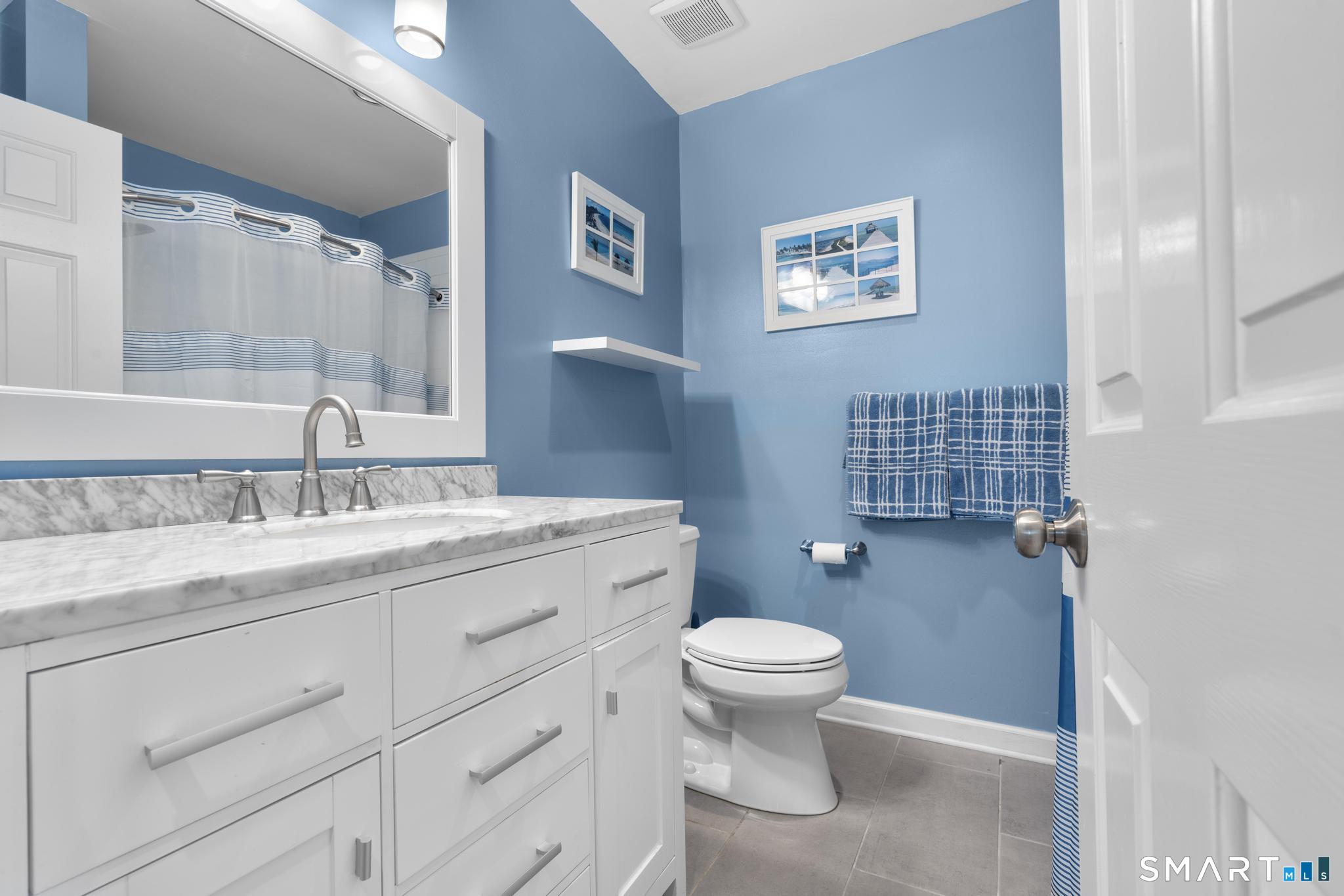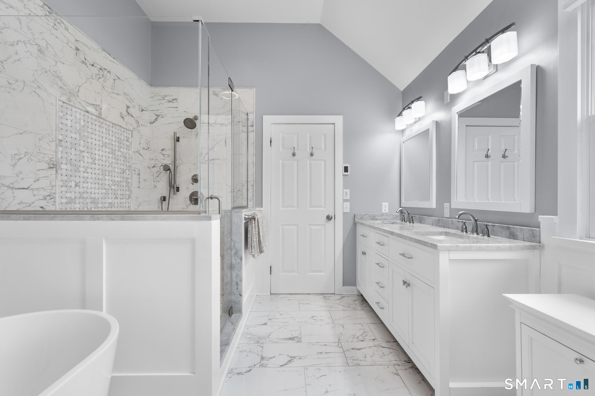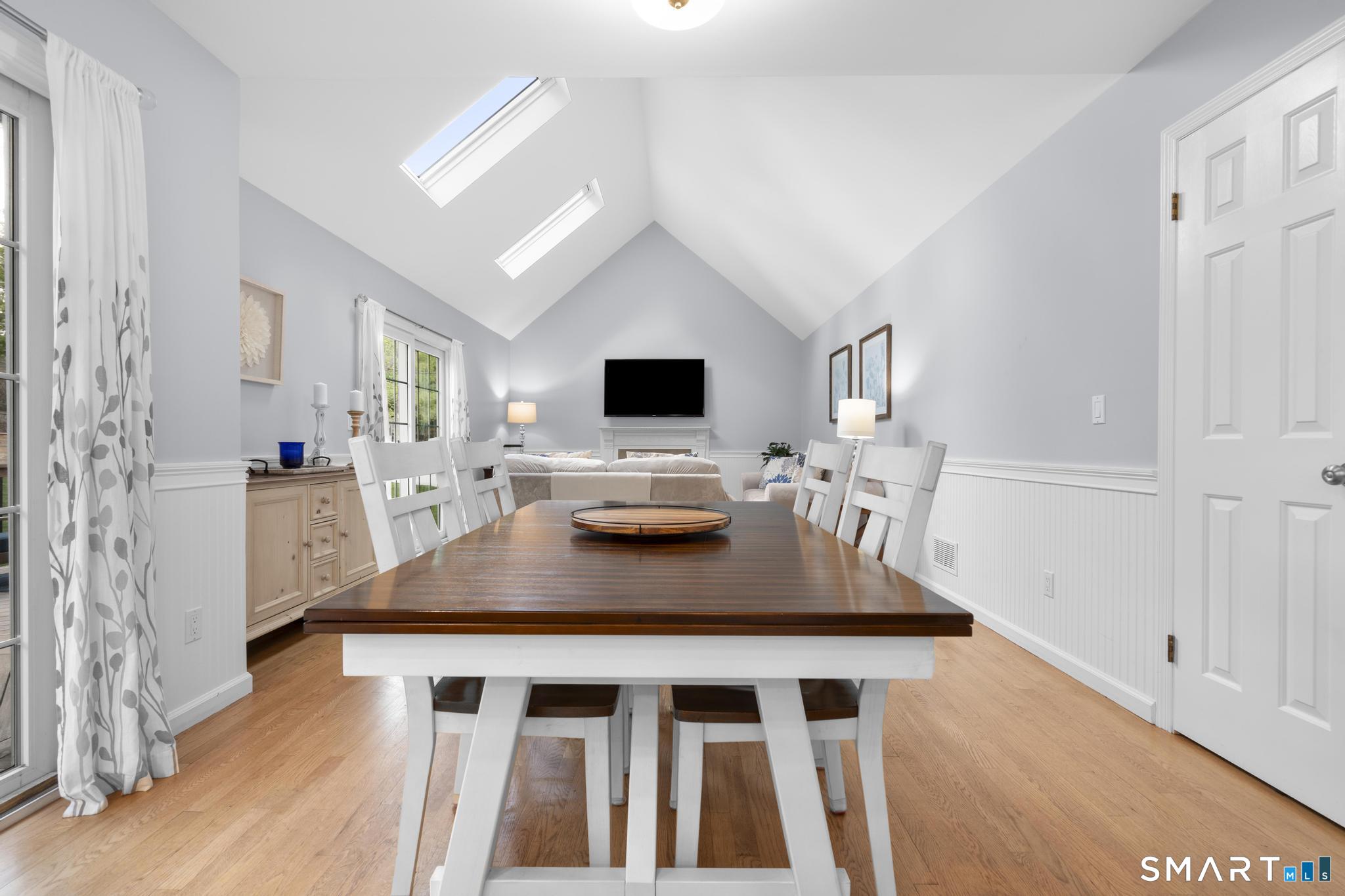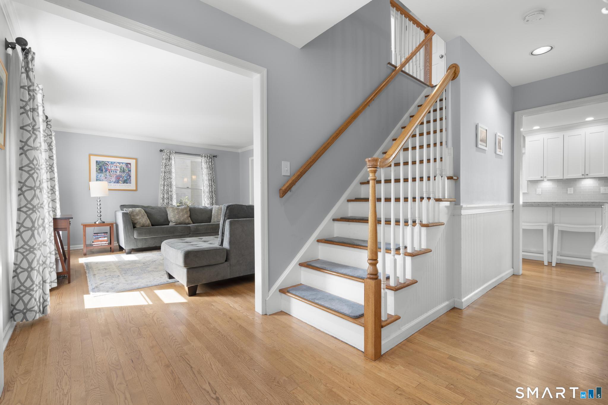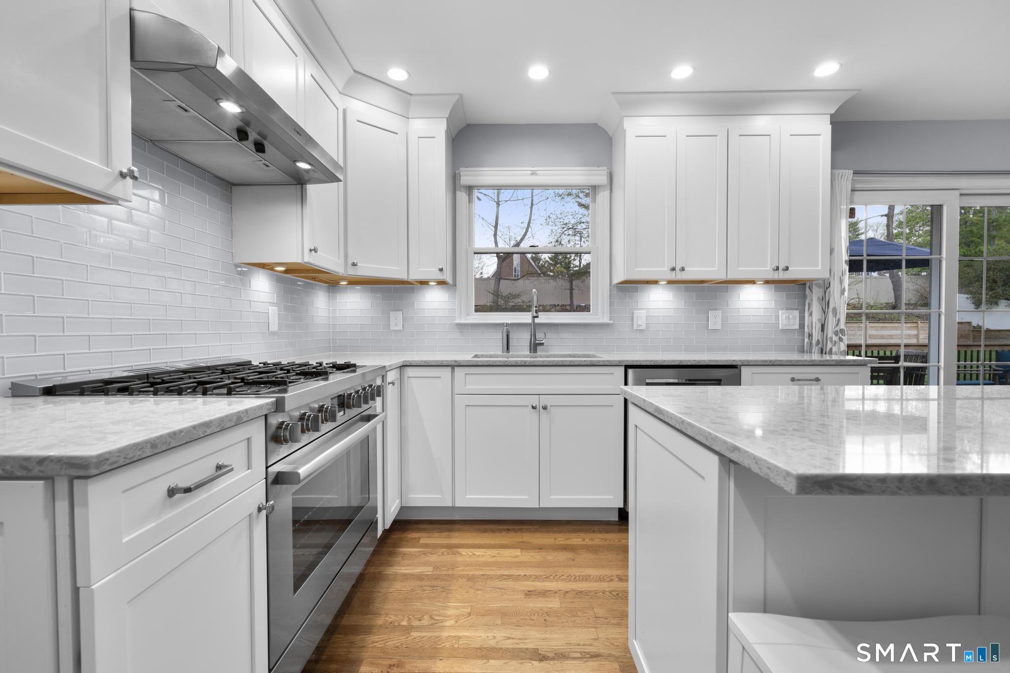 Tucked away on a quiet cul-de-sac in Stamford's highly sought-after Newfield neighborhood, this beautifully updated 4 bedroom, 2.5 bath center hall Colonial offers the perfect blend of elegance, comfort, & everyday functionality. Designed for both modern living & effortless entertaining, the home features a seamless flow with spacious formal living & dining rooms, ideal for gatherings. The stunning, brand new eat in kitchen with stainless steel Bosch appliances & center island opens to a sun drenched family room with vaulted ceilings, skylights, & a wood burning fireplace. A convenient main level laundry room adds to the home's thoughtful layout. Two sets of sliders lead to an oversized IPE deck & bluestone patio, creating an exceptional outdoor setting overlooking the expansive, .46 acre property framed by lush, mature plantings. The luxurious primary suite is a true retreat, complete with vaulted ceilings, custom millwork, heated floors, & a spa inspired bath with dual vanity, soaking tub, & walk in shower. Three additional spacious bedrooms & a beautifully renovated hall bath complete the upper level. A walk up attic offers excellent storage & future expansion potential, while the expansive finished lower level provides incredible flexibility for a playroom, gym, and/or home office. A large two car garage completes the home. Enjoy the convenience of city water, sewer, & gas, all just minutes to shopping, dining, parks, houses of worship, & Metro North for an easy commute.