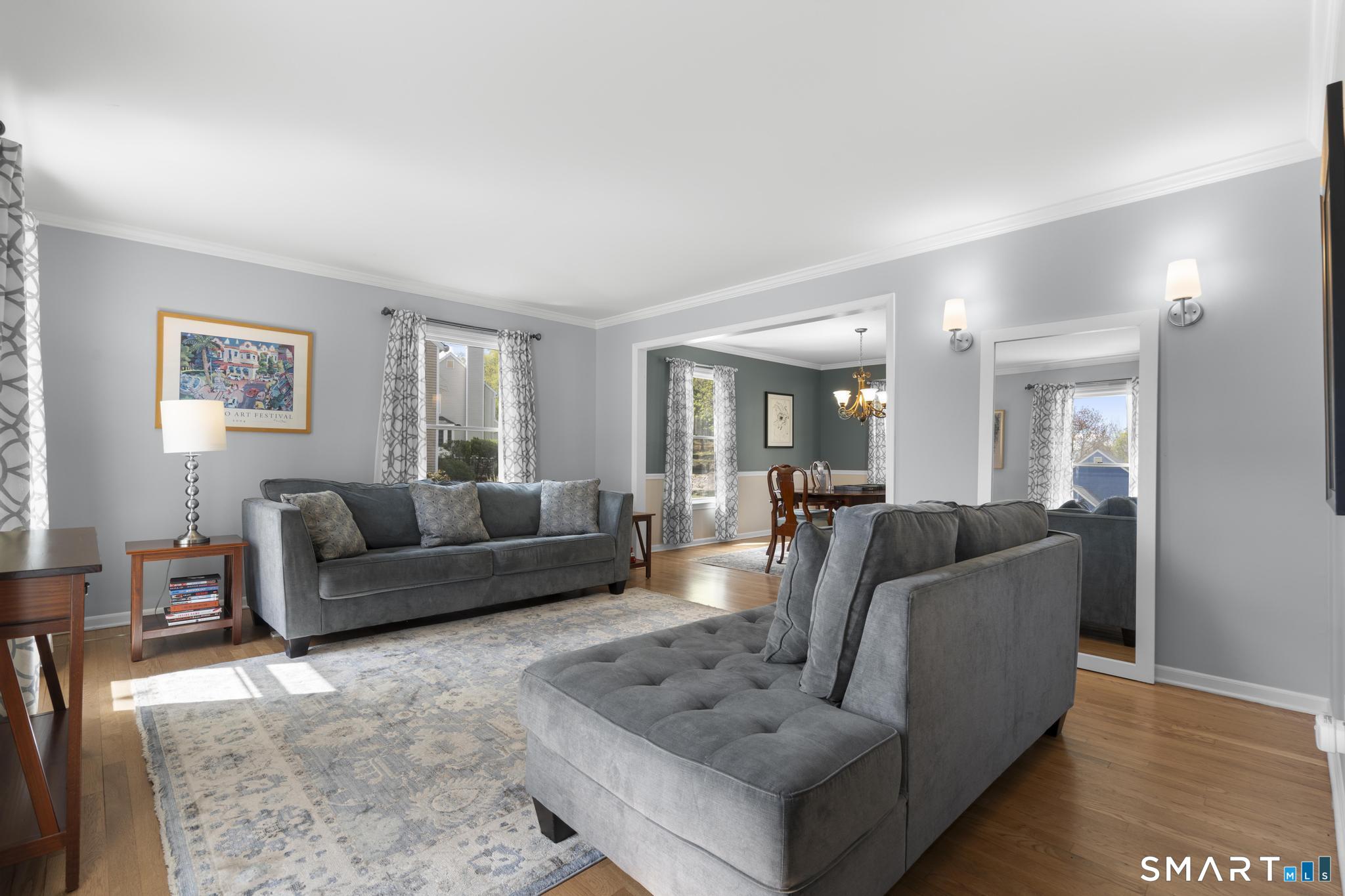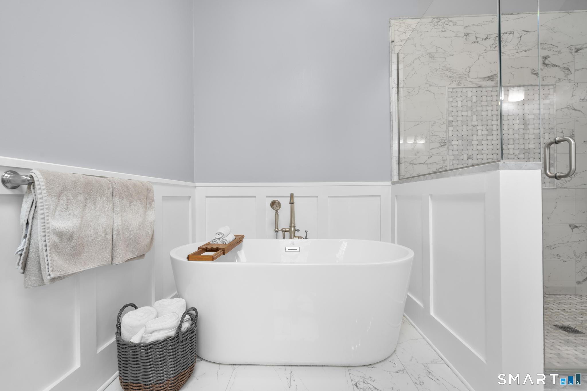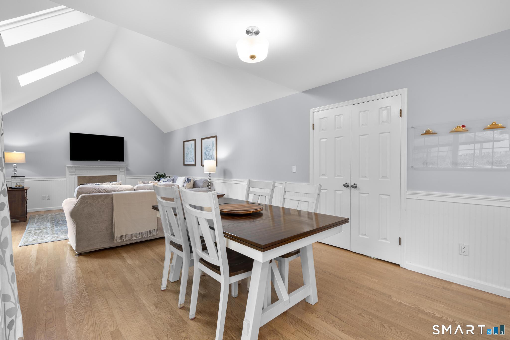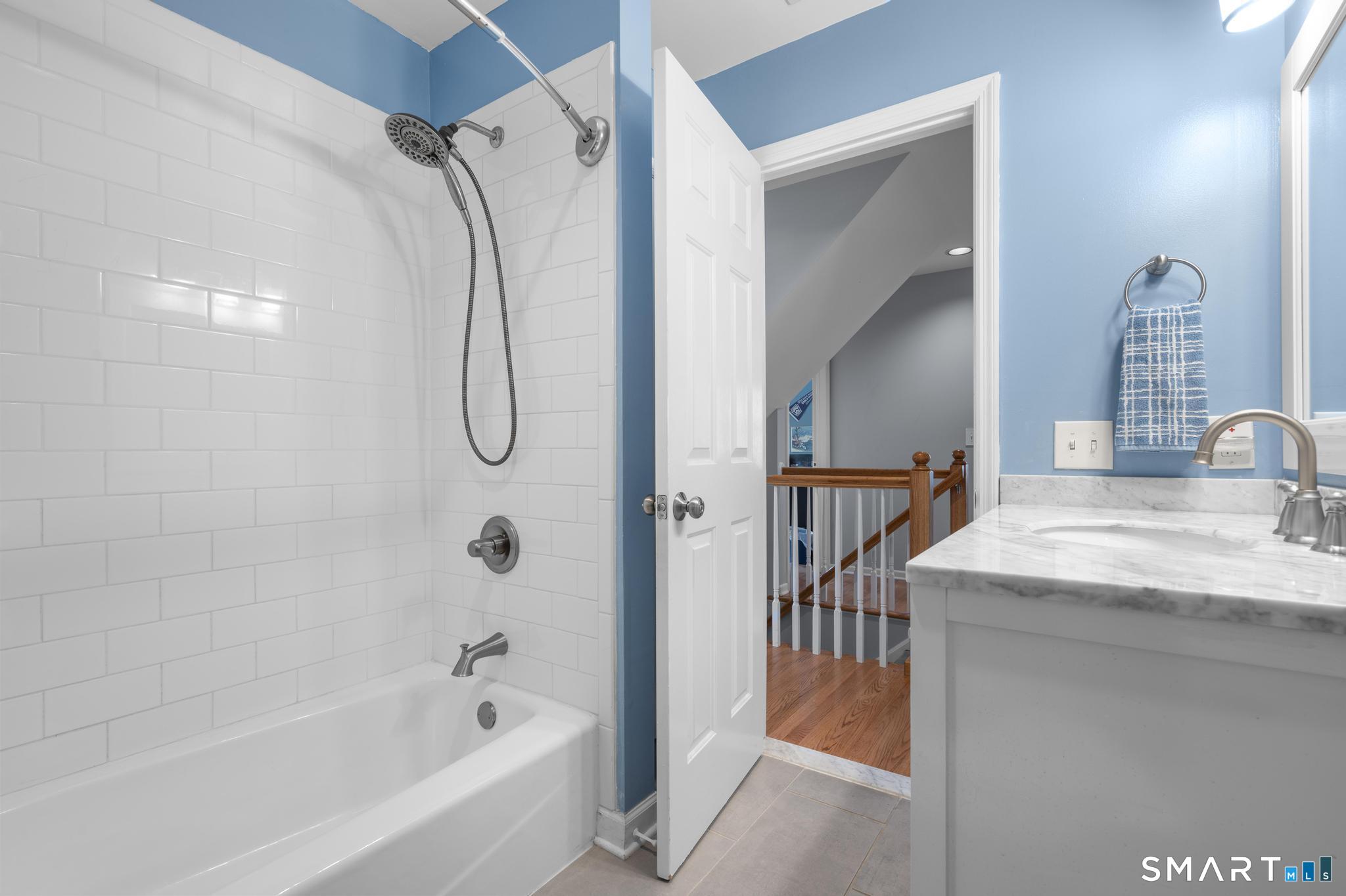 Tucked away on a quiet cul-de-sac in Stamford's highly sought-after Newfield neighborhood, this beautifully updated 4 bedroom, 2.5 bath center hall Colonial offers the perfect blend of elegance, comfort, & everyday functionality. Designed for both modern living & effortless entertaining, the home features a seamless flow with spacious formal living & dining rooms, ideal for gatherings. The stunning, brand new eat in kitchen with stainless steel Bosch appliances & center island opens to a sun drenched family room with vaulted ceilings, skylights, & a wood burning fireplace. A convenient main level laundry room adds to the home's thoughtful layout. Two sets of sliders lead to an oversized IPE deck & bluestone patio, creating an exceptional outdoor setting overlooking the expansive, .46 acre property framed by lush, mature plantings. The luxurious primary suite is a true retreat, complete with vaulted ceilings, custom millwork, heated floors, & a spa inspired bath with dual vanity, soaking tub, & walk in shower. Three additional spacious bedrooms & a beautifully renovated hall bath complete the upper level. A walk up attic offers excellent storage & future expansion potential, while the expansive finished lower level provides incredible flexibility for a playroom, gym, and/or home office. A large two car garage completes the home. Enjoy the convenience of city water, sewer, & gas, all just minutes to shopping, dining, parks, houses of worship, & Metro North for an easy commute.