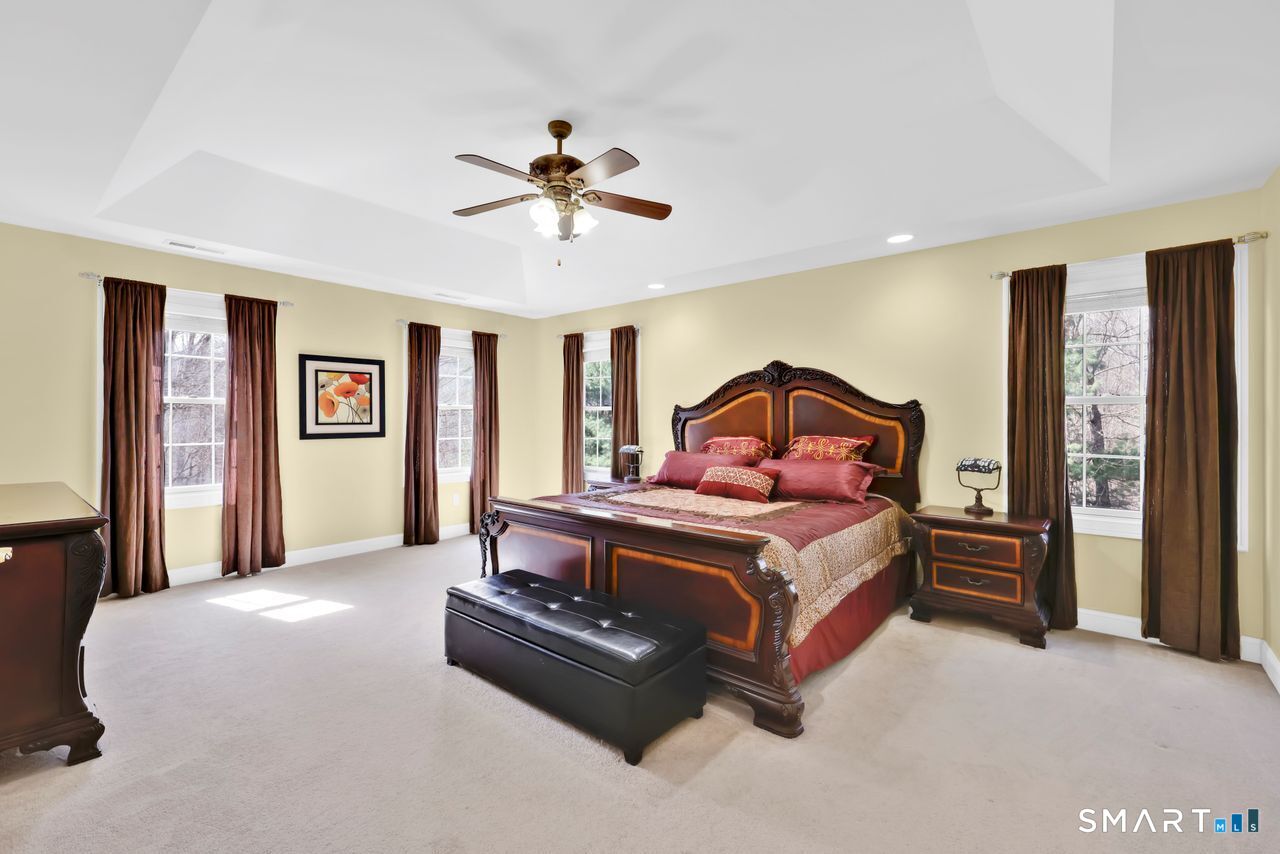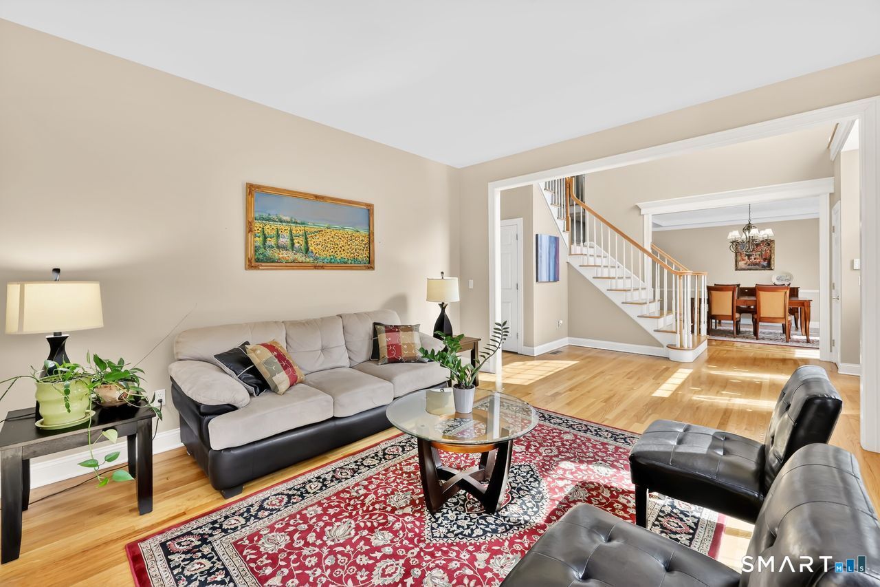 Move-in ready, Charming 2 story foyer colonial w/ 2.68 level acres, on quiet cul-de-sac setting! Bring your boat or kayak! .5 mi from Pond Brook boat launch. This impeccably maintained 5-bedroom, 3.5-bath home, offering the perfect blend of privacy & convenience near town & major highways. The home features an excellent floor plan highlighted by 9 ft ceilings, dramatic split staircase, hardwood floors. Spacious refreshed kitchen with spacious granite counters, center island, plenty of cabinets, double stainless ovens, new cooktop & stainless french door refrigerator. Wet bar perfect for coffee/cocktail area. Eat in Area has sliders to large deck overlooking level private yard. Kitchen flows into family room w fabulous floor-to-ceiling stone fireplace. Convenient work from home dedicated private first-floor office/den. Upstairs, the primary suite is a true retreat with trey ceiling, double walk-in closets, luxurious full bath w separate shower and whirpool tub. The additional four spacious bedrooms offer flexible layouts, including a Jack/Jill setup & an en-suite. Storage is abundant with additional large walk in closets in most bedrooms. 4 linen closets. Full room size second-floor laundry room w sink. Need more space? The unfinished walk-out lower level with sliders & high ceilings is ready for your personal finishing touch. Plenty of room for a pool. This turn key home is complete with a 3-car garage, generator ready, gutter guards, newer driveway