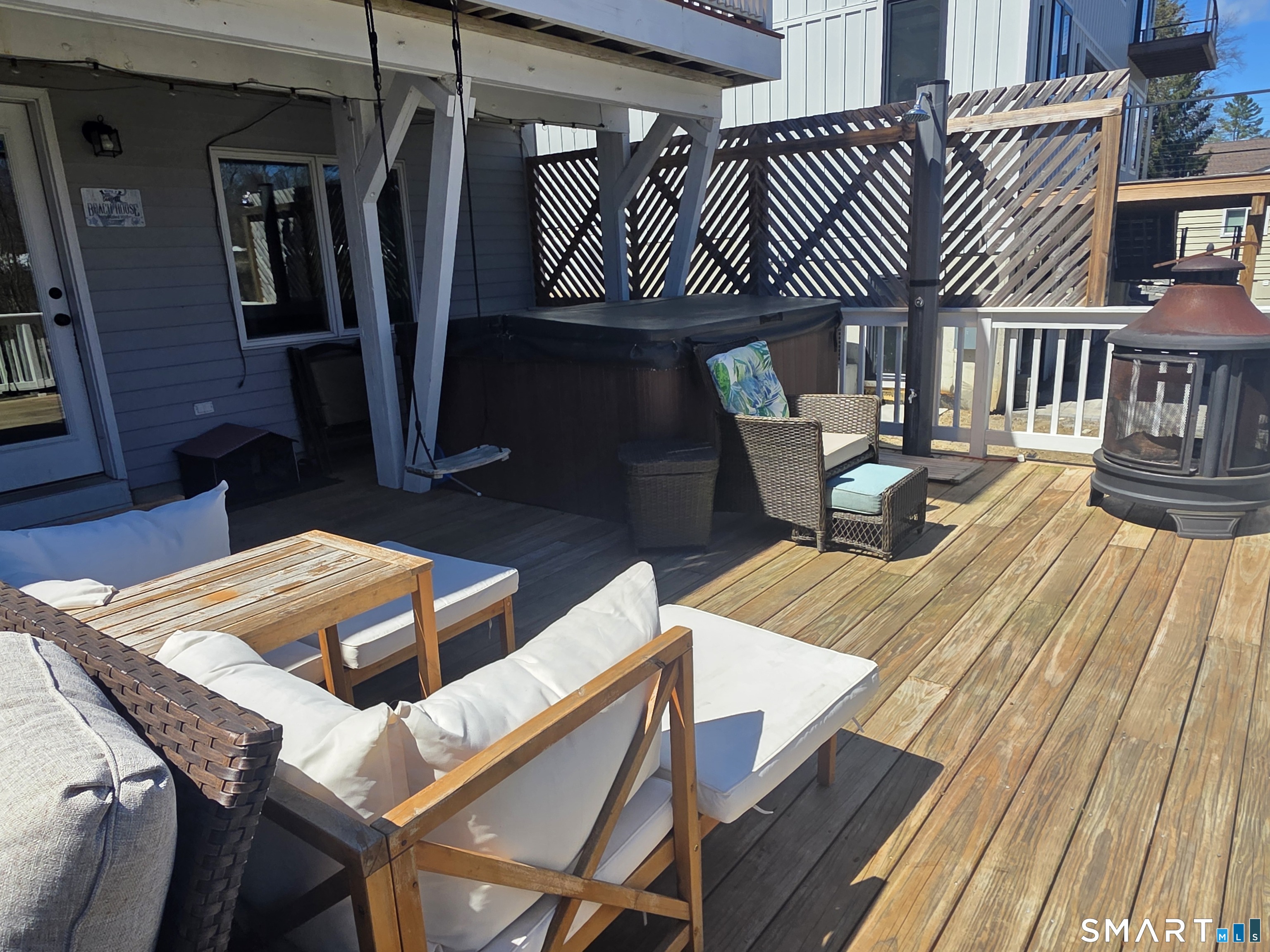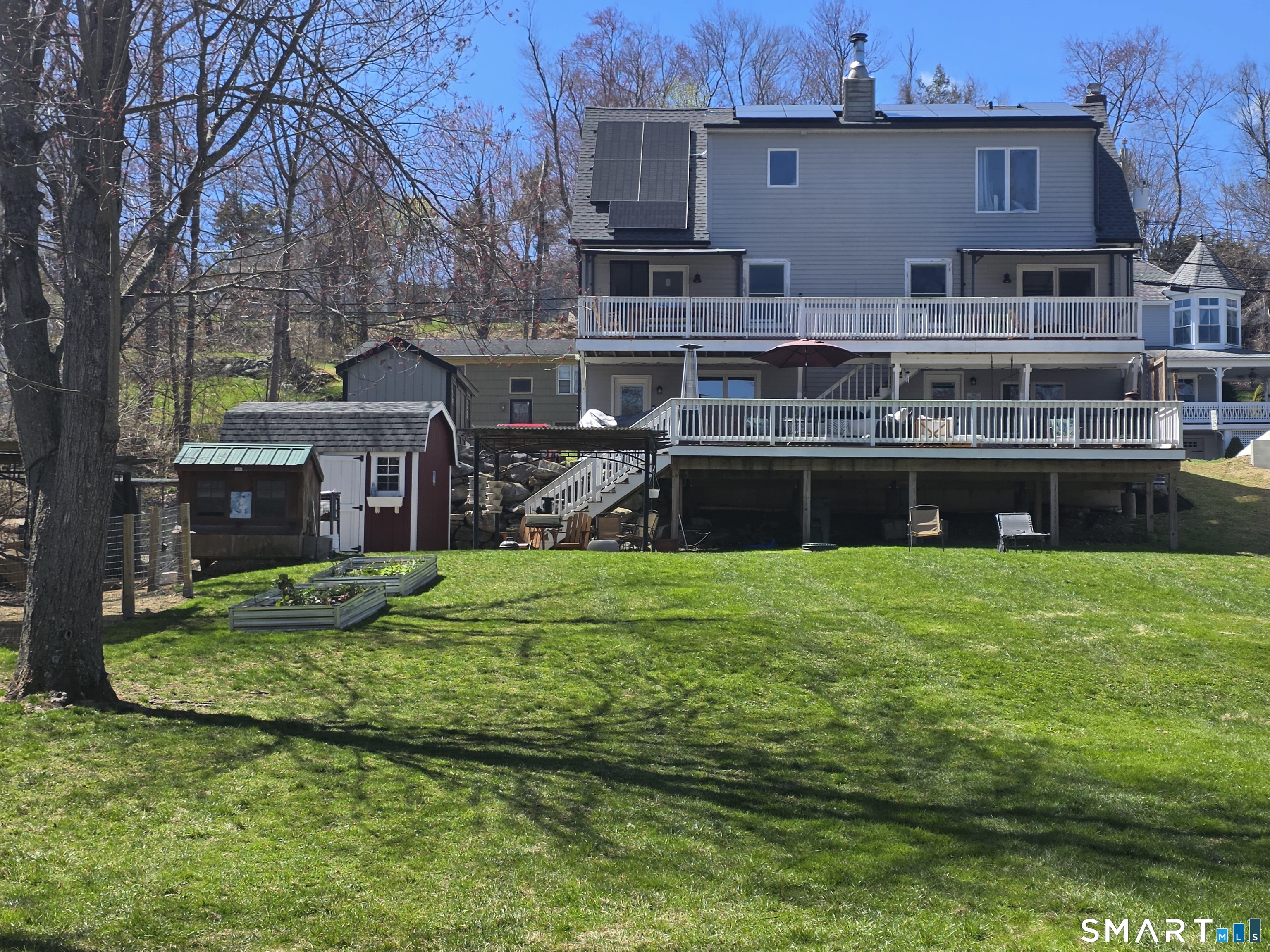 Summer is calling, and your private lakeside retreat is finally within reach. With a SIGNIFICANT PRICE REDUCTION, this is a rare opportunity to own a premier piece of Candlewood Lake waterfront property that offers both expansive space and effortless access. This isn't just a home; it's a lifestyle. Sitting next to association-owned land, your .23-acre lot lives more like a full 2-acres and slopes gently toward your TWO docks, where boat slips and jet ski space are never an issue. From morning paddleboarding to afternoon swims, your new home is perfectly designed for the ultimate lake life. Whether you're hosting summer BBQs and vibrant celebrations or seeking a sprawling play space, this property is designed for making memories. Gardeners will love the ample room to plant to their heart's content, supported by two spacious sheds for all your outdoor gear. For those who prefer to unwind, the 1,000 sq. ft. two-story deck is a true showstopper. Complete with an outdoor fireplace, hot tub, and private shower, it offers multiple lounging areas to sip a cold drink and take in breathtaking sunset views over the water.