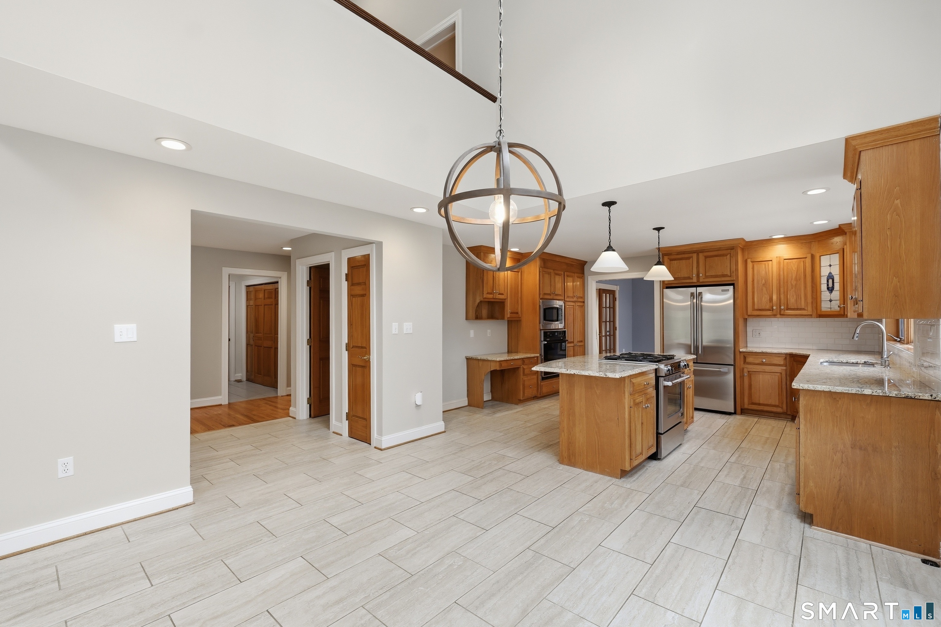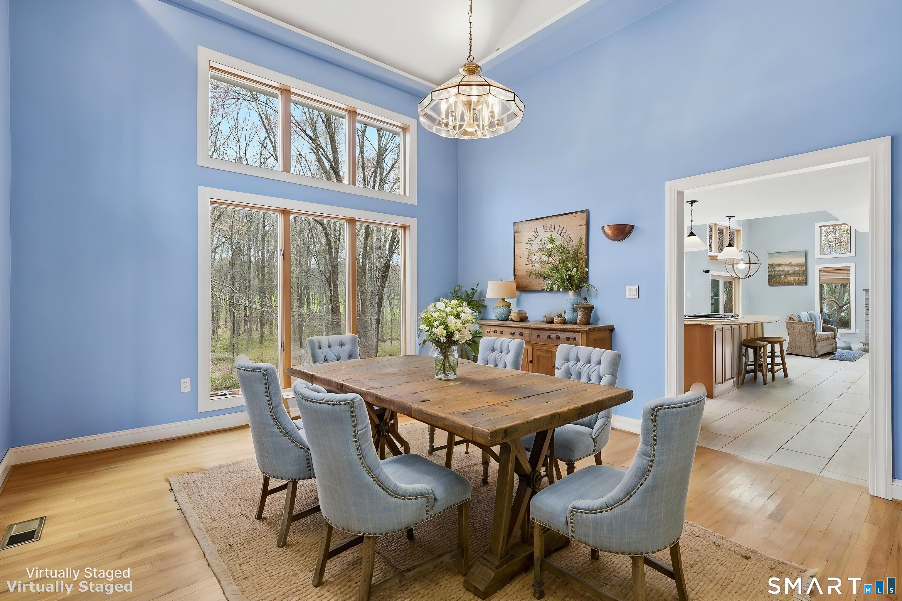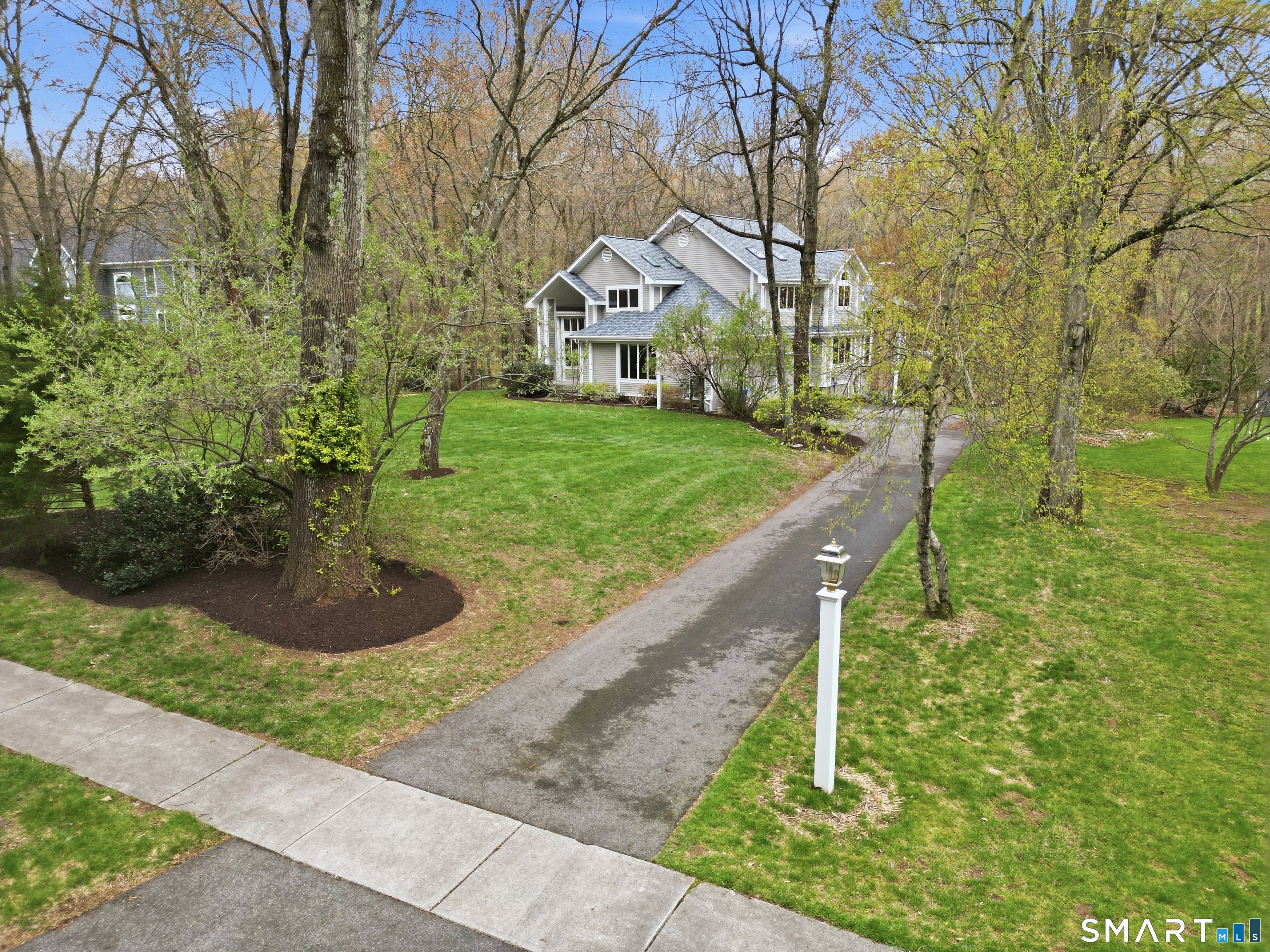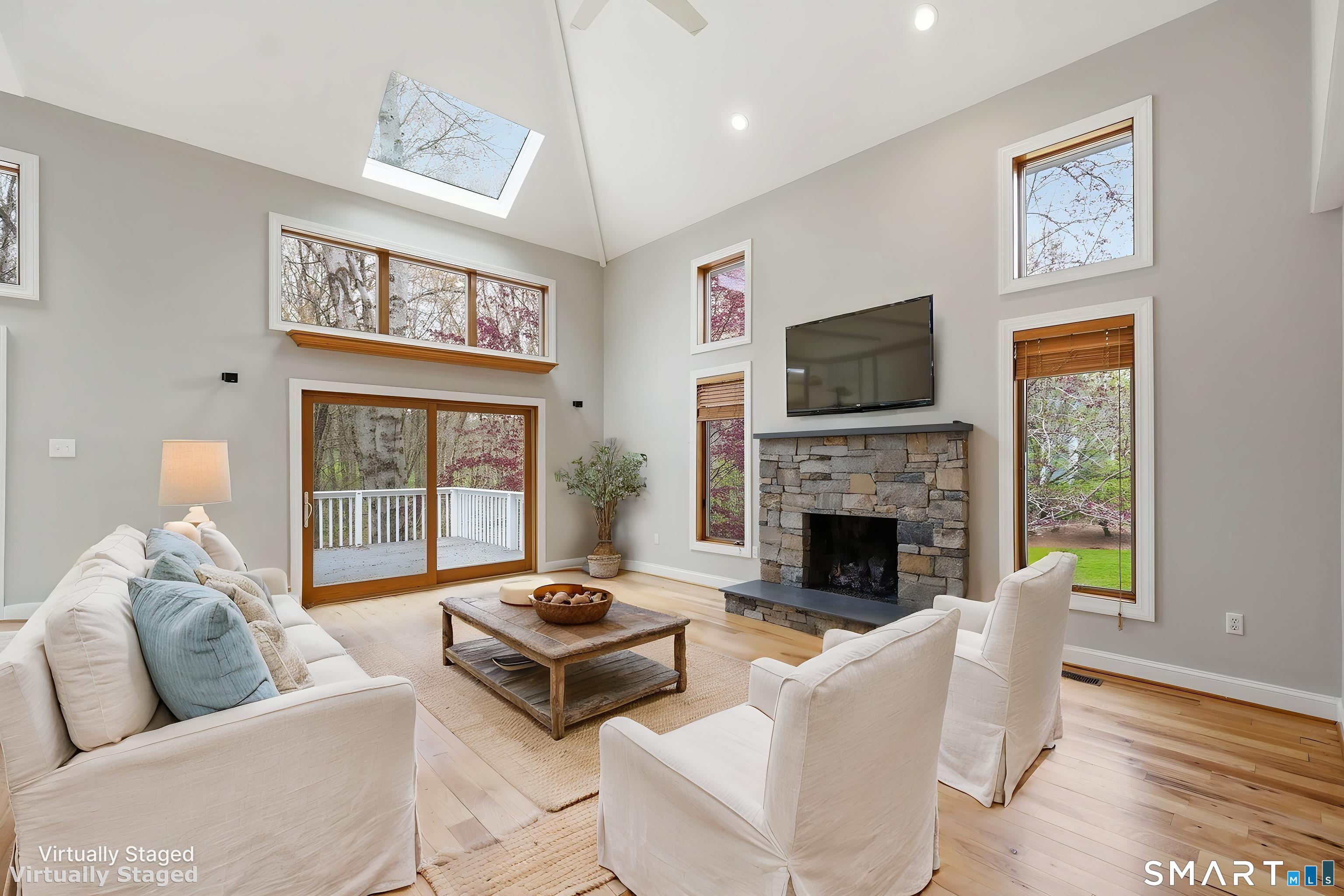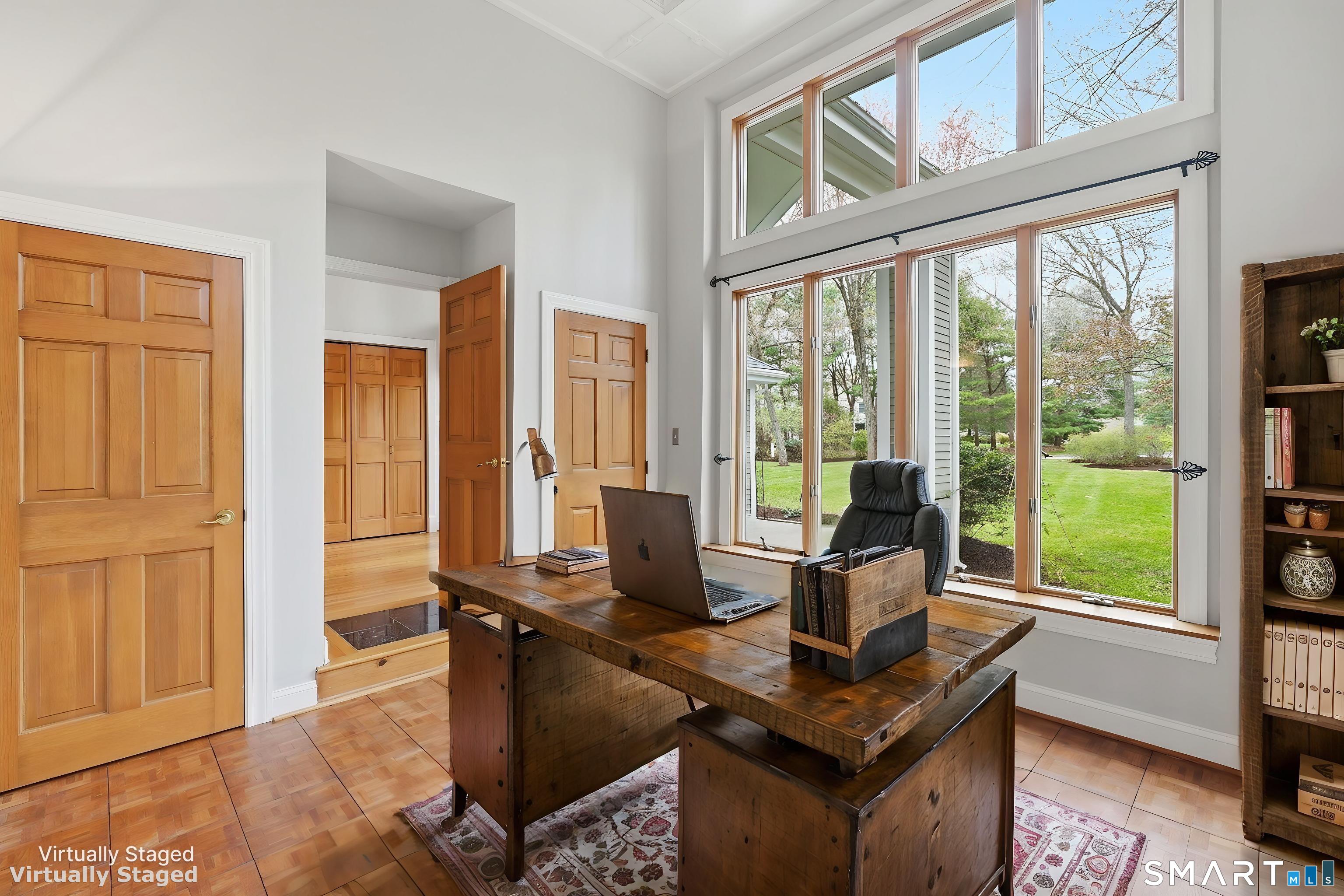 Grand welcoming foyer opens to this special original owner home, tucked within an enclave of South Glastonbury residences. Soaring ceilings create a dramatic backdrop for the grand sunken living room with fireplace, while a first-floor office offers the perfect space for telecommuting. The spacious dining room overlooks the private backyard. Granite and stainless kitchen with island, butler's pantry, and breakfast area opens to the inviting family room with a second fireplace. A first-floor bedroom with an adjacent newly remodeled full bath is ideal for guests or multigenerational living. First-floor laundry adds convenience. Upstairs, the primary suite features a double sink vanity and whirlpool tub. Two additional bedrooms and a full bath complete the second floor. Finished walk-out lower level adds 800 SF. Three-car garage.