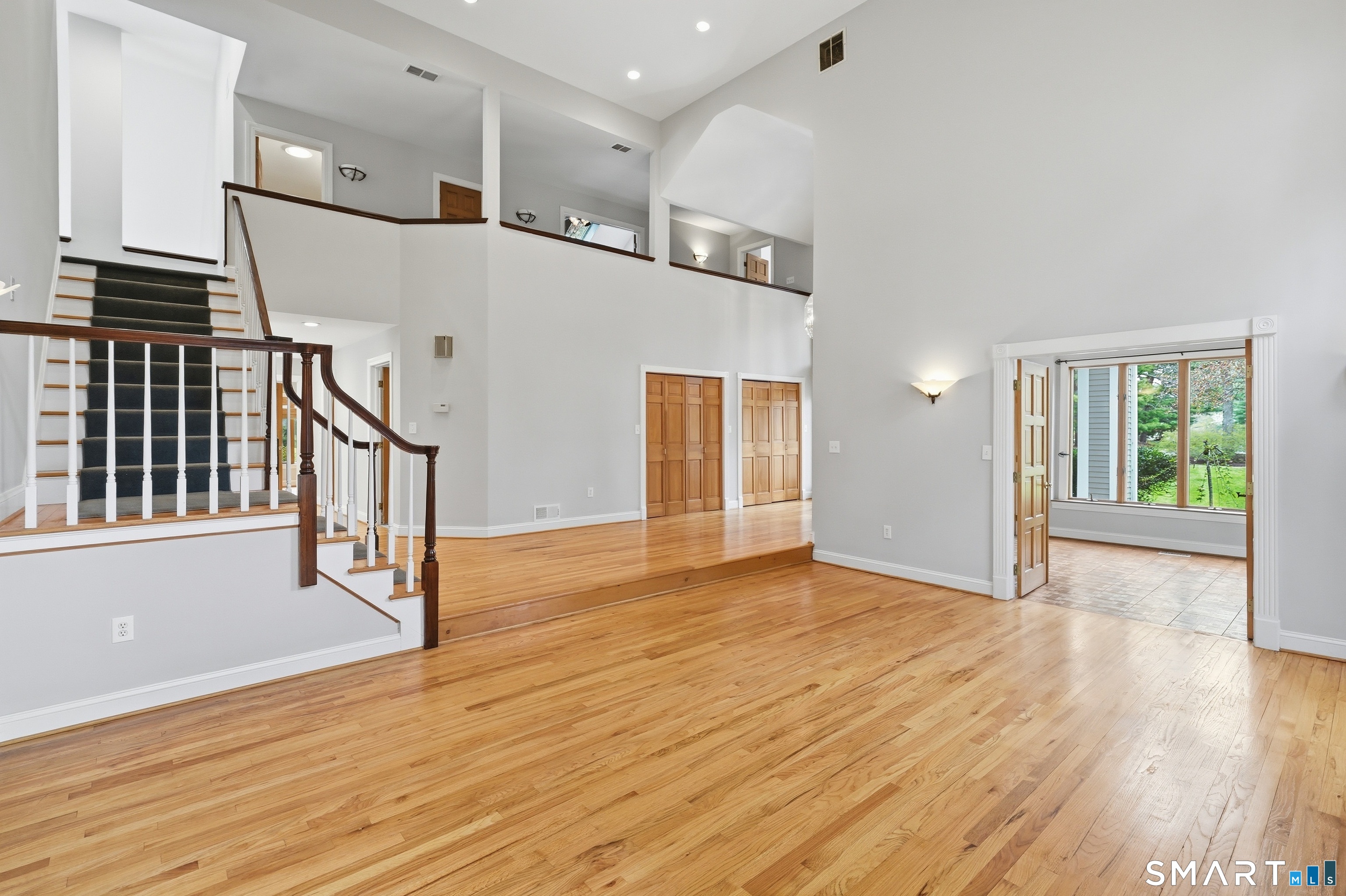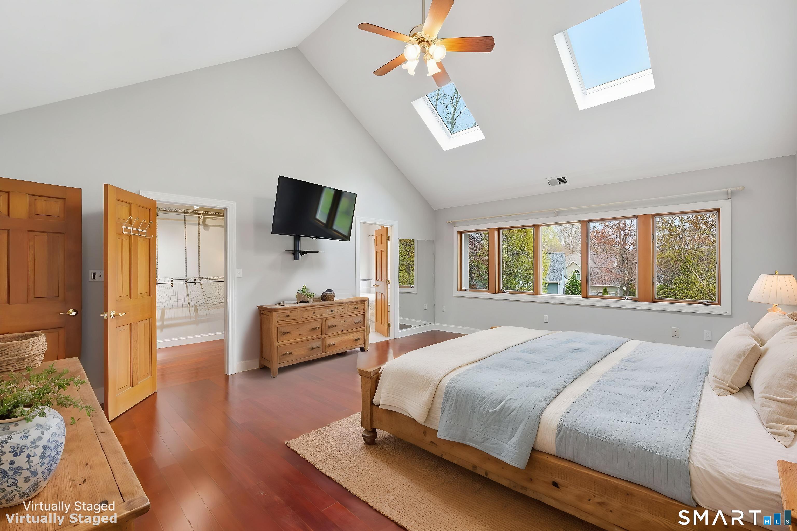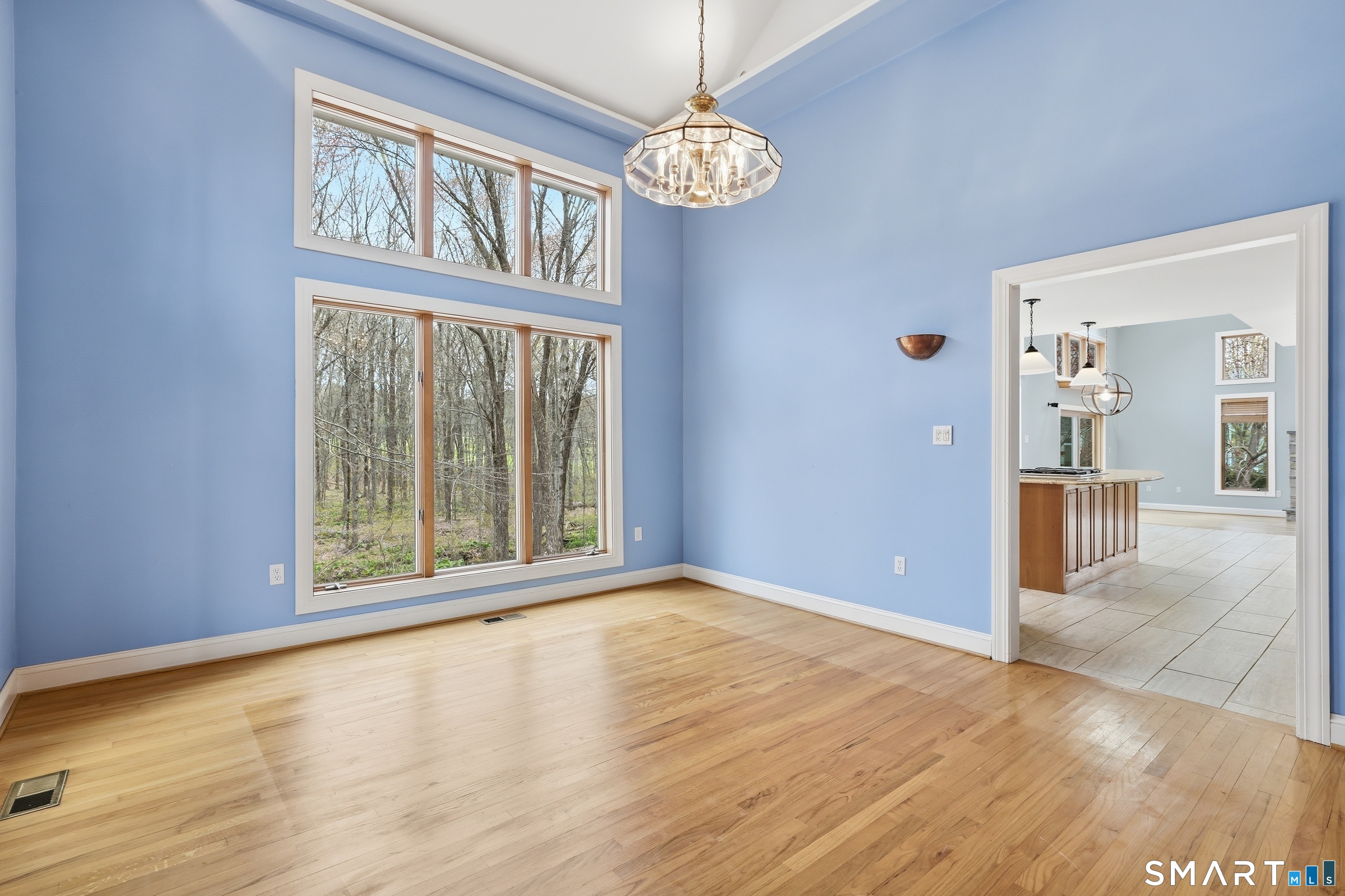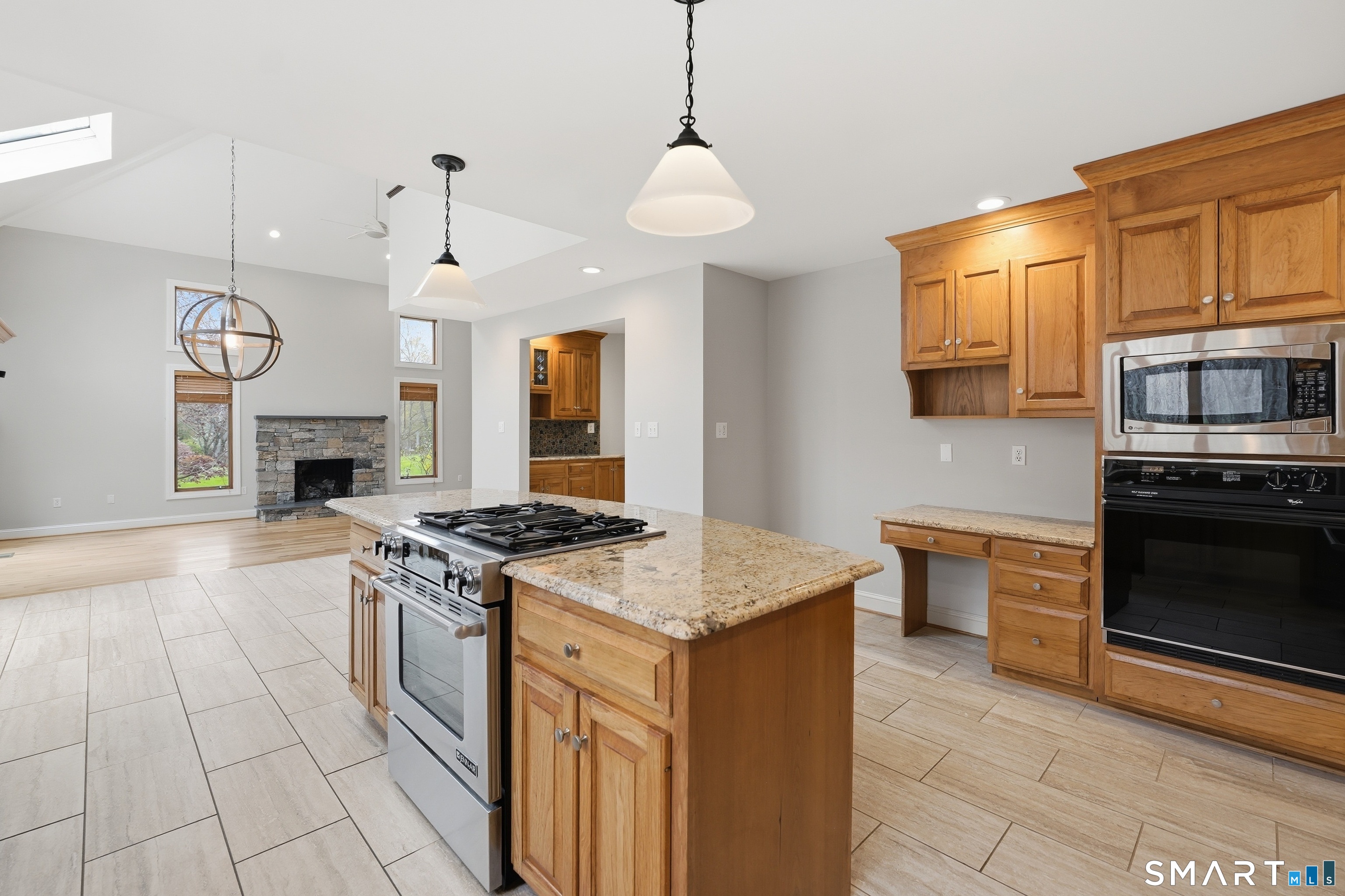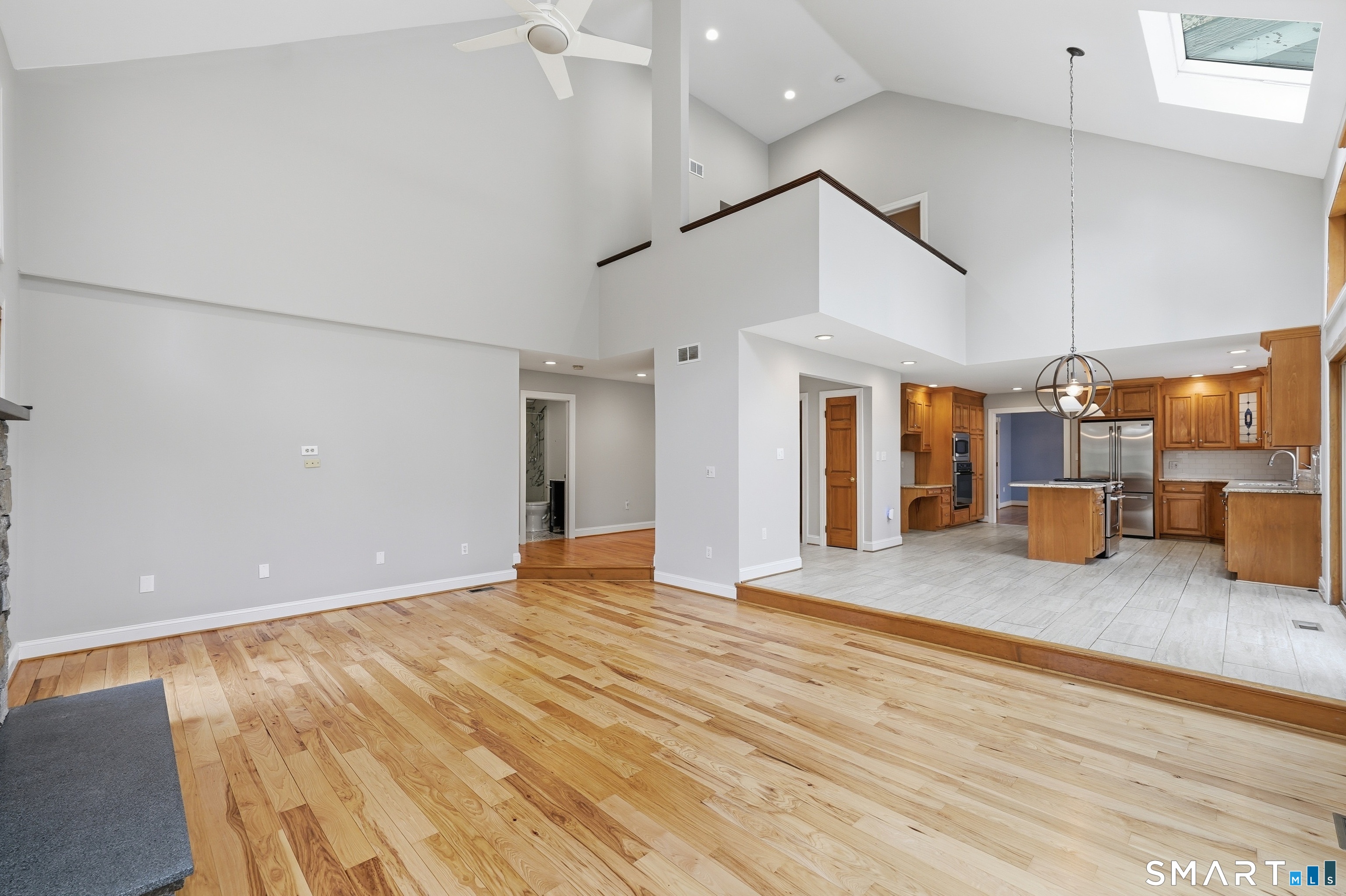 Grand welcoming foyer opens to this special original owner home, tucked within an enclave of South Glastonbury residences. Soaring ceilings create a dramatic backdrop for the grand sunken living room with fireplace, while a first-floor office offers the perfect space for telecommuting. The spacious dining room overlooks the private backyard. Granite and stainless kitchen with island, butler's pantry, and breakfast area opens to the inviting family room with a second fireplace. A first-floor bedroom with an adjacent newly remodeled full bath is ideal for guests or multigenerational living. First-floor laundry adds convenience. Upstairs, the primary suite features a double sink vanity and whirlpool tub. Two additional bedrooms and a full bath complete the second floor. Finished walk-out lower level adds 800 SF. Three-car garage.