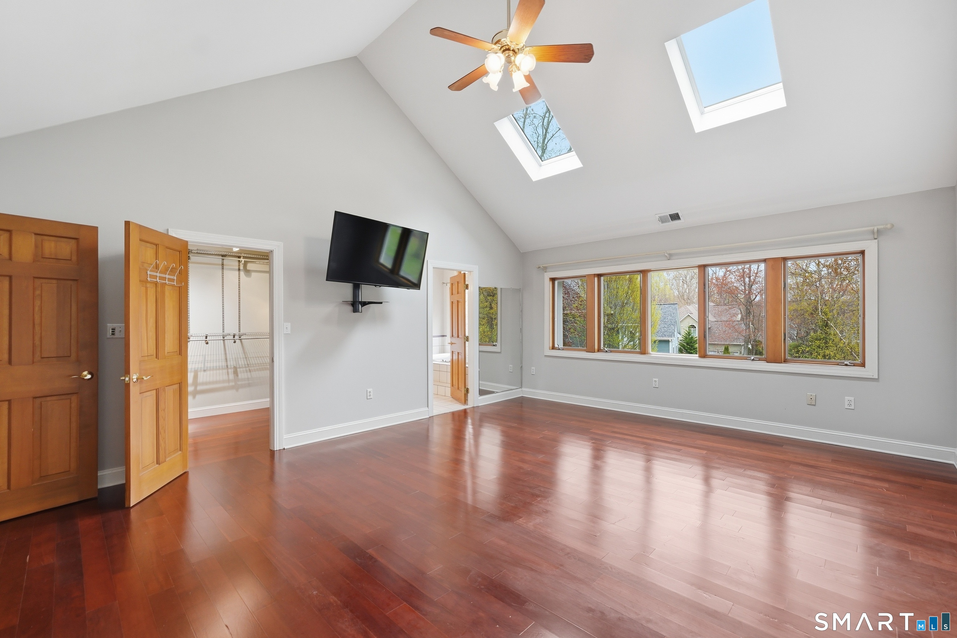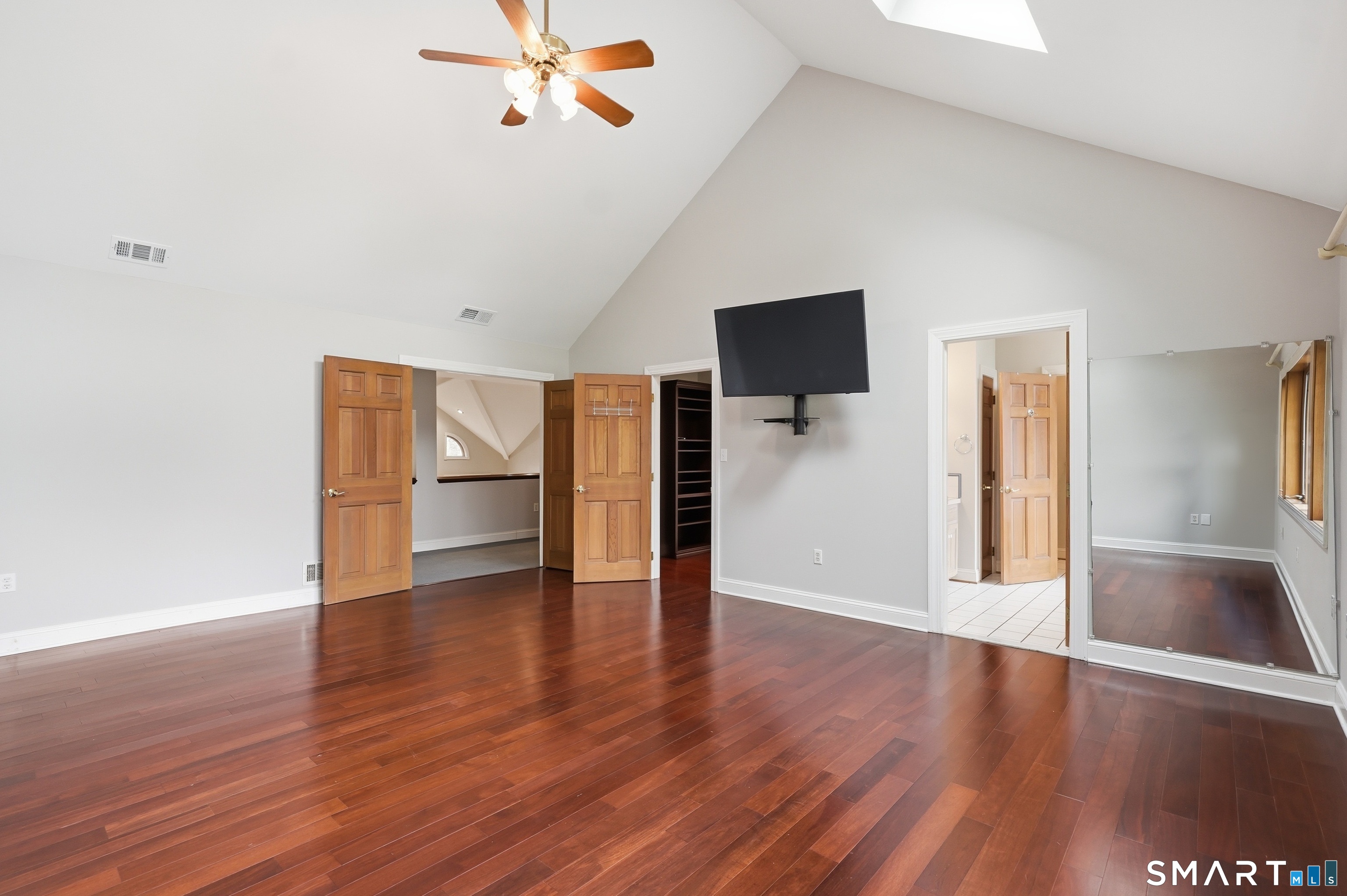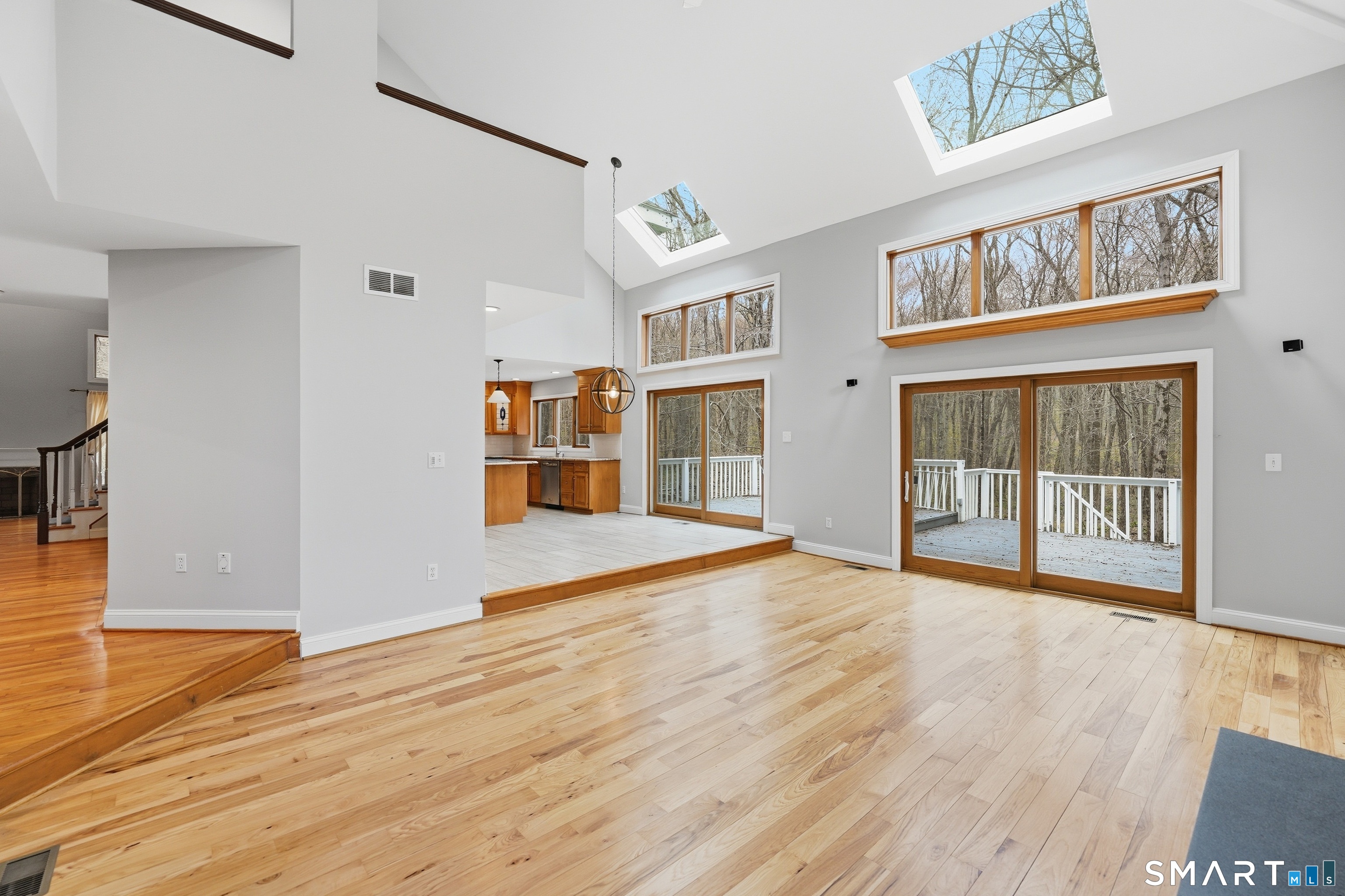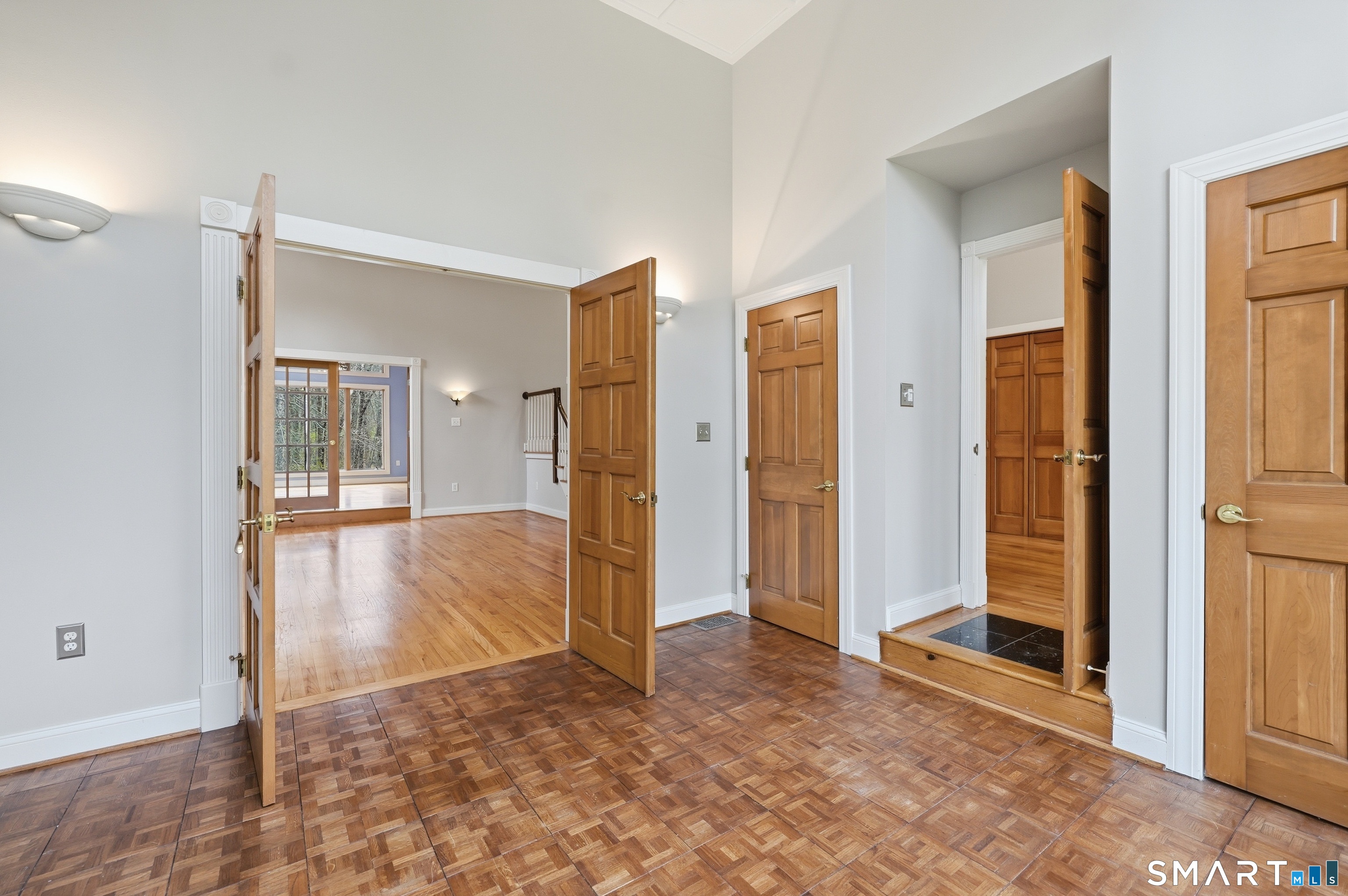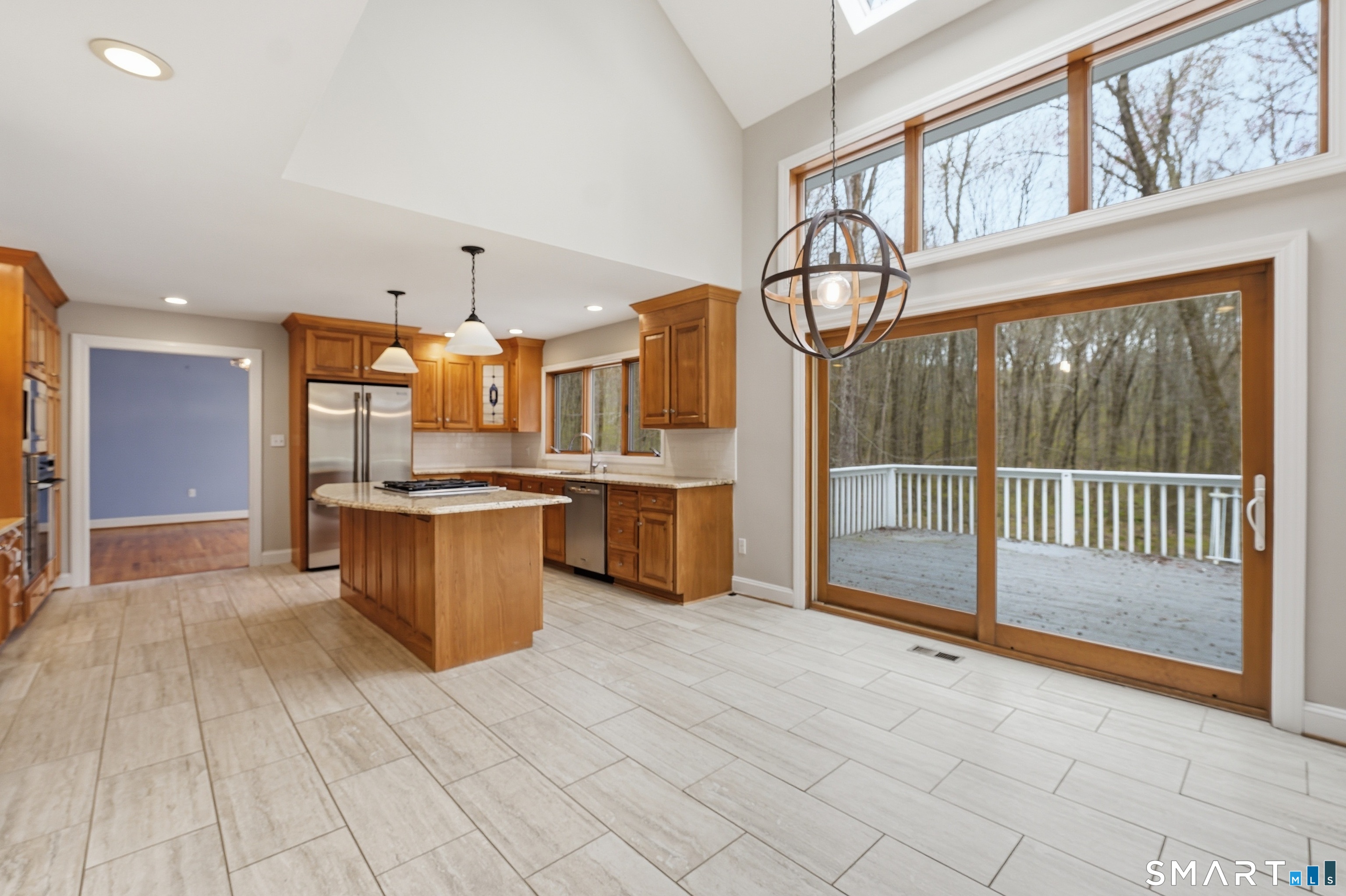 Grand welcoming foyer opens to this special original owner home, tucked within an enclave of South Glastonbury residences. Soaring ceilings create a dramatic backdrop for the grand sunken living room with fireplace, while a first-floor office offers the perfect space for telecommuting. The spacious dining room overlooks the private backyard. Granite and stainless kitchen with island, butler's pantry, and breakfast area opens to the inviting family room with a second fireplace. A first-floor bedroom with an adjacent newly remodeled full bath is ideal for guests or multigenerational living. First-floor laundry adds convenience. Upstairs, the primary suite features a double sink vanity and whirlpool tub. Two additional bedrooms and a full bath complete the second floor. Finished walk-out lower level adds 800 SF. Three-car garage.