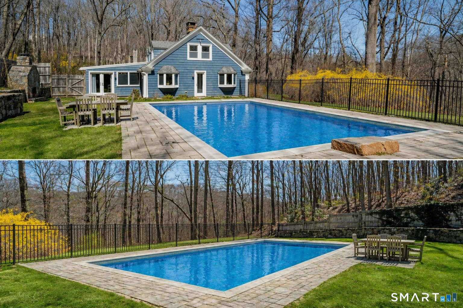 Welcome to 138 Putnam Park Road - A rare and beautifully updated New England Cape offering timeless character and a private backyard retreat with heated in-ground pool, newer designed patio and outdoor fireplace. Inside, old-world craftsmanship blends seamlessly with refined updates. The gourmet eat-in kitchen is filled with natural light and features white granite countertops, a basket-weave marble backsplash, premium stainless appliances, double ovens, wine refrigerator, and a bay window overlooking the fenced pool area and outdoor stone fireplace - perfect for entertaining. Architectural details include a dramatic original stone wood-burning fireplace, wide plank floors, exposed beams, curved wood spindle staircase, skylights, and authentic period elements throughout. Thoughtful upgrades include newer roof and gutters, blown-in insulation, renovated designer bath, new oil tank, new pool pump and newer paved driveway. Spacious sunlit bedrooms, beautifully updated baths, open living spaces, and seamless main-level access to the pool and level yard complete the home. Ideally located in Southern Bethel, 5 minutes to Metro-North for effortless New York commute.
