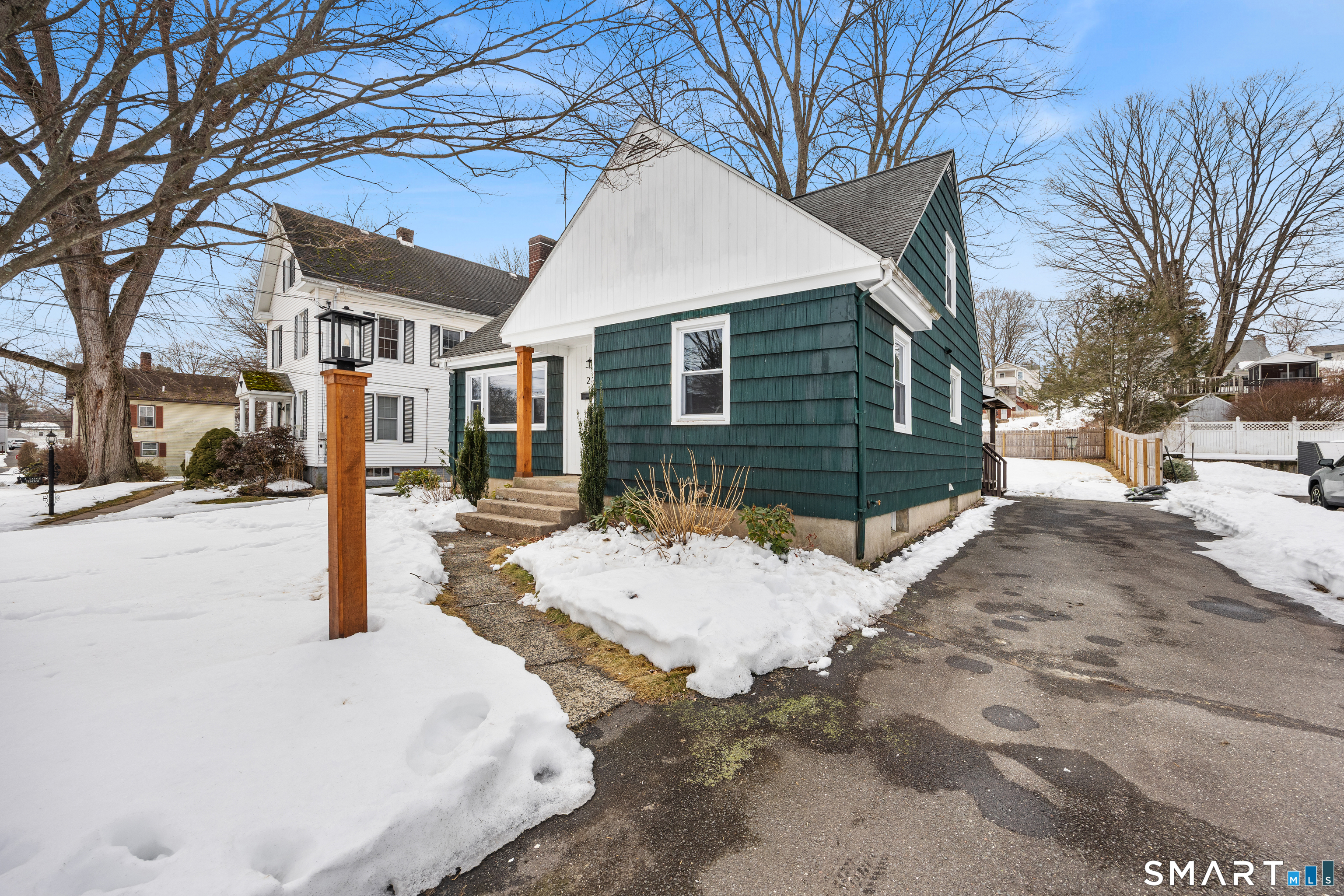 HIGHEST and BEST by Sunday, March 1st at 5 PM. Charming Cape-style home offering comfort, flexibility, and thoughtful updates throughout. Currently configured as a 2-bedroom, this home easily lives as a 3-bedroom, with a possible main level bedroom/dining room/playroom and two spacious upper-level bedrooms. A walk-in attic area off the second upstairs bedroom presents the perfect opportunity for a generous walk-in closet or additional storage. The kitchen blends warmth and functionality with butcher block countertops and newer appliances. Hardwood floors add character, while major mechanical upgrades - including a newer combination water heater/boiler (2019), newer windows (2021) and a mini split heat pump system (2019) - provide efficiency and year-round comfort. Natural gas heating and a cozy wood-burning fireplace complete the home's inviting appeal. Enjoy outdoor living on the large covered deck, already equipped with a TV, overlooking a partially fenced backyard. A one-car detached garage with its own separate driveway offers added convenience and flexibility. Ideally located just minutes from downtown Southington, where you'll find popular restaurants, shopping, summer concerts on the green, and the beloved Apple Harvest Festival. Close proximity to the Heritage Linear Trail makes walking, biking, and exploring effortless and not far from commuter routes! Don't miss this little gem!