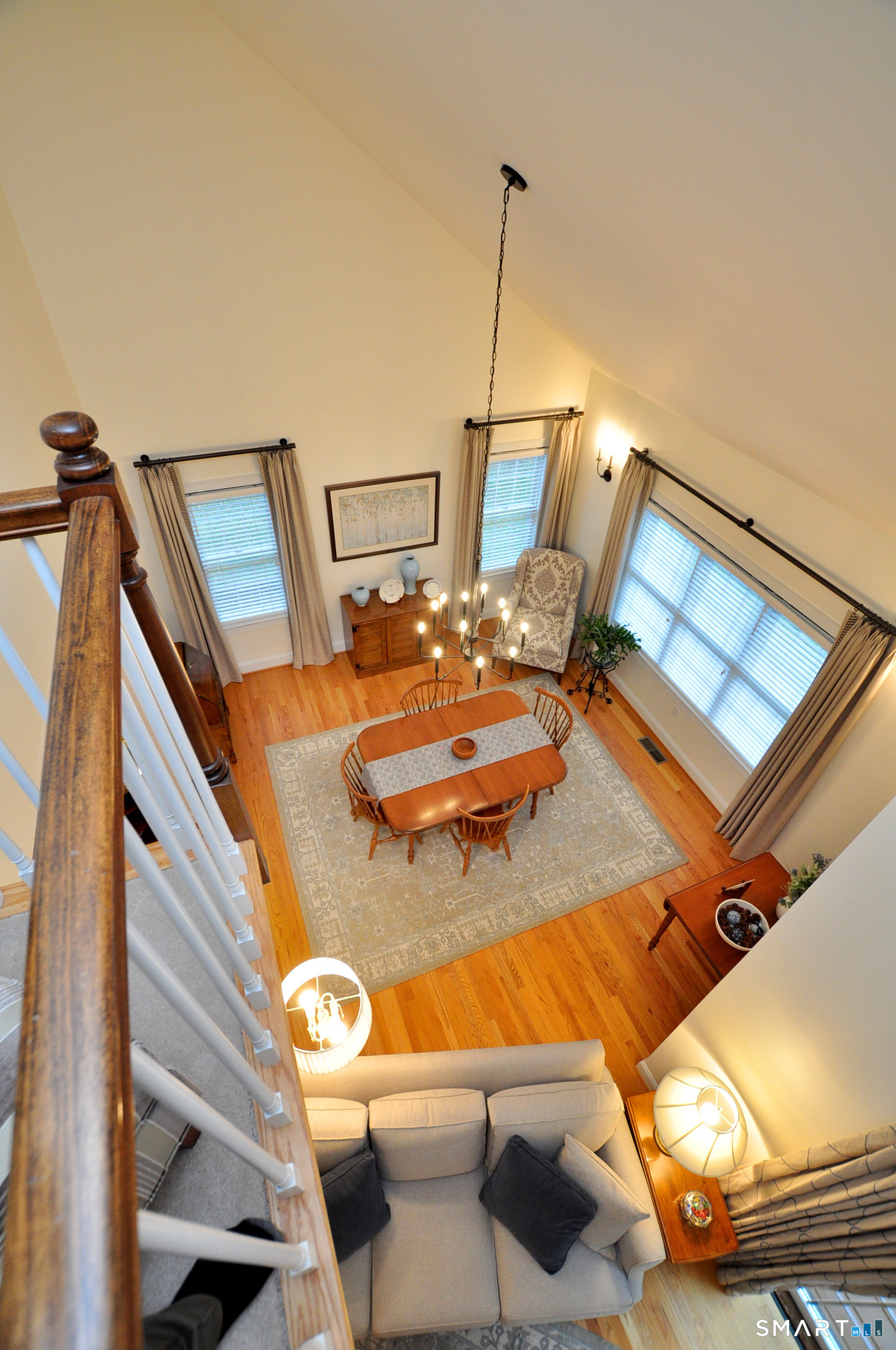 Welcome to Hunt Glen, Granby's premier 55+ community, and one of its very best locations. You will be truly surprised when you step inside this gorgeous, sun-filled, impeccably maintained home with upgrades galore. The granite and cherry kitchen features stainless steel appliances, abundant cabinetry, a center island, and wood floors, opening to a dining room with wood floors and vaulted ceiling and a spacious living room with wood floors, gas fireplace and slider to a newer deck. The main level also includes a half bath and a primary bedroom with walk-in closet, new wood floor (11/24), and a beautifully remodeled full bath with tiled shower and quartz counters, with laundry hookup available in the bath for a compact washer/dryer. The second floor offers a bright guest suite with bedroom, sitting area, and remodeled full bath. The finished walk-out lower level is a dream, featuring a motorized stair glide, french doors to the backyard, half bath, office, laundry room with new LG front-load washer and dryer on pedestals (2025), and abundant storage. Recent updates include new furnace and central air (6/22), new hot water heater (11/24), Bosch dishwasher (6/23), dining room chandelier and sconces (2023), composite deck and front porch (7/19), new zone board and programmable thermostats (1/20), and custom drapes and rods in the living room and dining room (3/20).