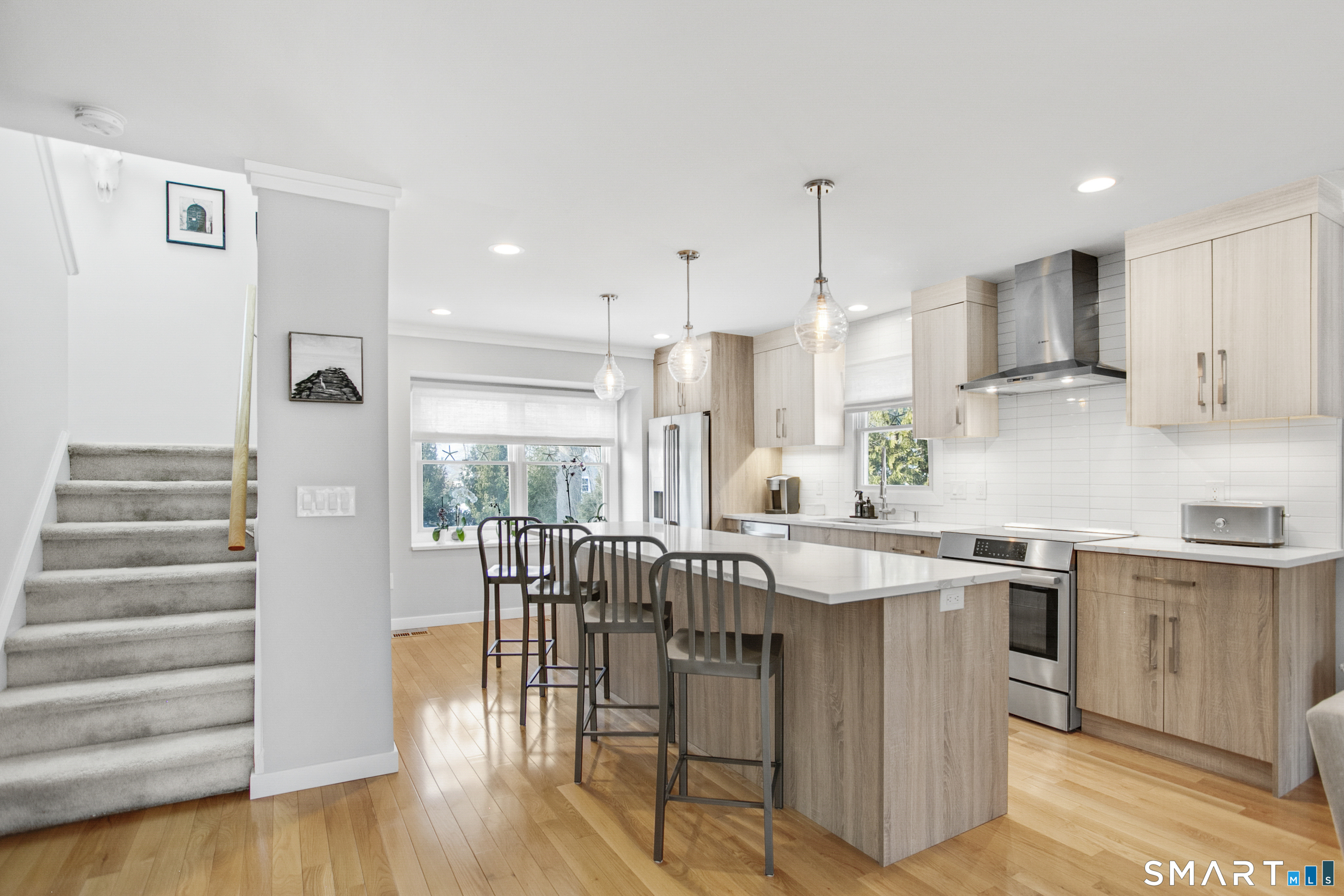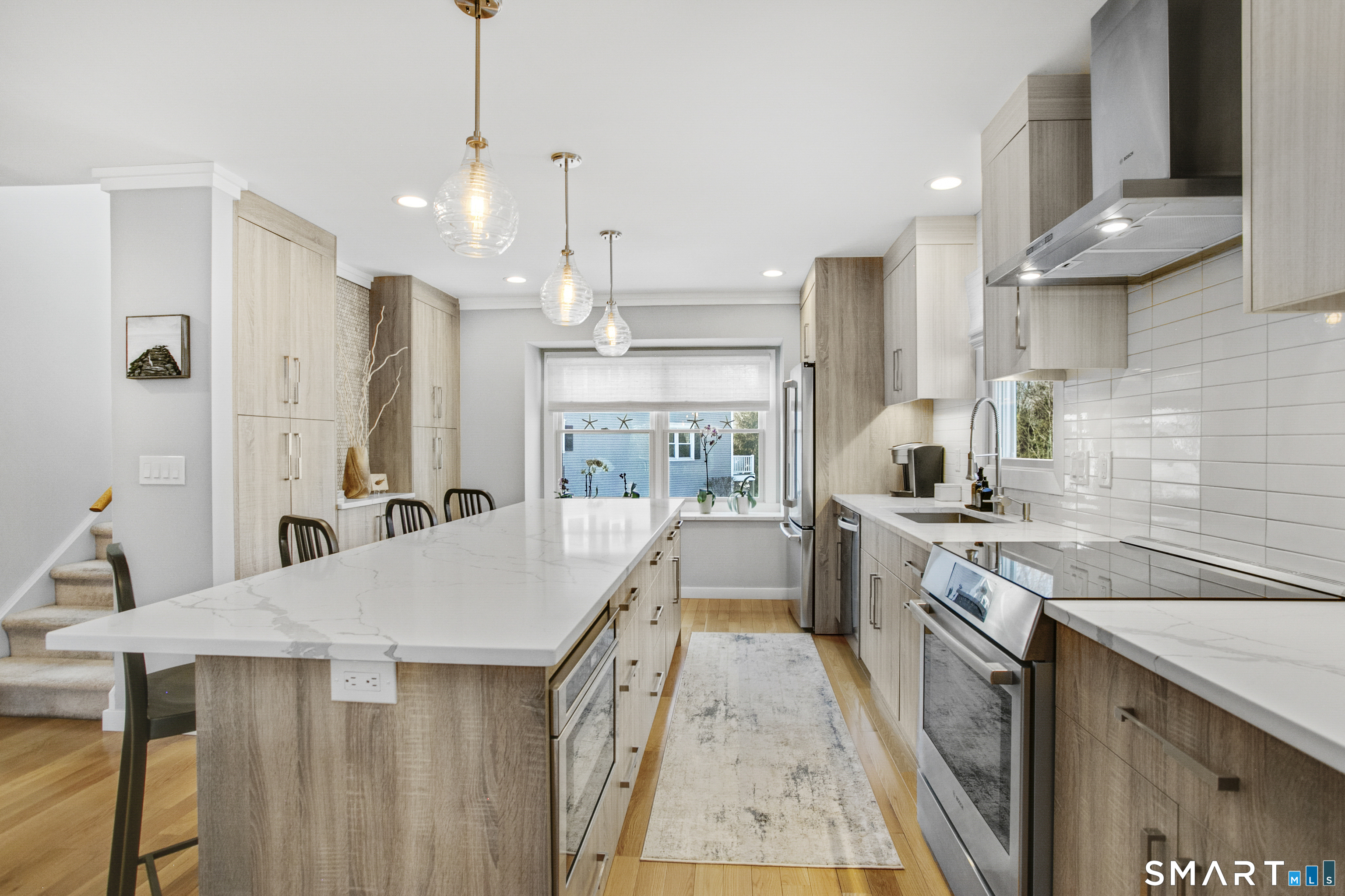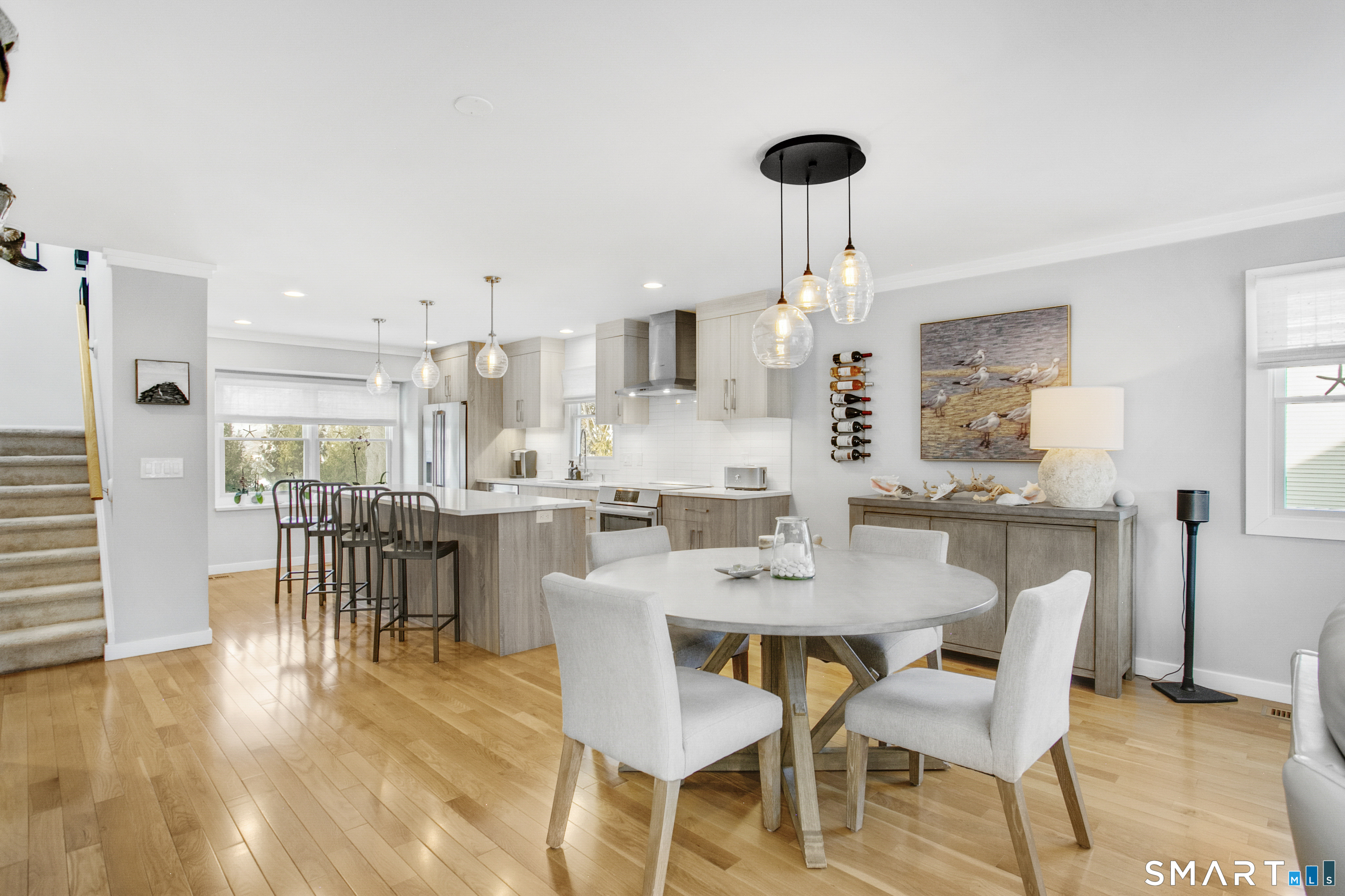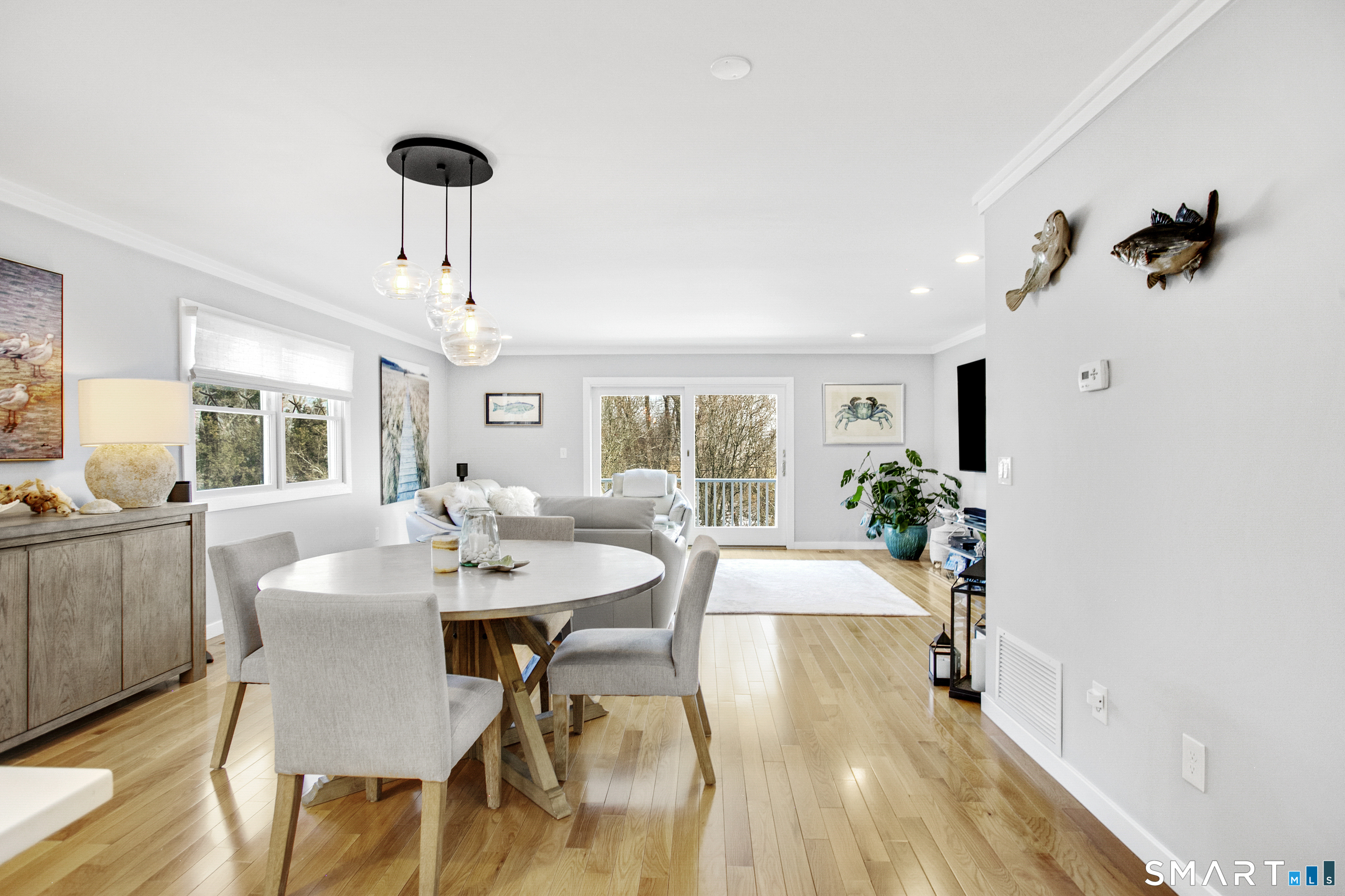 OCEAN REEF - Perfectly positioned on a cul de sac within an impeccably maintained 11-unit Townhouse community in the coveted Fairfield Beach area, 3 Ocean Reef Drive offers refined coastal living at its best. Beautifully updated and filled with natural light, this exceptional residence features two to three bedrooms and three-and-a-half baths, thoughtfully designed for both comfort and style. Sun-drenched open interiors flow seamlessly from the inviting living room-complete with fireplace-onto an expansive deck, creating an ideal setting for relaxing or entertaining. The stunning designer kitchen is the heart of the home, featuring exceptional finishes and an adjoining, spacious dining area perfect for gatherings. This serene retreat is just minutes from Penfield Pavilion, beautiful beaches, South Benson Marina, and vibrant Fairfield Center with its wide array of dining, shopping, cultural attractions, and recreational venues. Convenient train service to and from New York City completes the appeal of this exceptional Fairfield location. Entrance Hall. Main Level - Living Room with hardwood flooring, wood-burning fireplace, and sliding doors opening onto an expansive Deck. Designer Kitchen with hardwood flooring features Quartz countertops, subway tile backsplash, Center Island with Breakfast Bar, plentiful cabinetry, great lighting, and Pantry storage extending onto very spacious Dining Area. Stainless steel appliances include: PLEASE OPEN ADDENDUM FOR FURTHER DESCRIPTION.