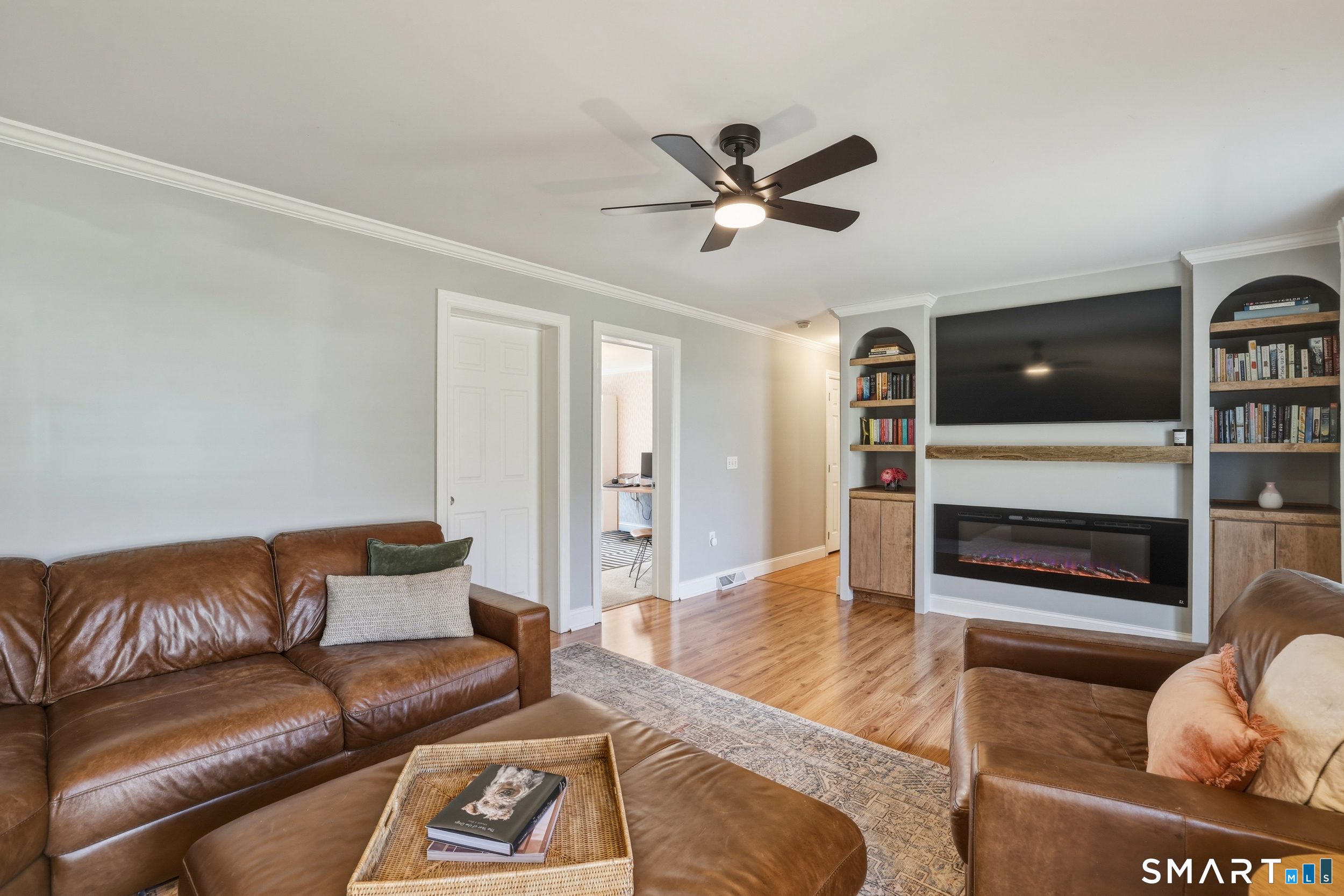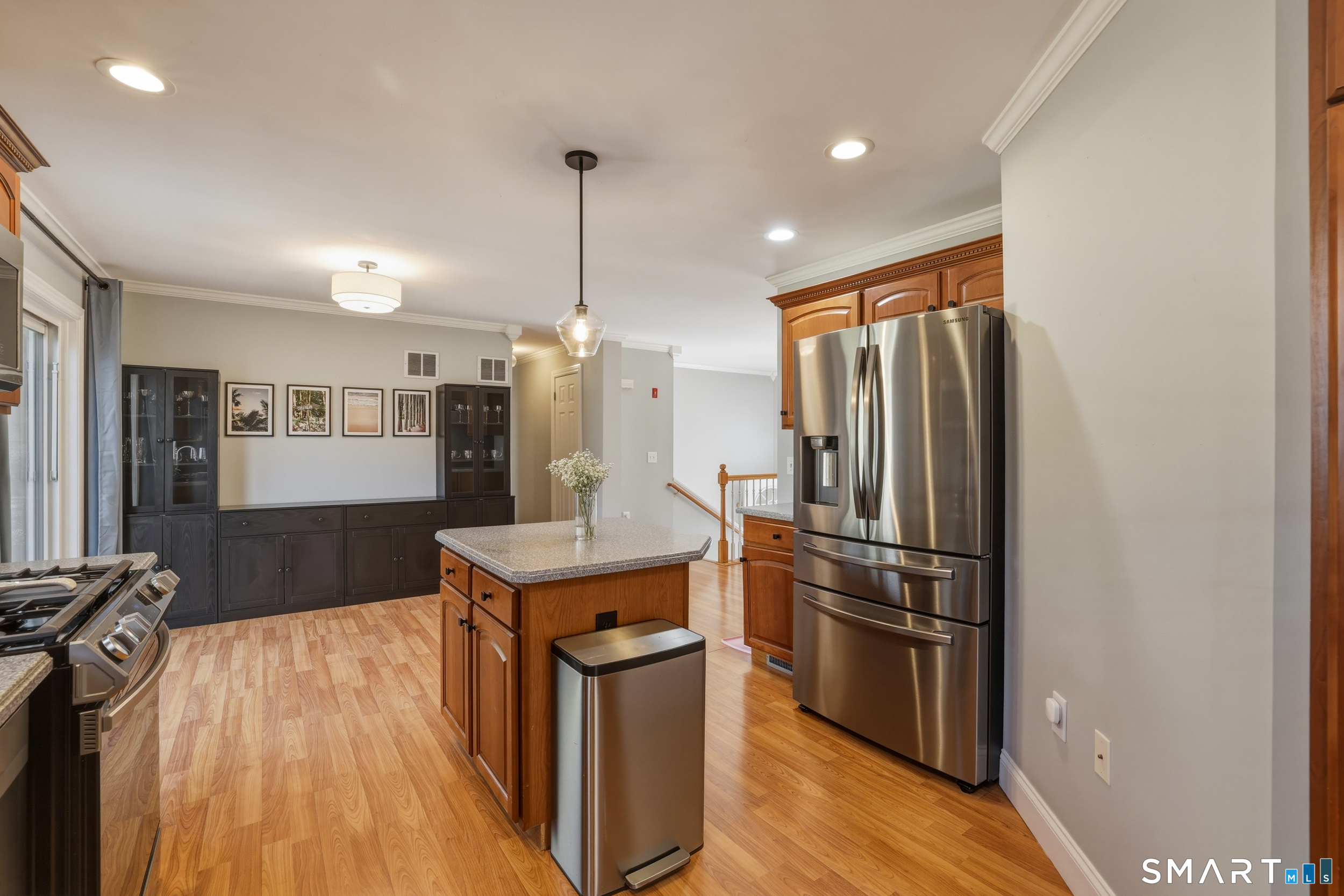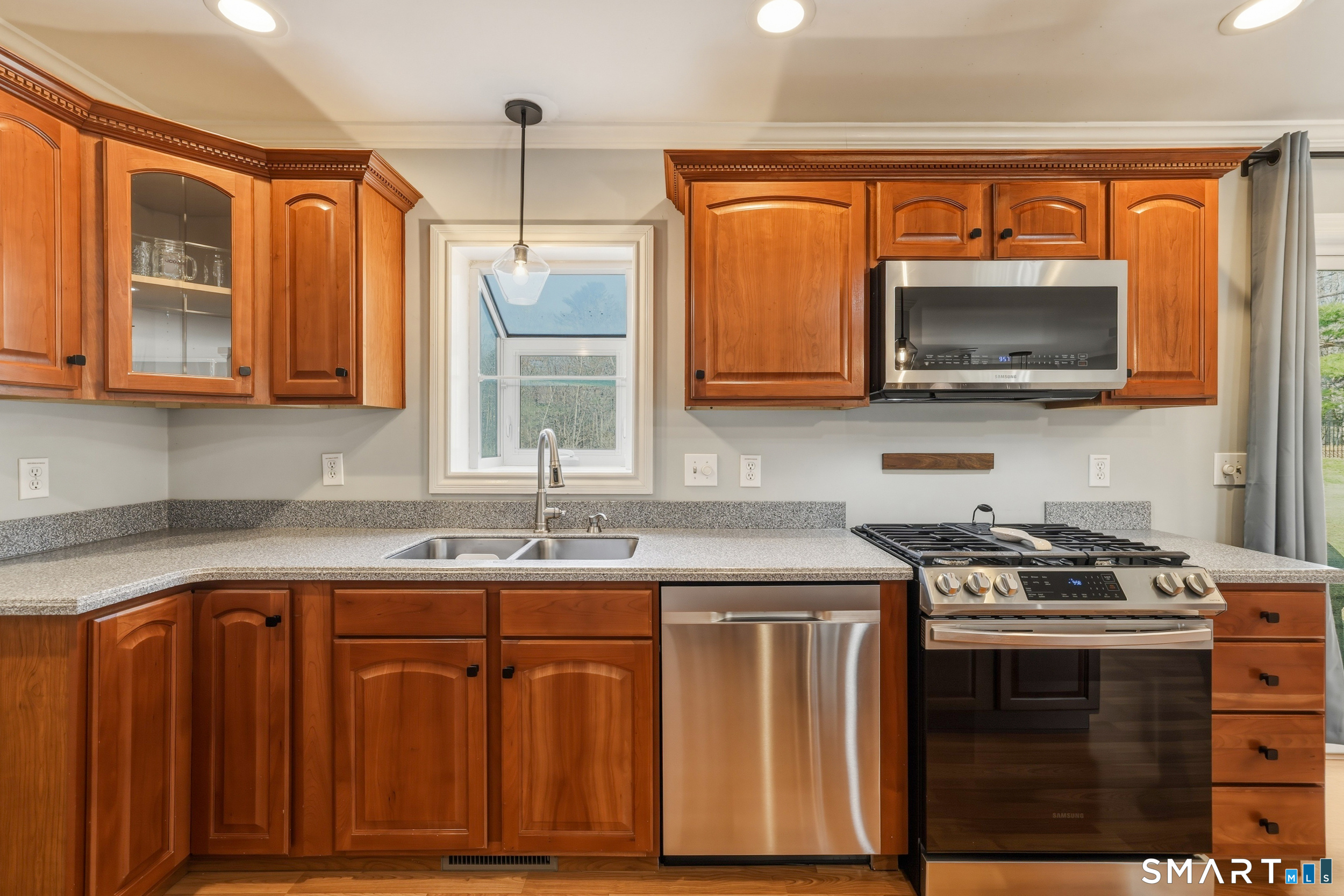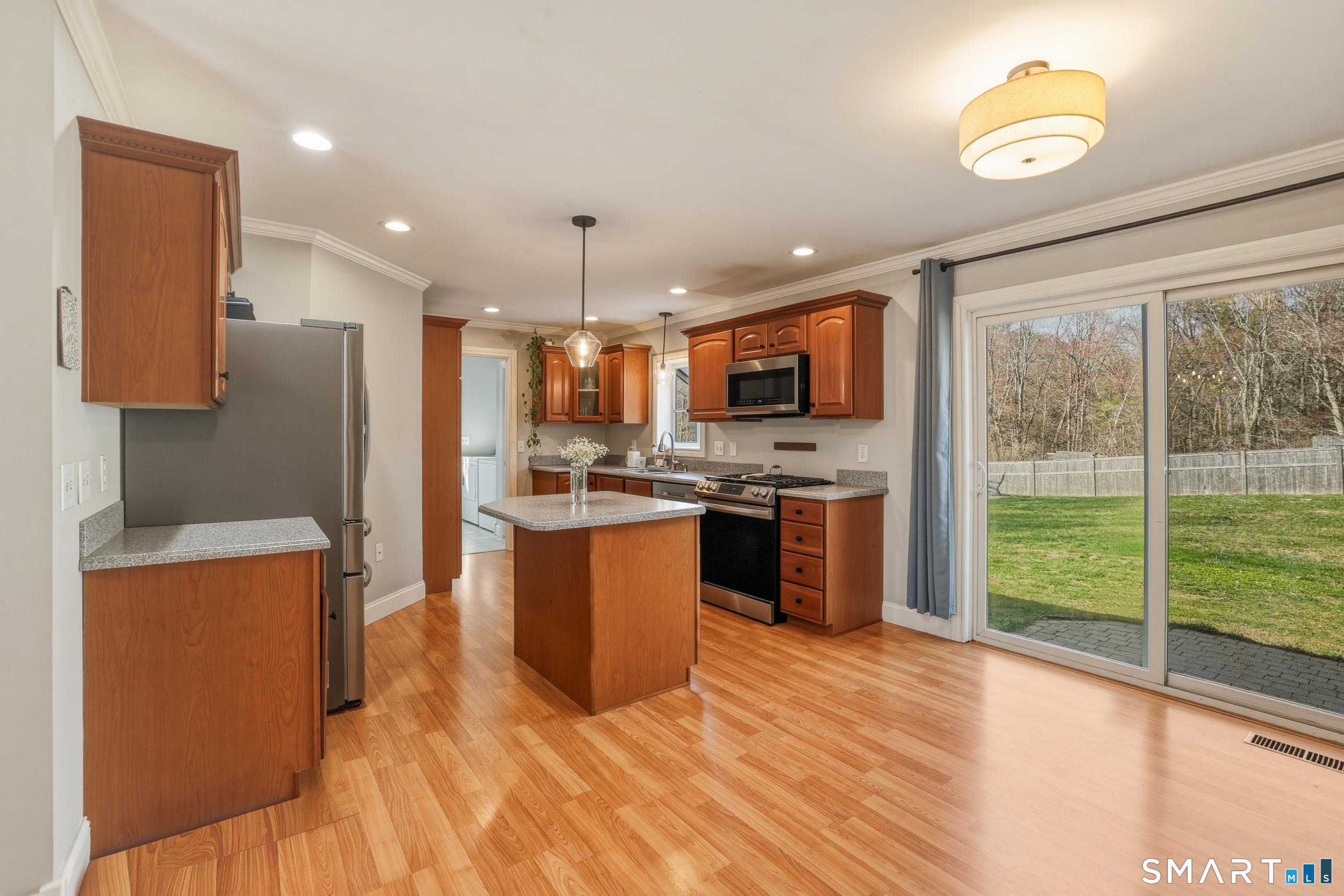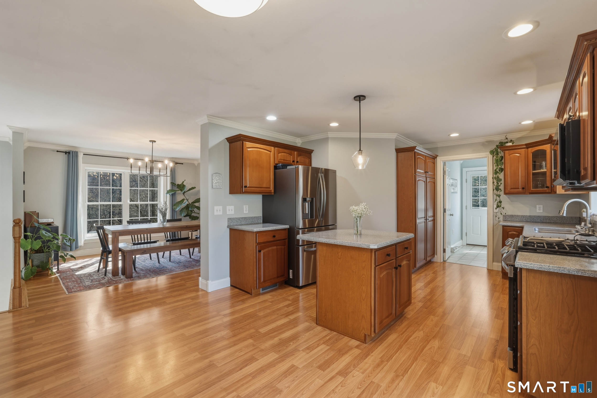 Set on a private 2.1-acre lot, 129 N. Mountain Road offers the perfect blend of comfort, space, and everyday functionality with an ideal setup for entertaining inside and out. This raised ranch welcomes you with tall ceilings and crown molding throughout, creating a clean and cohesive feel from room to room. The main living area is bright and open, flowing seamlessly into a spacious kitchen with an island, custom cherry cabinetry, Corian countertops, and stainless steel appliances, along with ample storage and a slider that leads directly to the patio, creating a natural flow for hosting and gatherings. The dining area is perfectly positioned for both casual meals and entertaining, while the living room offers a warm and inviting space to unwind. The primary suite features a walk-in closet and private bath, with two additional bedrooms and a full bath completing the main level. Downstairs, the fully finished lower level adds even more flexibility, ideal for a second living area, game room, or hosting overflow when guests are over. Step outside and enjoy your own backyard retreat, where a fully fenced in-ground pool and expansive patio area create the ultimate setting for summer parties, cookouts, and relaxing weekends with friends and family. Additional highlights include a detached two-car garage, central air, and solar panels for improved energy efficiency. A well-rounded property offering space, privacy, and a lifestyle designed for entertaining and easy living.