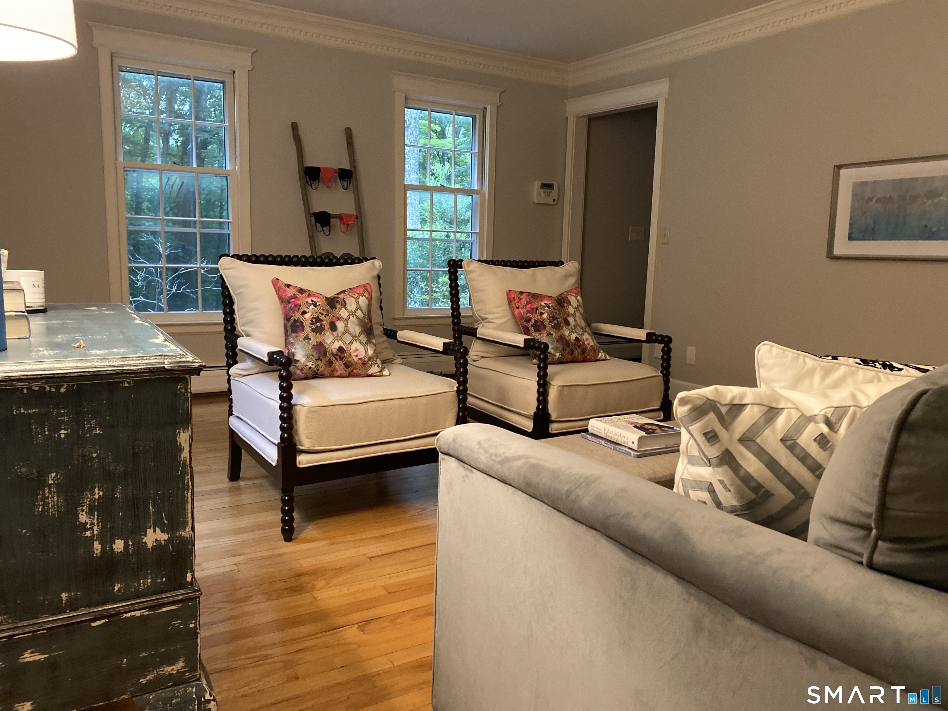Updated: accessibility has been vastly enhanced! Thank you to all for your patience. Priced to sell! Some photos have been emptied via AI. Do not miss your opportunity on this beautifully crafted Williamsburg reproduction colonial. Additional features include crown molding, Vermont slate, and charming brick and cedar accents. Set on a serene 2-acre, partially wooded lot, this home provides exceptional privacy, mature trees, and a spacious garden filled with fresh berries and roses that won't take much to bring back to it's glory. Step inside to an expansive great room, perfect for gatherings around a gorgeous fireplace. Screened-in porch and blue stone patio-ideal for outdoor entertaining. Onto the kitchen that features granite countertops, a newer induction cooktop, built-in oven, microwave, dishwasher, and a stunning brick accent wall. The home's thoughtful layout even includes a private office with French doors on the main level. Upstairs, the home offers a large primary bedroom with a full bath and walk-in closet, along with three additional other bedrooms. Laundry is also on the upper level and while the home has central air for year-round comfort. The great room has an additional split as the owner enjoyed very cool temperatures on hot summer days. Even more room still, the partially finished lower level spans the full footprint of the home and provides endless possibilities.-playroom, media room, gym, or hobby workshop.