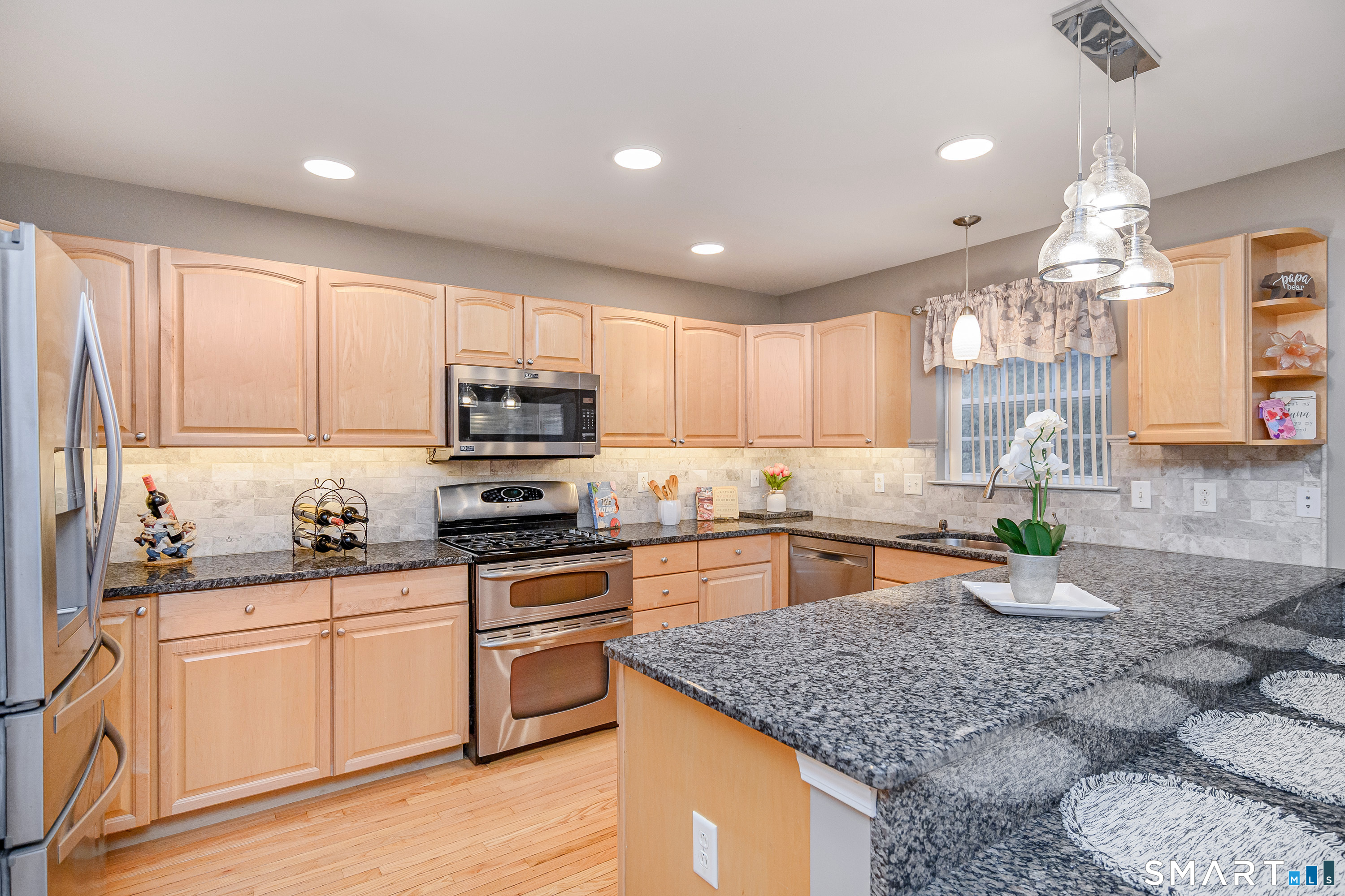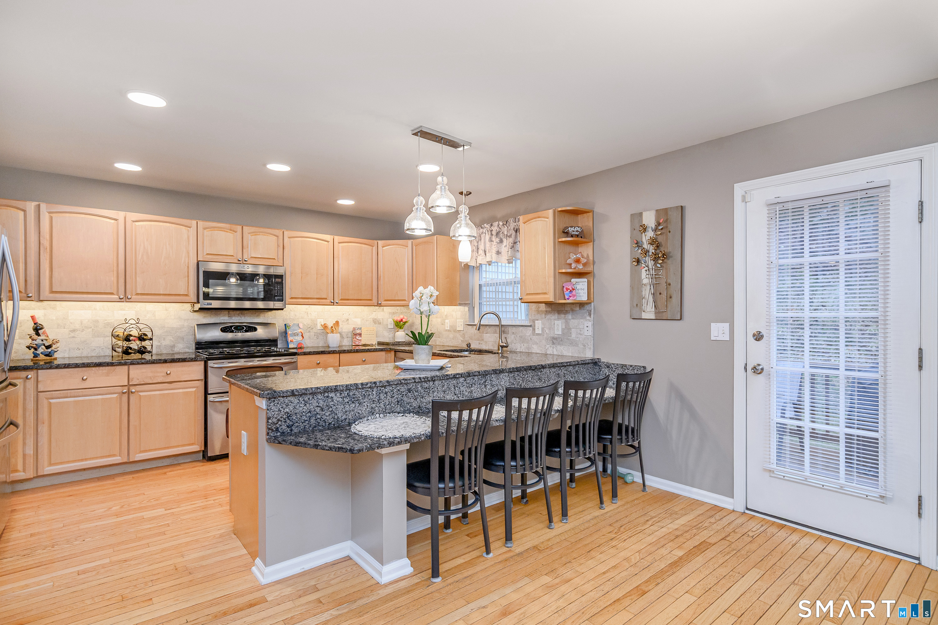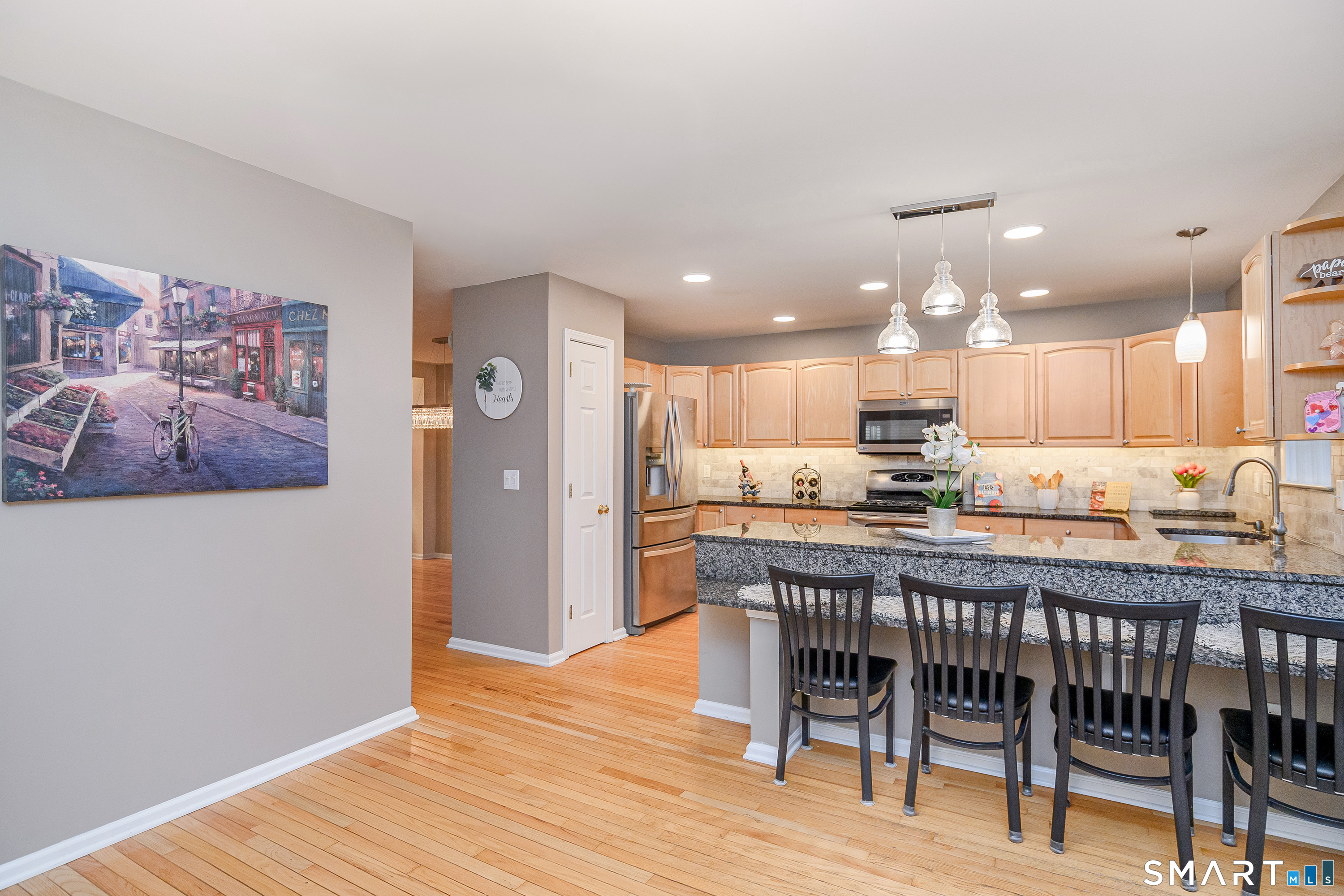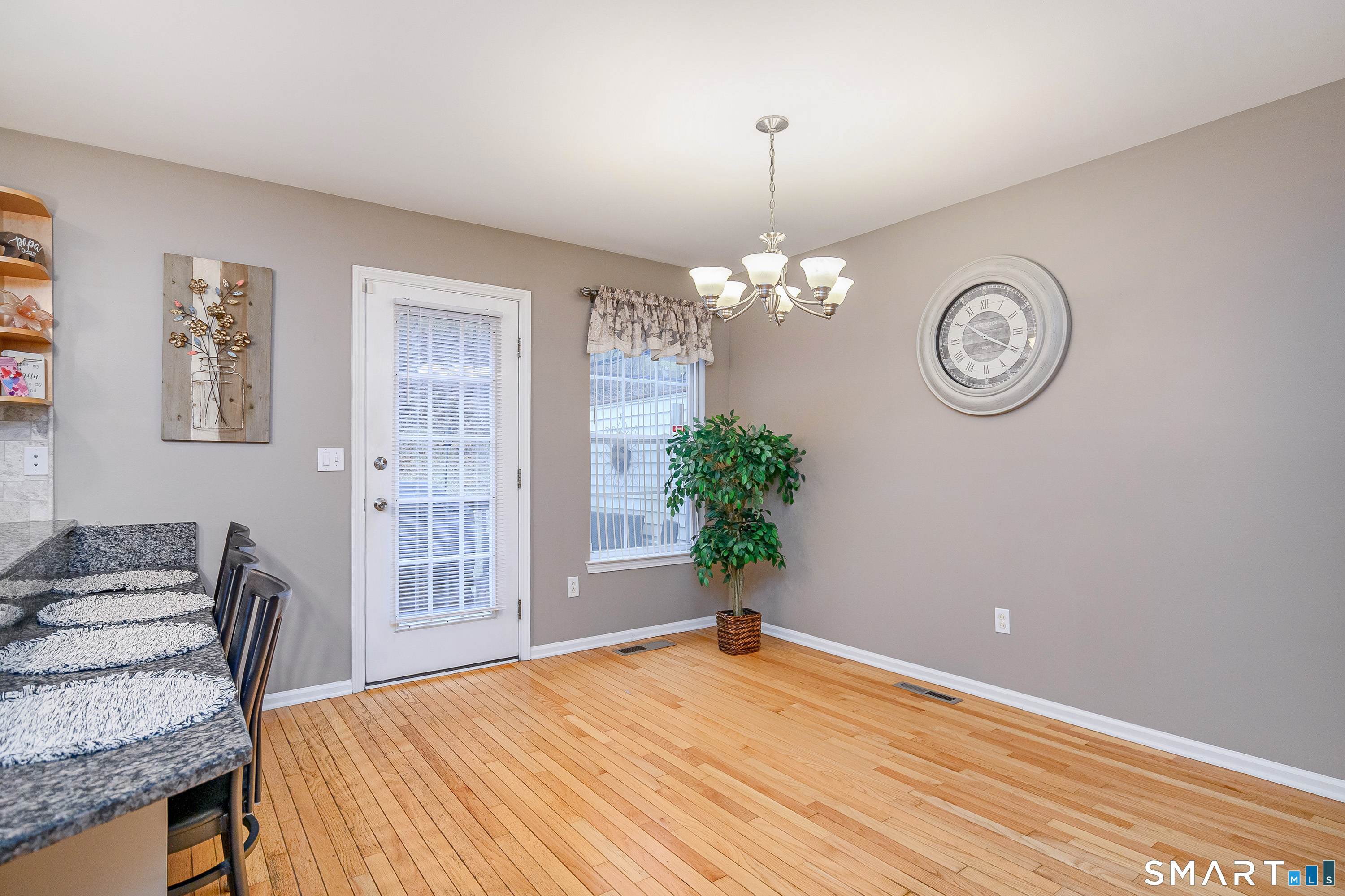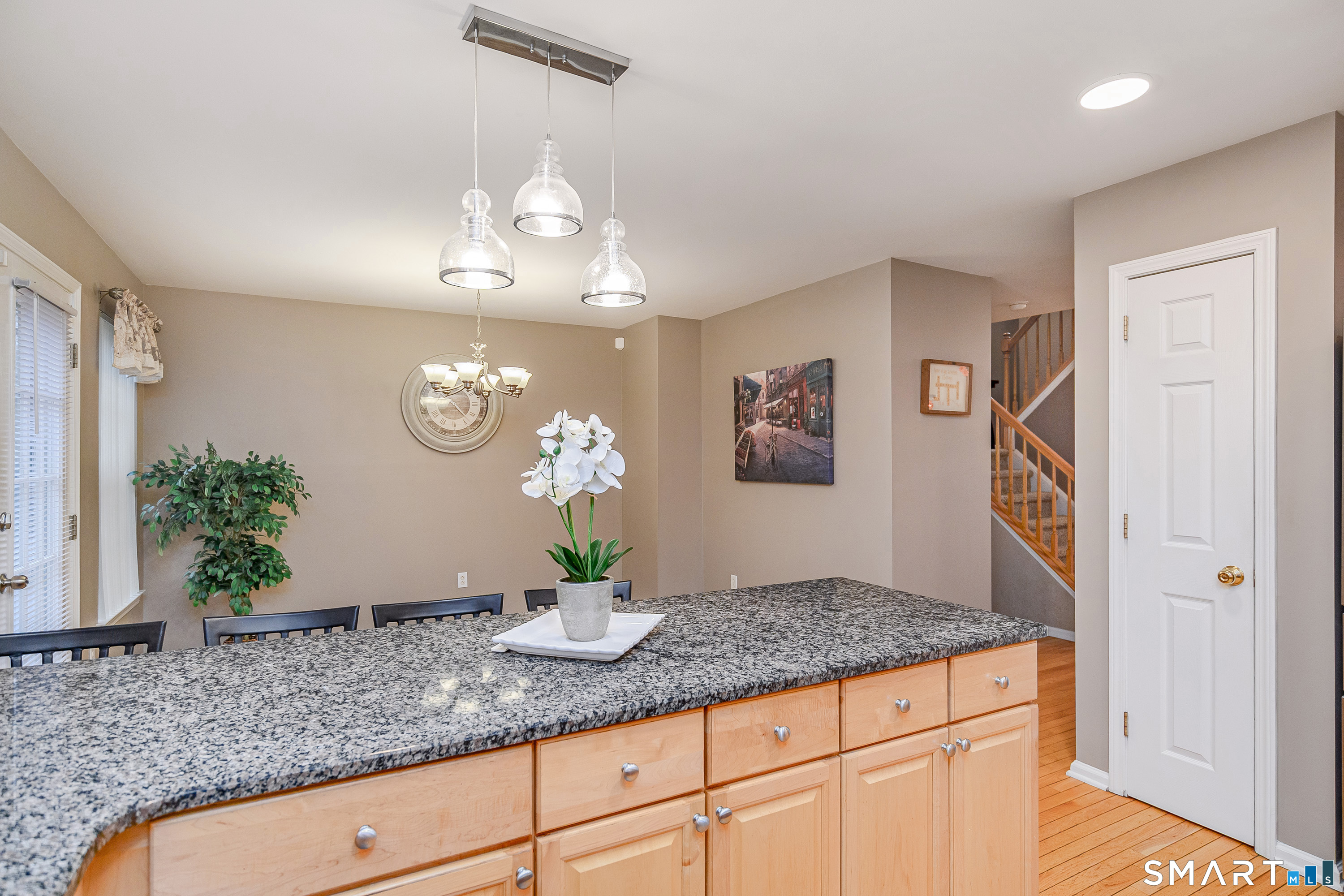 Beautifully maintained 3 bedroom home offering hardwood floors throughout the main level and a spacious, open layout perfect for everyday living and entertaining. The main level features a sun-filled living room with a gas-burning fireplace and custom built-ins, a formal dining room and a spacious kitchen complete with granite countertops, breakfast bar and room for a kitchen table. A convenient powder room and access to the rear deck with stairs leading to the common grass area (upgrade) complete this level. The upper level offers a generous primary bedroom, two walk-in closets, and a private full bath featuring double granite vanity sinks and a tiled shower. Two additional bedrooms, all with ceiling fans, and a full hall bath complete the upper level. The finished lower level provides a versatile family room, along with a laundry/mechanical room and access to the two-car garage. Enjoy community amenities including a pool, playground, and tennis courts. Conveniently located just minutes to I-84, major shopping, dining, and medical facilities nearby.