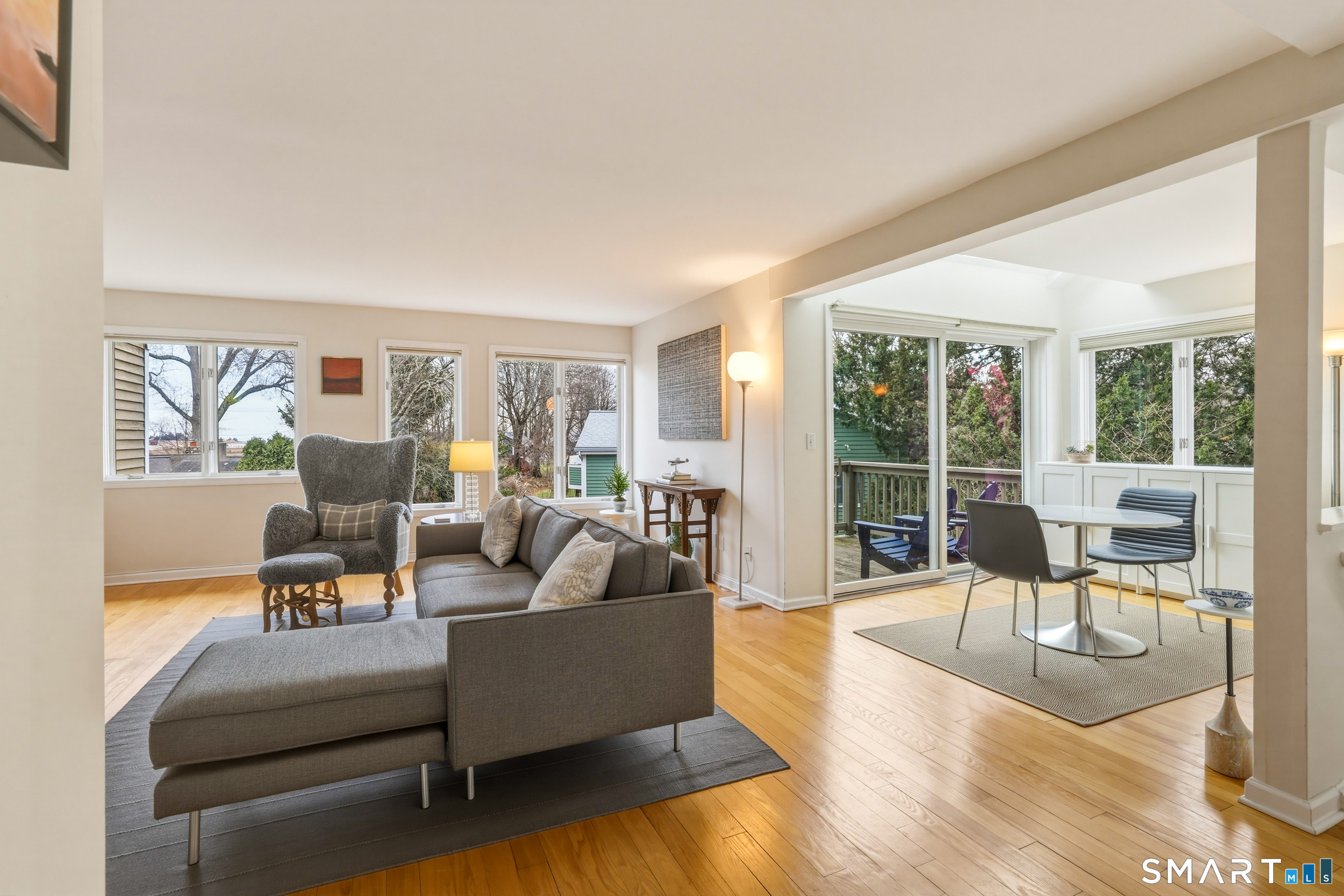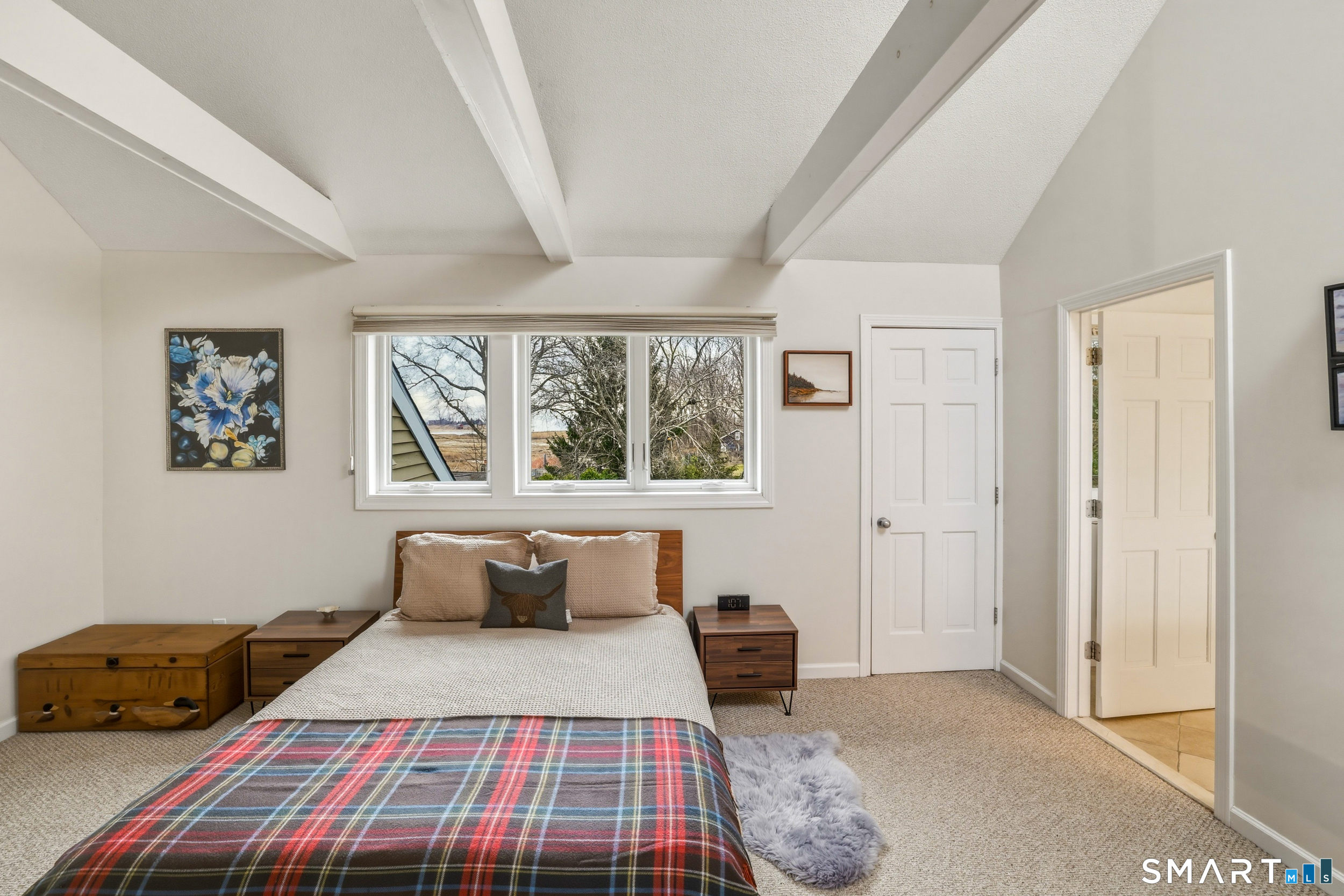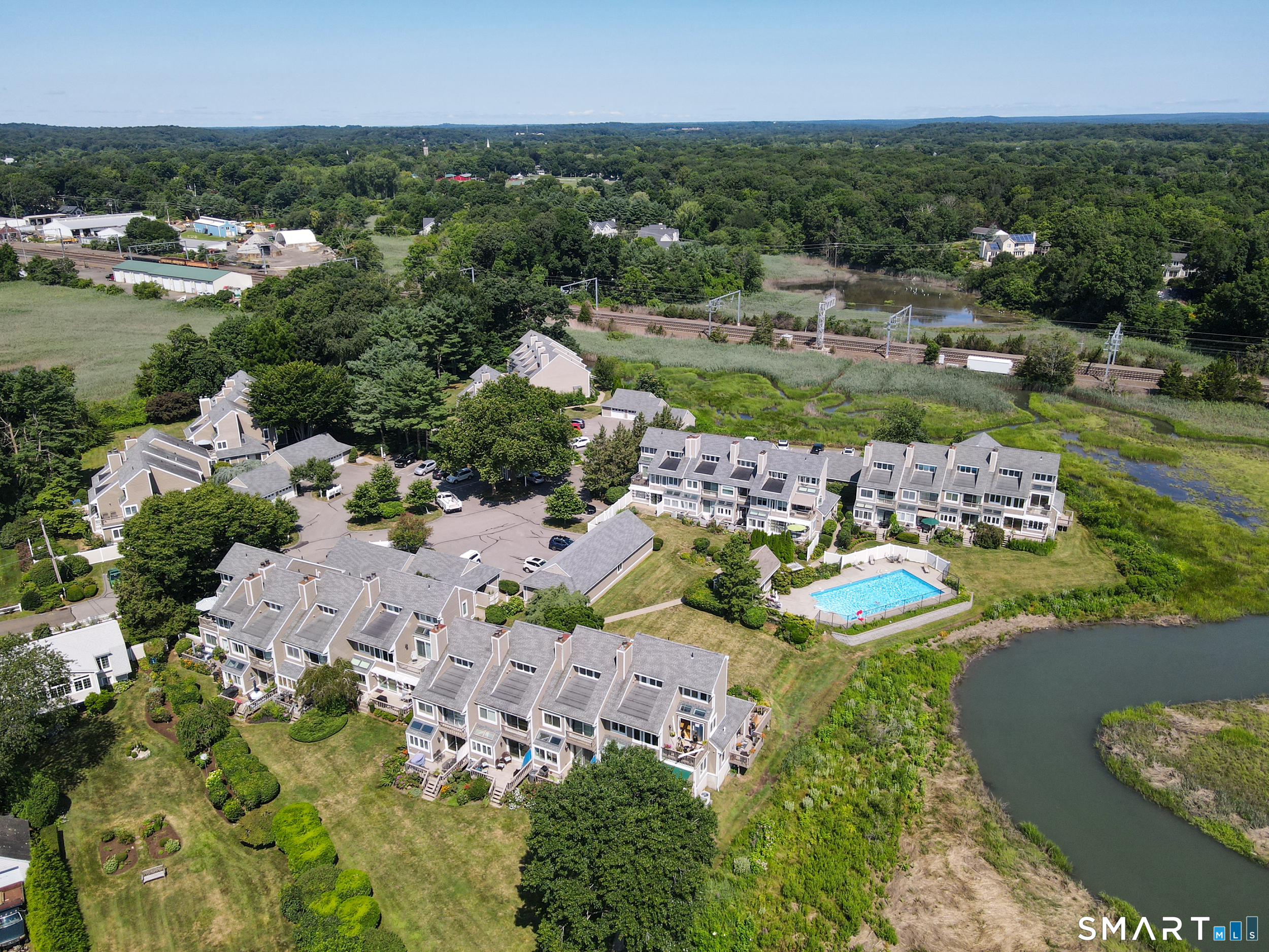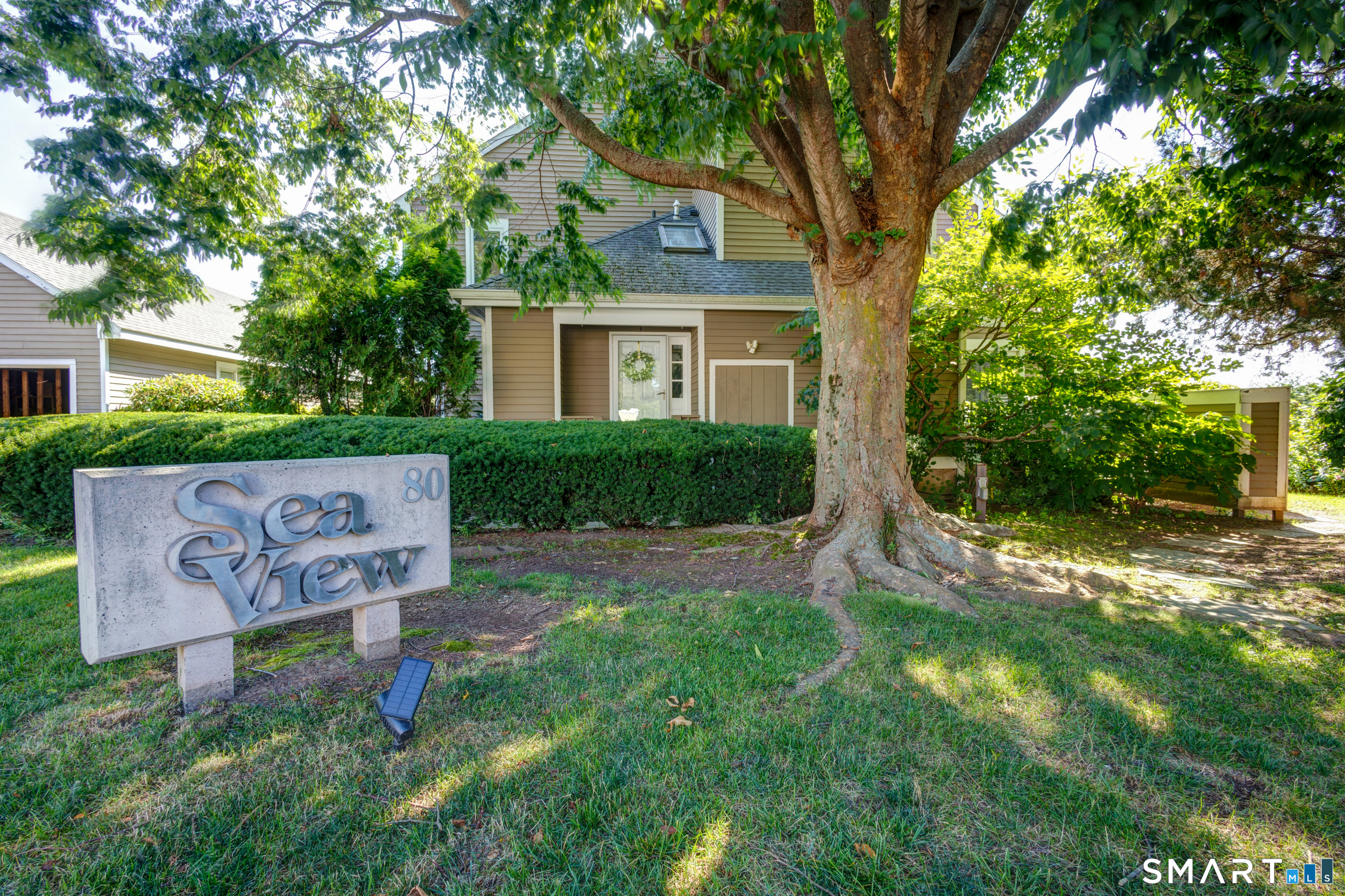 Experience the ease of low maintenance coastal living in this updated 1 bedroom, 1 1/2 bath condo with beautiful views of the salt marsh, river, and Long Island Sound. An inviting sun-filled, south facing end unit, the main level features hardwood floors, a kitchen with granite countertops and stainless steel appliances, and a family room with a cozy wood-burning fireplace. A flexible space off the family room with access to a private (newly updated) deck overlooking the water provides ideal spaces for work or relaxation. Lovely built-ins are found in the living room, while a powder room/half bath rounds out the main level. The upper level master bedroom suite offers a walk-in closet, in unit laundry, and a full bath with soaking tub and walk-in shower. Enjoy central A/C, natural gas, city water, detached one car garage and a storage shed. This sought after complex includes an inground pool and is perfectly located just a short stroll to the marina, town beach, commuter rail, and Guilford's vibrant historic village with boutiques, restaurants, and coffee shops. Can be sold furnished (negotiable); ideal for those seeking a turnkey, convenient lifestyle by the water.