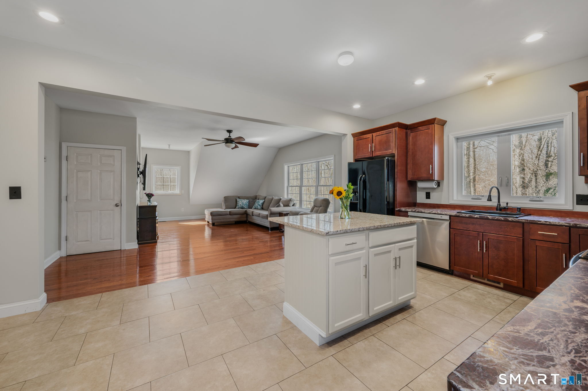 Tucked away at the end of a quiet cul-de-sac in desirable Ivoryton, this 15-year-young custom-built home offers the perfect blend of privacy, flexibility, and future potential. Thoughtfully designed with a "live like a ranch" layout, the main level features three bedrooms and two full baths, ideal for easy everyday living. The heart of the home is the open-concept kitchen and living area, perfect for both entertaining and relaxed living. The kitchen is appointed with granite countertops, stainless steel appliances, a center island, and ample space for a dining table. It flows seamlessly into the inviting living room, highlighted by newly installed hardwood floors that add warmth and style throughout. A separate laundry room on the main level adds convenience, while the 3 well-proportioned bedrooms offer comfort and functionality. The lower level expands your options with incredible versatility. With a private entrance, this space includes a fourth bedroom, full bath, and a large open area ready for your finishing touches-ideal for a potential in-law setup, guest suite, home office, or recreation space. Car enthusiasts and hobbyists will appreciate the oversized garage, offering generous space for vehicles, equipment, and storage. Adding even more value, the property includes a foundation already in place for a second two-car garage at the main level-plans have been thoughtfully considered, making future expansion seamless.