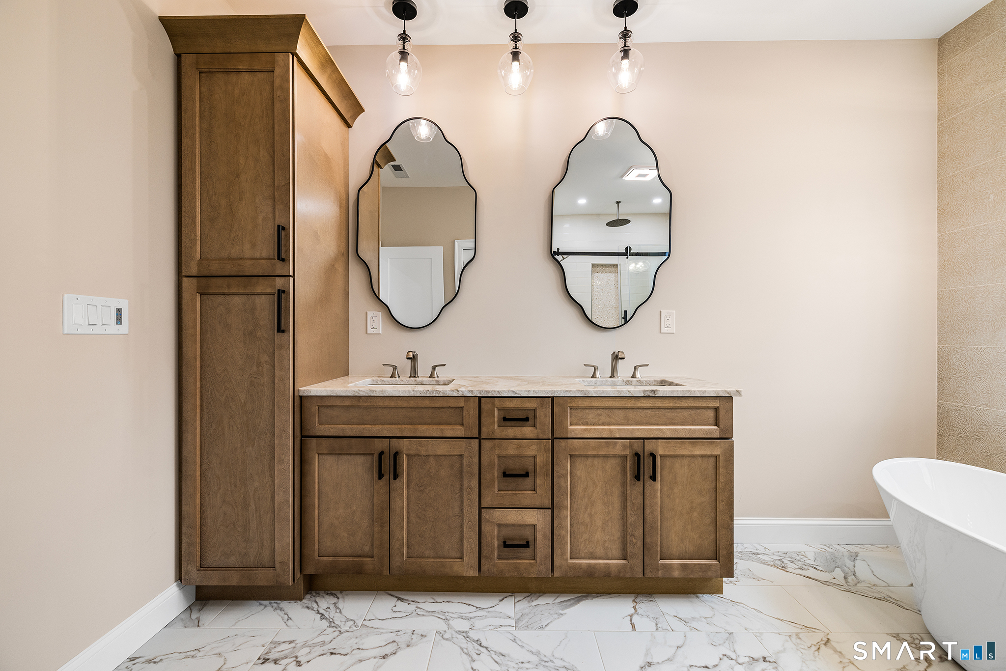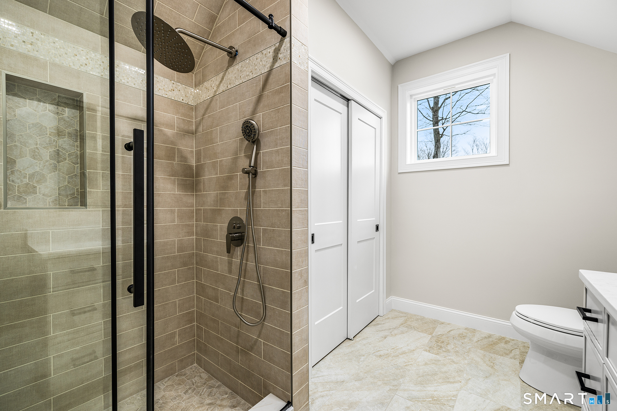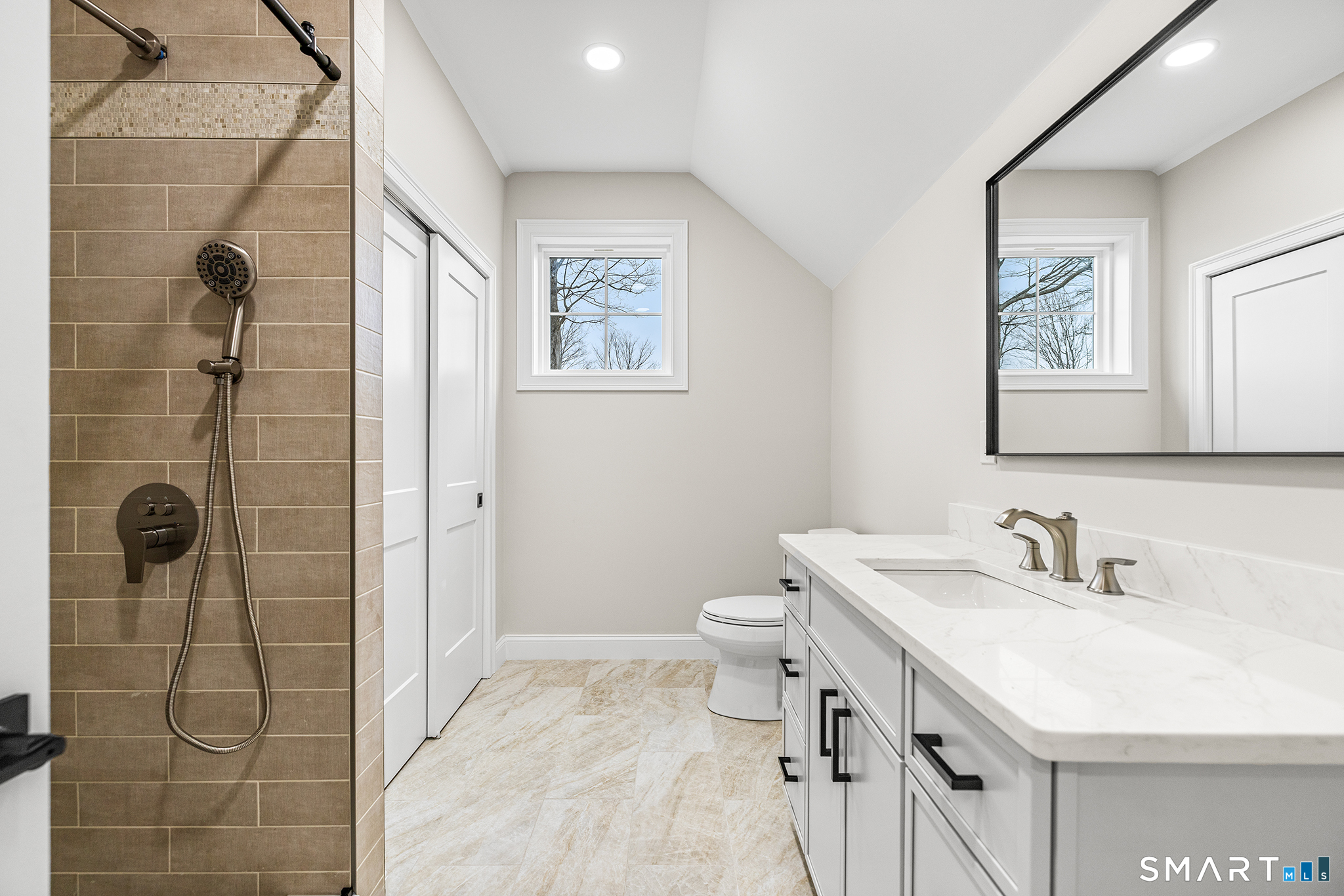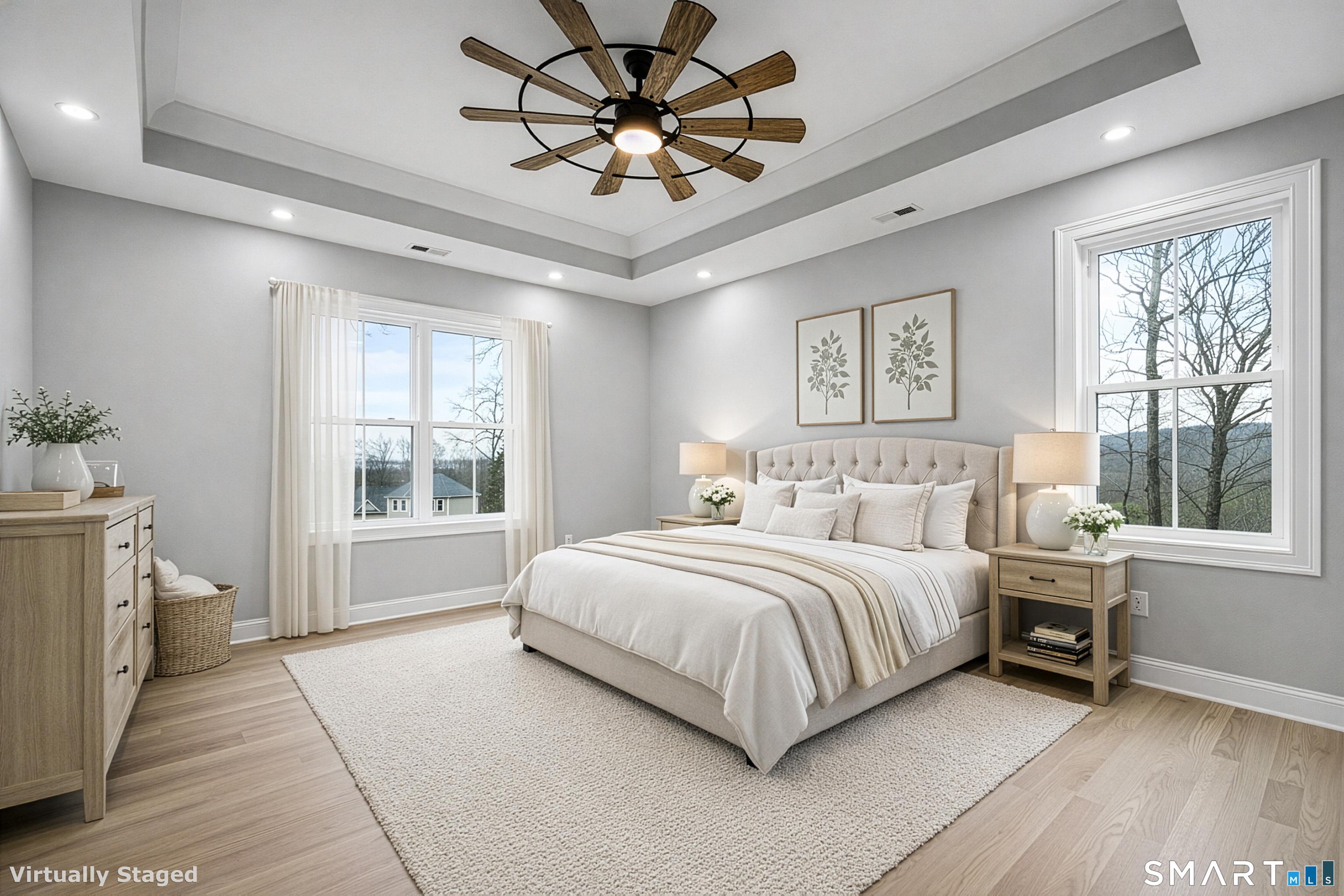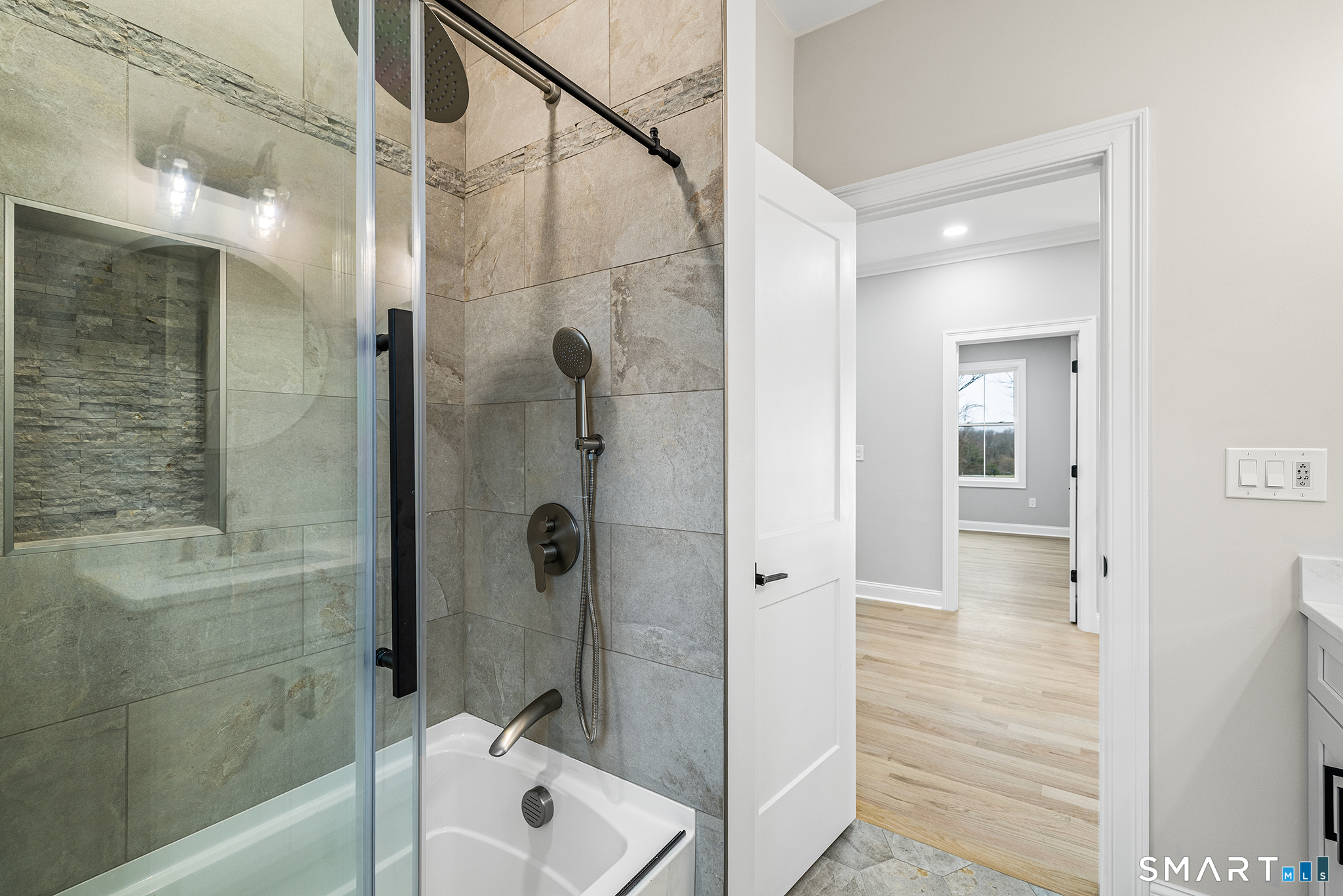 Newly constructed home offering over 3,100 sq ft of refined living space, privately set on 1.30+ acres in the desirable Chatham Ridge community, just minutes from Glastonbury. Thoughtfully designed with exceptional craftsmanship and elevated finishes, this home blends modern style with timeless design. The open-concept layout features 4 bedrooms, 4 bathrooms, and an oversized three-bay garage. A dramatic great room showcases a floor-to-ceiling geometric fireplace feature wall and expansive windows that fill the space with natural light, creating a striking focal point. The designer kitchen features a waterfall quartz peninsula with seating, full slab quartz backsplash, premium appliances, custom cabinetry with glass display accents, and a fully equipped butler's pantry. Upgrades include 9-foot ceilings on all three levels, extensive custom millwork, hardwood flooring throughout, designer tile, recessed lighting, triple-pane windows, and a high-efficiency three-zone HVAC system. Outdoor living features maintenance-free composite decking overlooking the private yard. A stamped concrete front walkway adds curb appeal, and the walk-out basement is pre-plumbed for a future bathroom and offers excellent potential for additional finished living space. Showings start 3/28/26