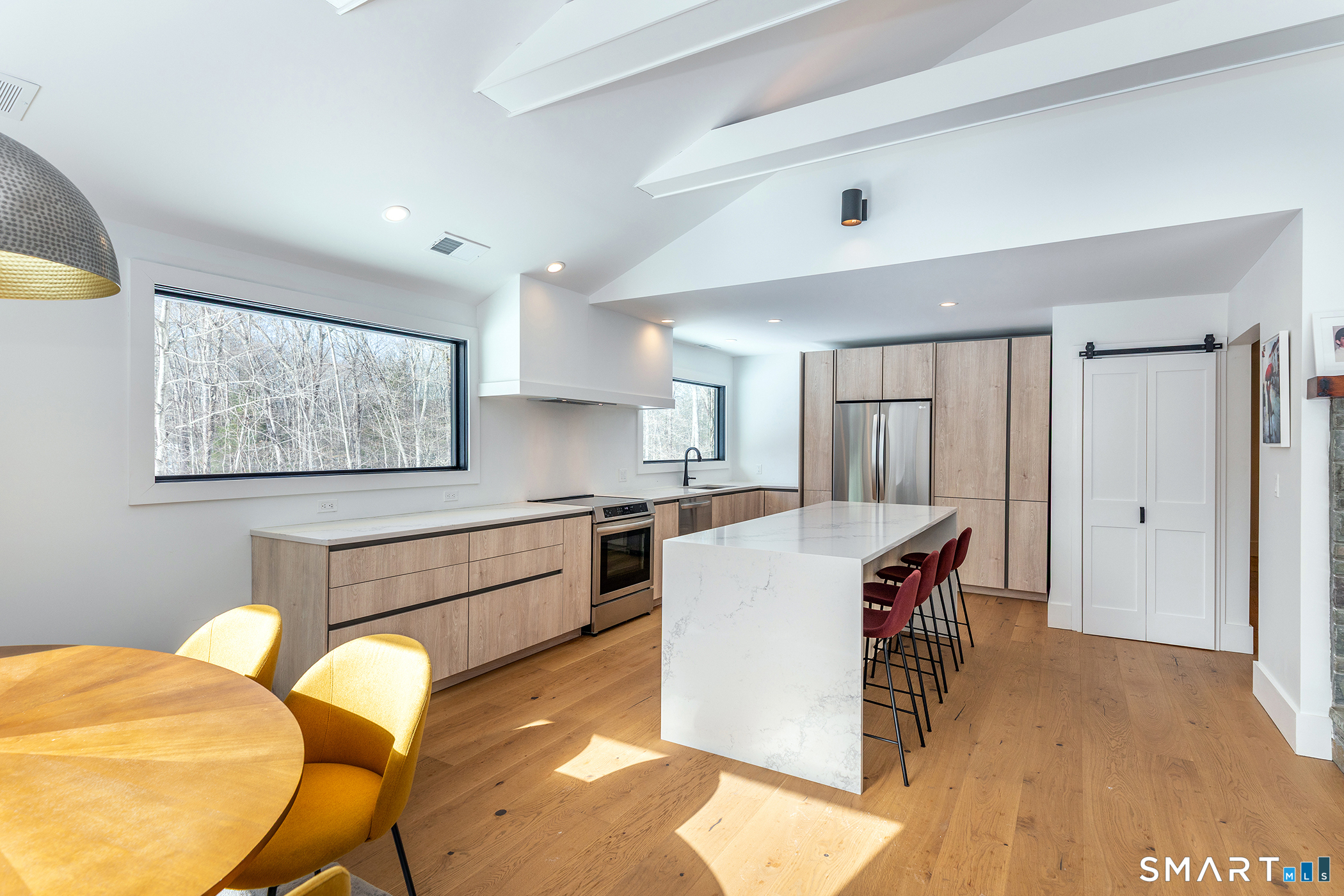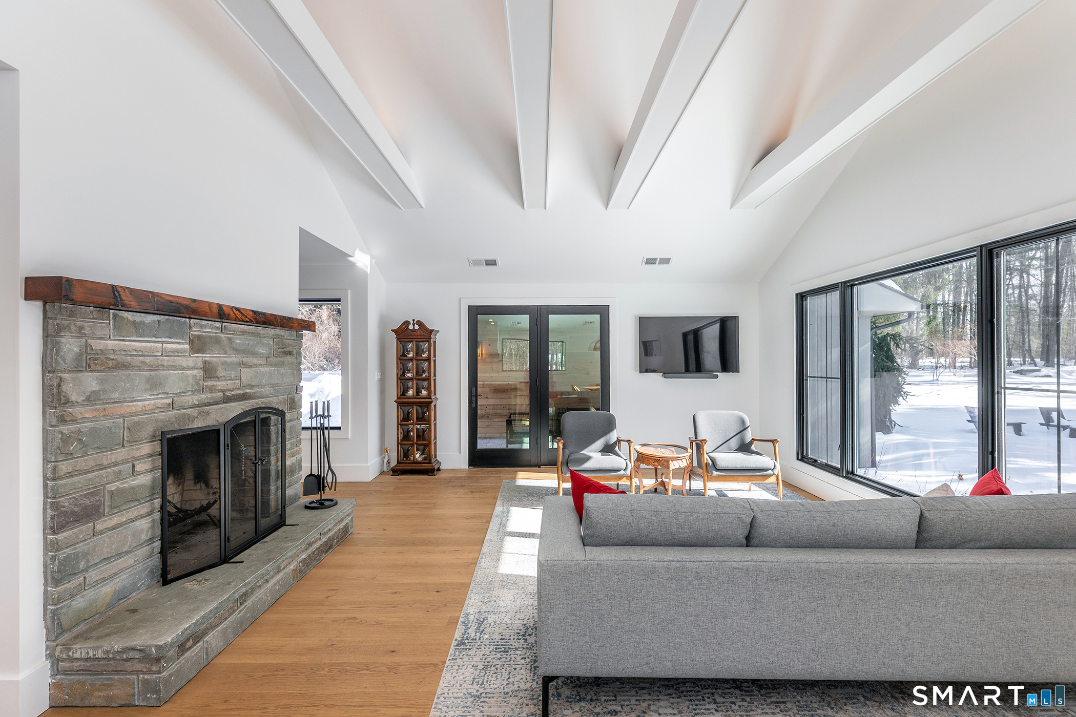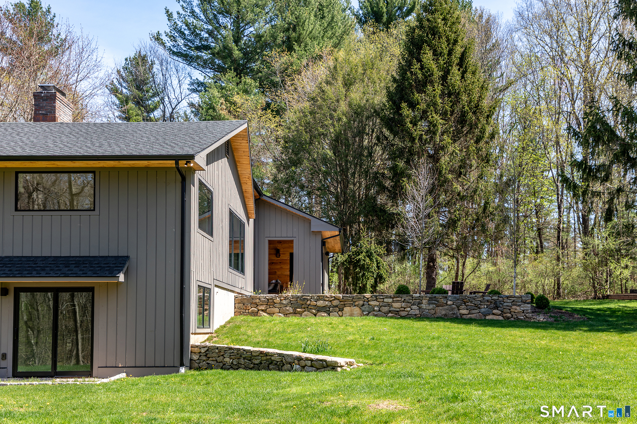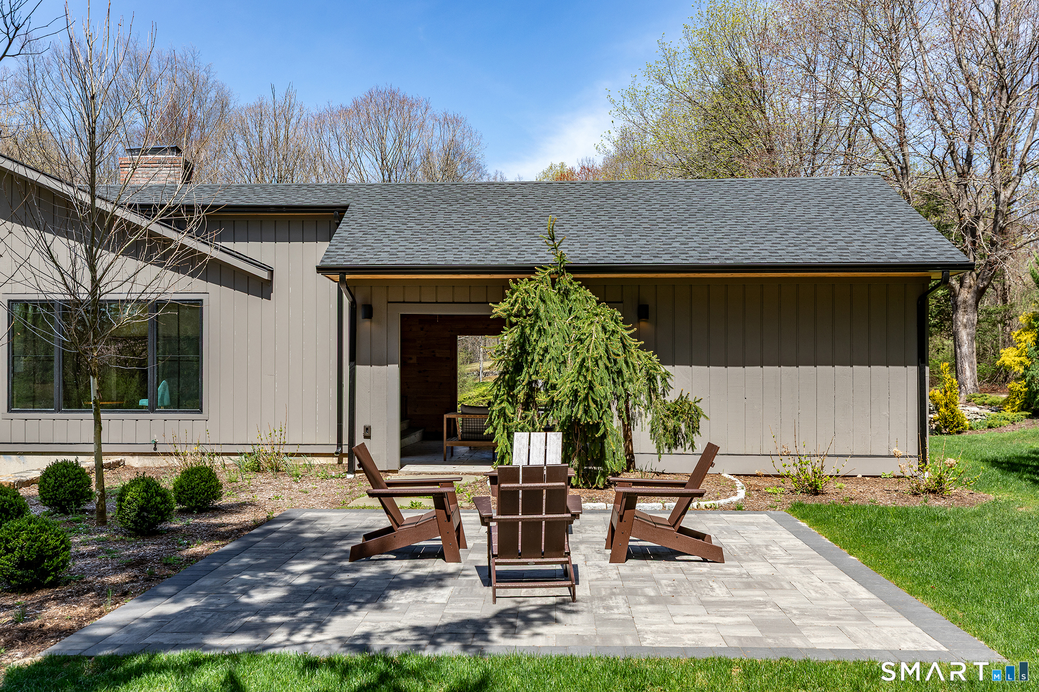 Light-filled, modern living on a private nearly 3-acre corner lot - with room to grow. Set on a beautifully positioned corner parcel, this fully renovated home is defined by natural light and flexibility. Expansive windows and vaulted ceilings create a bright, open feel throughout the main living spaces, bringing in sunlight from multiple exposures and connecting the home to its surrounding landscape. Completely transformed with high-end finishes and energy-efficient upgrades, the home offers the ultimate floor plan, featuring two first-floor ensuite options and close proximity to Roxbury Market, town tennis courts and Hurlburt Park.Beyond what's already been thoughtfully updated, the property offers meaningful future potential. The grounds are well-suited for additional features creating an opportunity to further enhance the outdoor experience over time. Transition to outdoor living through the integrated open porch, featuring a dramatic black-vaulted ceiling and stone tile flooring-ideal for lounging or future screening. The finished lower level adds another layer of versatility, with walk-out access and the ability to evolve with your needs-whether as a pool house, gym, office, creative studio, or additional guest space. A rare combination of move-in-ready ease and long-term optionality, all set on a private and peaceful setting.
