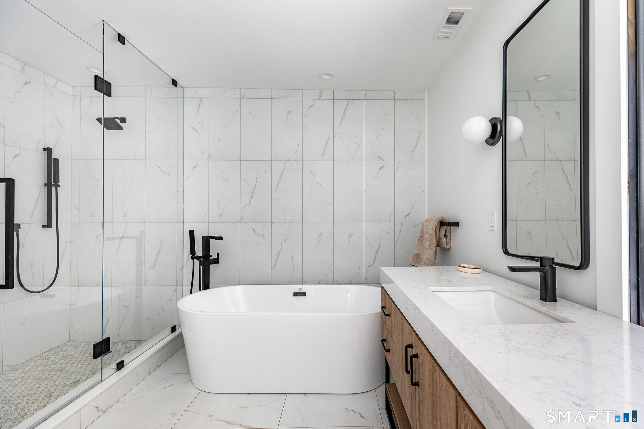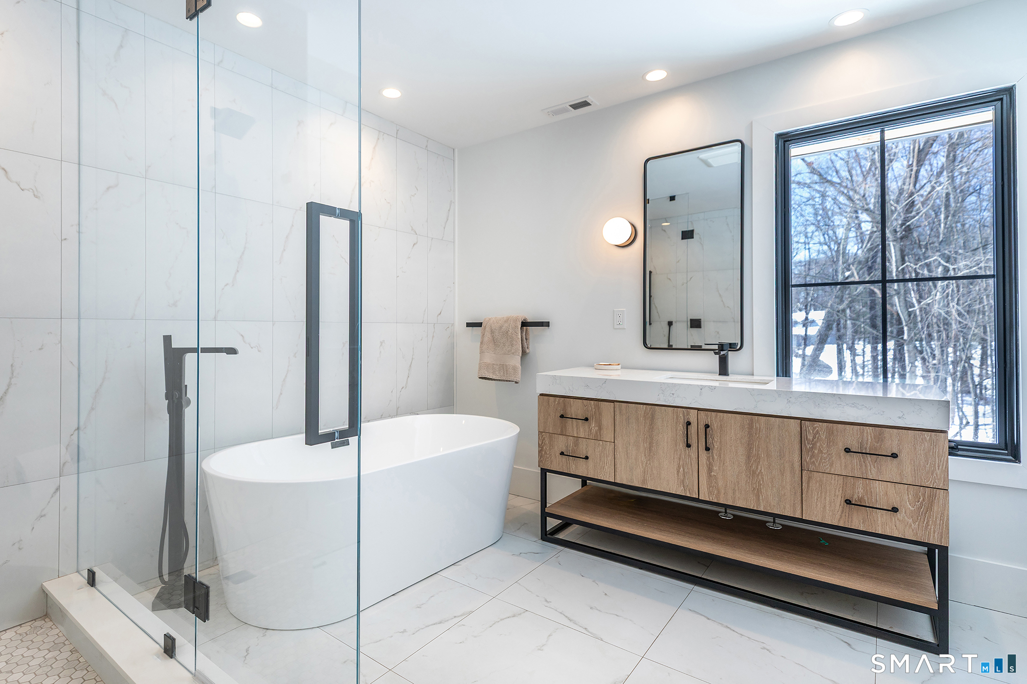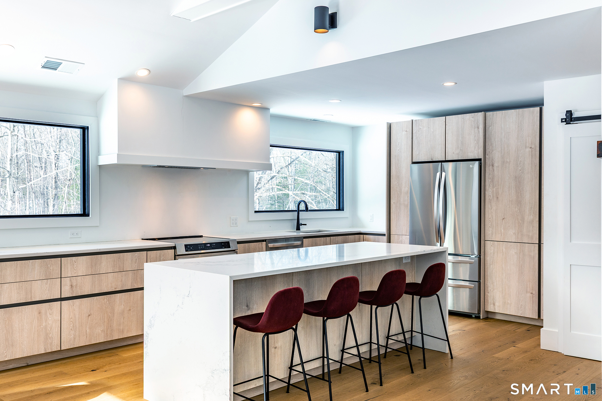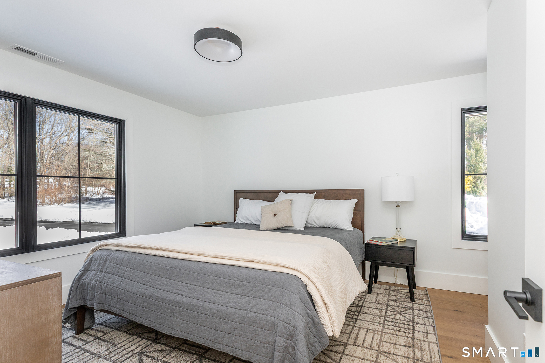 Light-filled, modern living on a private nearly 3-acre corner lot - with room to grow. Set on a beautifully positioned corner parcel, this fully renovated home is defined by natural light and flexibility. Expansive windows and vaulted ceilings create a bright, open feel throughout the main living spaces, bringing in sunlight from multiple exposures and connecting the home to its surrounding landscape. Completely transformed with high-end finishes and energy-efficient upgrades, the home offers the ultimate floor plan, featuring two first-floor ensuite options and close proximity to Roxbury Market, town tennis courts and Hurlburt Park.Beyond what's already been thoughtfully updated, the property offers meaningful future potential. The grounds are well-suited for additional features creating an opportunity to further enhance the outdoor experience over time. Transition to outdoor living through the integrated open porch, featuring a dramatic black-vaulted ceiling and stone tile flooring-ideal for lounging or future screening. The finished lower level adds another layer of versatility, with walk-out access and the ability to evolve with your needs-whether as a pool house, gym, office, creative studio, or additional guest space. A rare combination of move-in-ready ease and long-term optionality, all set on a private and peaceful setting.