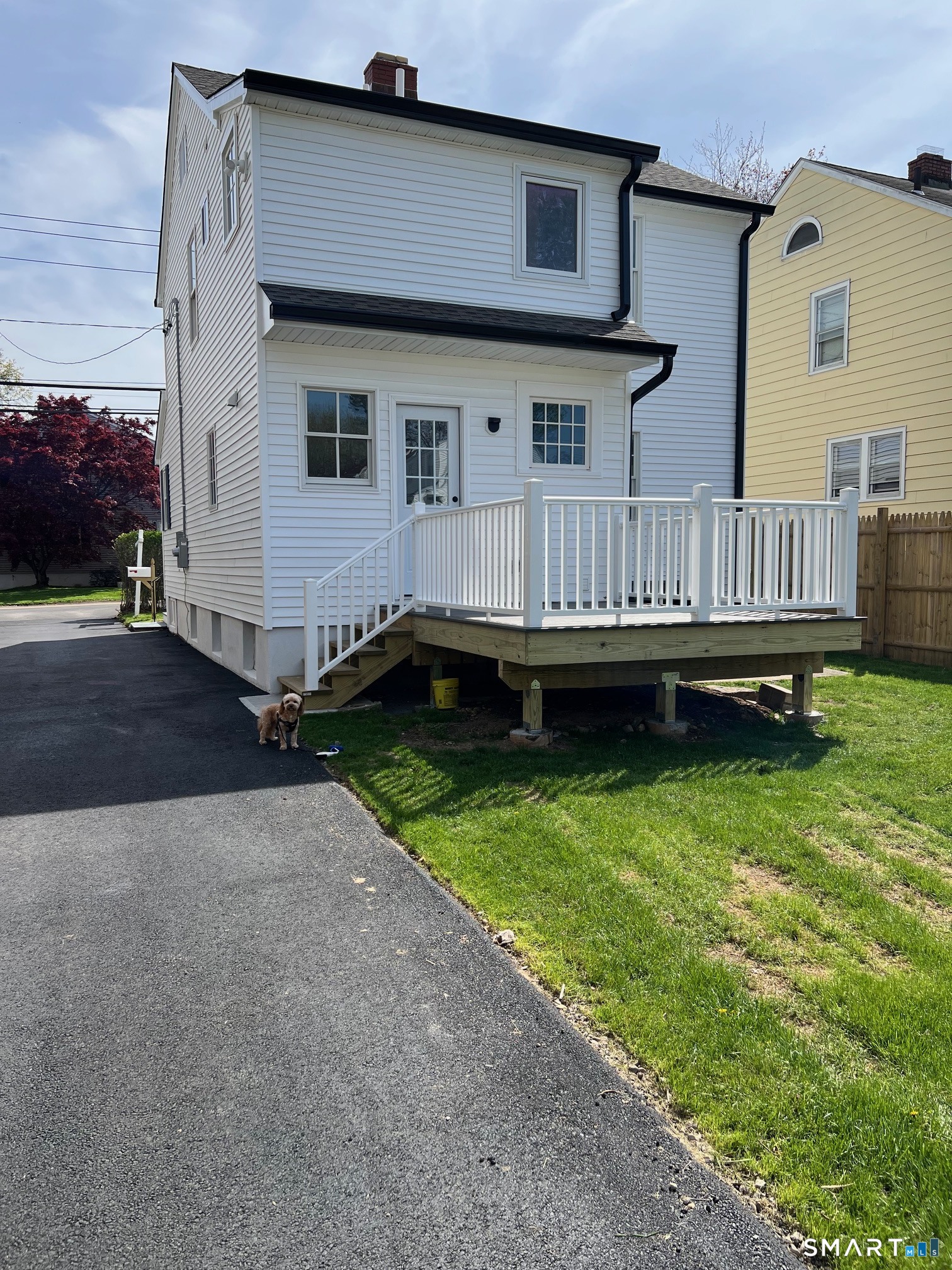 This completely renovated single-family home features 3 bedrooms, 2.5 bathrooms and modern updates throughout. Hardwood floors, shiplap accents, high-quality tile and hardware selections add style and durability. The Eat-in kitchen includes LG stainless steel appliances, quartz countertops and an under-counter beverage cooler plus breakfast bar. The home also offers a dedicated laundry room on the main level and a den/office space. Gas heat and hot water, central air conditioning and a wood-burning fireplace ensure comfort and efficiency. Private deck, walk-up attic for storage or future expansion, spray foam insulation, and a full dry basement with Bilco doors for easy access. Classic clapboard-style exterior completes the appealing curb appeal. Move-in ready with thoughtful renovations and a practical layout in a convenient Stamford location. Perfect for buyers wanting updated features and low maintenance. 2 minute Walk to Boccuzzi Park Beach!