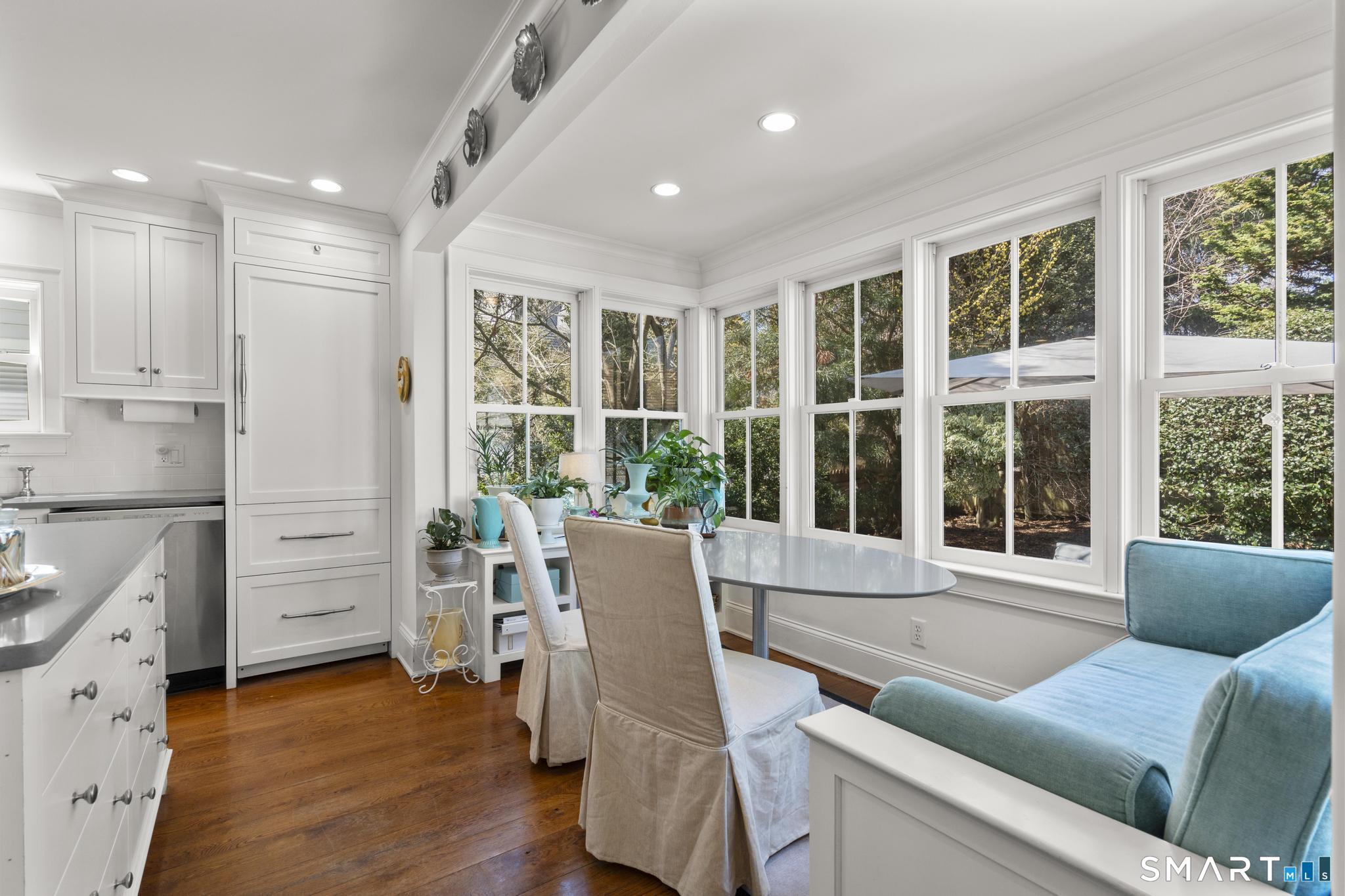 Charming Pied-a-terre in Connecticut's alluring Southport Village! Whether you're looking for a permanent residence or your home away from home, this is a perfect vacation home or condo alternative. Leave without a care or immerse yourself in this historic maritime enclave. A rare find in the heart of the Village, this home is steps from the neighborhood eateries, shops, metro, pub, bakery, post office, Equinox, Southport Harbor, and Southport Beach. -All an hour from NYC! Cherished outdoor spaces are part of what makes this home so special. From the covered front porch, to the hidden garden terrace beneath, and the enchanting rear stone patio among lush gardens, there's always a picturesque and private retreat to enjoy. Inside, elegant interiors unfold. An inviting Living Room with hardwood floors, hidden TV, and a gas fireplace opens to the Dining Area. The renovated Chef's Kitchen features a Caesarstone island, stainless appliances, and a light-filled eating area with built-ins and a banquette overlooking the garden. Upstairs, is a serene Primary Suite and stunning spa bath, hardwood floors, and 9-foot ceiling. A Guest Bedroom, hall bath, laundry, and access to Attic Storage complete the 2nd floor. The Walk-out Lower Level offers another charming room with a second gas fireplace. It connects to a project area with a porcelain sink, storage, & separate entrance, offering guest-suite potential. Character, convenience, and privacy in a cherished seaside village!