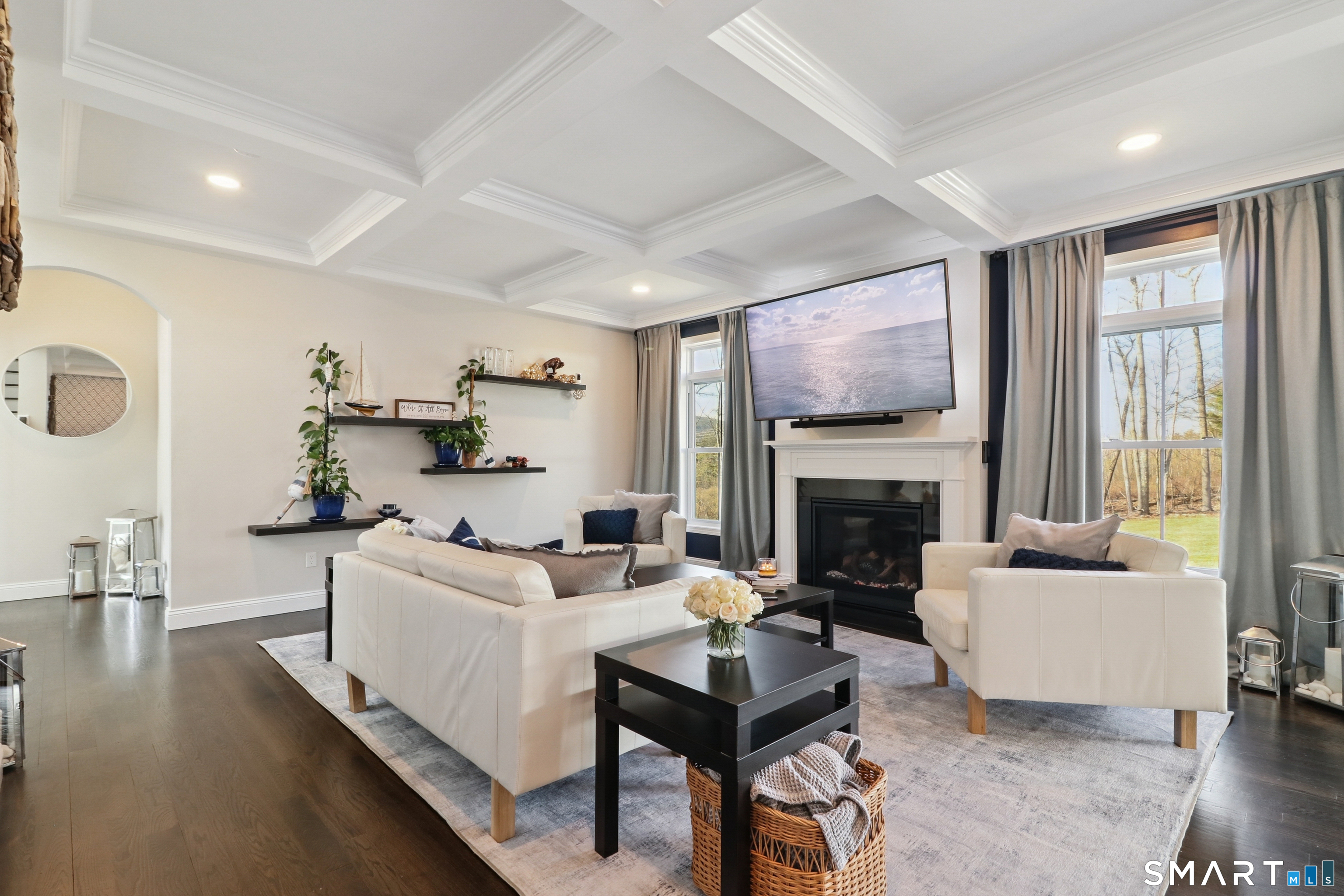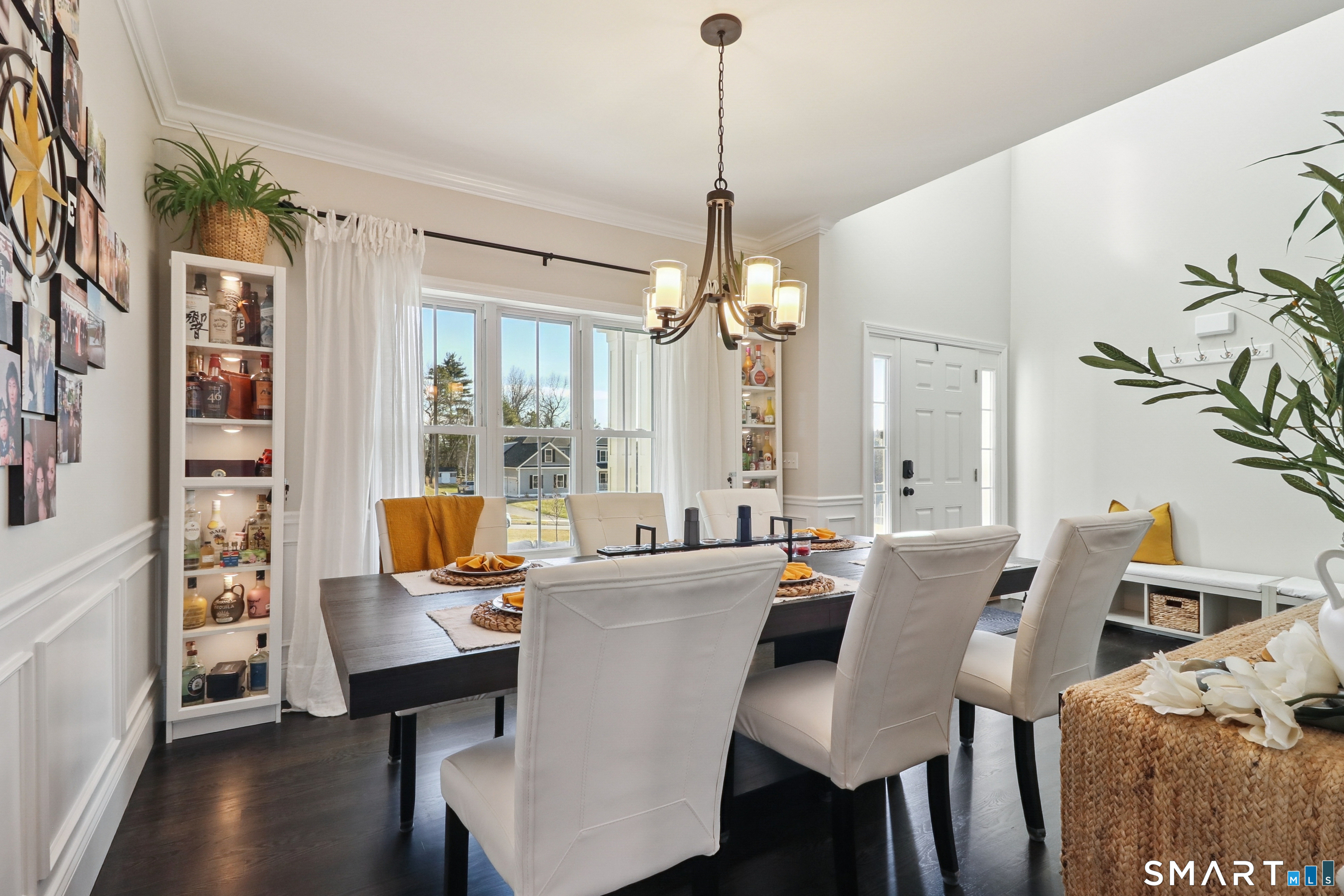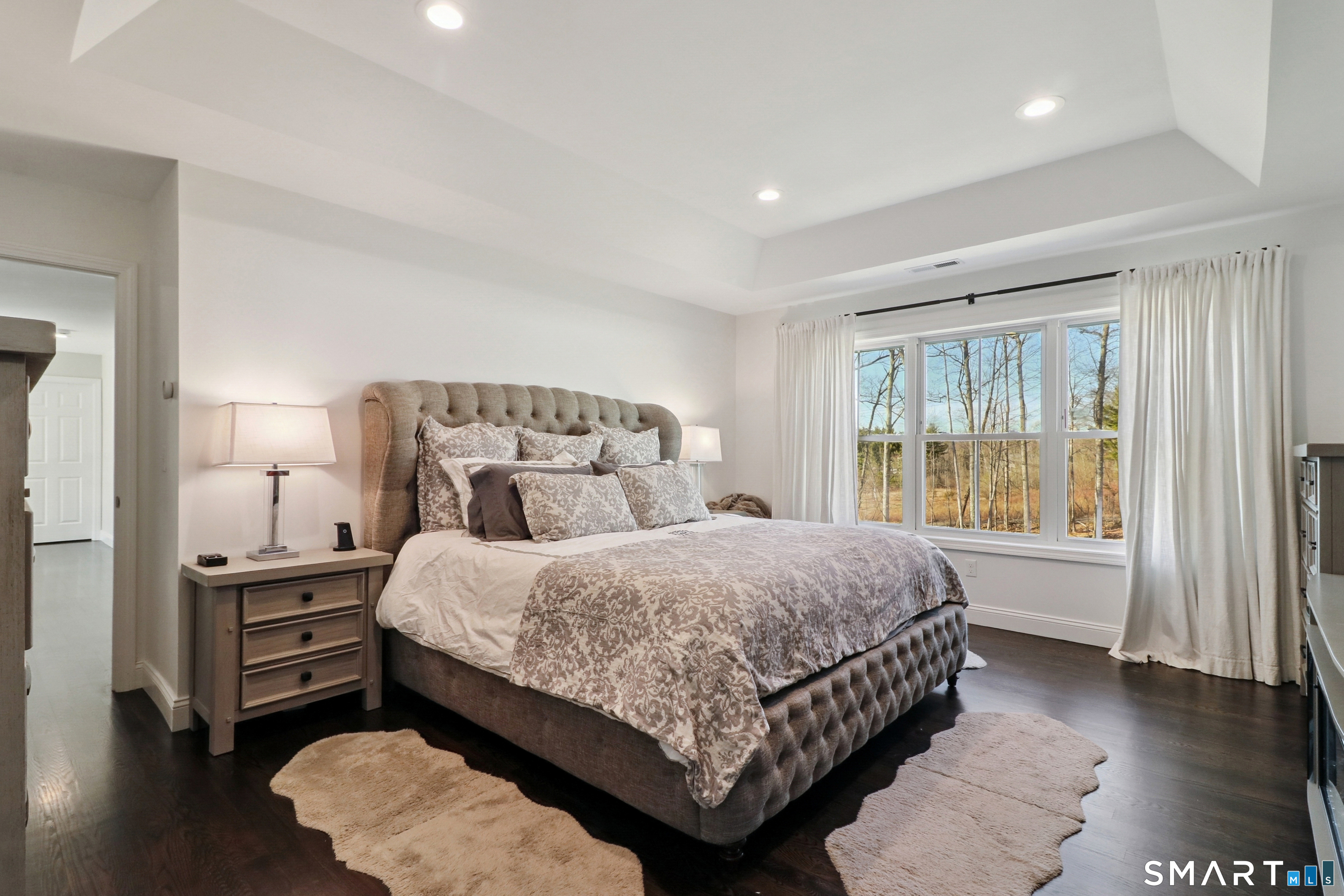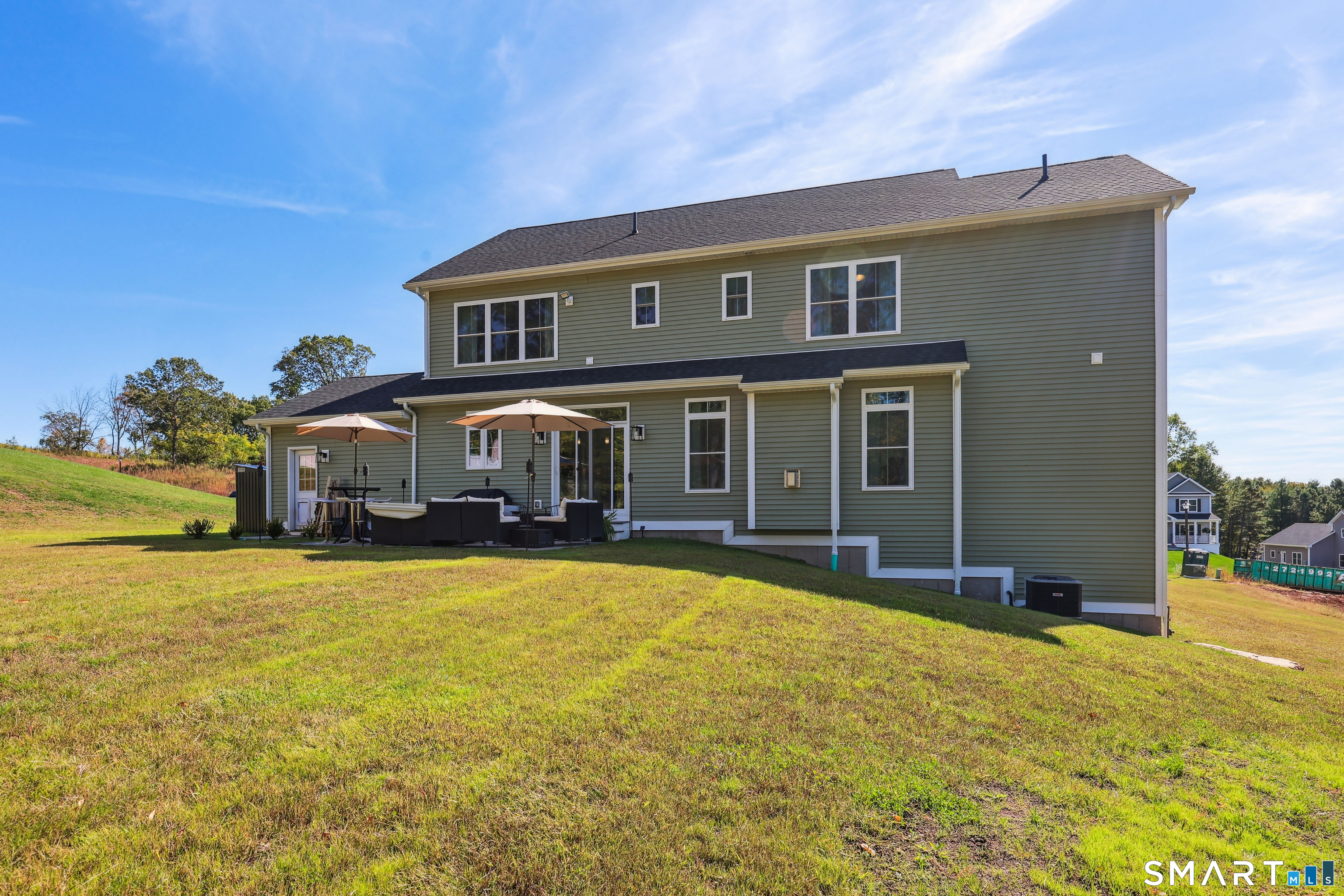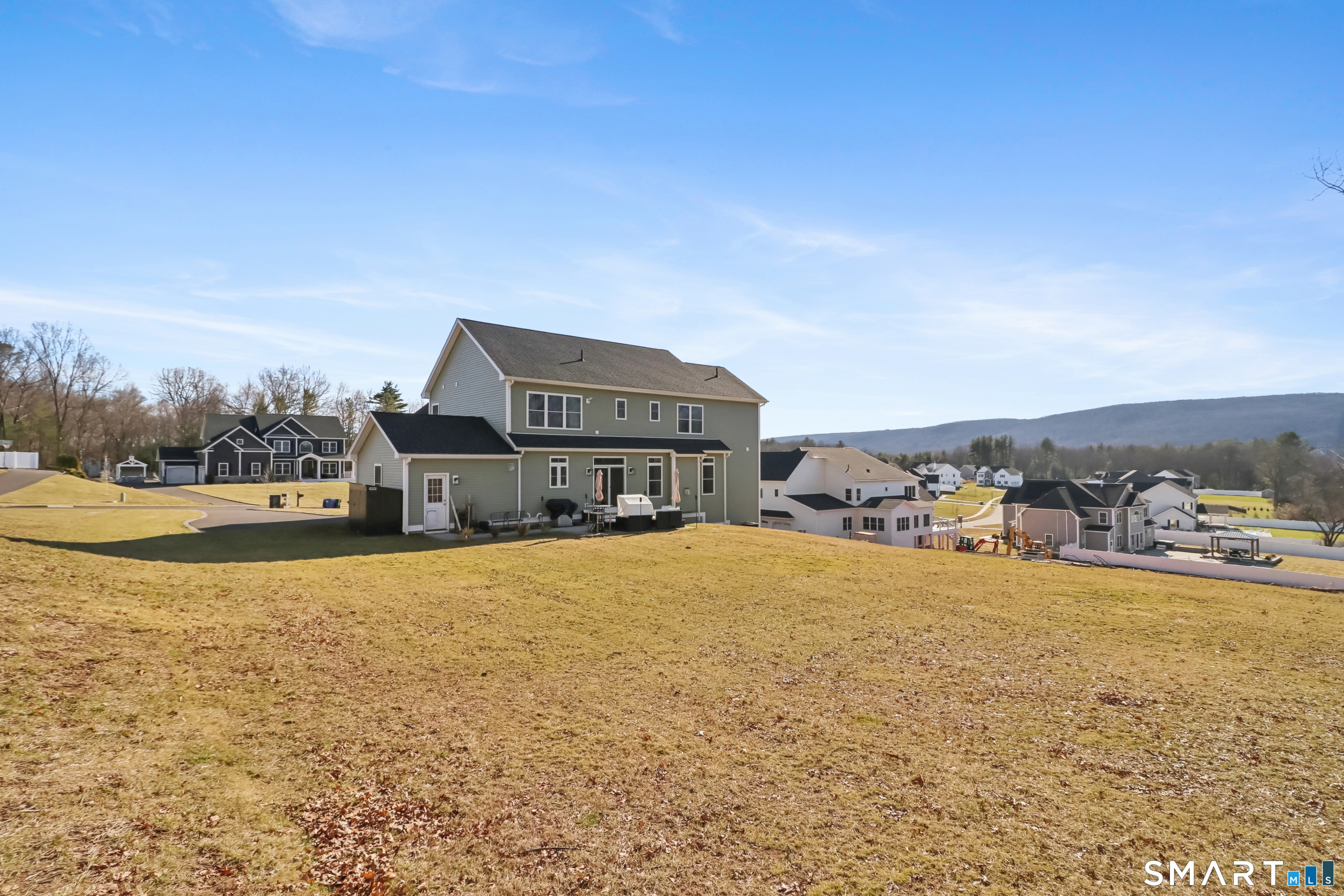 Exquisite opportunity to own at desirable Winchester Estates in Southington! Thoughtfully crafted with 5 bedrooms and 3 full baths, this nearly new home is boasting with natural light and elevated upgrades throughout. A striking two-story foyer introduces a seamless flow into the dining area and coffered-ceiling living room with gas fireplace. At the center of the home, the kitchen is both functional and beautifully appointed, featuring an oversized granite island, wall oven and microwave, gas cooktop, wine fridge, coffee bar, generous storage, and pantry closet. Sliding doors extend the living space outdoors to a private patio with stunning mountain views. A main-level bedroom provides flexibility for guests, in-law living, or a quiet workspace, with a full bath nearby. Retreat upstairs to the primary suite, complete with tray ceiling, expansive multi-room walk-in closet, and spa-inspired bath with dual vanities, soaking tub, and tiled steam shower. Three additional bedrooms, a shared full bath, and fully equipped laundry room complete the upper level. Golf enthusiasts will appreciate the walk-out lower level with dedicated space designed to accommodate a golf simulator. Additional features include a mudroom with Deacon's bench, keyless smart entry, invisible dog fence, and 3-bay garage featuring an oversized steeple bay with high-pitch track. Convenient to West Street and I-84. A polished, move-in ready home - even more impressive in person! Built by Lovley Development.