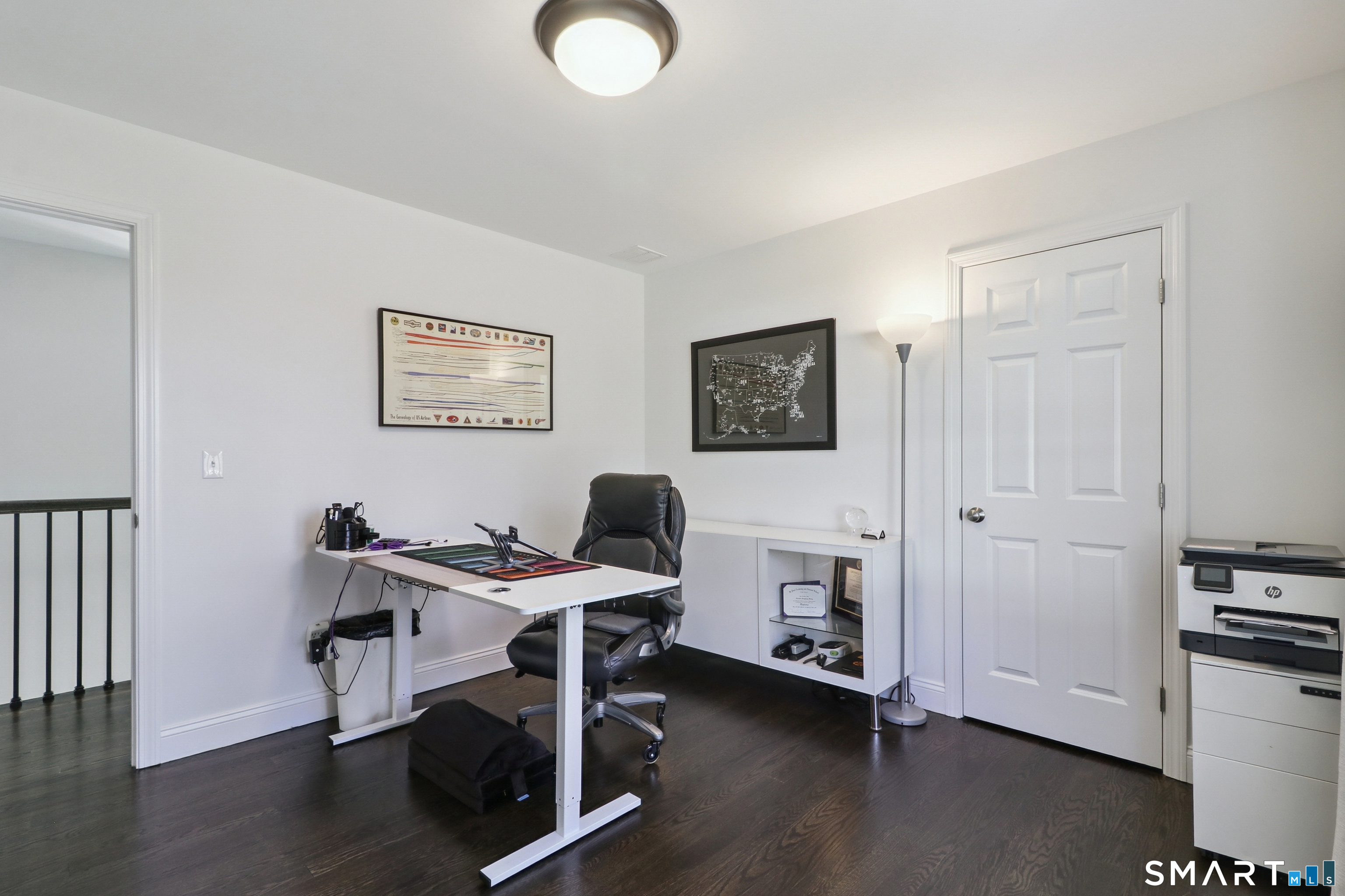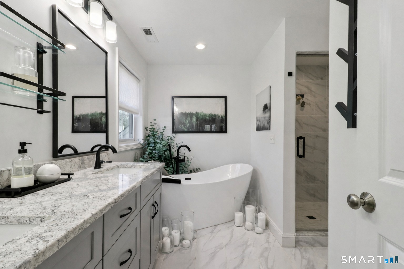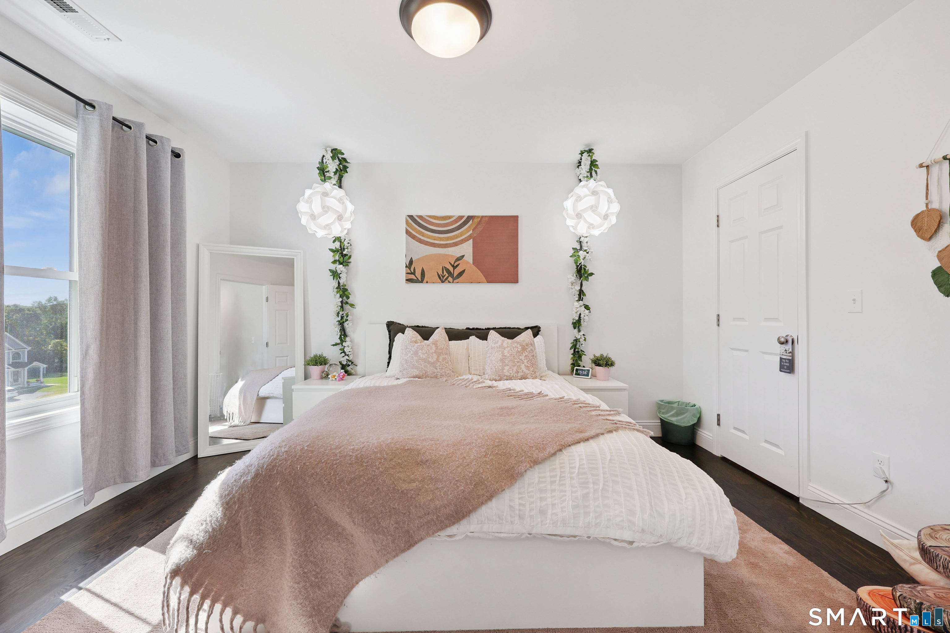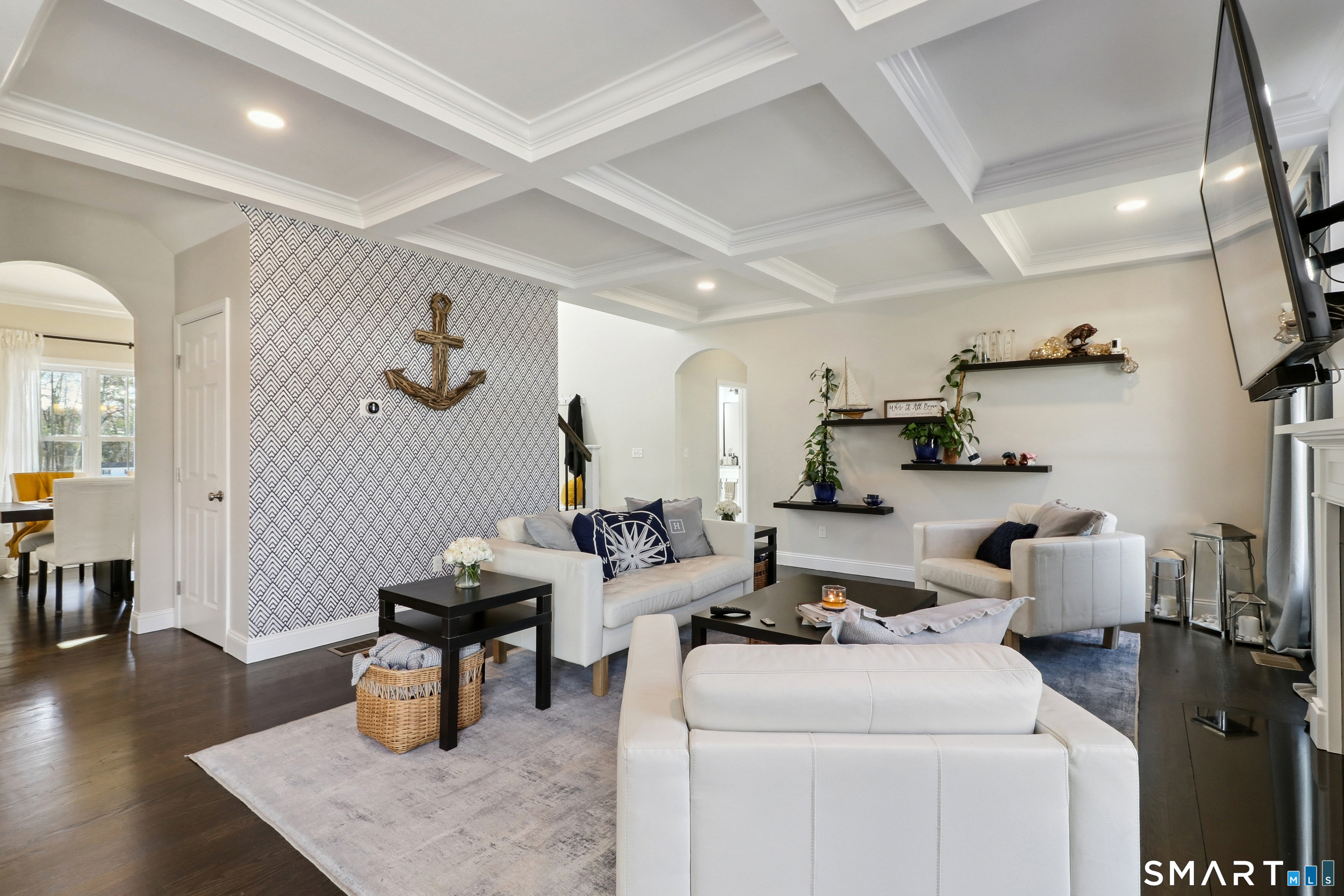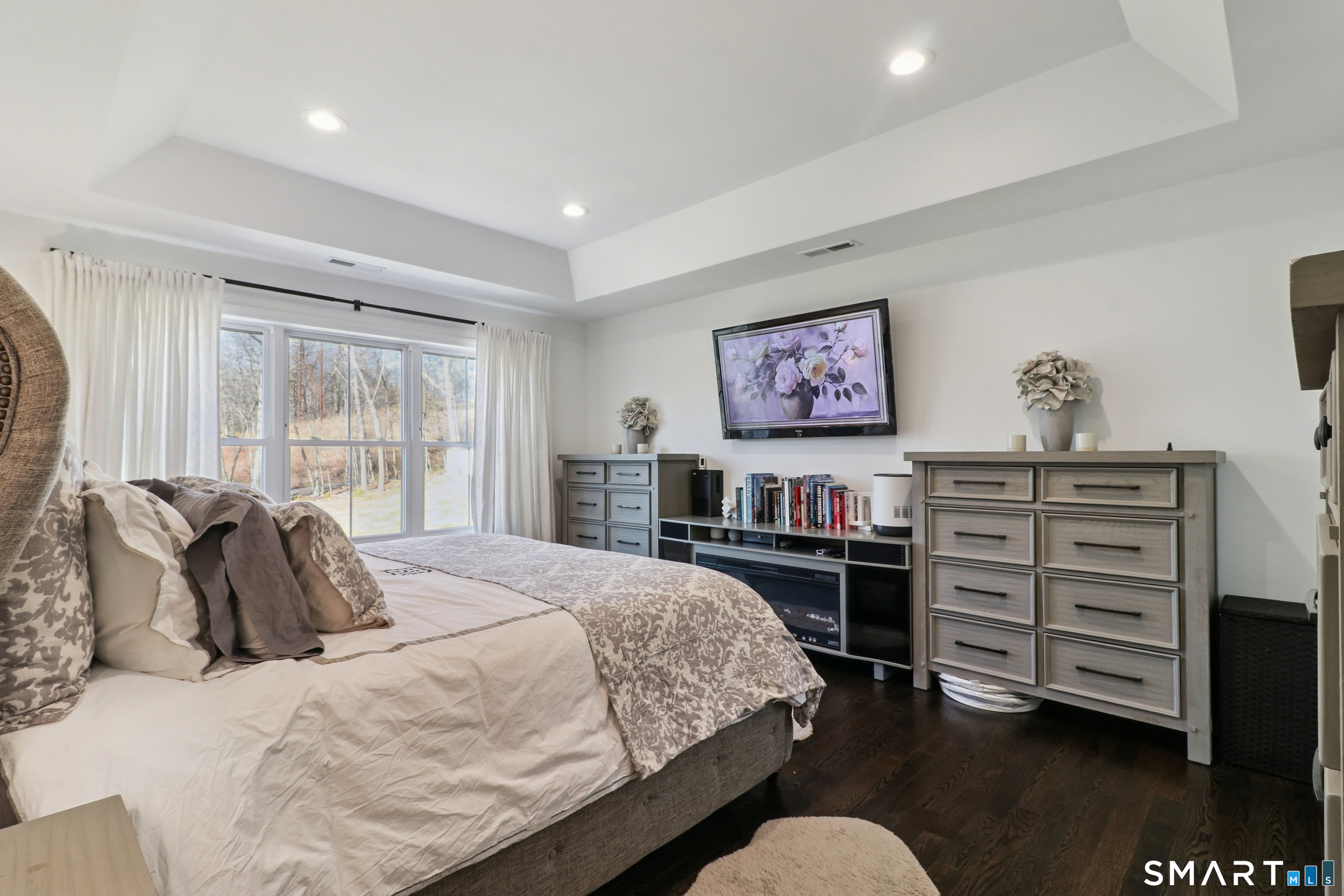 Exquisite opportunity to own at desirable Winchester Estates in Southington! Thoughtfully crafted with 5 bedrooms and 3 full baths, this nearly new home is boasting with natural light and elevated upgrades throughout. A striking two-story foyer introduces a seamless flow into the dining area and coffered-ceiling living room with gas fireplace. At the center of the home, the kitchen is both functional and beautifully appointed, featuring an oversized granite island, wall oven and microwave, gas cooktop, wine fridge, coffee bar, generous storage, and pantry closet. Sliding doors extend the living space outdoors to a private patio with stunning mountain views. A main-level bedroom provides flexibility for guests, in-law living, or a quiet workspace, with a full bath nearby. Retreat upstairs to the primary suite, complete with tray ceiling, expansive multi-room walk-in closet, and spa-inspired bath with dual vanities, soaking tub, and tiled steam shower. Three additional bedrooms, a shared full bath, and fully equipped laundry room complete the upper level. Golf enthusiasts will appreciate the walk-out lower level with dedicated space designed to accommodate a golf simulator. Additional features include a mudroom with Deacon's bench, keyless smart entry, invisible dog fence, and 3-bay garage featuring an oversized steeple bay with high-pitch track. Convenient to West Street and I-84. A polished, move-in ready home - even more impressive in person! Built by Lovley Development.