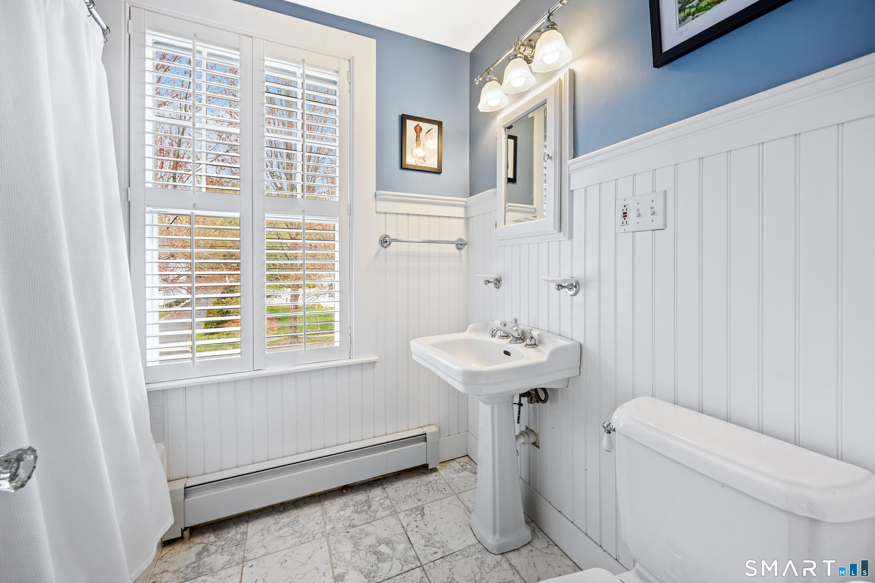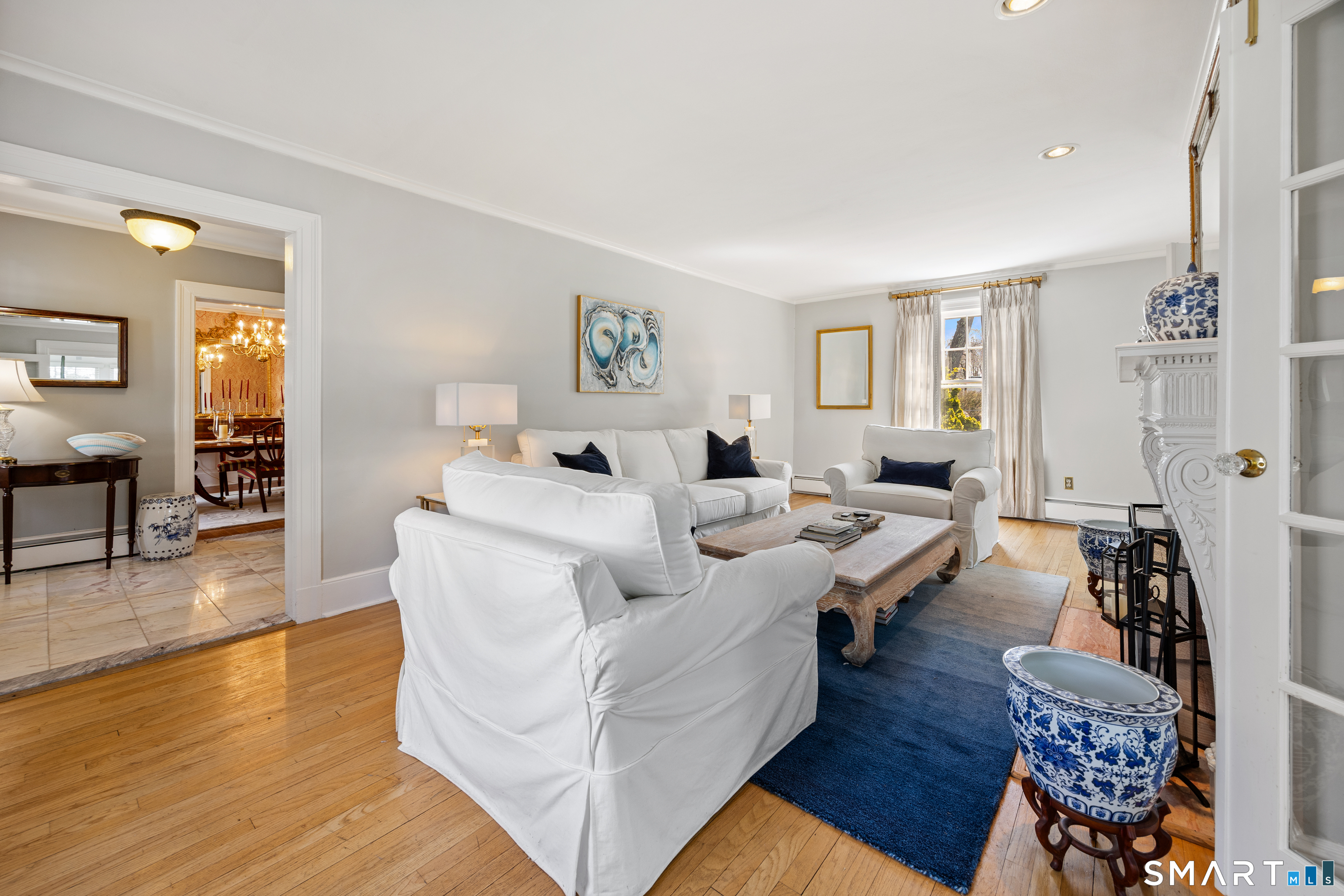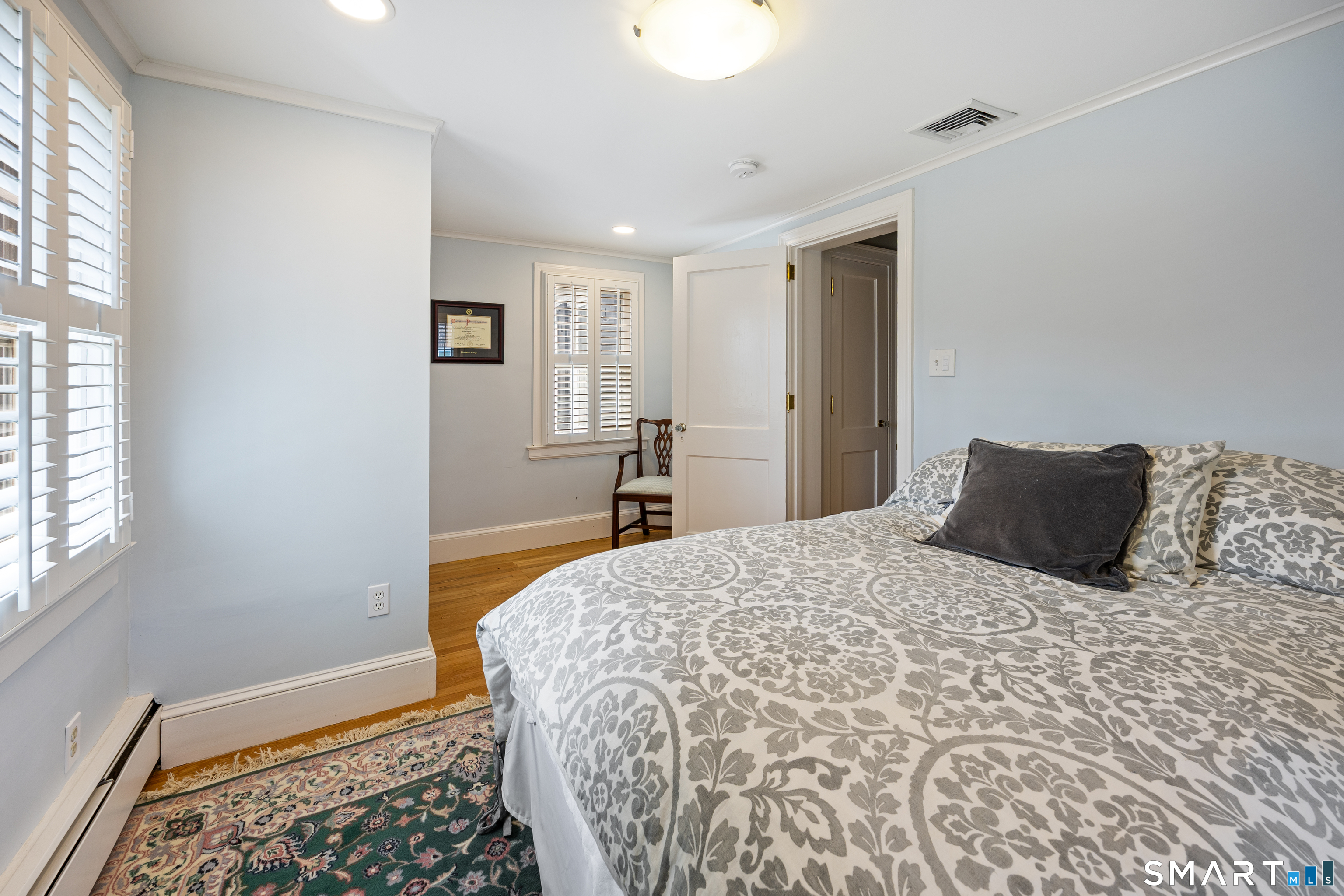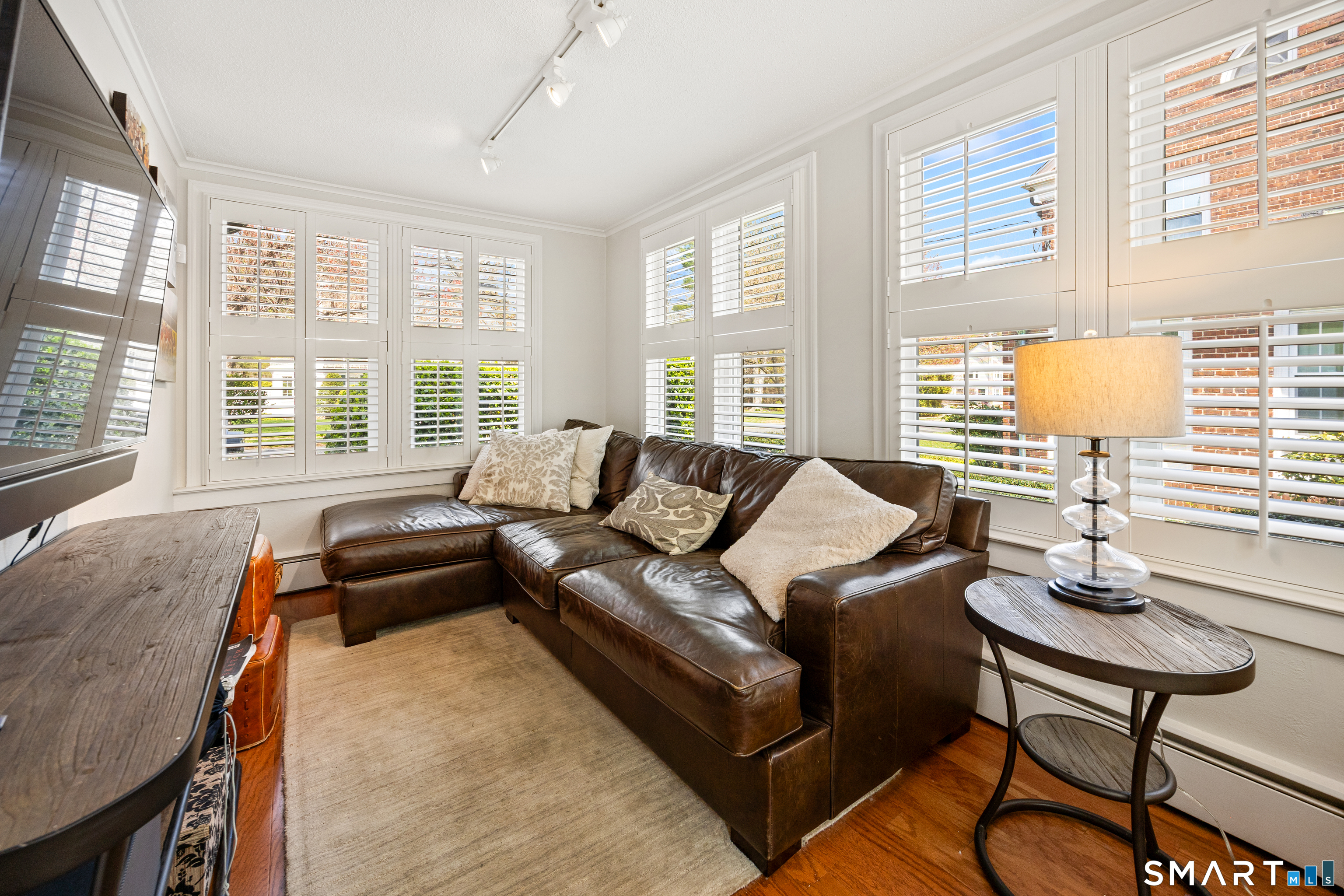 Elegant West End Federal Colonial near the Shuttle Meadow Country Club! This rarely available residence blends timeless architecture with modern sophistication across four beautifully appointed levels. Offering 6 bedrooms and 4.5 baths, this home features a thoughtfully designed layout ideal for both everyday living and upscale entertaining. The gourmet eat-in kitchen is outfitted with granite countertops and double stainless steel appliances, opening up to an cozy den with rich hardwood floors and custom shutters found throughout this home. A gracious dining room with custom built-ins and designer lighting sets the stage for memorable gatherings, while the marble foyer opens to a refined living room with a gas fireplace with marble surround. A private study with custom cabinetry provides an elegant work-from-home retreat. The second floor offers a serene primary suite with a steam shower, 2 additional bedrooms, a full bath and a walk-in dressing room. The third floor provides even more versatility , featuring another bedroom, a full bath with tub and a private office space. The finished lower level features a bar and lounge area for effortless entertaining. Additional highlights include a whole-home Sonos sound system spanning four floors, updated exterior lighting, irrigation system, outbuilding with water, two-car garage, and a newer composite slate roof. This exceptional property delivers luxury and comfort in one of New Britain's most coveted neighborhoods.