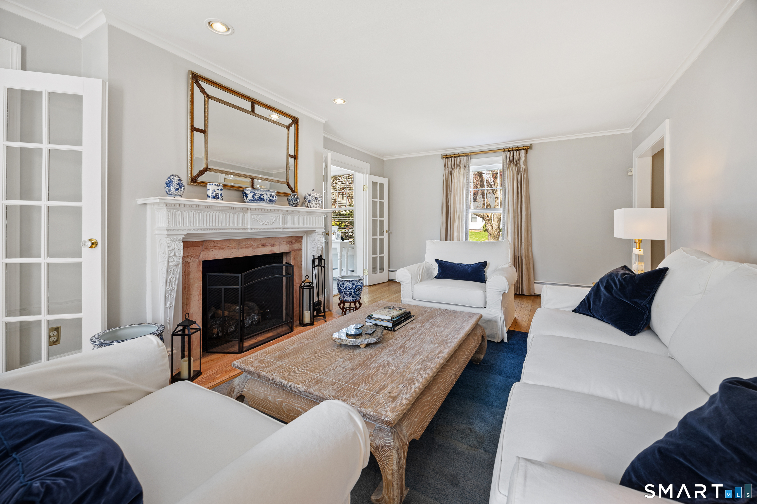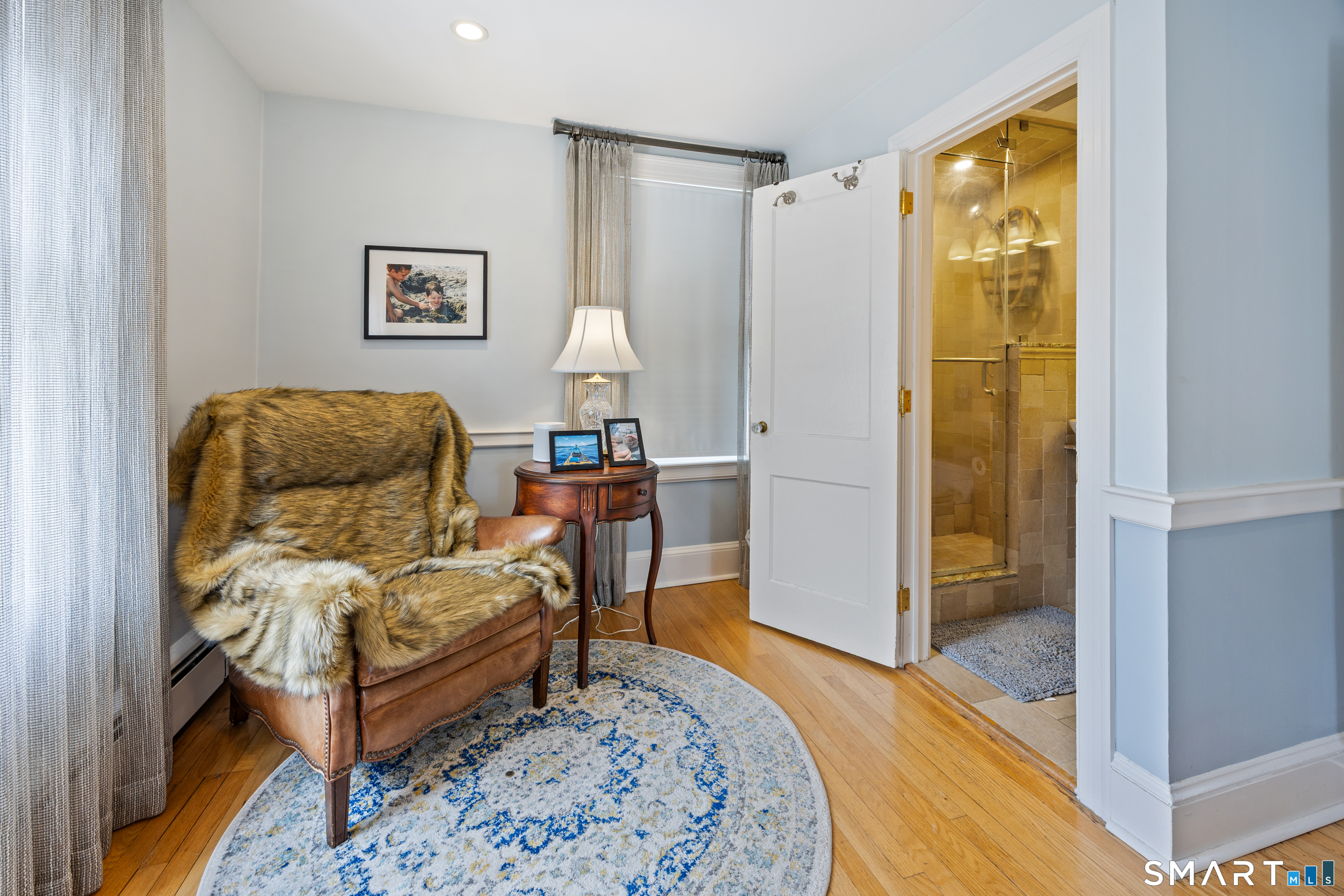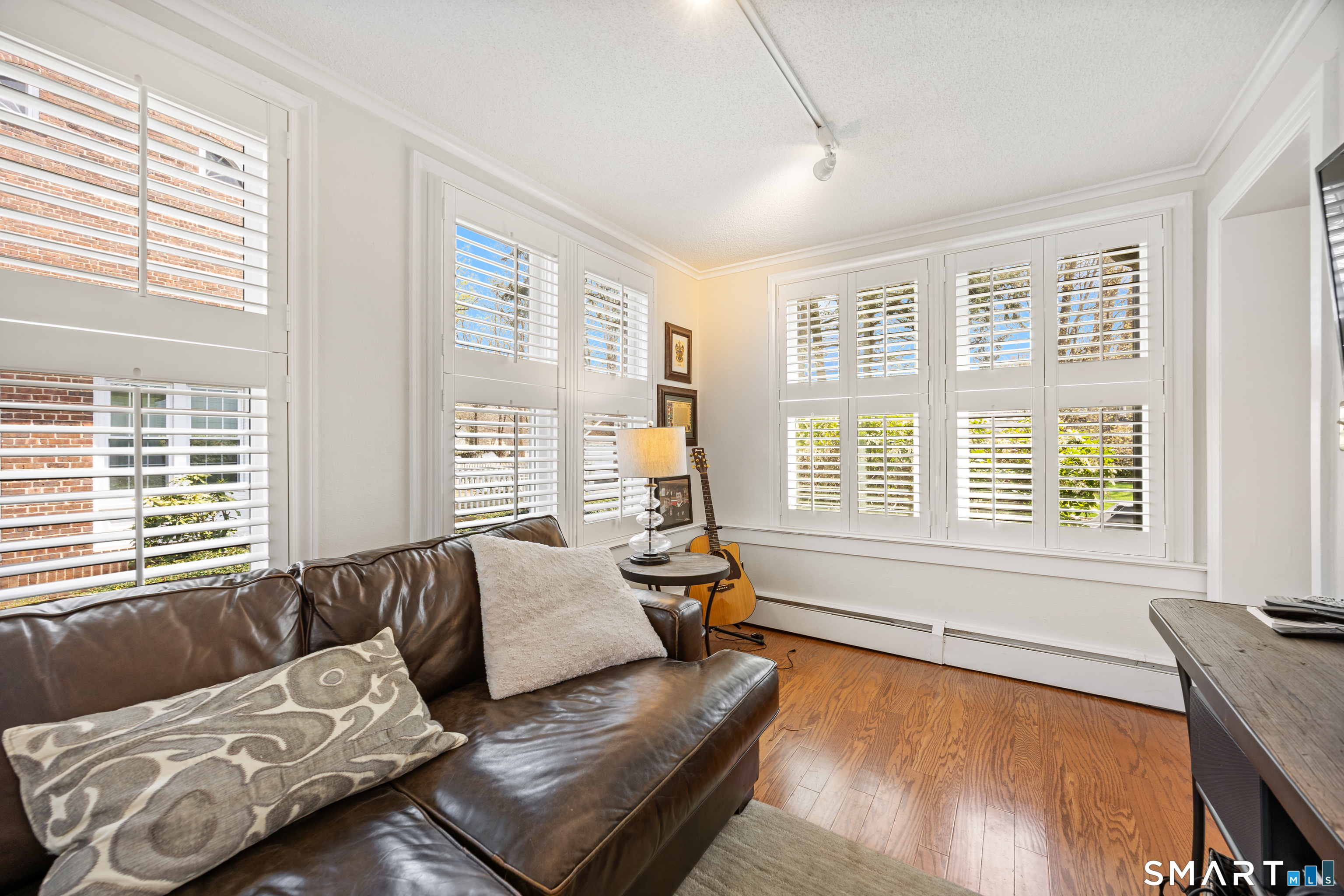 Elegant West End Federal Colonial near the Shuttle Meadow Country Club! This rarely available residence blends timeless architecture with modern sophistication across four beautifully appointed levels. Offering 6 bedrooms and 4.5 baths, this home features a thoughtfully designed layout ideal for both everyday living and upscale entertaining. The gourmet eat-in kitchen is outfitted with granite countertops and double stainless steel appliances, opening up to an cozy den with rich hardwood floors and custom shutters found throughout this home. A gracious dining room with custom built-ins and designer lighting sets the stage for memorable gatherings, while the marble foyer opens to a refined living room with a gas fireplace with marble surround. A private study with custom cabinetry provides an elegant work-from-home retreat. The second floor offers a serene primary suite with a steam shower, 2 additional bedrooms, a full bath and a walk-in dressing room. The third floor provides even more versatility , featuring another bedroom, a full bath with tub and a private office space. The finished lower level features a bar and lounge area for effortless entertaining. Additional highlights include a whole-home Sonos sound system spanning four floors, updated exterior lighting, irrigation system, outbuilding with water, two-car garage, and a newer composite slate roof. This exceptional property delivers luxury and comfort in one of New Britain's most coveted neighborhoods.