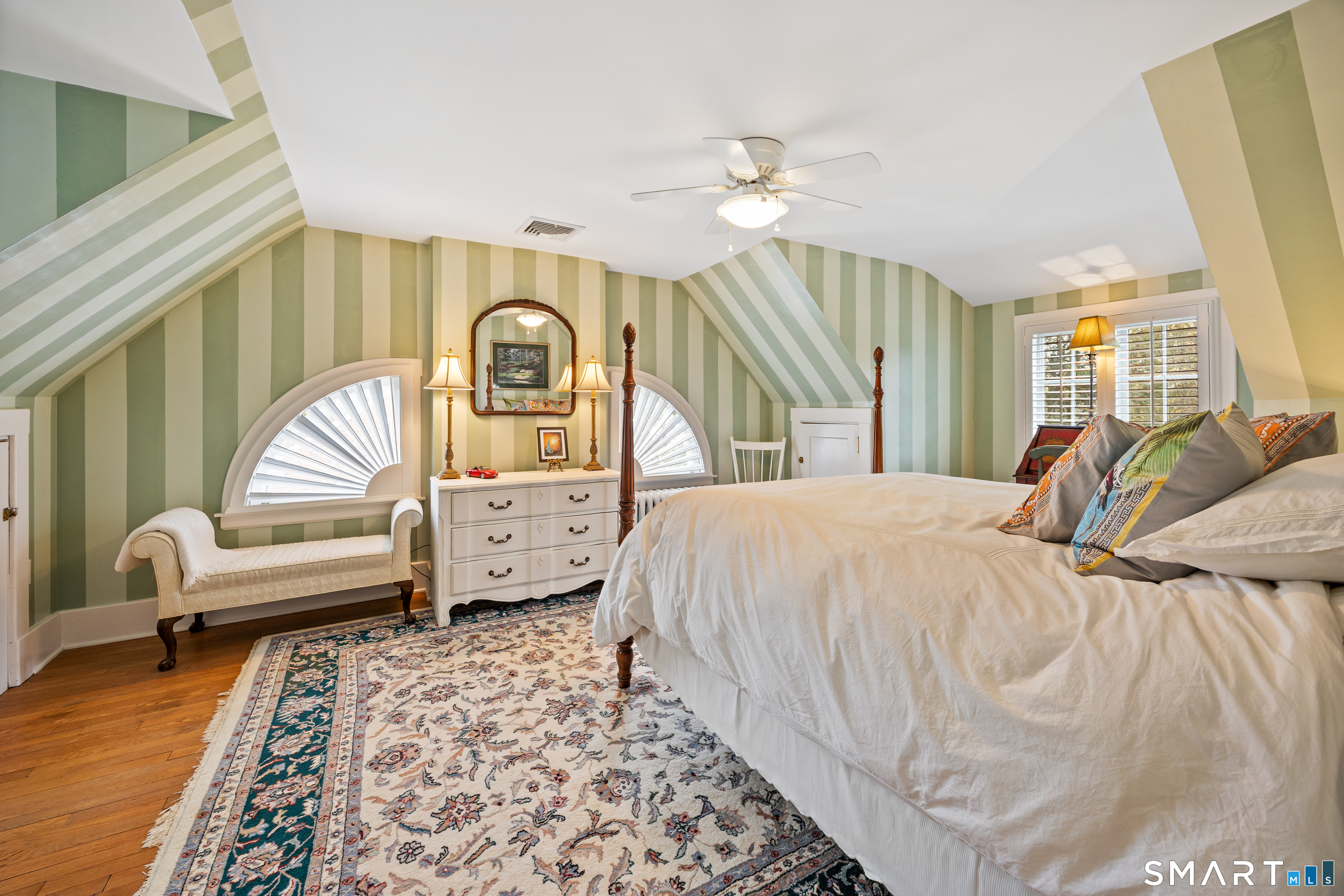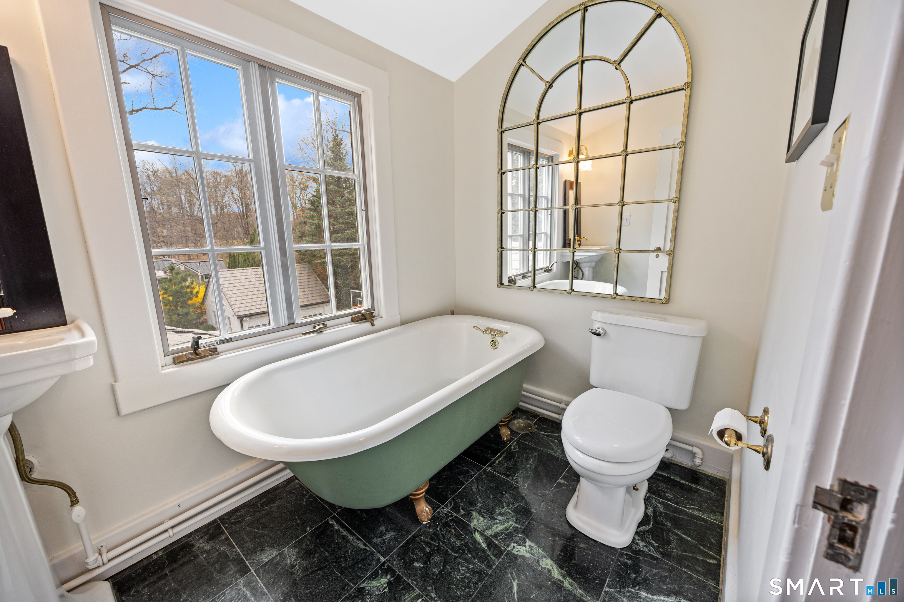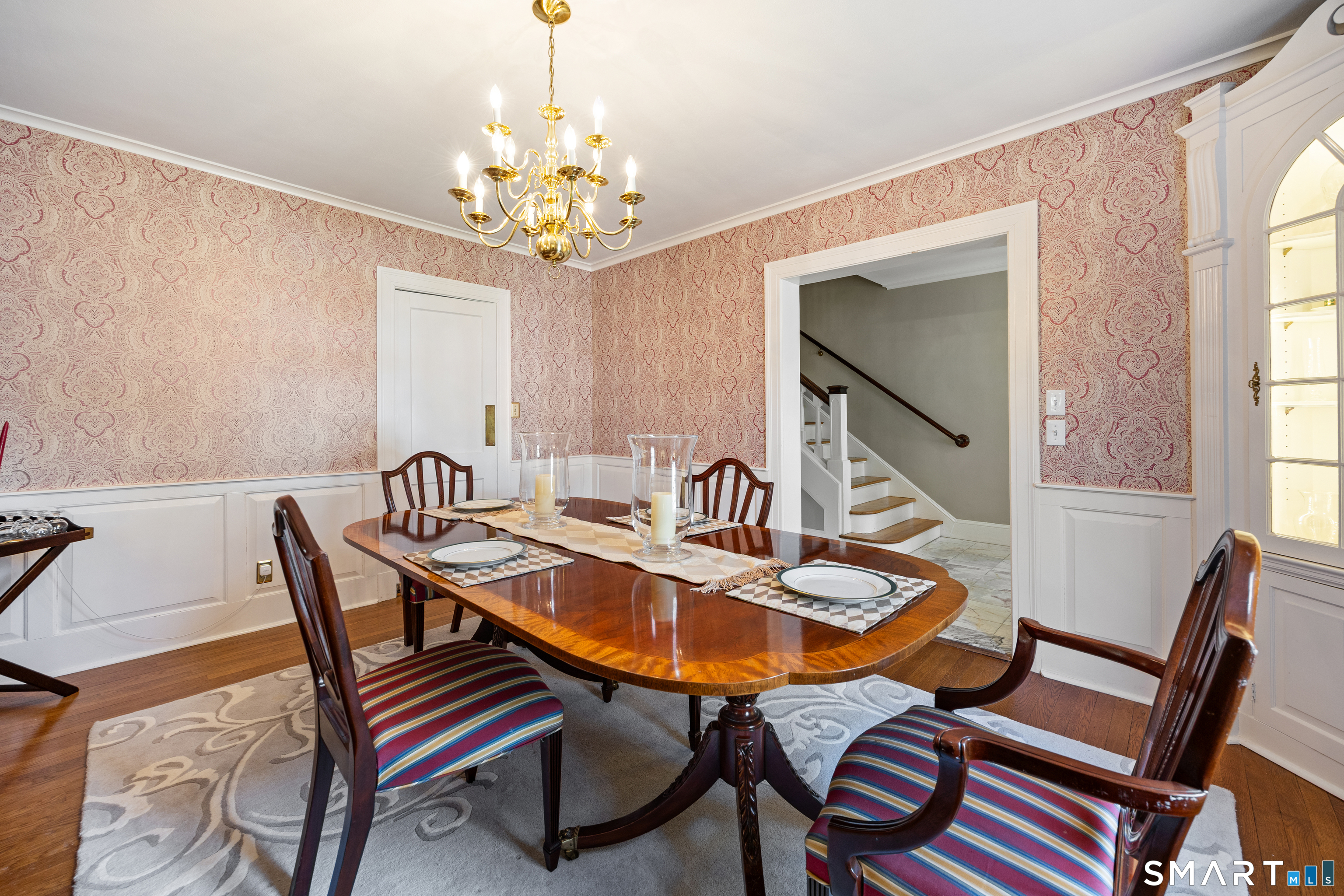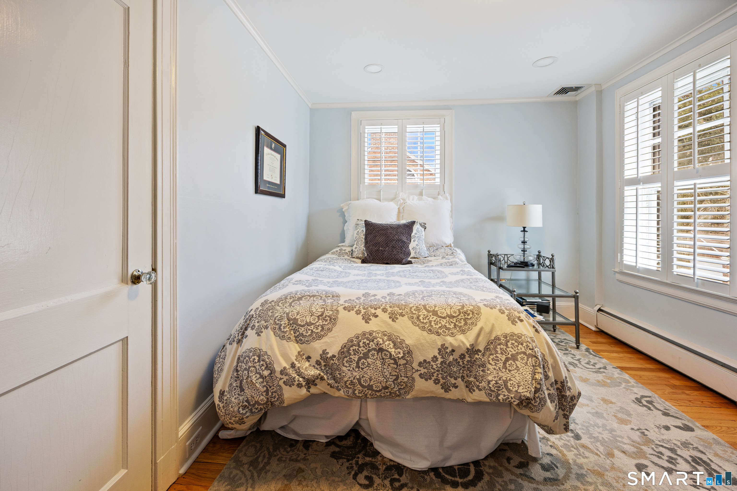 Elegant West End Federal Colonial near the Shuttle Meadow Country Club! This rarely available residence blends timeless architecture with modern sophistication across four beautifully appointed levels. Offering 6 bedrooms and 4.5 baths, this home features a thoughtfully designed layout ideal for both everyday living and upscale entertaining. The gourmet eat-in kitchen is outfitted with granite countertops and double stainless steel appliances, opening up to an cozy den with rich hardwood floors and custom shutters found throughout this home. A gracious dining room with custom built-ins and designer lighting sets the stage for memorable gatherings, while the marble foyer opens to a refined living room with a gas fireplace with marble surround. A private study with custom cabinetry provides an elegant work-from-home retreat. The second floor offers a serene primary suite with a steam shower, 2 additional bedrooms, a full bath and a walk-in dressing room. The third floor provides even more versatility , featuring another bedroom, a full bath with tub and a private office space. The finished lower level features a bar and lounge area for effortless entertaining. Additional highlights include a whole-home Sonos sound system spanning four floors, updated exterior lighting, irrigation system, outbuilding with water, two-car garage, and a newer composite slate roof. This exceptional property delivers luxury and comfort in one of New Britain's most coveted neighborhoods.
