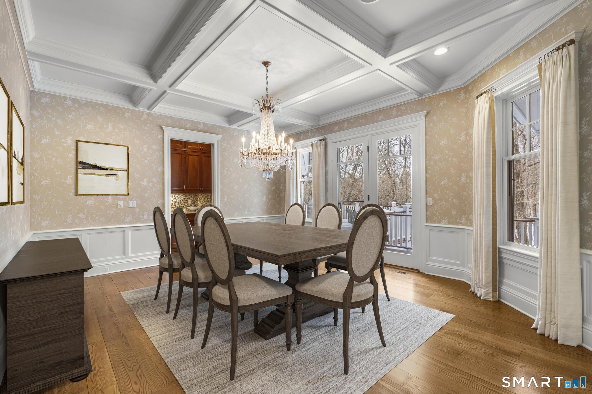 A rare opportunity to own a custom-designed residence by renowned architect Peter Cadoux, nestled on a private cul-de-sac abutting Quarry Head Park/Harrison Smith Preserve providing direct access to nearly 60 acres of hiking and equestrian trails. Additional privacy is provided by a serene sanctuary of forever green space to the west. This extraordinary home combines architectural artistry, thoughtful design, and the finest materials and craftsmanship. The home has been meticulously maintained by a professional property manager. A grand foyer with 20+ ft ceilings, welcomes guests into an atmosphere of understated elegance, framed by exceptional millwork. The main living spaces flow gracefully: a formal dining room adorned with a crystal chandelier and an inviting living room featuring a coffered ceiling and fireplace. A half bath for guests and a private office with built-in wood cabinetry is off to the right. Off the dining room, the butler's pantry featuring a refrigerator and wine cooler make entertaining a breeze. The kitchen is a culinary dream, appointed with Viking and Sub-Zero appliances, double sinks, beautiful quartz countertops and gorgeous custom cabinetry. With ease for entertainment, the kitchen opens to the family room with a well-appointed stone fireplace. Mirroring this focal point, an outdoor fireplace anchors the wrap-around deck, offering seamless indoor-outdoor entertaining.