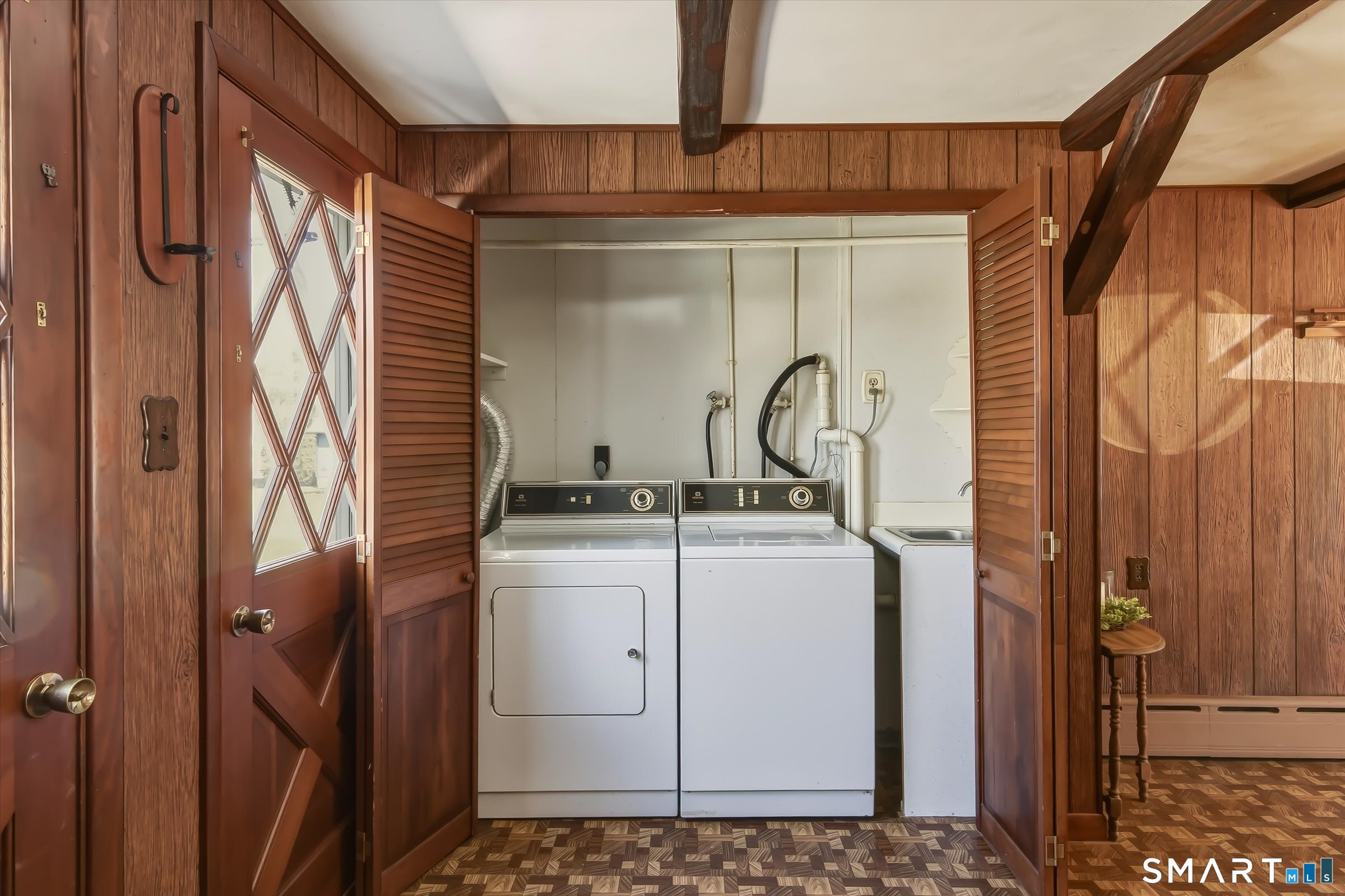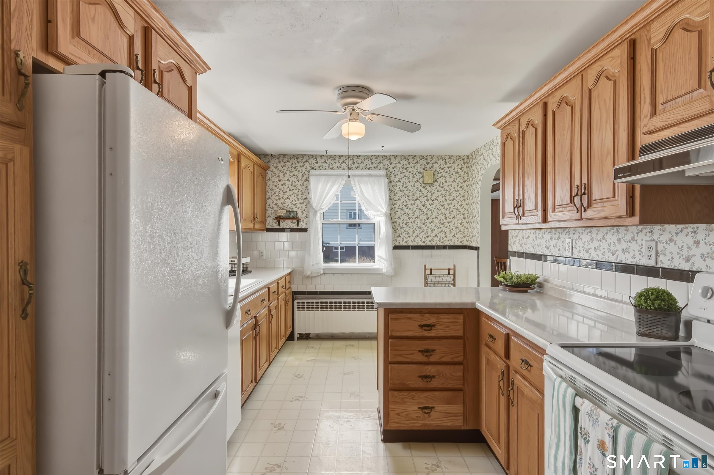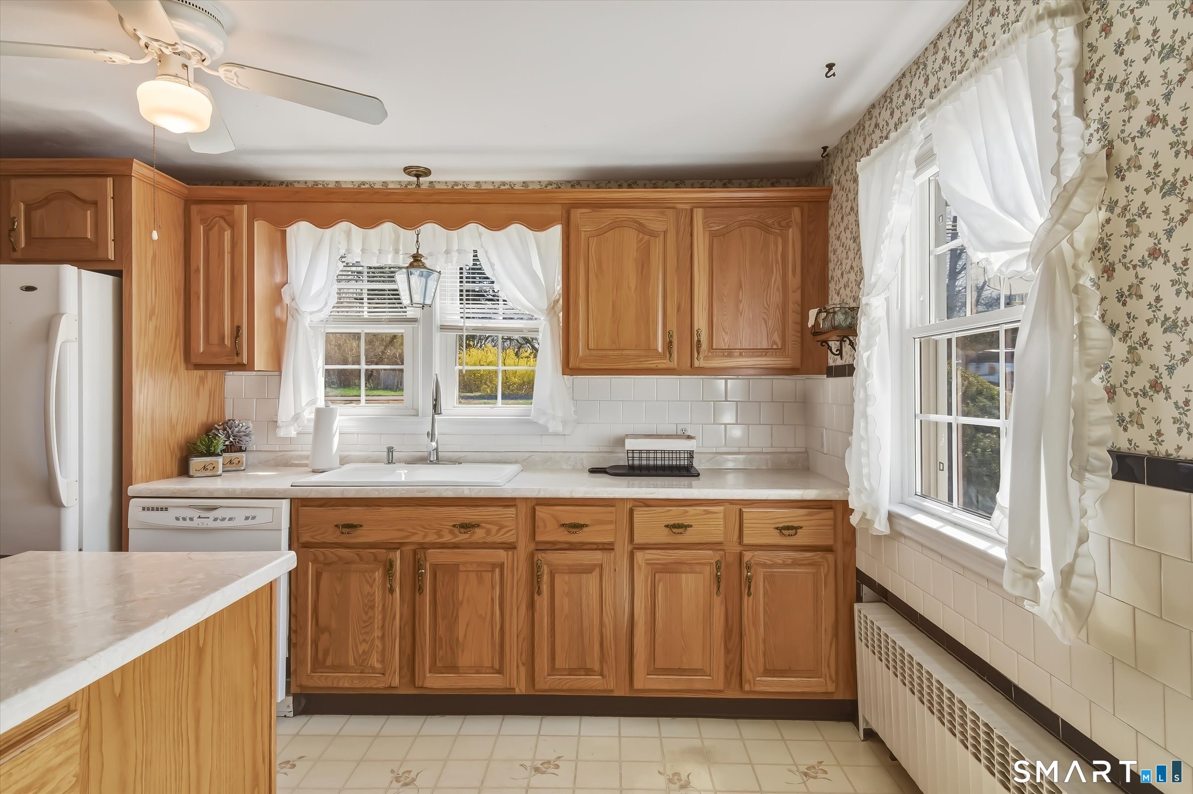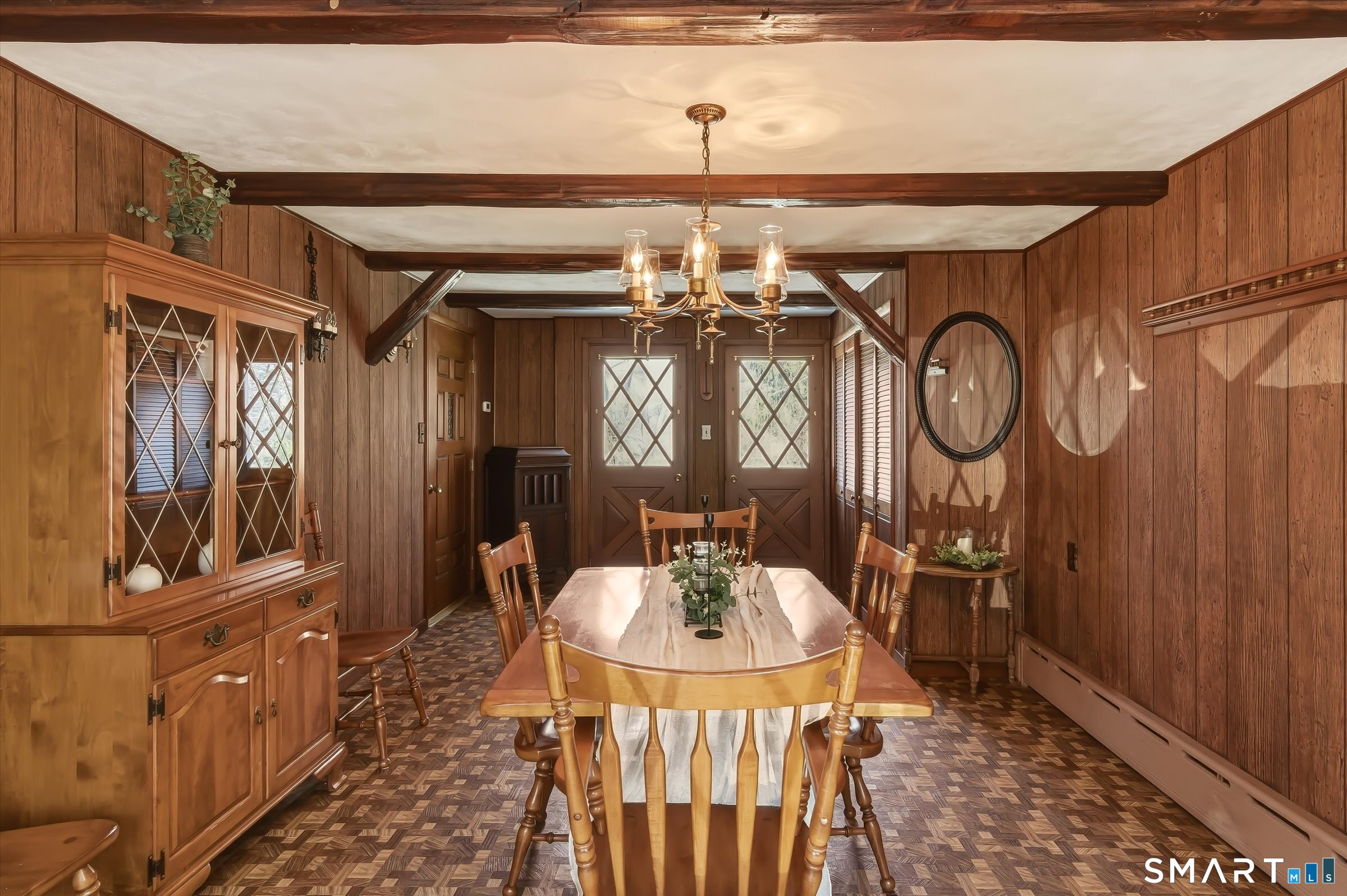 This solidly built mid-century Cape hits the market for the very first time, meticulously maintained by its original owner. This home features 4 bedrooms and 2 full bathrooms, highlighted by lustrous oak hardwoods, charming finishes and a classic fireplace. Modern reliability meets mid-century charm with recent upgrades, including a brand new 200 amp electrical panel, a newer roof just 3 years old and protective French drains. Practicality is woven throughout the layout from the convenient 1st floor laundry and welcoming foyer entry to the separate heating zone in the dining area and efficient oil fired radiant heat. The exterior is equally impressive, boasting a 2 car garage with elegant arched doorways that mirror a separate arched entrance and a rear deck perfect for relaxing. With tons of storage space and a layout designed for longevity, this rare find is ready for its next chapter.