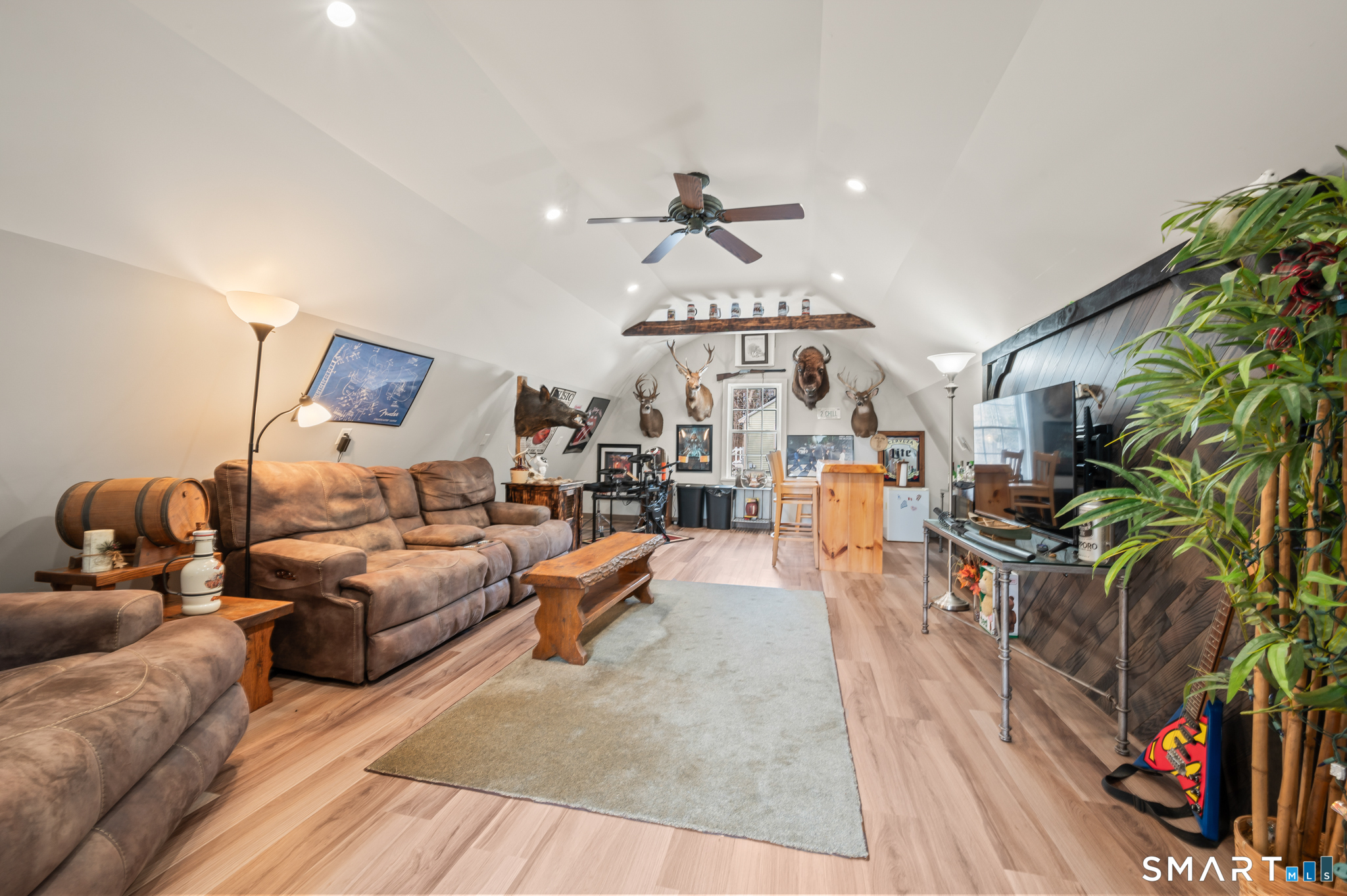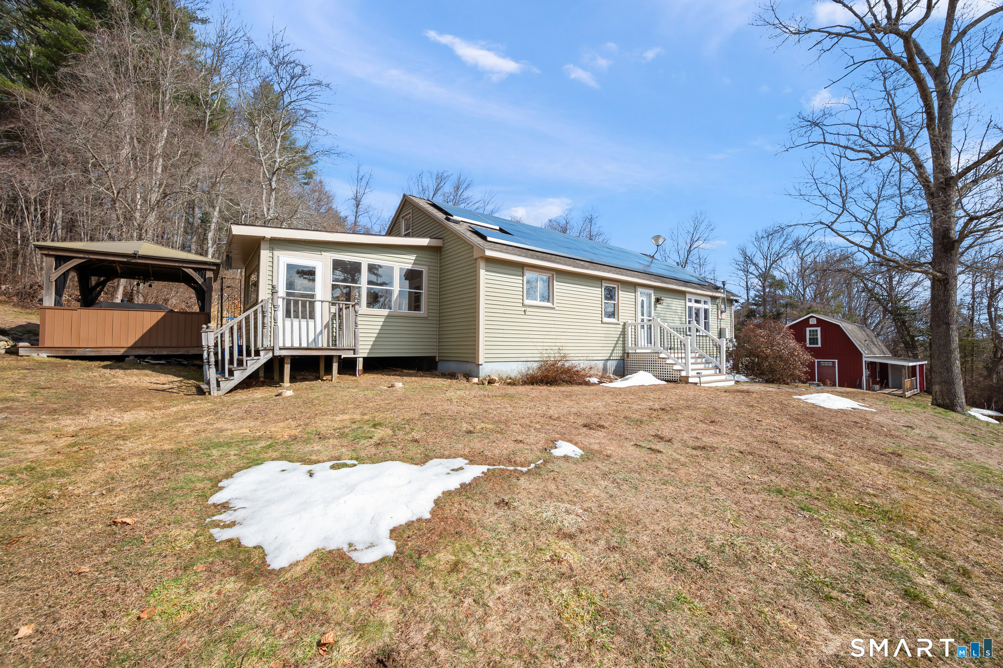 A MUST SEE! Impeccably Cared For, Maintained, And Updated With Many Extras, And The Barn Is Awesome! Updated Kitchen With Granite Counter Tops, Stainless Steel Appliances, Hickory Cabinets, Tile Backsplash, Freshly Painted, New LED Lighting. Updated Thermal Windows Throughout. Brand New 2026 Pellet Stove In Living Room, Updated Flooring. New In 2025 Ductless Split A/C System With Heat Pump For Added Heating Efficiency. The Second Floor New Upgraded 200-Amp Electric Service 2025, New Upgraded 200-Amp Electric Panel 2025. Spacious Second Floor Bedroom Suite Potential In-Law Or As Primary Features Large Bedroom, Second Full Bath, And Living Area, Is Newly Painted, And Has New LVP Flooring, And New Lighting. The Sunroom, Off The Kitchen Is A Great Entertaining Space With A Bar Area And Views Of The Yard, And Is Next To The Out Door Hot Tub And Out Door Pavilion With Out Door Grill Area, Dining Area, Built-In Firepit, Garden Beds, And A Babbling / Running Water Feature / Koi Pond. The Lower Level Features Two Additional Finished Areas Currently Used As A Office And Home Gym With Newer Flooring, And French Doors, But Also Potentially In-Law / Au-Pair Suite Or Separate Family Member Living Area With Own Separate Entrance. The Unfinished Walk-Out Basement Area Offers Plenty Of Storage. The Barn Is Fully Finished With It's Own Separate Electric Meter And Electric Panel, LVP Flooring, A Counter And Cabinet Area For The First Floor. Second Floor Is The Most Awesome Cave! The Storage
