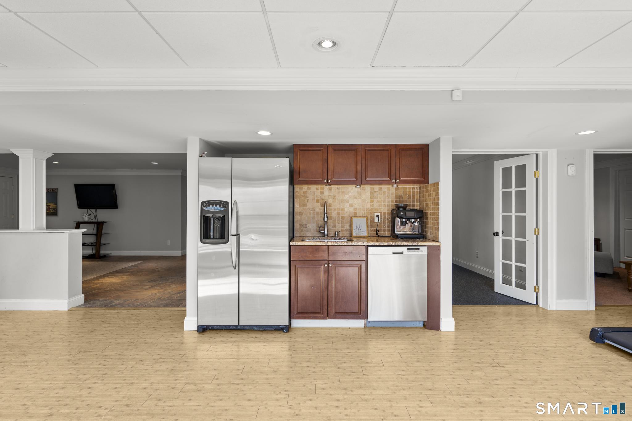 This stunning 4-bedroom, 3.1-bath Colonial perfectly blends classic elegance with modern luxury and exceptional indoor-outdoor living. From the moment you arrive, the home's timeless architecture and inviting presence set the stage for the beautifully maintained spaces within. At the heart of the home is the beautifully updated chef's kitchen, featuring a premium Wolf gas range, elegant marble countertops, custom cabinetry, and generous workspace, ideal for both everyday living and entertaining. The kitchen flows seamlessly into the spacious family room, highlighted by beautiful coffered ceilings and one of the home's three fireplaces, creating a warm and sophisticated gathering space. The primary bedroom suite offers a peaceful retreat with abundant natural light, a walk-in closet, and a luxurious private bath complete with a large stall shower and relaxing whirlpool tub. Designed for entertaining and relaxation, the home's outdoor living space is truly exceptional. Step outside to a beautiful patio with a fully equipped outdoor kitchen, perfect for summer gatherings and al fresco dining. The backyard oasis continues with a heated in-ground pool with a new heater, creating the perfect setting for both quiet afternoons and lively entertaining. The finished walk-out basement expands the home's living space and offers incredible versatility, featuring a dedicated gym room, kitchenette, and comfortable living area, all with direct access to the patio ideal for guests, recreation