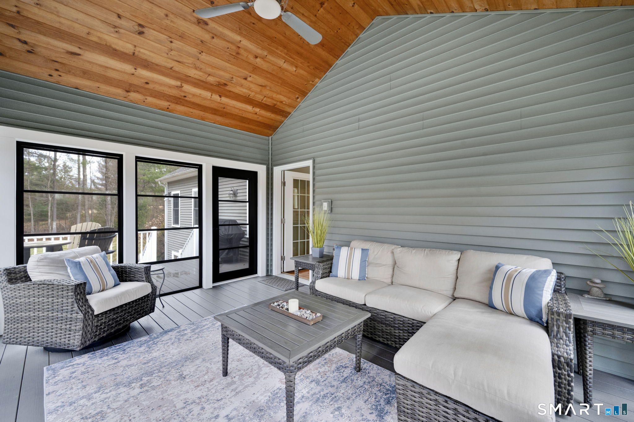 Spectacular 2558 sq. ft. Custom Designed Cape with seasonal views of Crystal Lake. Situated 1.14 acres, this distinctive home is both stunning and efficient. Constructed with high-end finishes throughout, this home has tremendous curb appeal and includes an eye-catching home design with stonework facade, a welcoming pillar-and-molding front landing and an abundance of oversized transom windows. The atrium-windowed front entrance foyer gives way to custom-hickory hardwood floors, distinctive crown moldings and an abundance of recessed lighting. The open-design Great room is bathed in natural morning light and includes a granite surround gas-log fireplace and extends into a beautifully appointed Dining room. The rear facing gourmet eat-in Kitchen is equally as impressive and includes custom cabinetry, stainless appliances, a center island breakfast bar, gas stove, granite, tiled backsplash, pantry, and access to screened-in rear Sunroom. The vaulted ceiling, 3-sided Sunroom includes composite flooring and access to elevated rear deck. The main level also includes a stunning Primary Bedroom with tray ceiling, an oversized walk-in and a dazzling private full bath, a Mudroom with plenty of closet space and a half bath. The upper level includes 2 additional Bedrooms, a full bath and a top-of-landing entertainment / family room. The lower level provides 9ft ceilings, windows and walkout. The grounds include a private backyard, paver patios with firepit, Kloter Shed and hot tub!