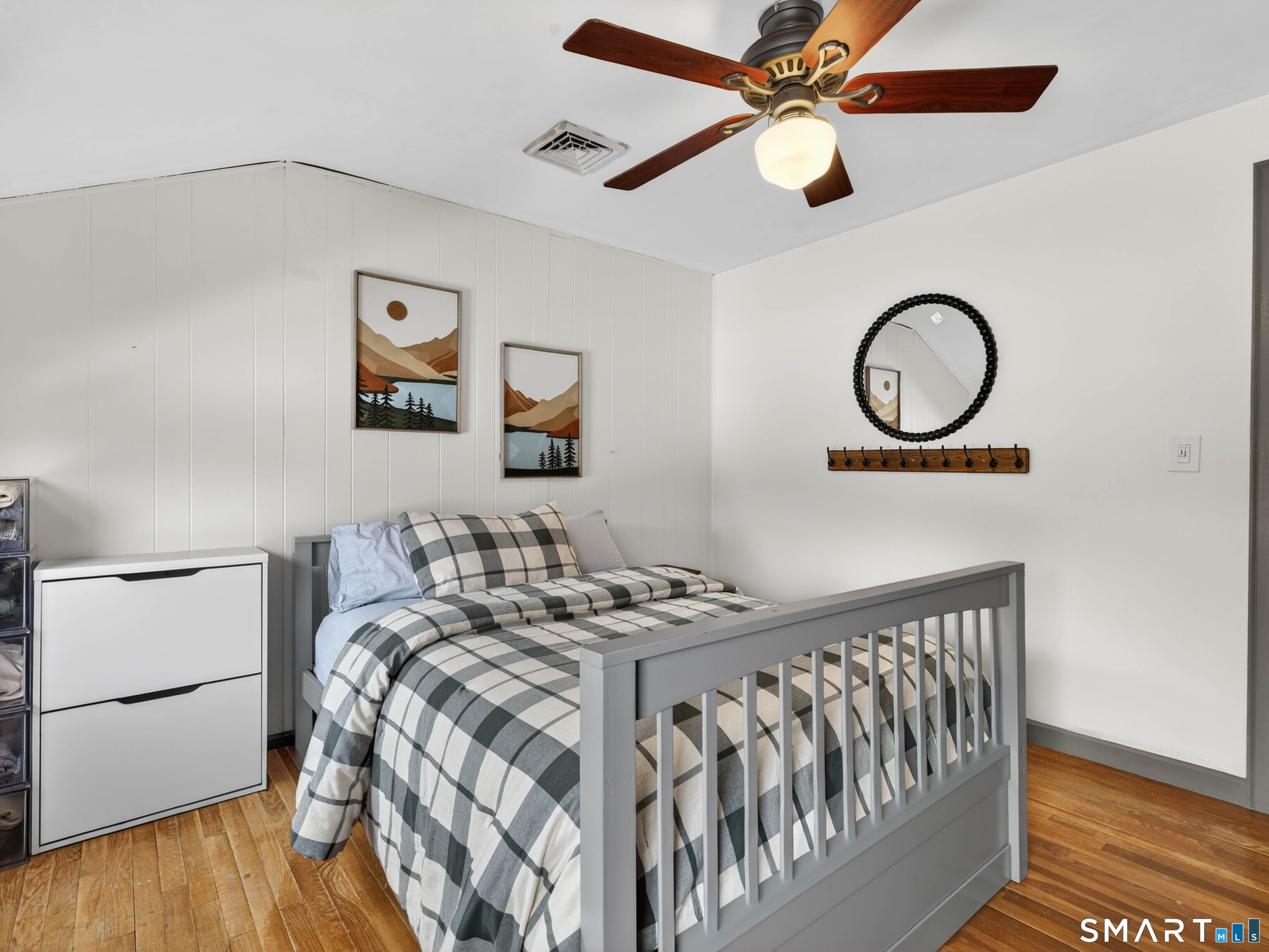 5-bedroom farmhouse-style Cape Cod sits proudly on 3.24 acres of lush land with an in-ground heated pool! This 2,382 sf country home welcomes you with a full wrap-around porch and an open floor plan that creates a spacious atmosphere with a remodeled kitchen serving as the heart of the home. The kitchen features a farmhouse sink, stainless appliances, a large center island, and extensive cabinetry, flowing into the dining area and generous living room, ideal for social gatherings. A standout feature is the office with a beamed ceiling, gas fireplace, and glass slider that opens to the covered deck leading to the fenced pool area, perfect for those who work remotely. The main floor also offers 2 bedrooms, including a primary bedroom that provides easy single-level living. The second floor expands the living space with a possible caregiver/in-law suite, including 3 bedrooms, a spacious living room, a wet bar, a breakfast bar, and a full bath. Both full baths have been thoughtfully upgraded. Its outdoor amenities elevate this property even further. In addition to the pool, there is a charming pool house and a large barn featuring an impressive built-in indoor playground, a workshop area, and a 4-car garage. The fenced yard enhances privacy while the mature landscaping and fruit trees add beauty and calm. The home also has active solar, providing energy-efficient benefits. This property embodies the best of country living with peaceful surroundings to enjoy every day.