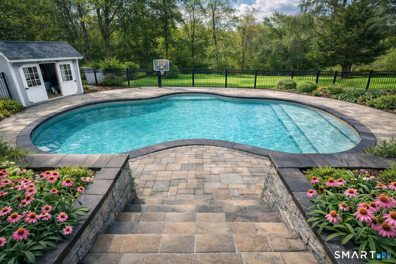 Ready for summer? The pool is open and ready to host your next gathering!!! Experience elevated luxury in this exceptional new construction residence in the prestigious Country Club Estates neighborhood of Waterbury. The Offering 3,623 square feet of impeccably designed living space, this stunning home features 4 spacious bedrooms and 3.5 elegantly appointed bathrooms, blending timeless sophistication with modern comfort. Each bedroom boasts generous walk-in closets with custom California Closet systems, while the luxurious primary suite offers a serene retreat complete with a spa-inspired bath and a beautifully designed walk-in shower. Designed for both refined living and effortless entertaining, the home showcases a striking open-concept layout. The gourmet kitchen serves as the heart of the home, featuring high-end appliances, an oversized statement island, and seamless flow into the expansive family room highlighted by a dramatic fireplace. Built with exceptional craftsmanship and energy efficiency in mind, the home incorporates both open- and closed-cell spray foam insulation along with a high-efficiency Navien boiler for superior comfort and performance. The builder has included a full electrical package, including under cabinet lighting, recessed lighting throughout, soffit and bookshelf lighting and heated bathroom floors!!!
