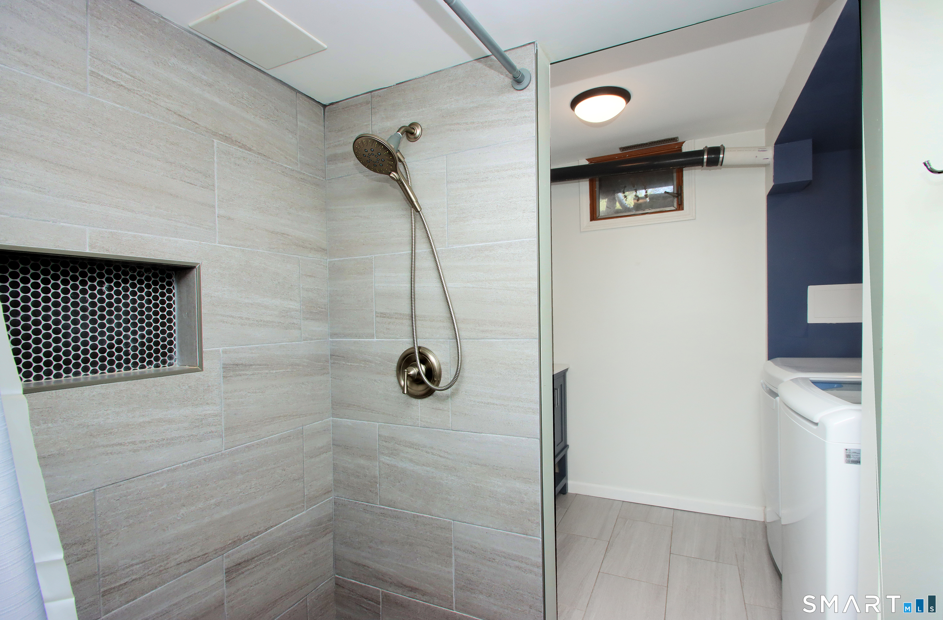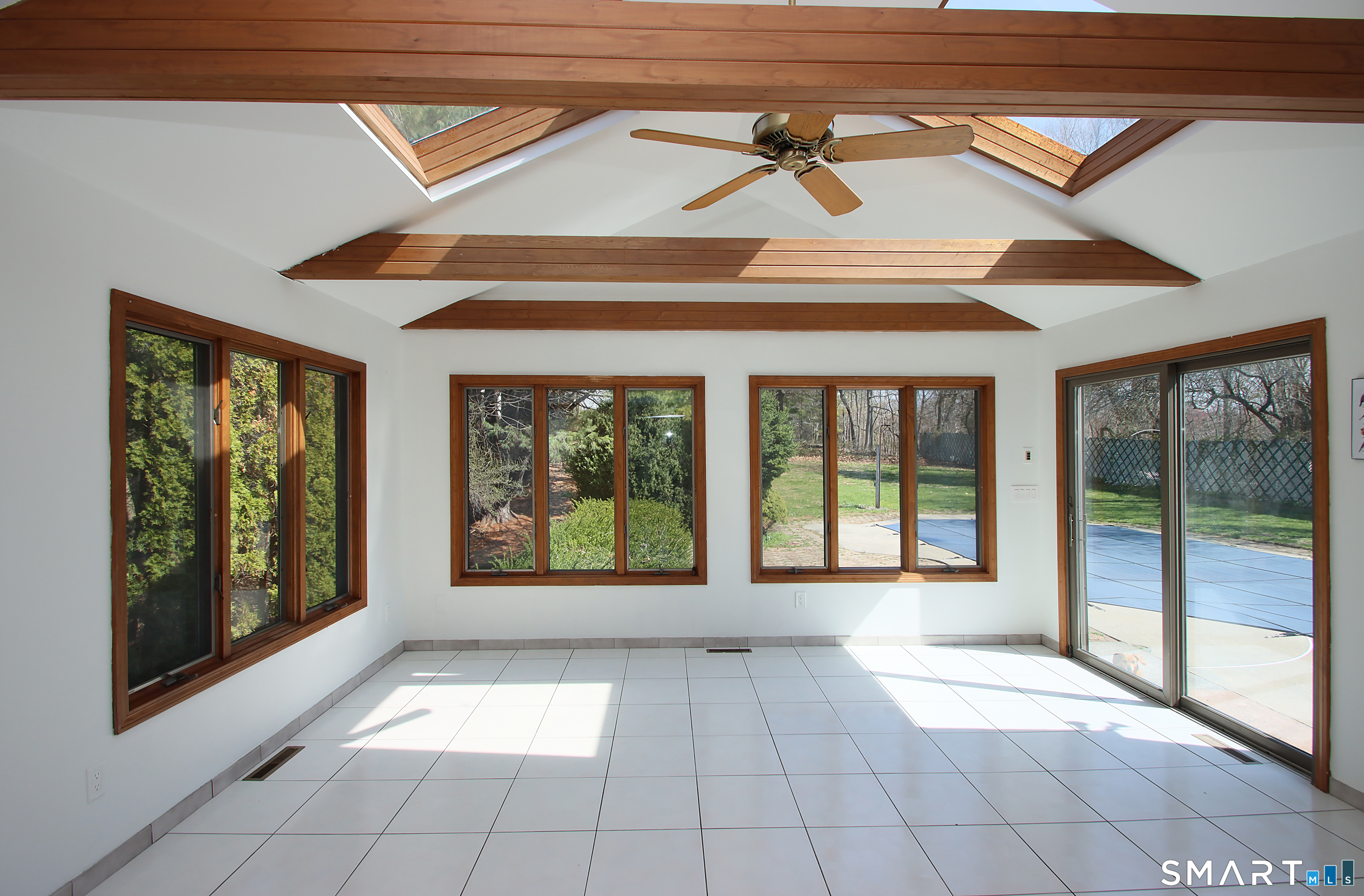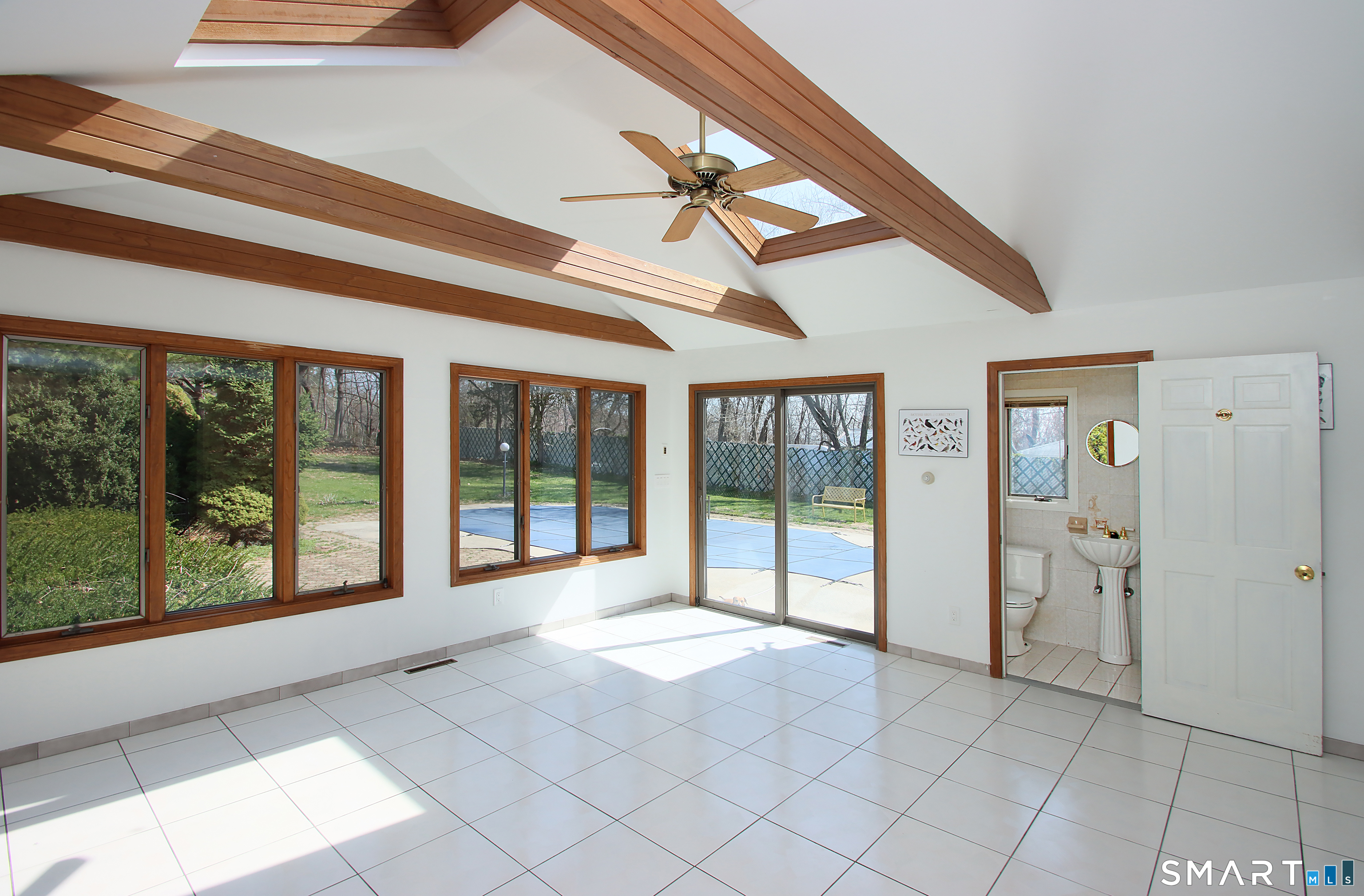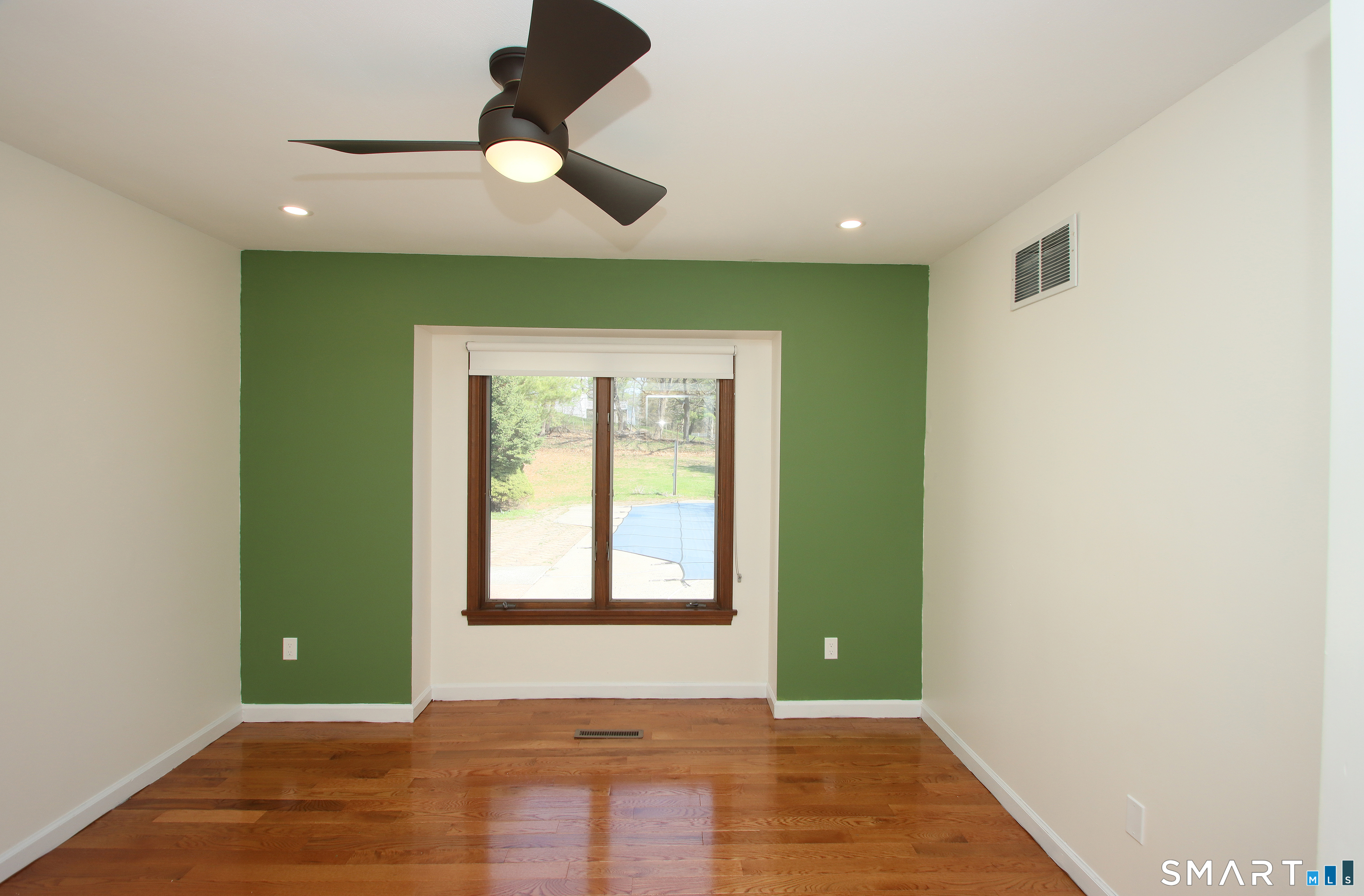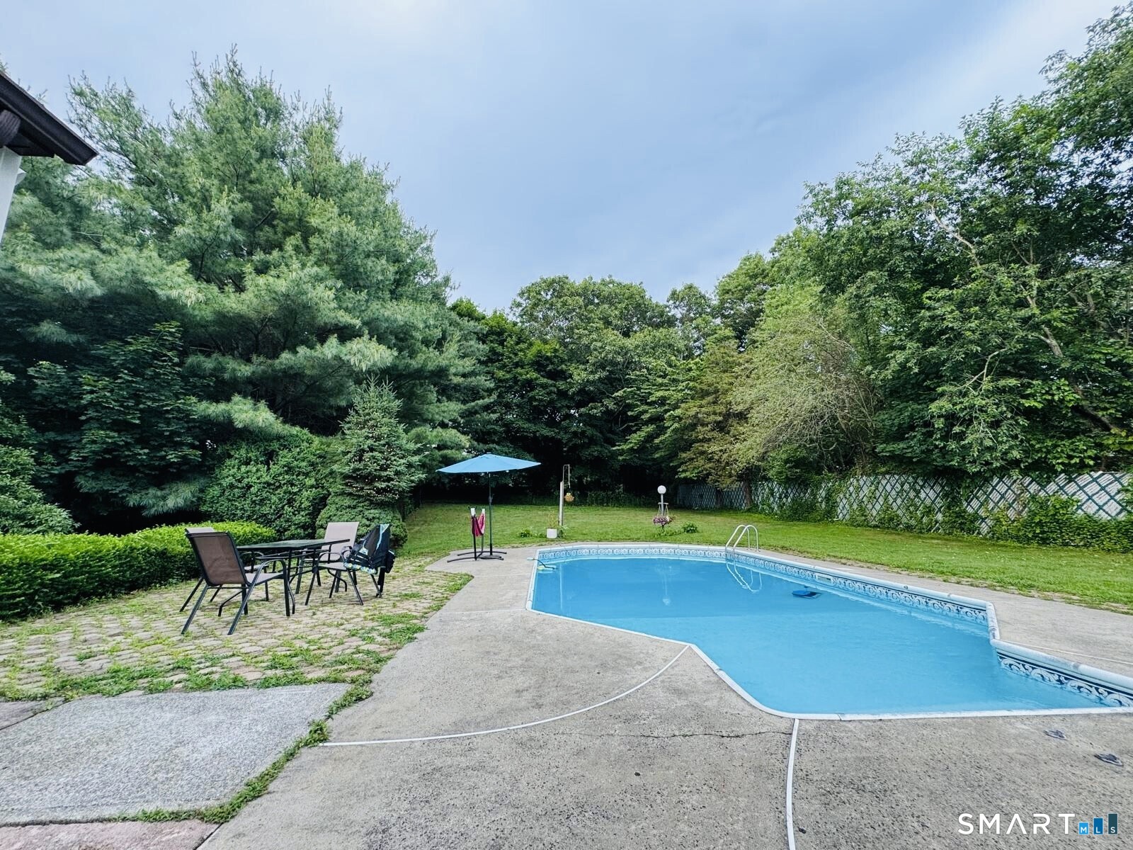 Set on an elevated lot, this beautifully ranch-style home offers picturesque views and the perfect blend of comfort, style, and modern upgrades. Featuring three bedrooms and three full bathrooms, this home is designed for both everyday living and effortless entertaining. Step into the inviting living area, highlighted by charming bay windows that fill the space with natural light and a cozy wood-burning fireplace-perfect for relaxing evenings. Open kitchen leads to a Great room, showcasing a high ceiling with beams, stylish barn doors for privacy along with a full bathroom. Sliders lead directly out to your private backyard oasis, complete with a saltwater in-ground pool-ideal for summer gatherings or peaceful retreats. The primary bedroom serves as a private suite, with ample closet space while a full bathroom on the main level includes a whirlpool tub. The lower level provides valuable additional living space, including a potential fourth bedroom, full bathroom with laundry area that is perfect for guests or a home office setup. Enjoy a convenient two-car attached garage that provides secure parking and easy indoor access. Home has been thoughtfully updated with major improvements in 2024, including a new electric panel, central A/C system, energy-efficient electric heat pump system, water heater, new garage doors and hardwood flooring. Located in the heart of Hamden, this home is close to shopping centers, major highways (I-91 & RT15) and minutes to downtown New Haven.